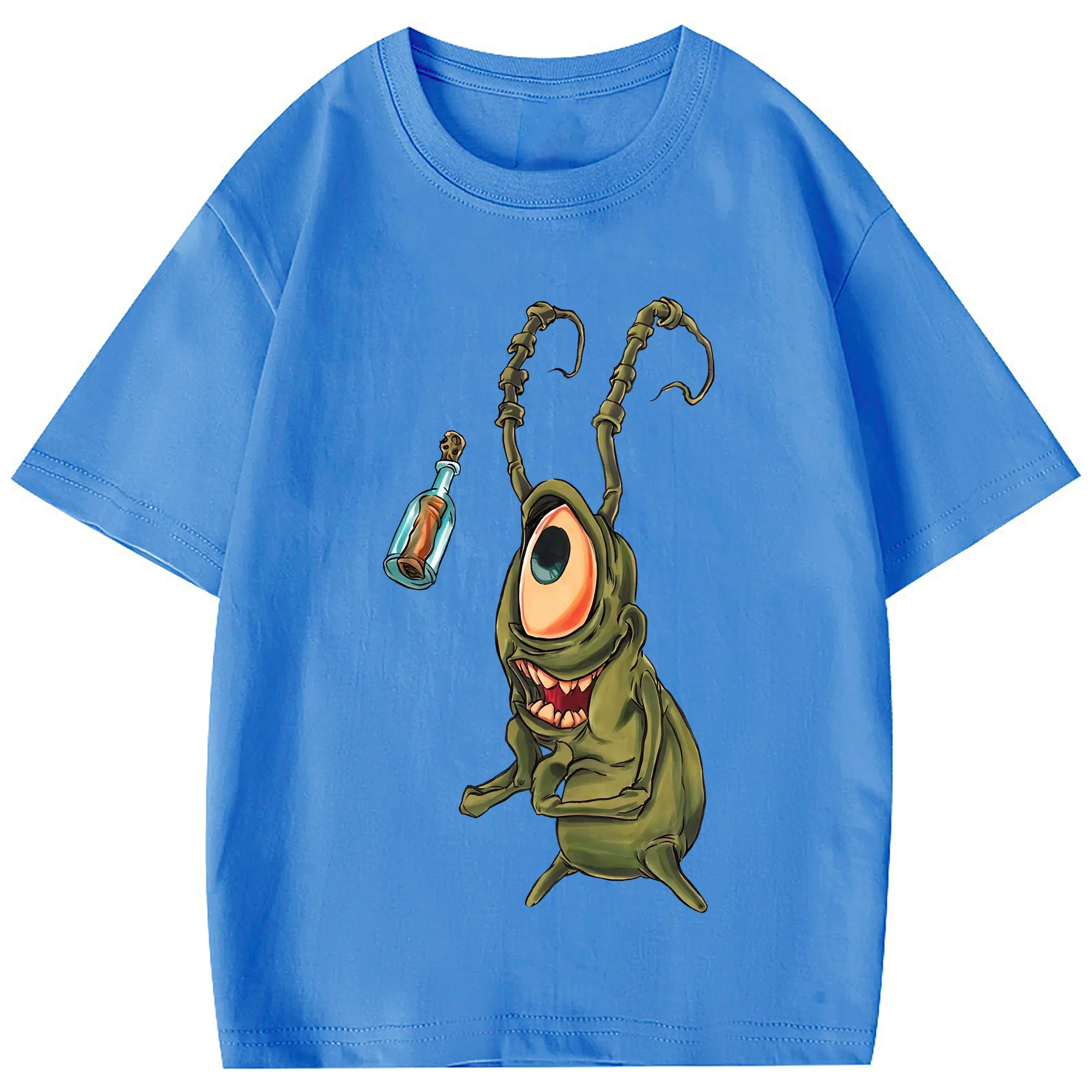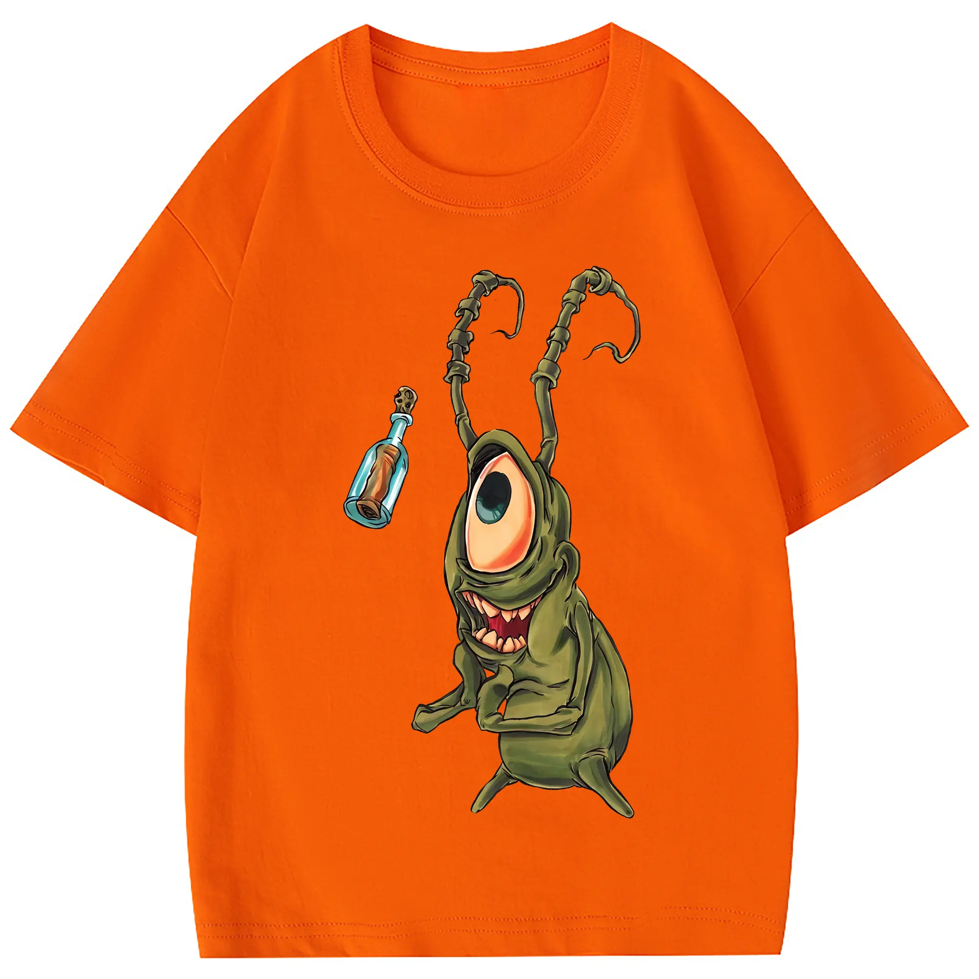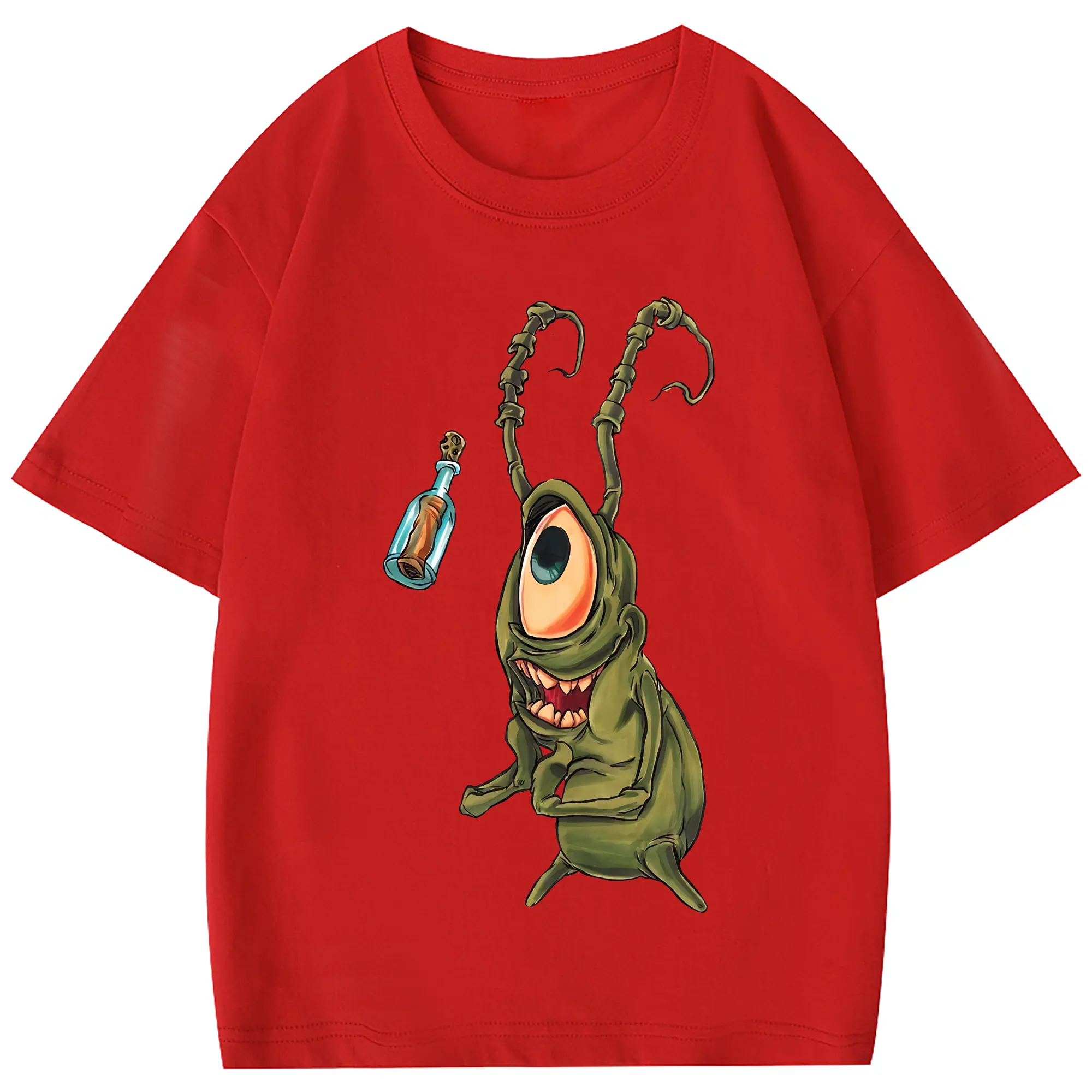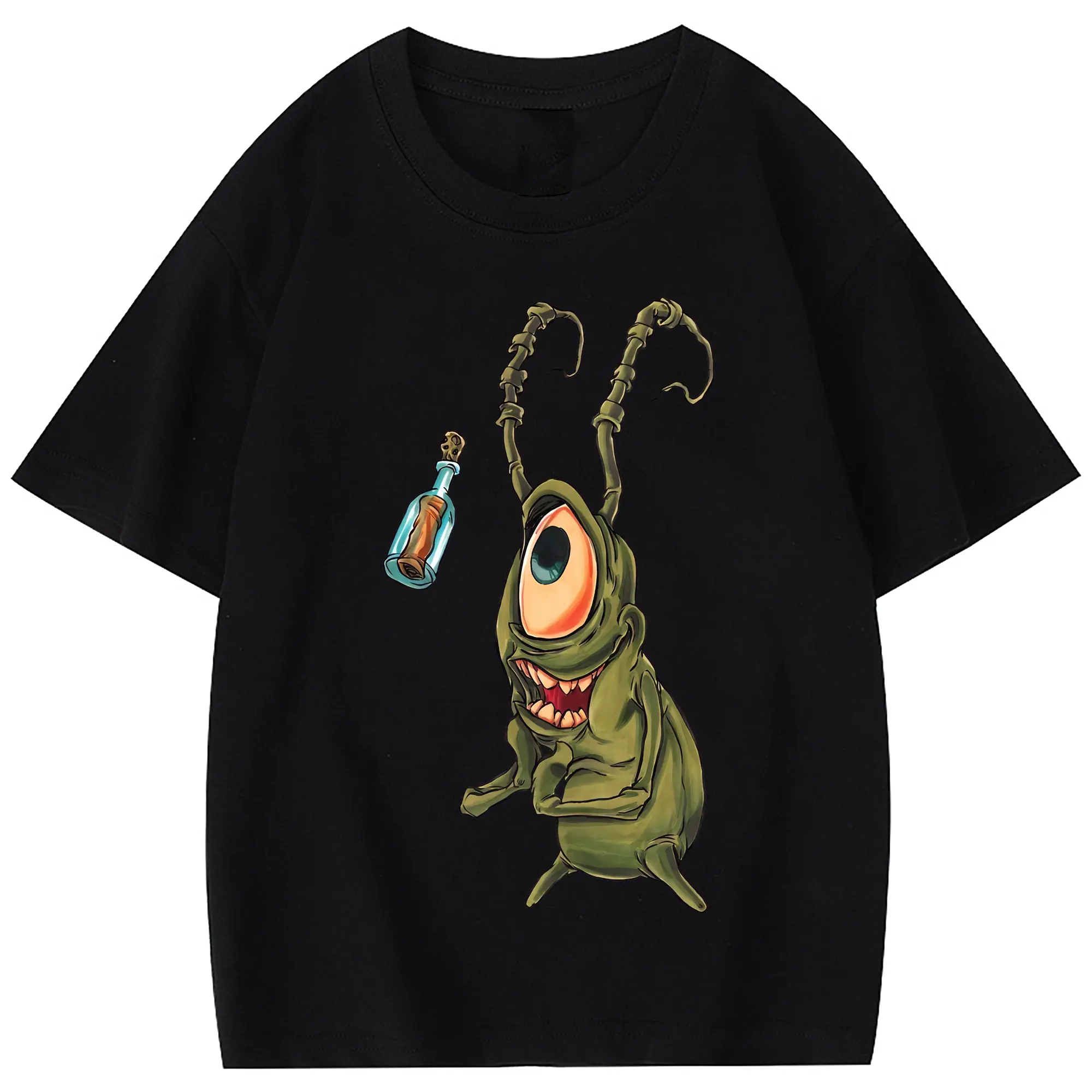 スポンジボブ グッズ プランクトン - 綿100% 半袖Tシャツ ・ バックプリント ・ 快適 通気性 ・ 日常使い 散歩 スポーツ用