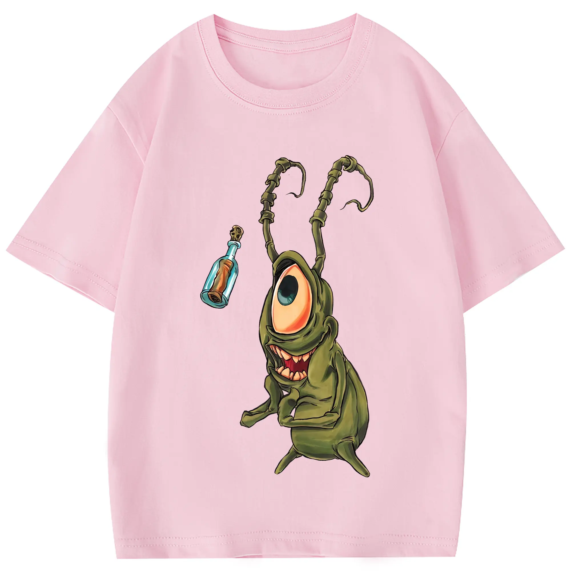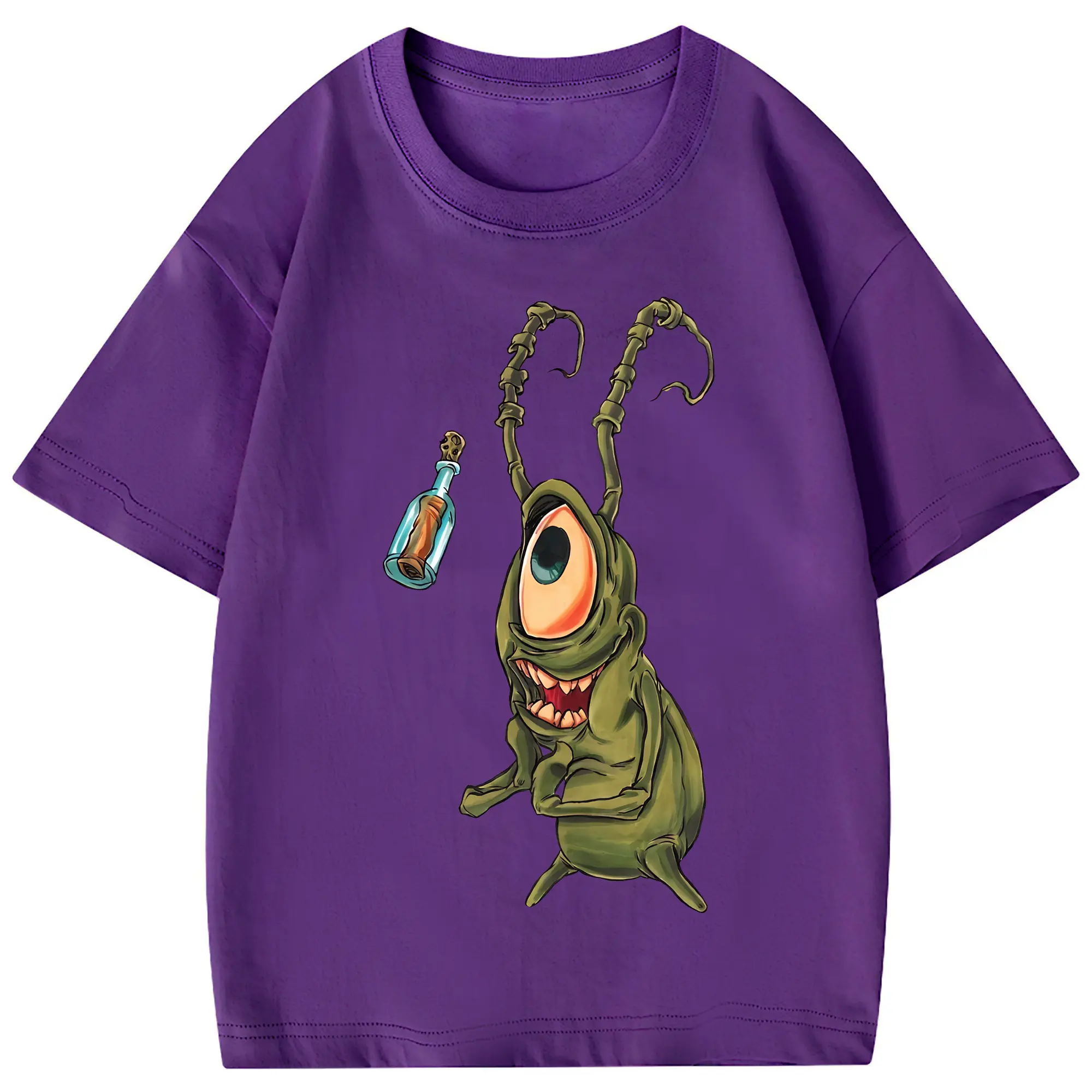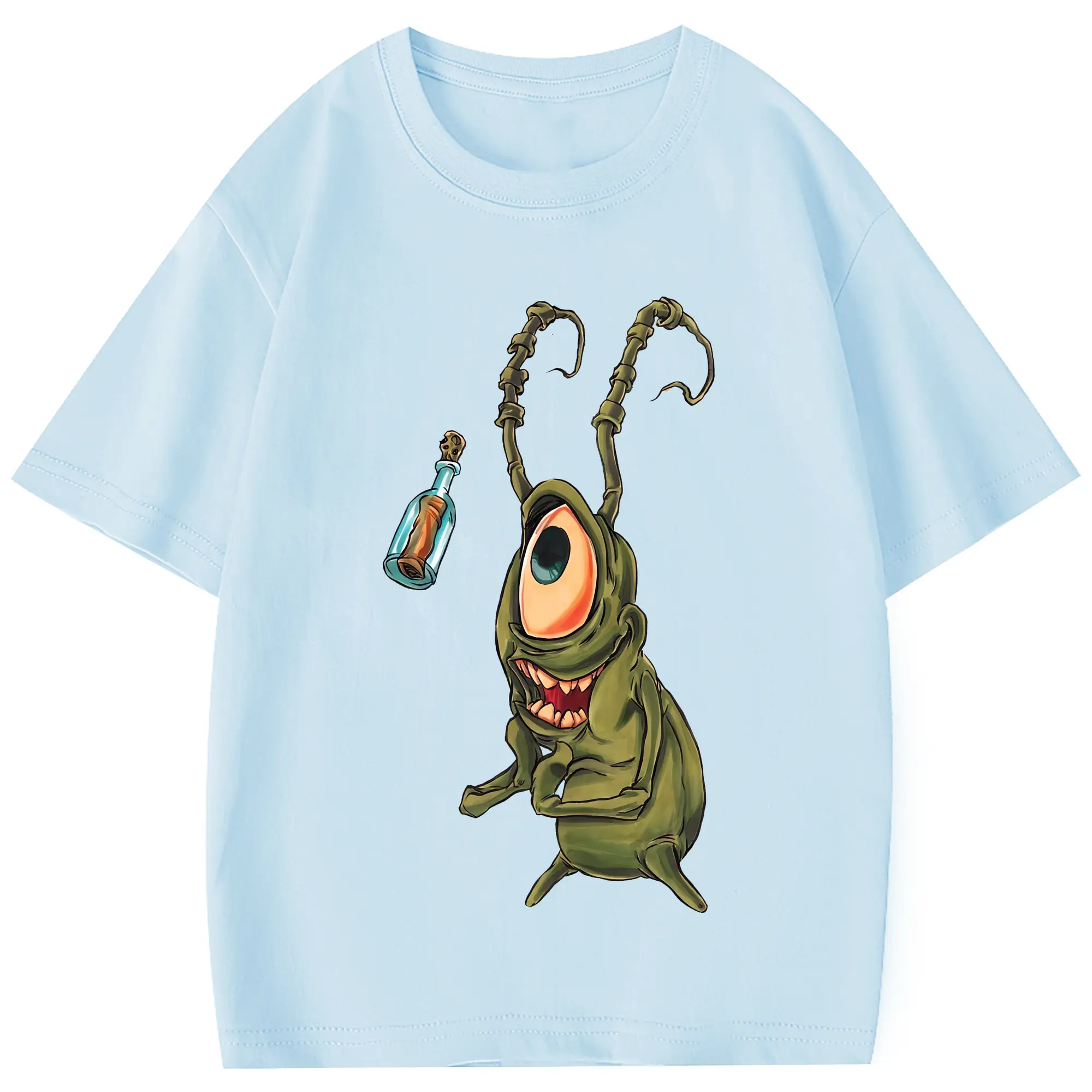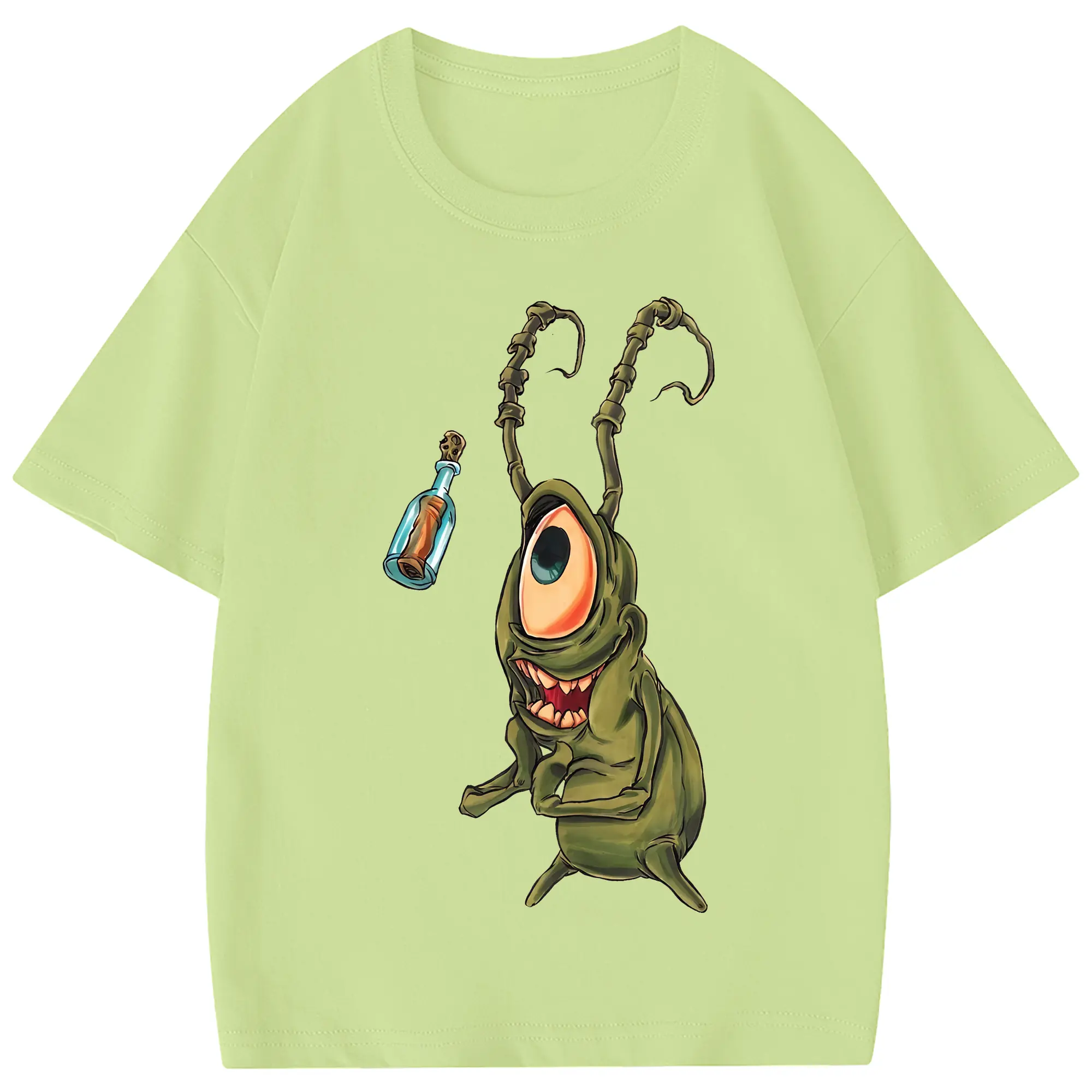 スポンジボブ グッズ プランクトン - 綿100% 半袖Tシャツ ・ バックプリント ・ 快適 通気性 ・ 日常使い 散歩 スポーツ用