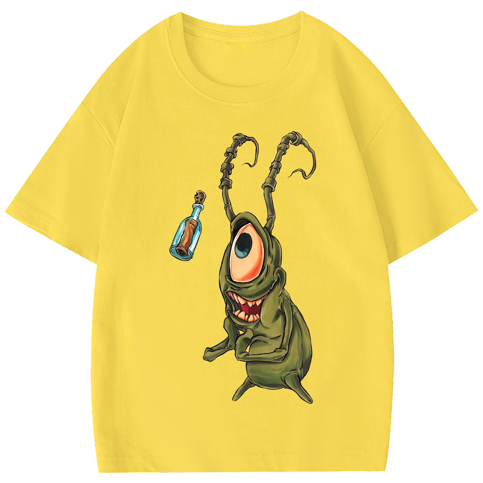 スポンジボブ グッズ プランクトン - 綿100% 半袖Tシャツ ・ フロントプリント ・ 快適 通気性 ・ 日常使い 散歩 スポーツ用