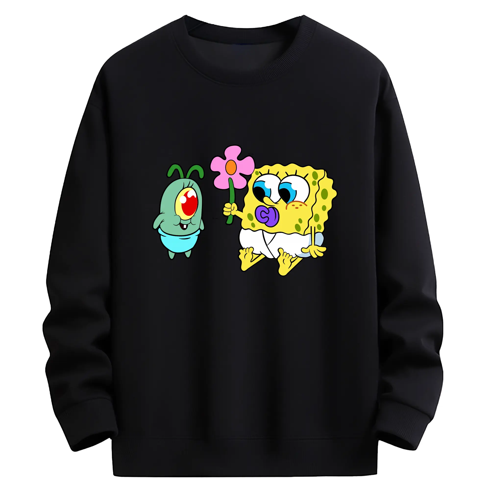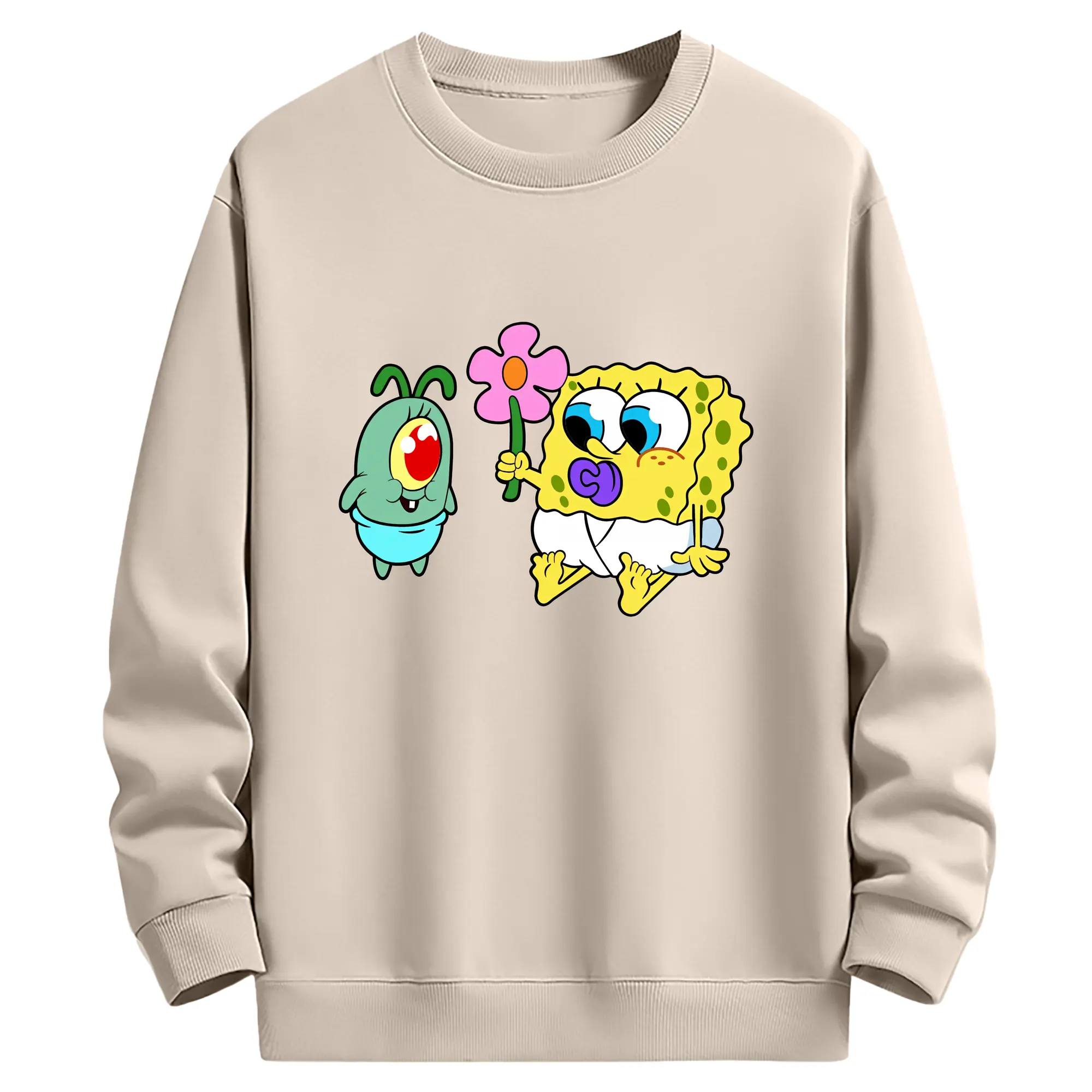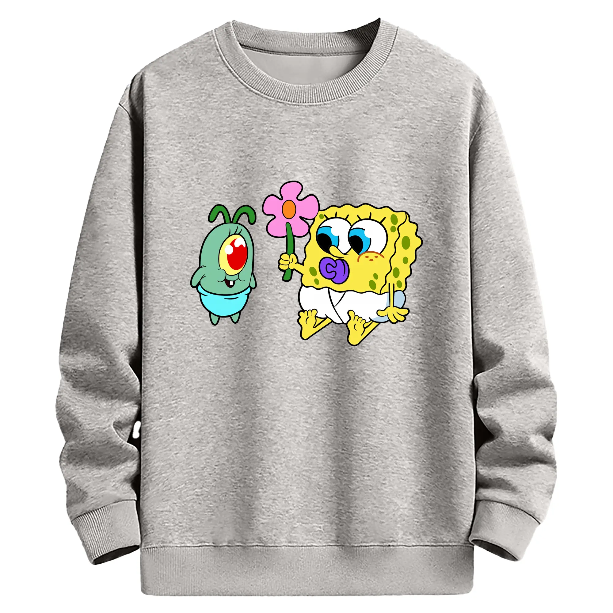 スポンジボブ グッズ プランクトン - 薄手 クルーネック スウェット 裏毛260g · ポリエステル 春秋向け カジュアル 男女兼用 · トレーナー デイリー スポーツ 散歩に最適