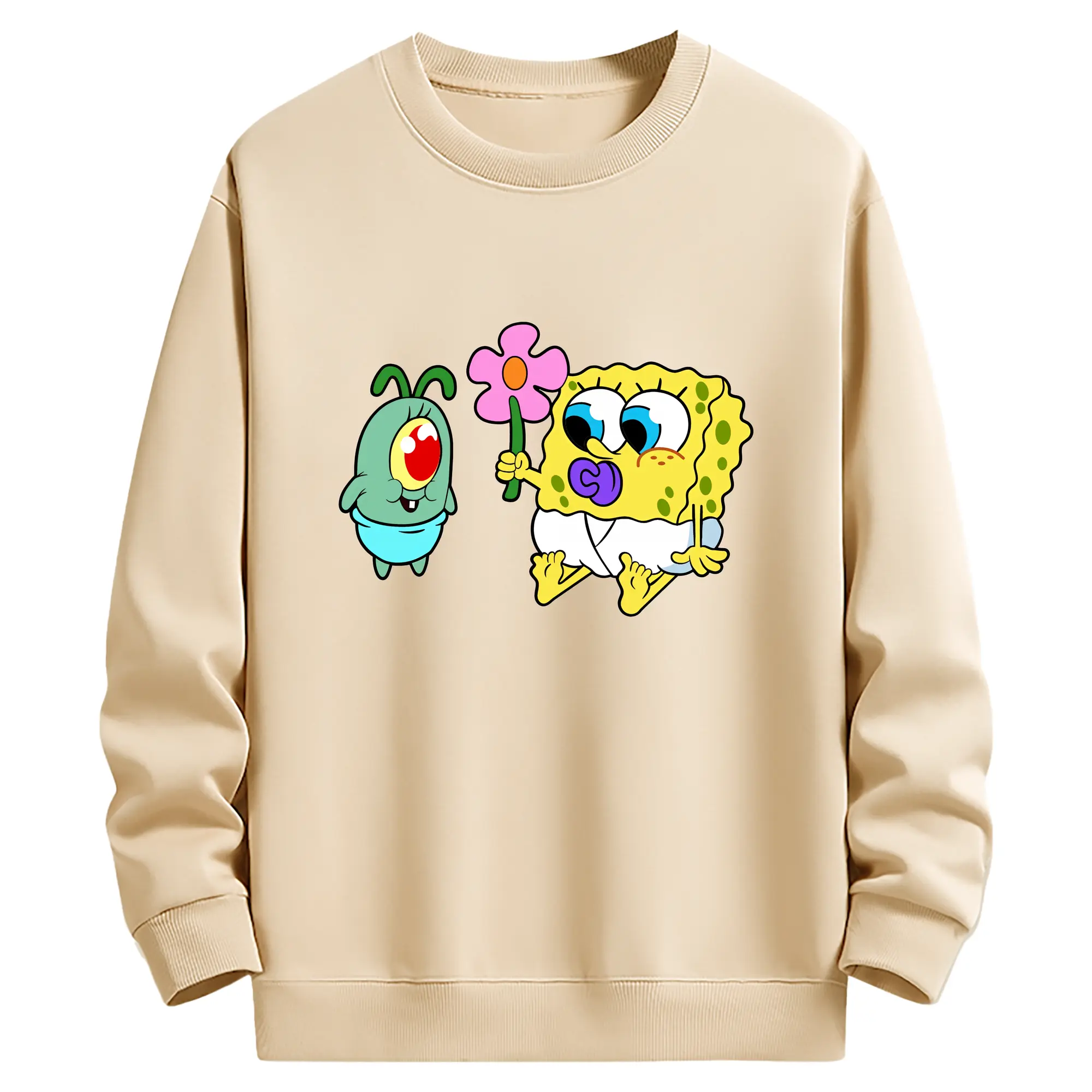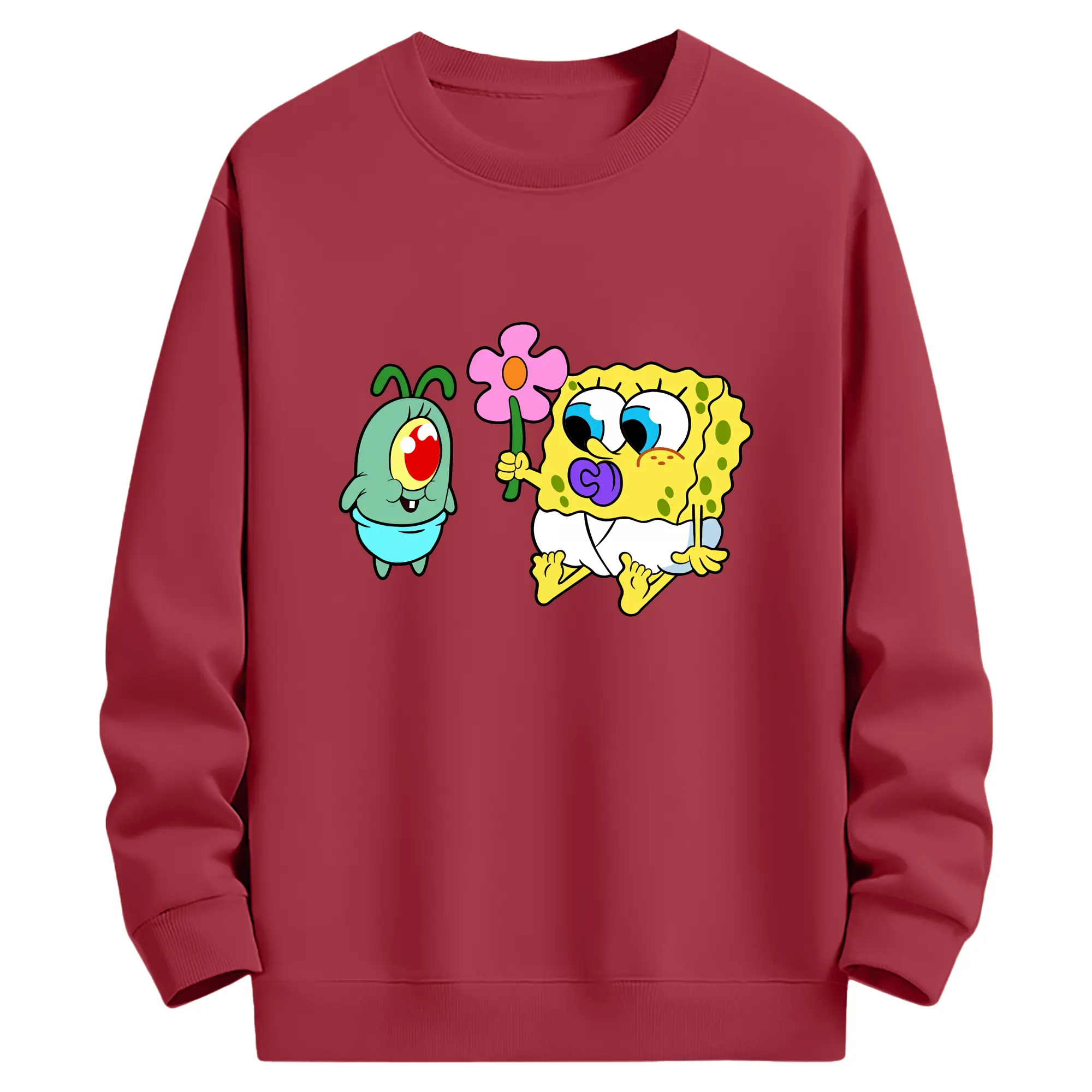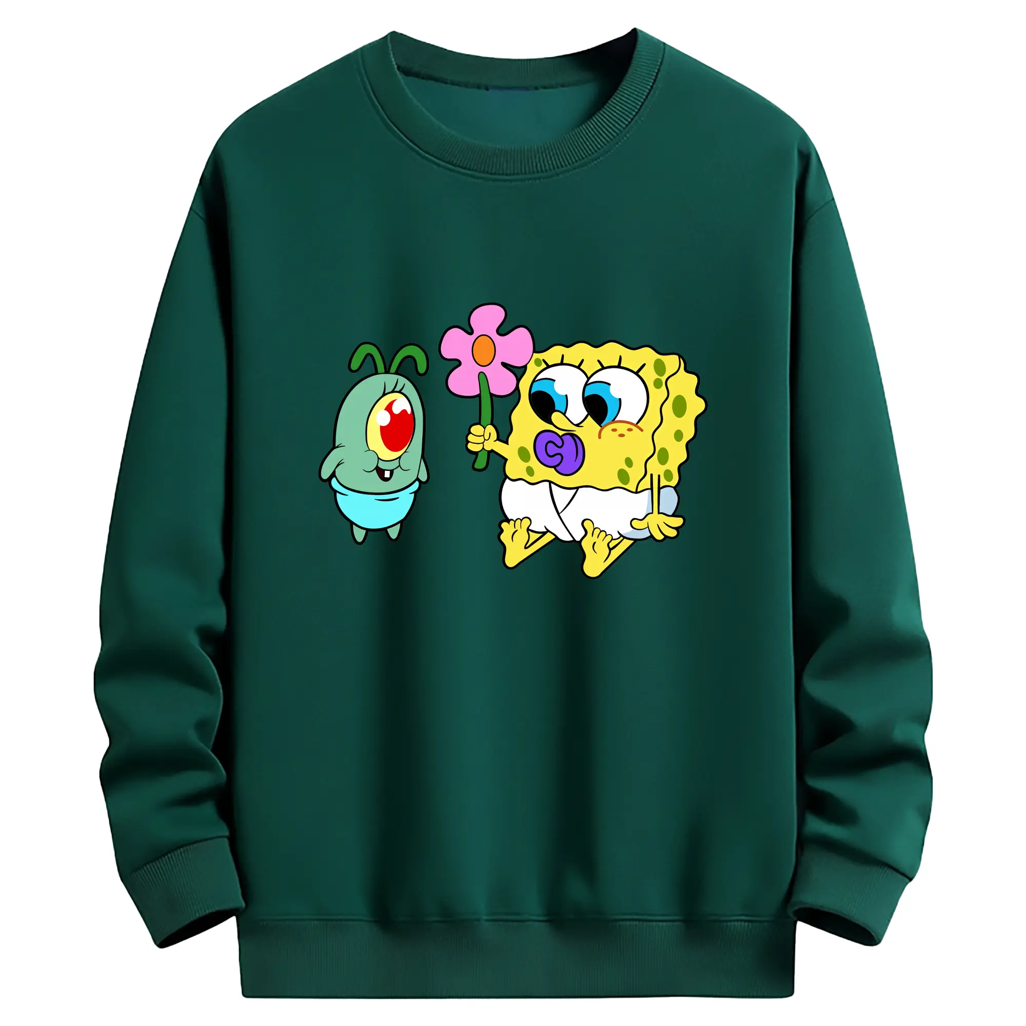 スポンジボブ グッズ プランクトン - 薄手 クルーネック スウェット 裏毛260g · ポリエステル 春秋向け カジュアル 男女兼用 · トレーナー デイリー スポーツ 散歩に最適