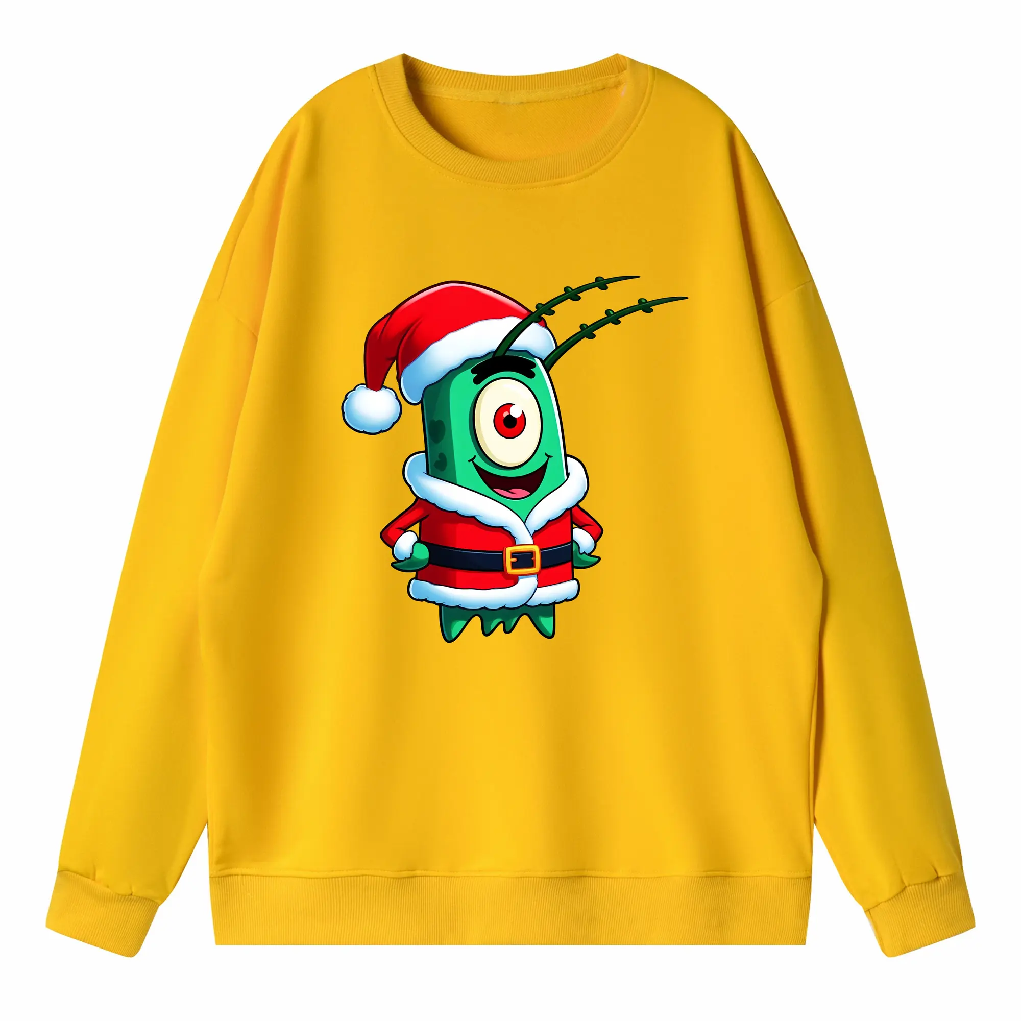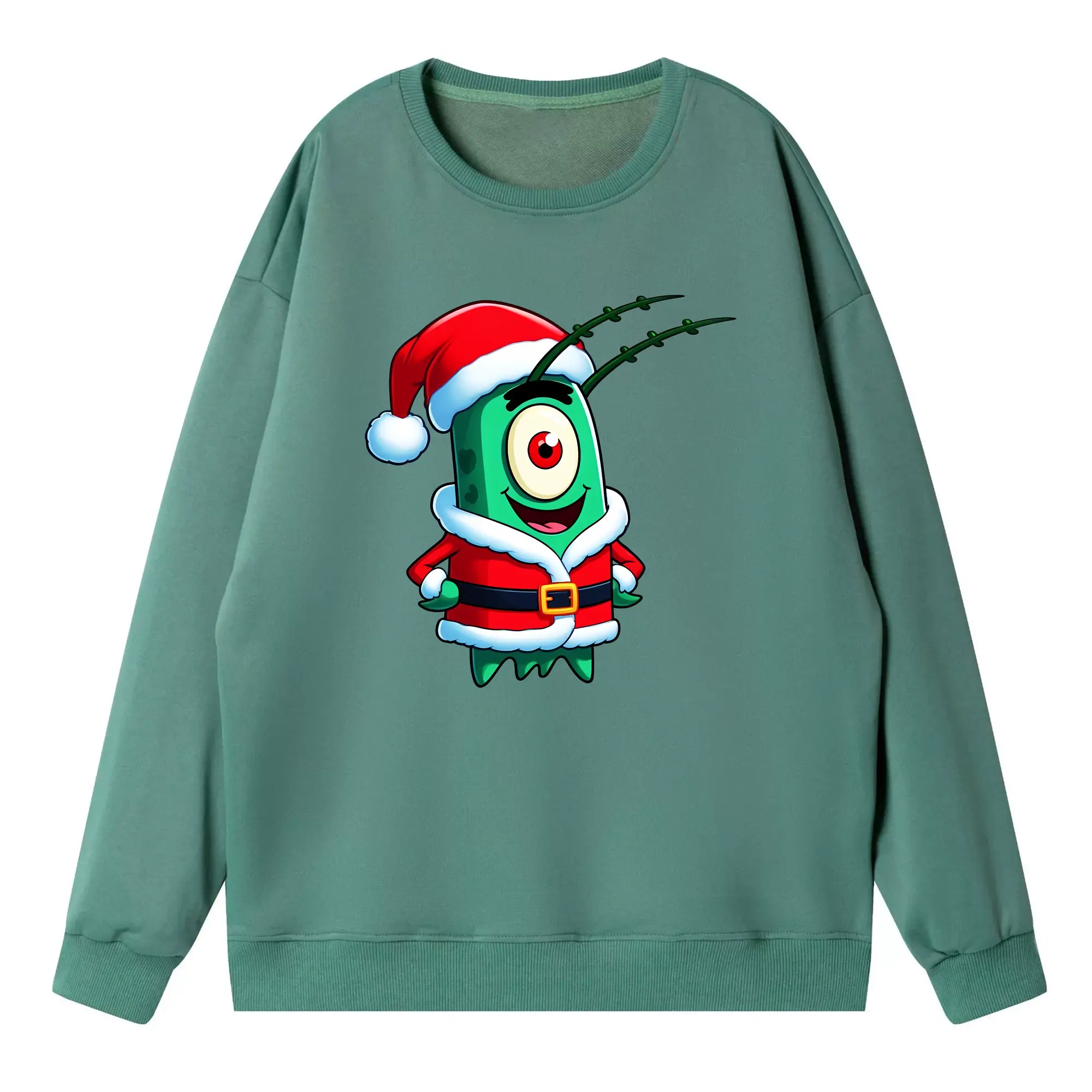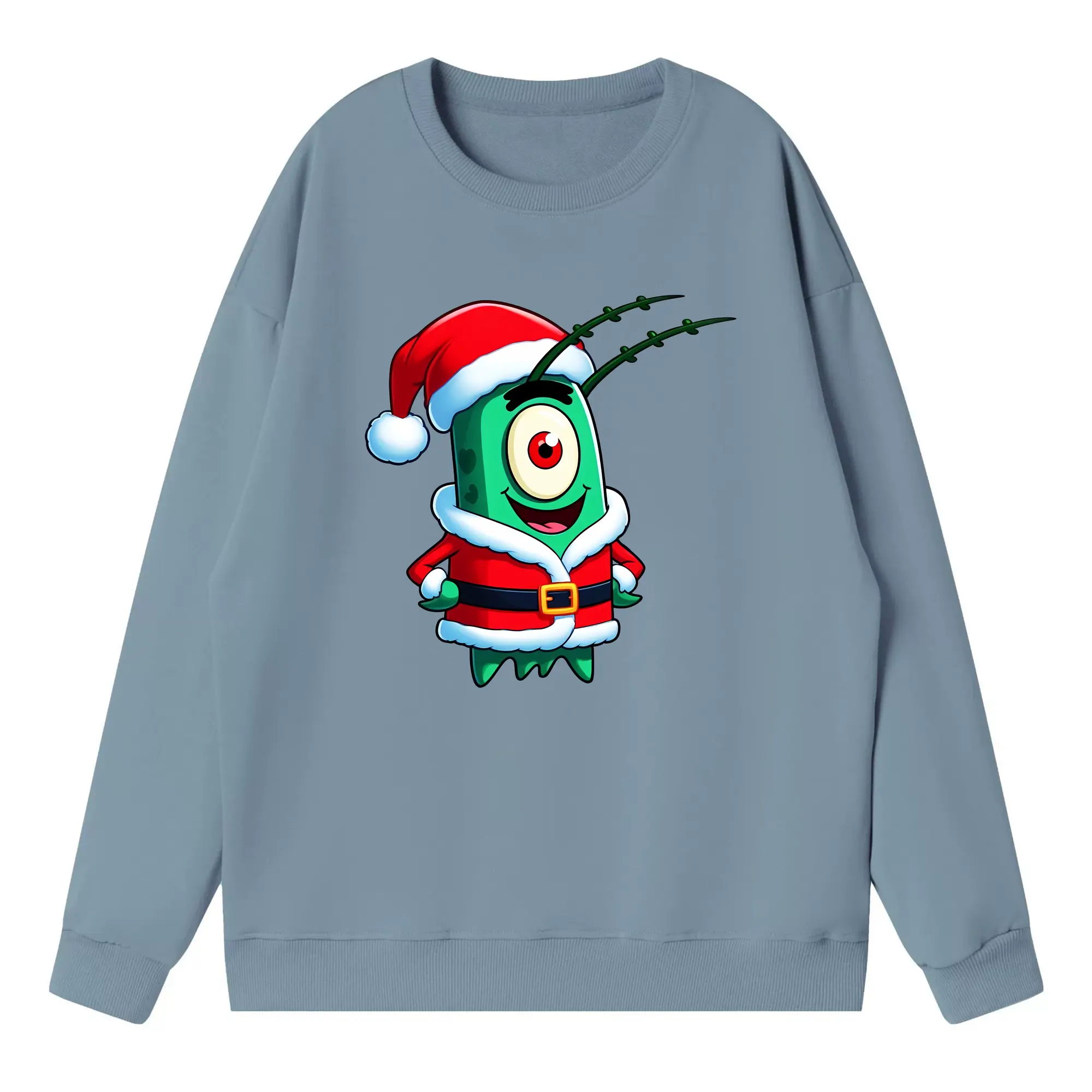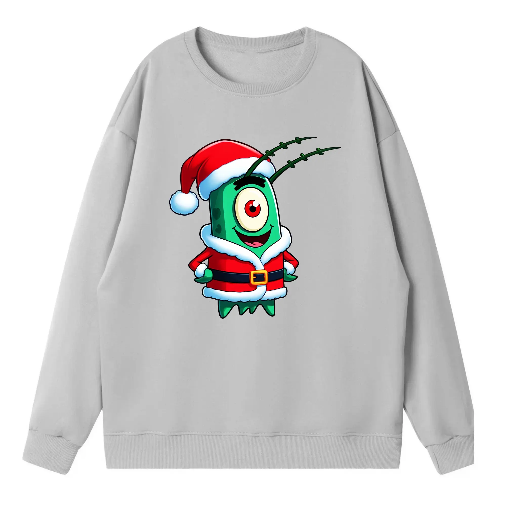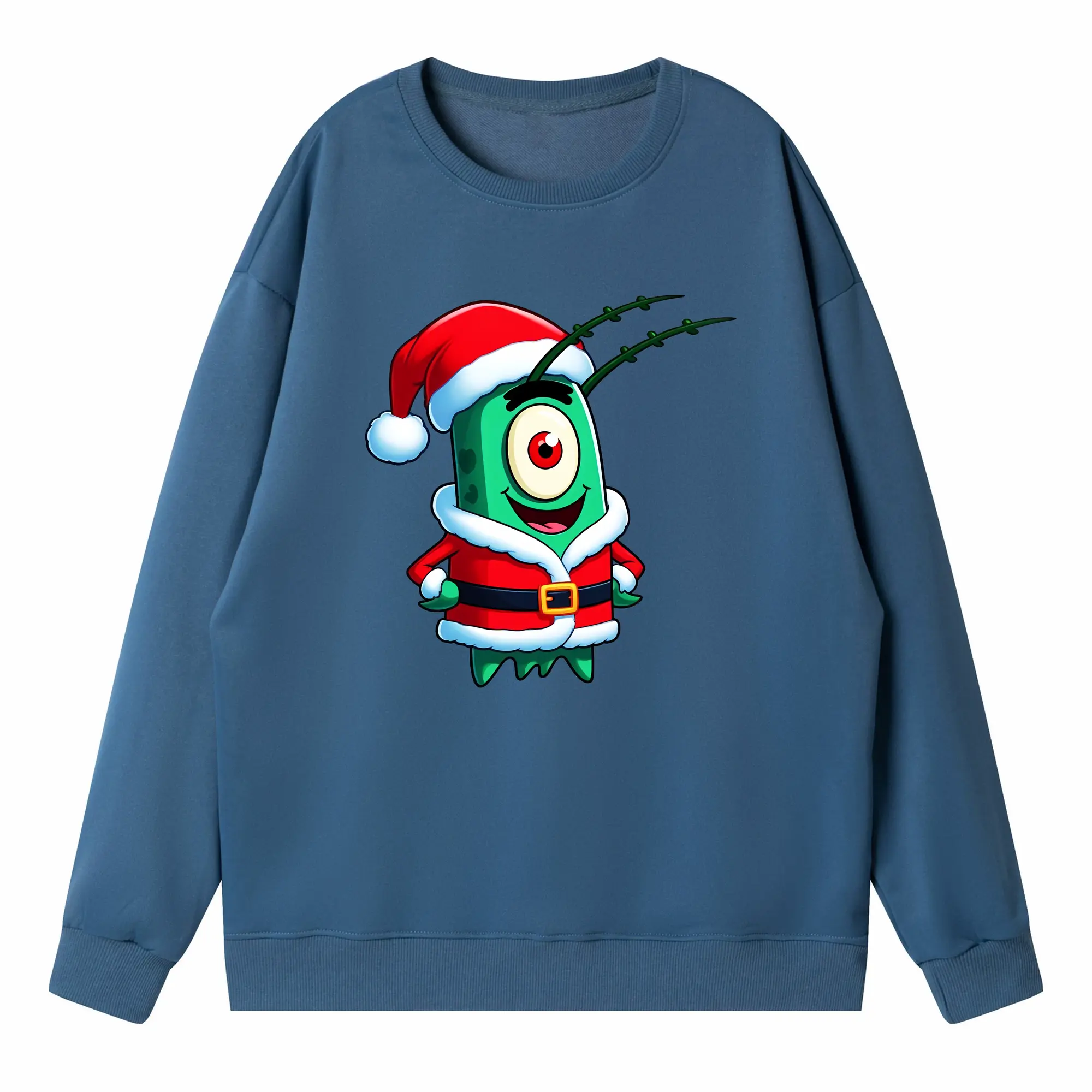 スポンジボブ グッズ プランクトン - 高品質 クルーネック スウェット ・ コットン59% ポリエステル41% ・ ユニセックス 長袖 トレーナー ・ カジュアル デイリー スポーツ 散歩用