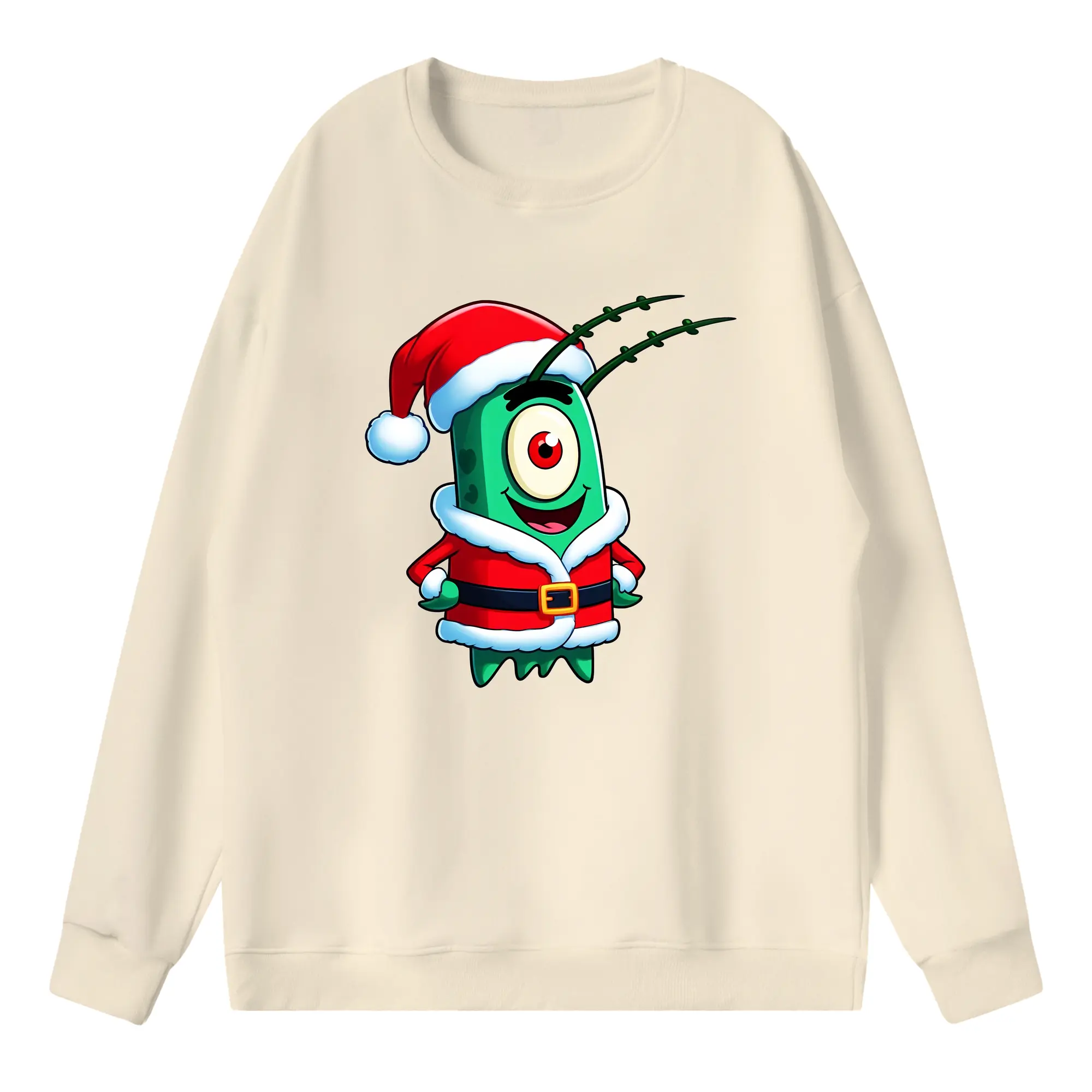 スポンジボブ グッズ プランクトン - 薄手 クルーネック スウェット 裏毛260g · ポリエステル 春秋向け カジュアル 男女兼用 · トレーナー デイリー スポーツ 散歩に最適