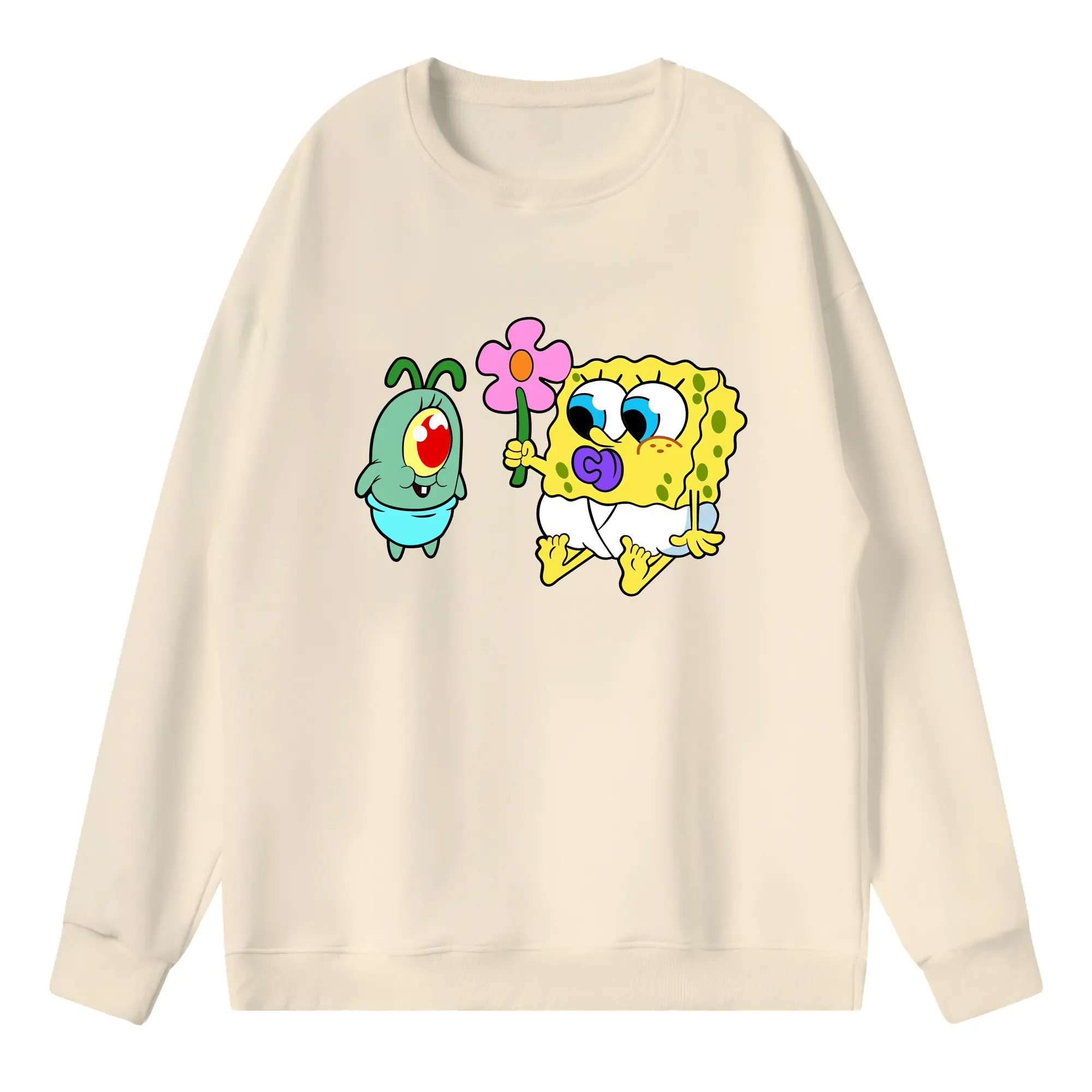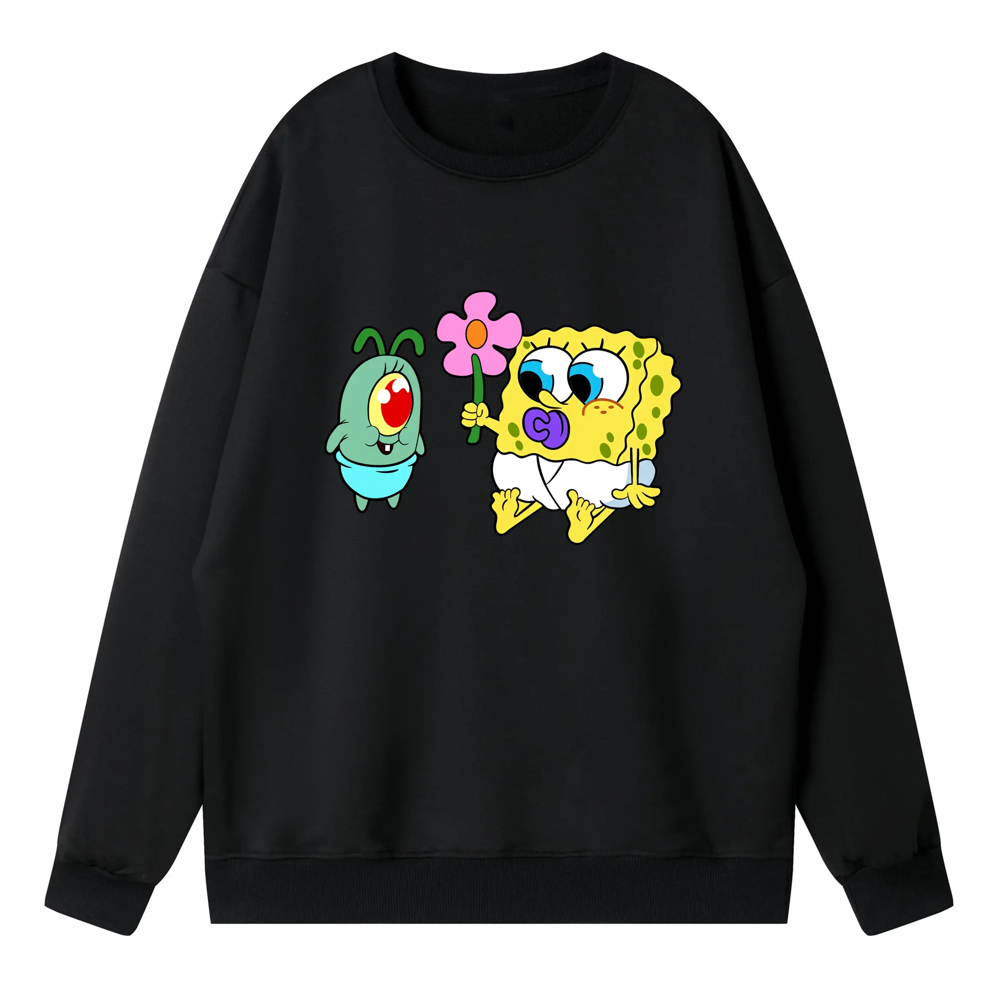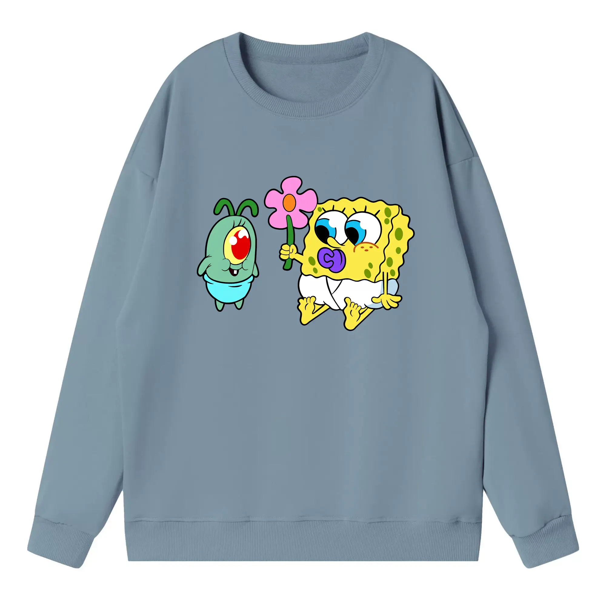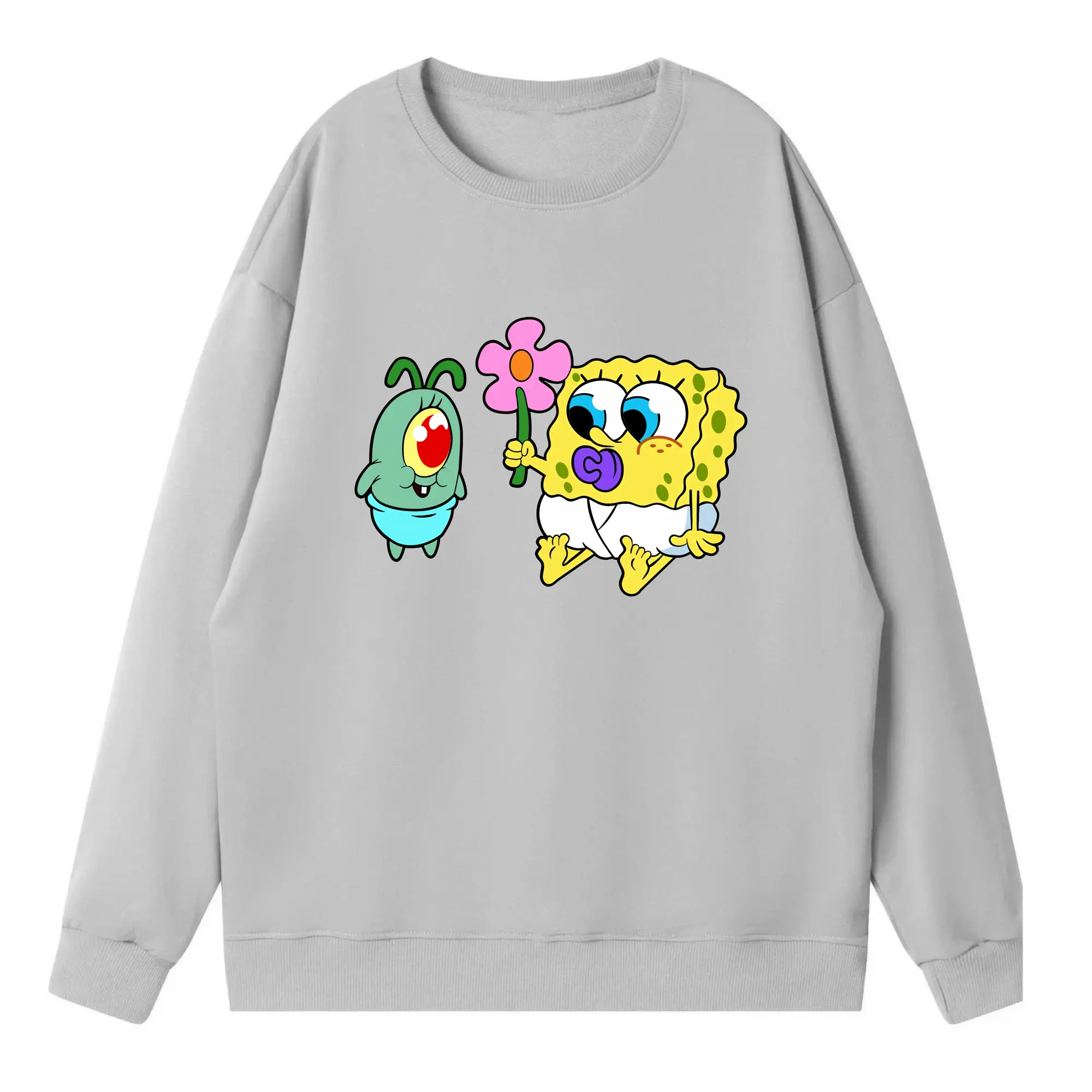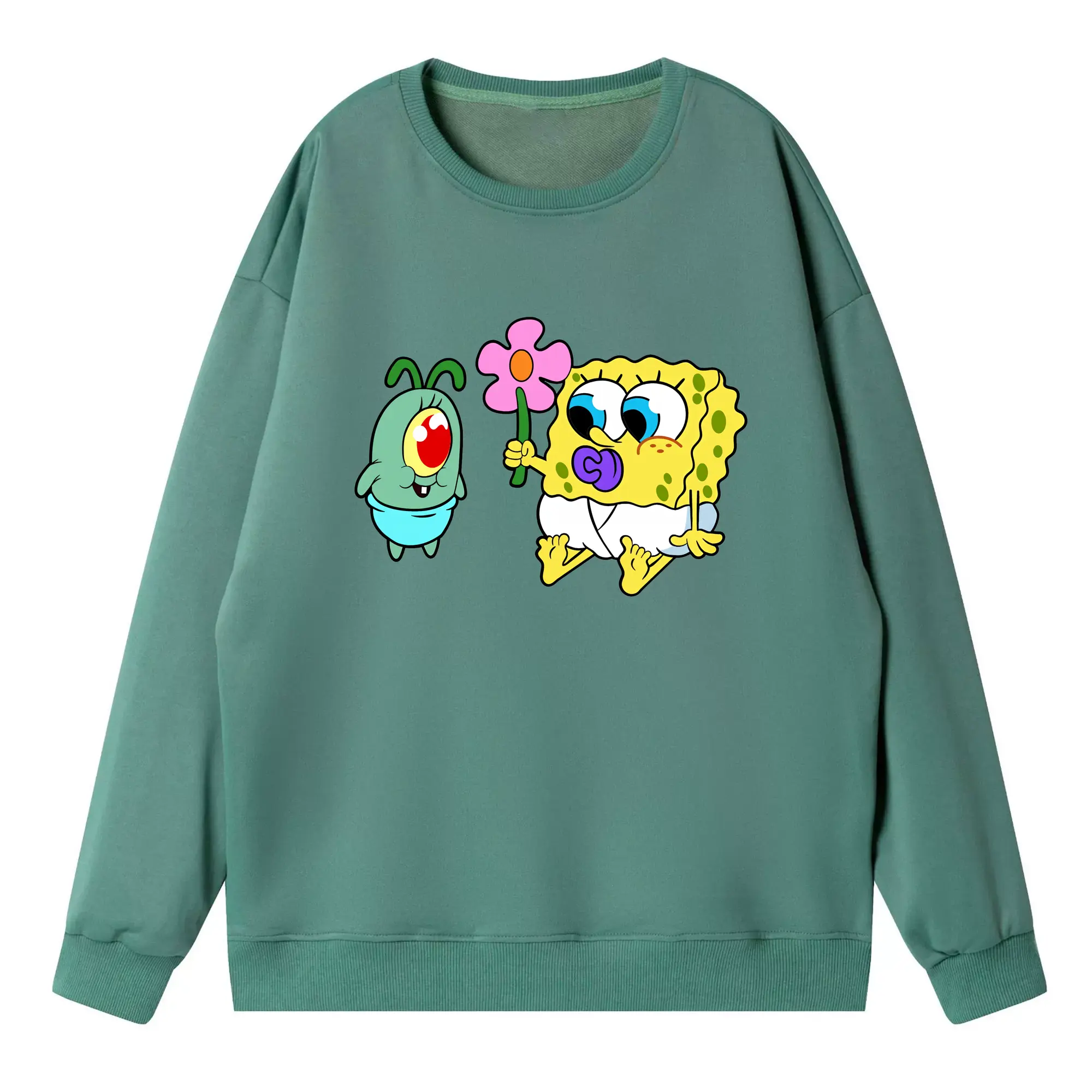 スポンジボブ グッズ プランクトン - 高品質 クルーネック スウェット ・ コットン59% ポリエステル41% ・ ユニセックス 長袖 トレーナー ・ カジュアル デイリー スポーツ 散歩用