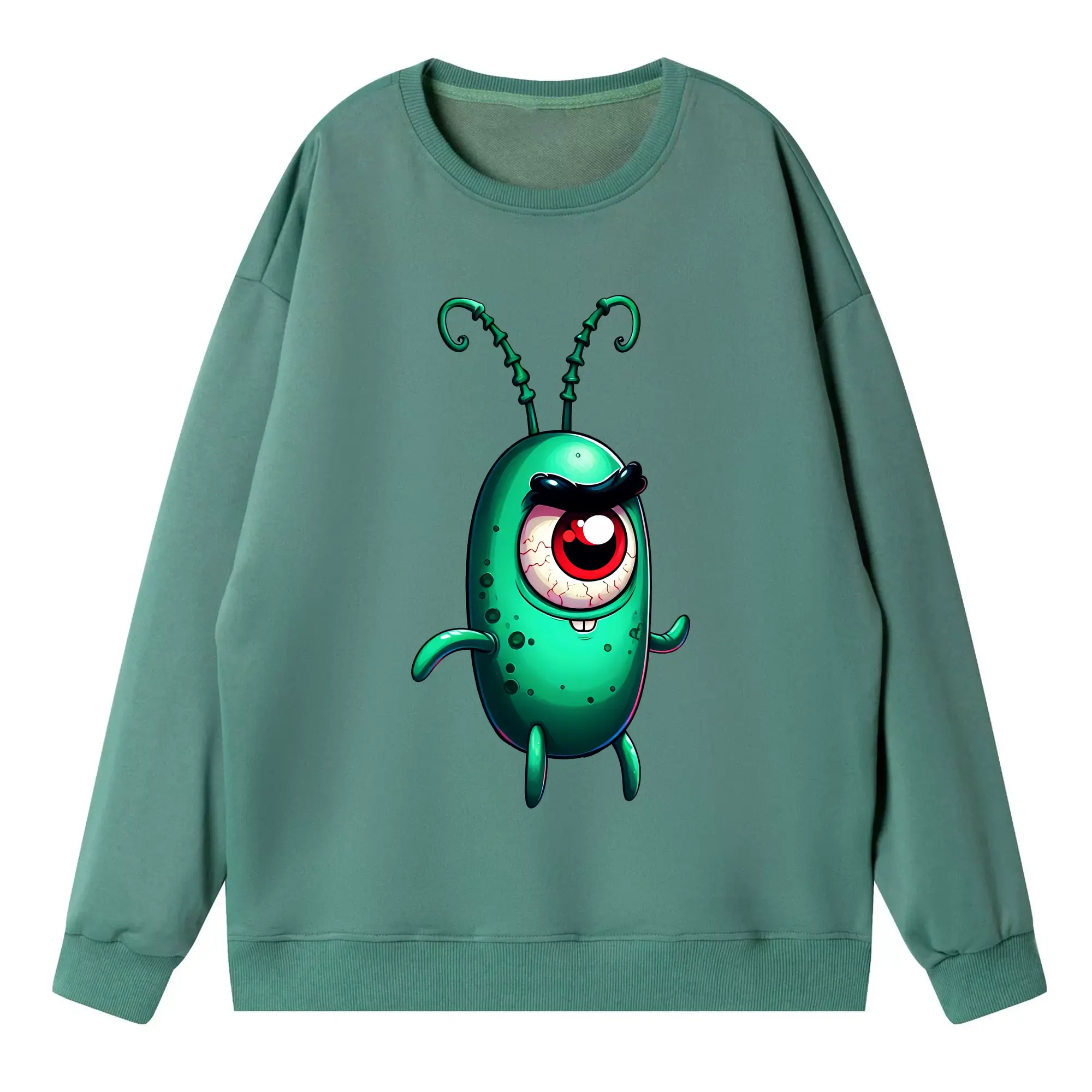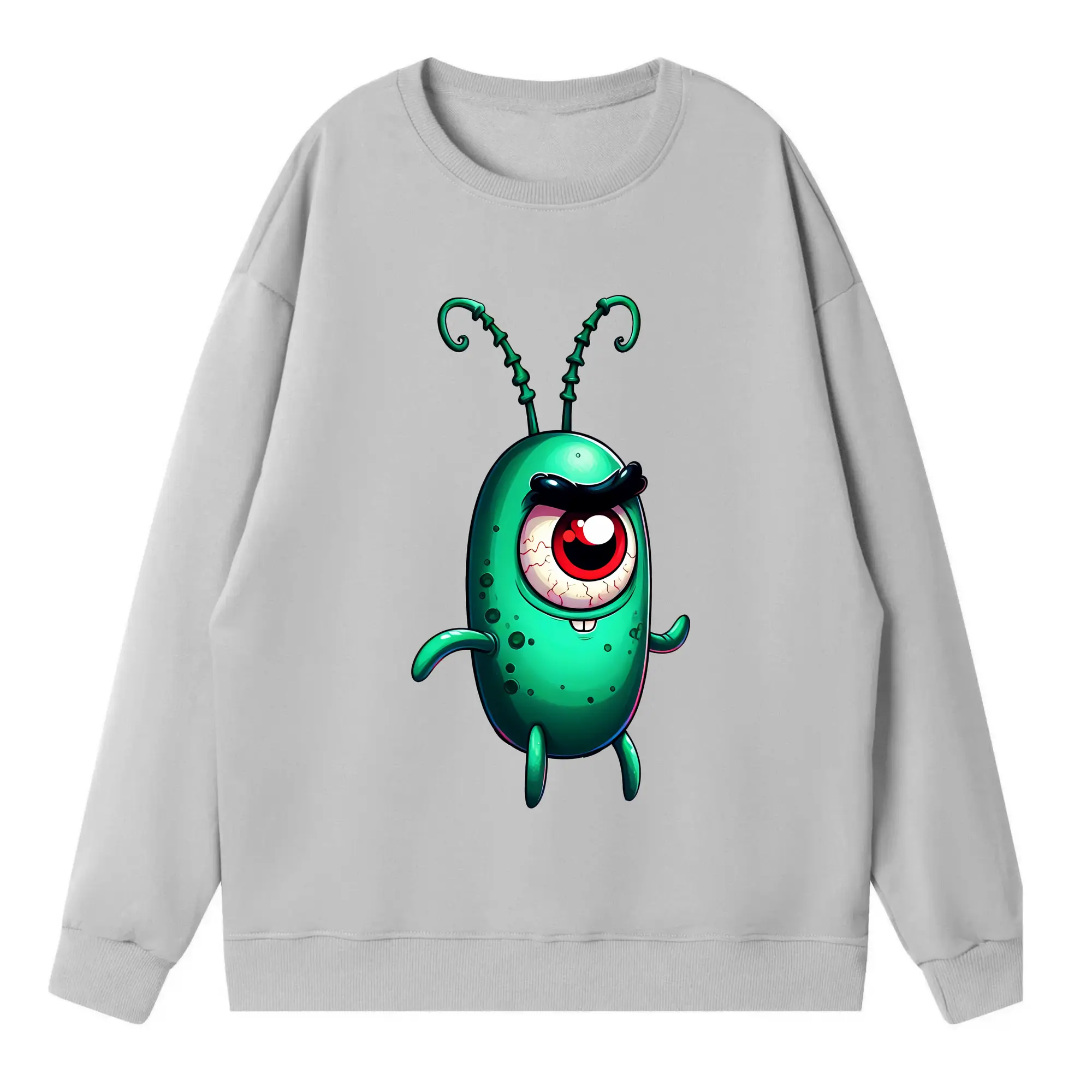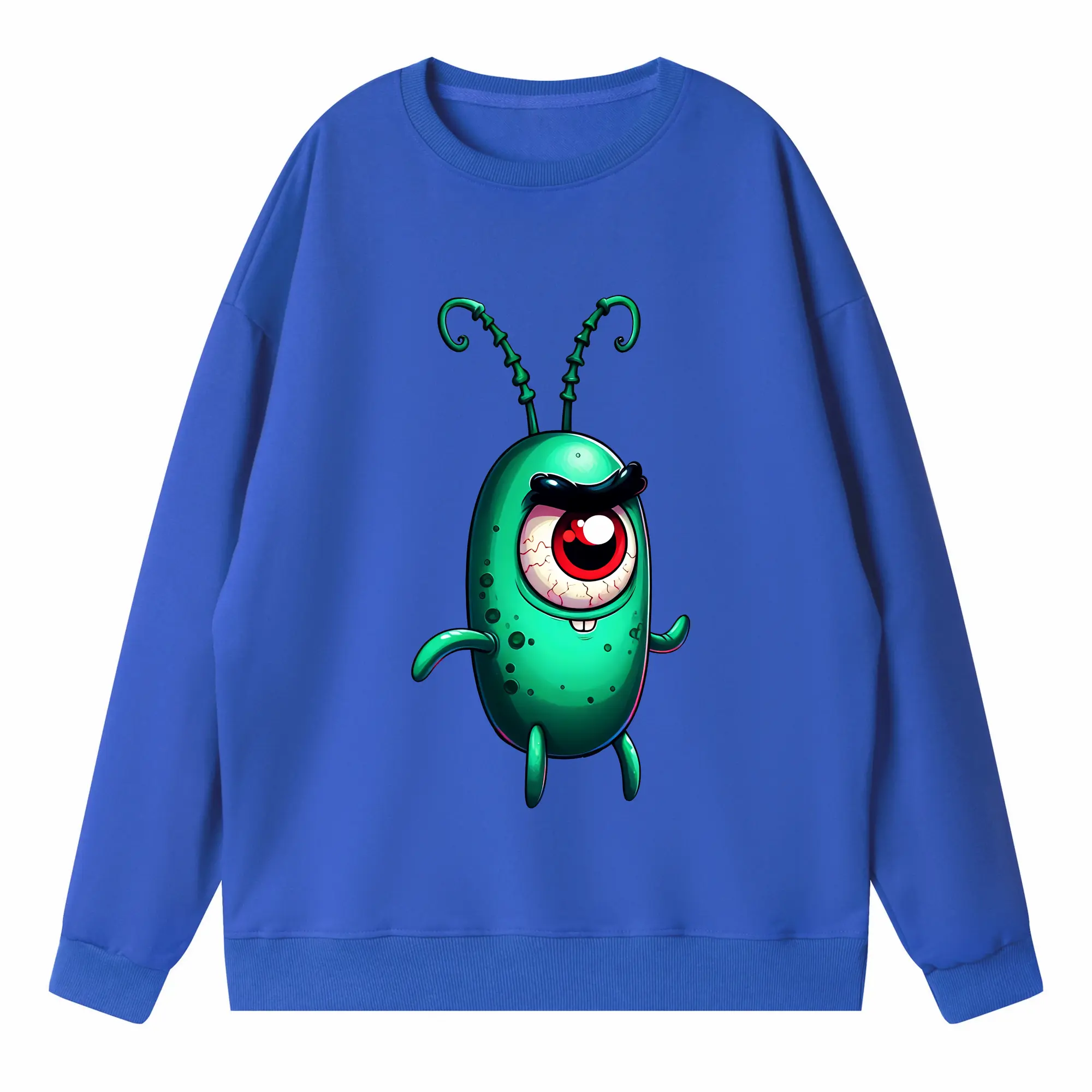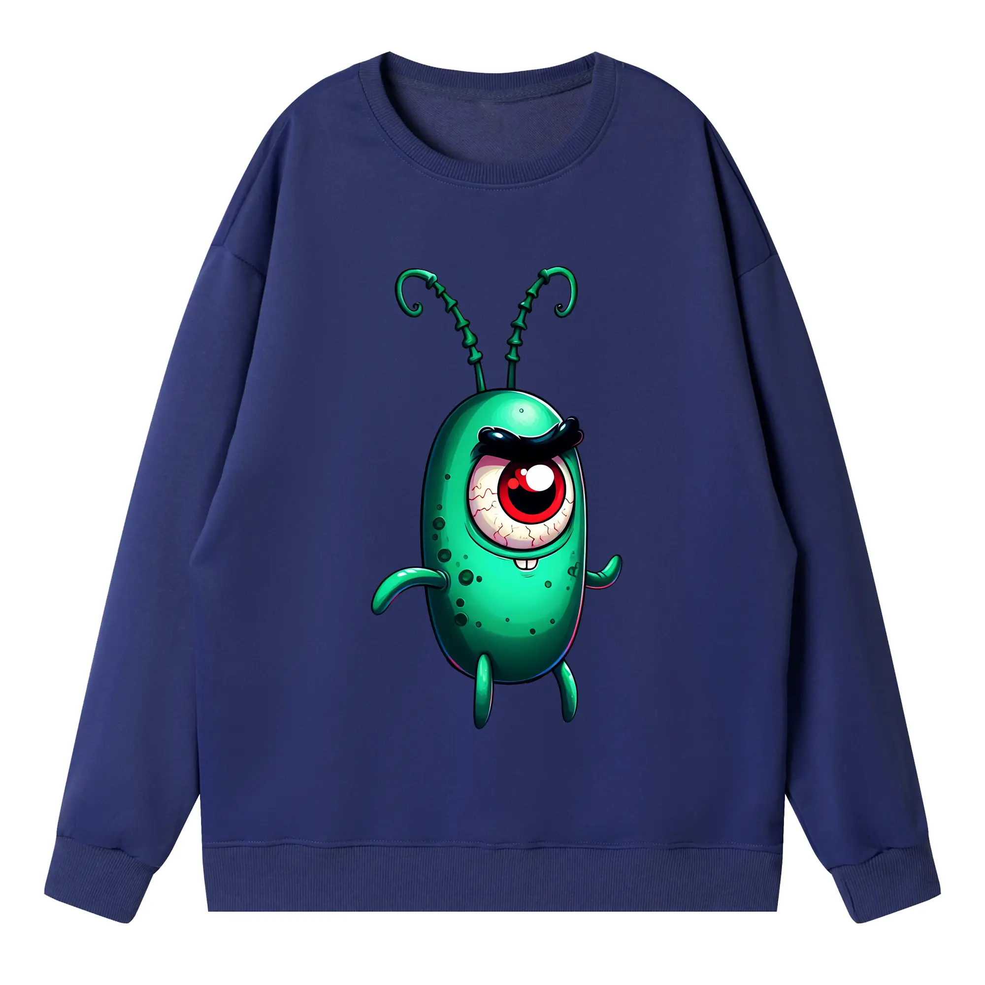 スポンジボブ グッズ プランクトン - 高品質 クルーネック スウェット ・ コットン59% ポリエステル41% ・ ユニセックス 長袖 トレーナー ・ カジュアル デイリー スポーツ 散歩用