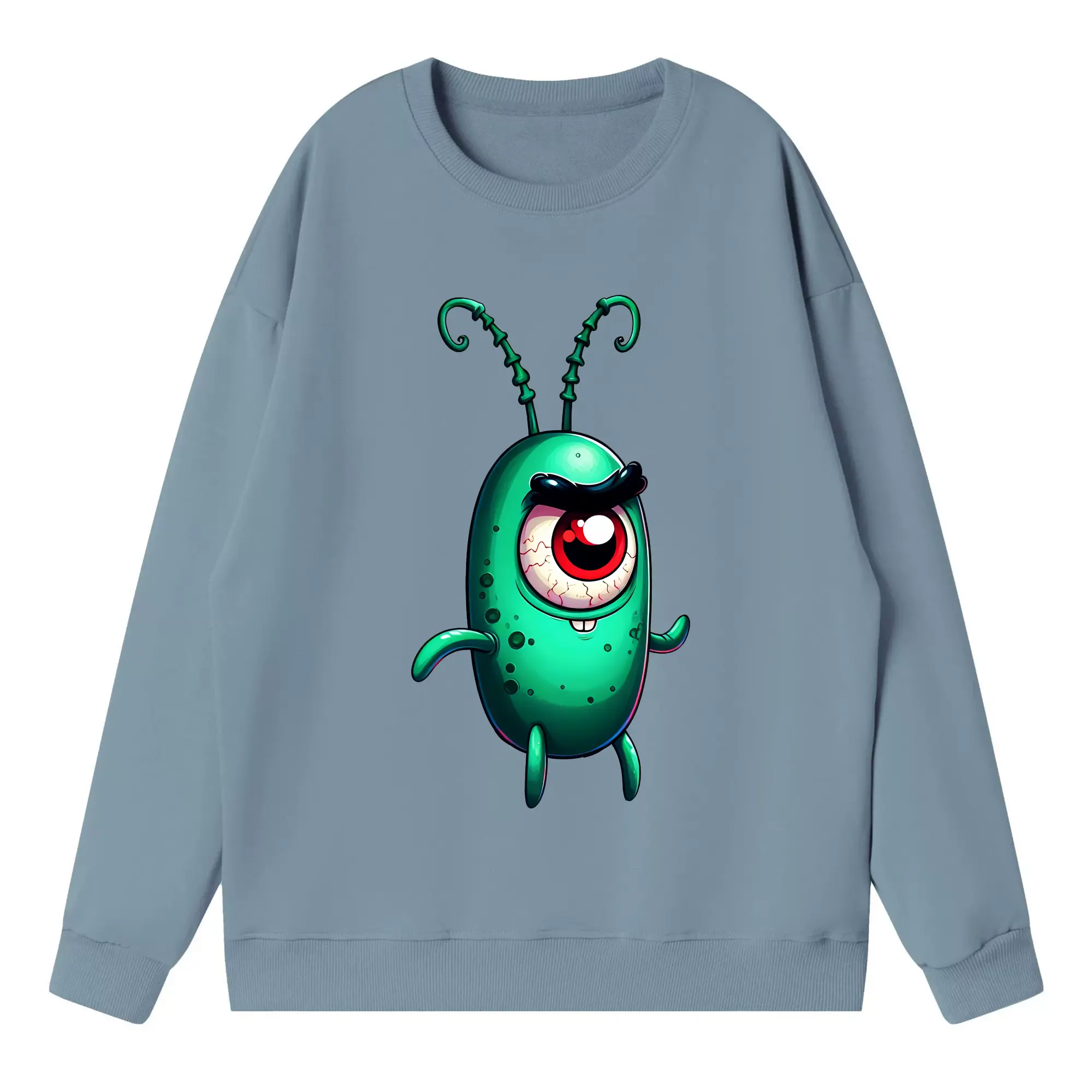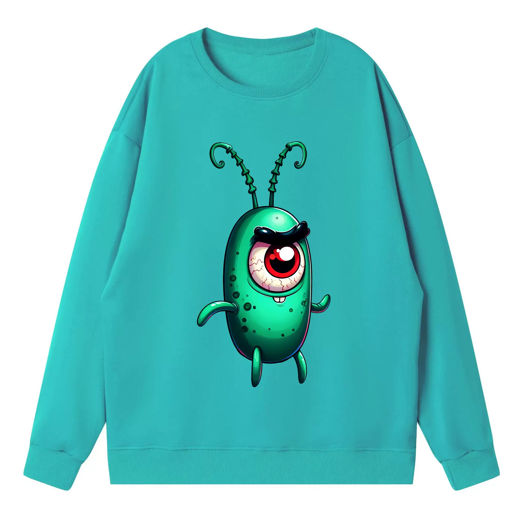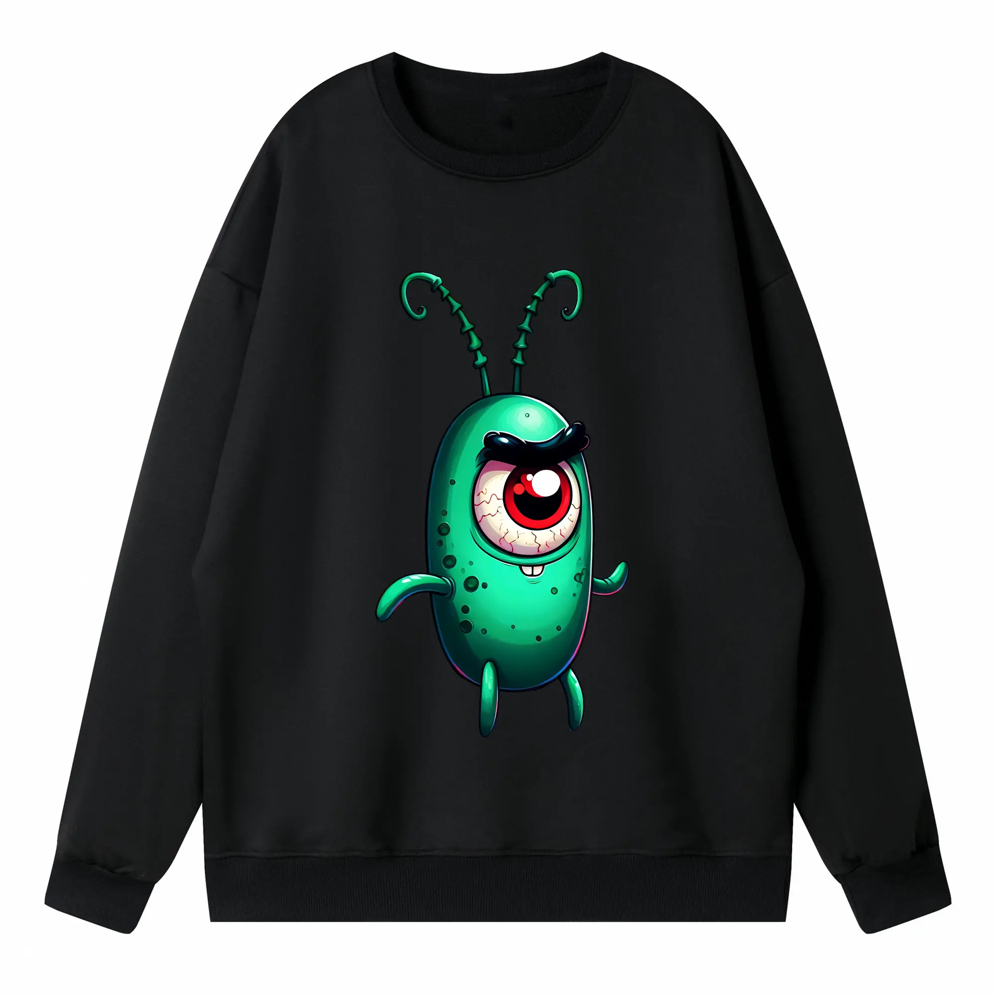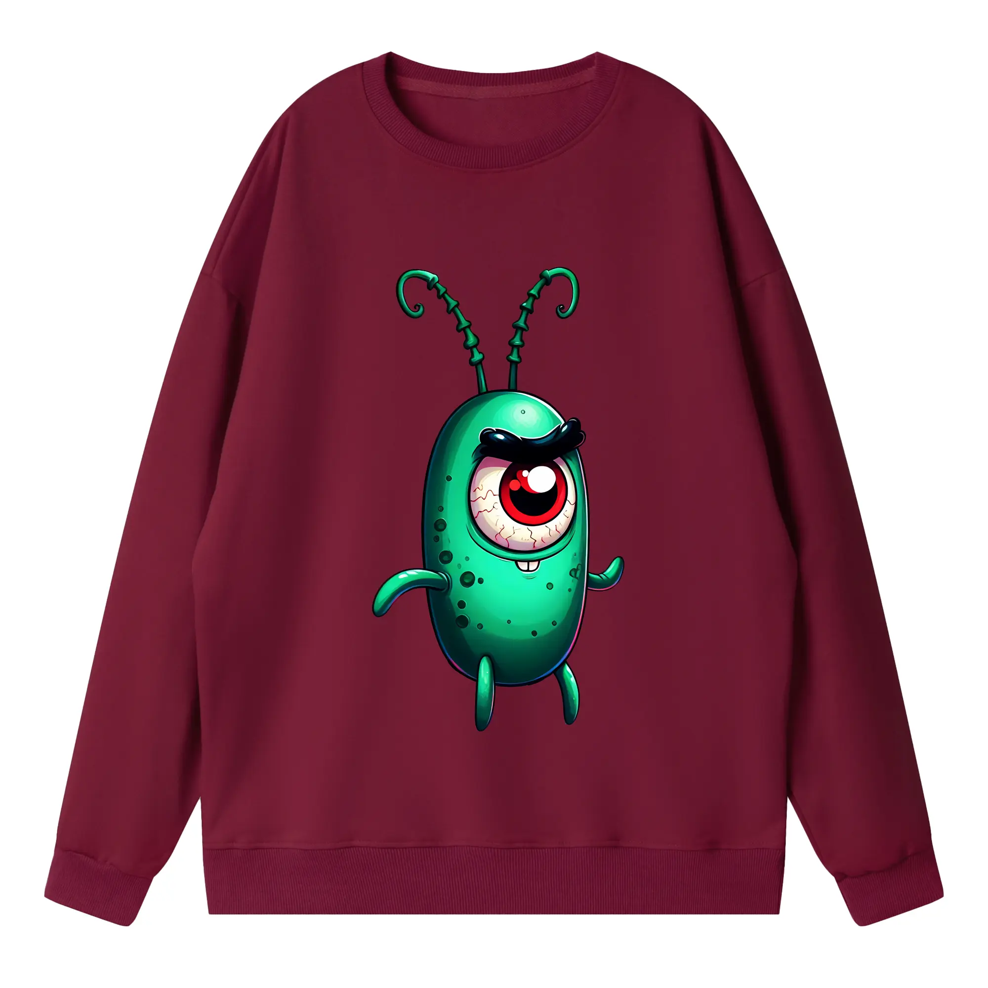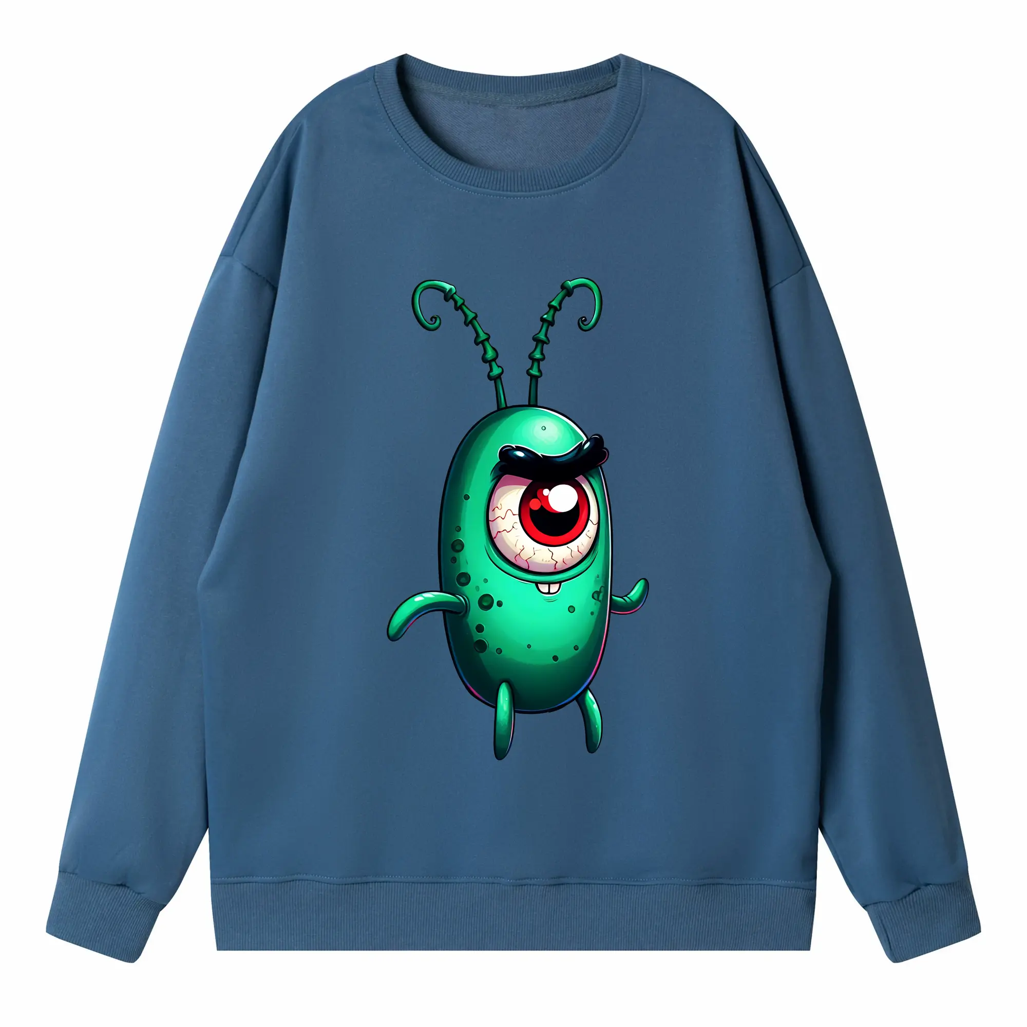 スポンジボブ グッズ プランクトン - 高品質 クルーネック スウェット ・ コットン59% ポリエステル41% ・ ユニセックス 長袖 トレーナー ・ カジュアル デイリー スポーツ 散歩用