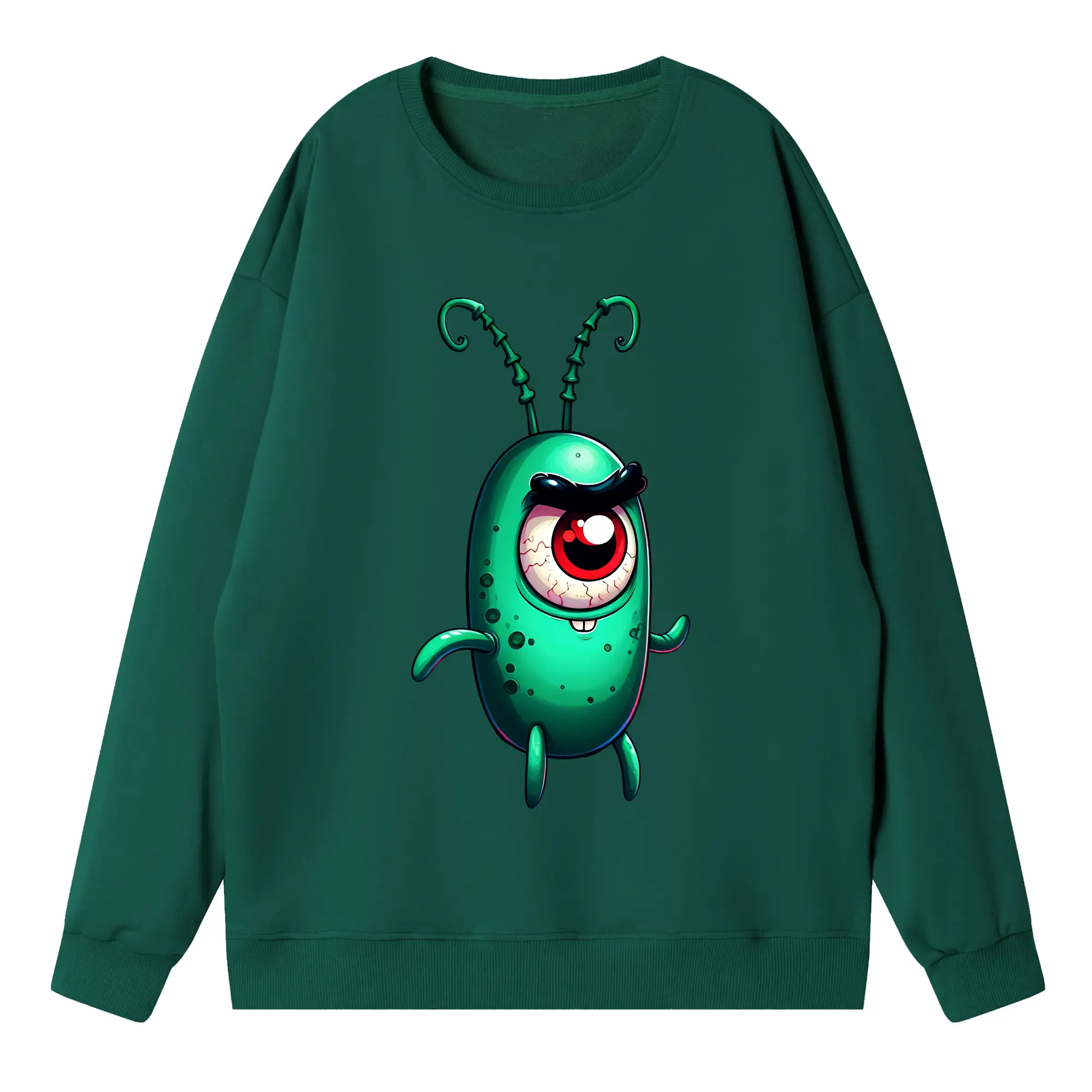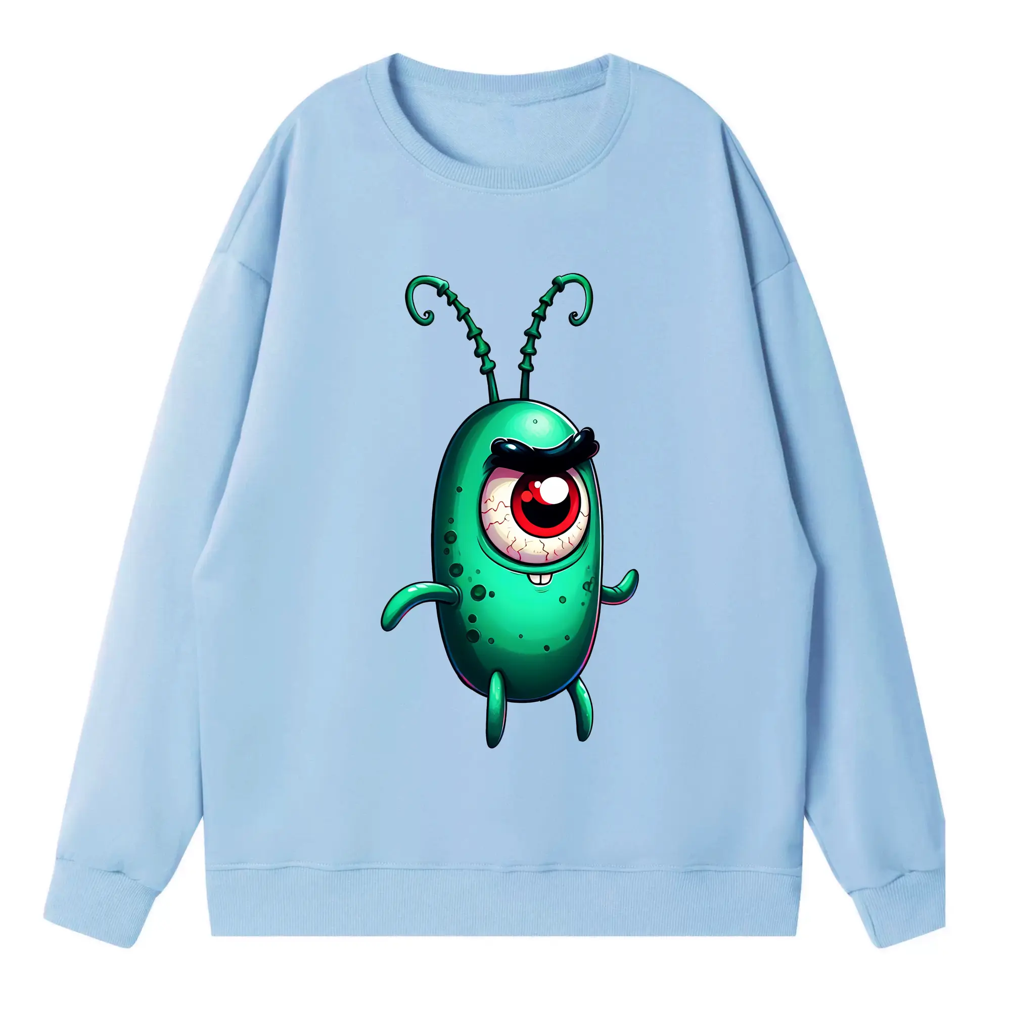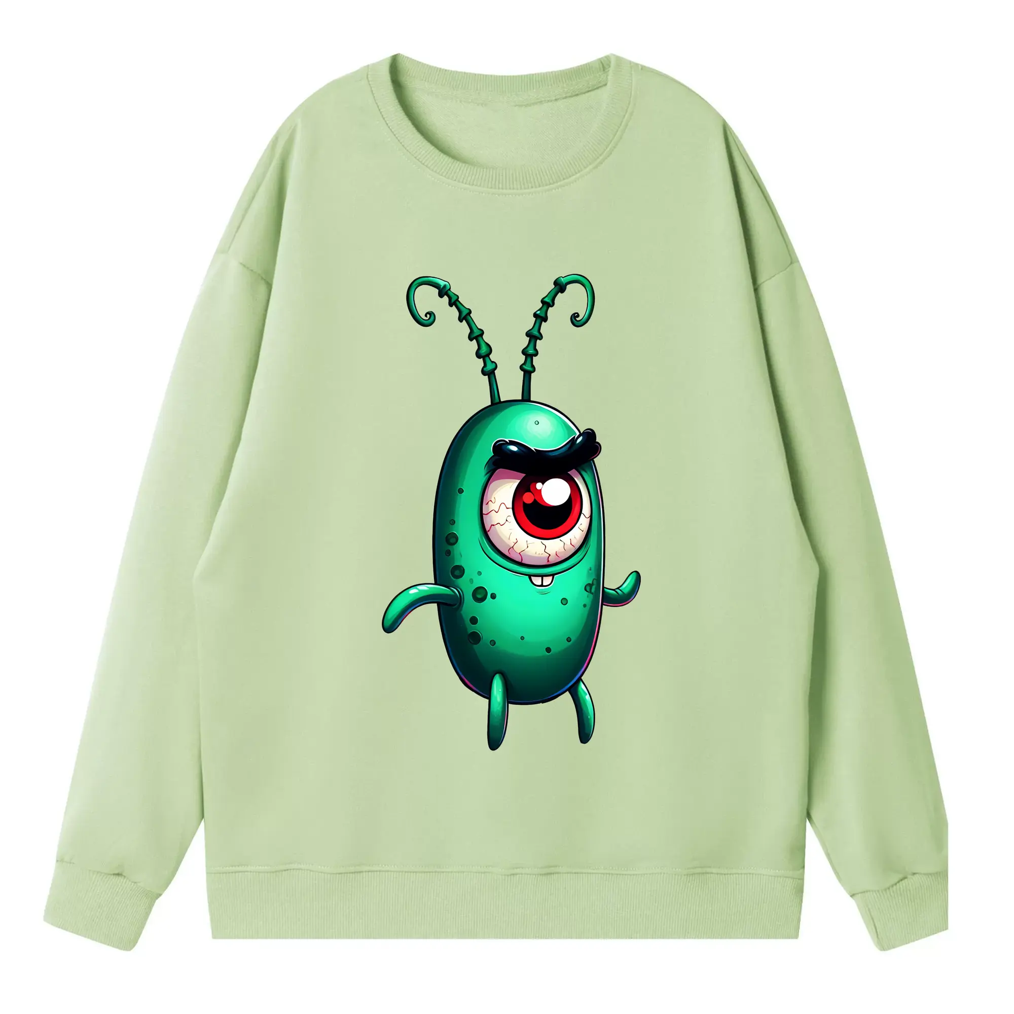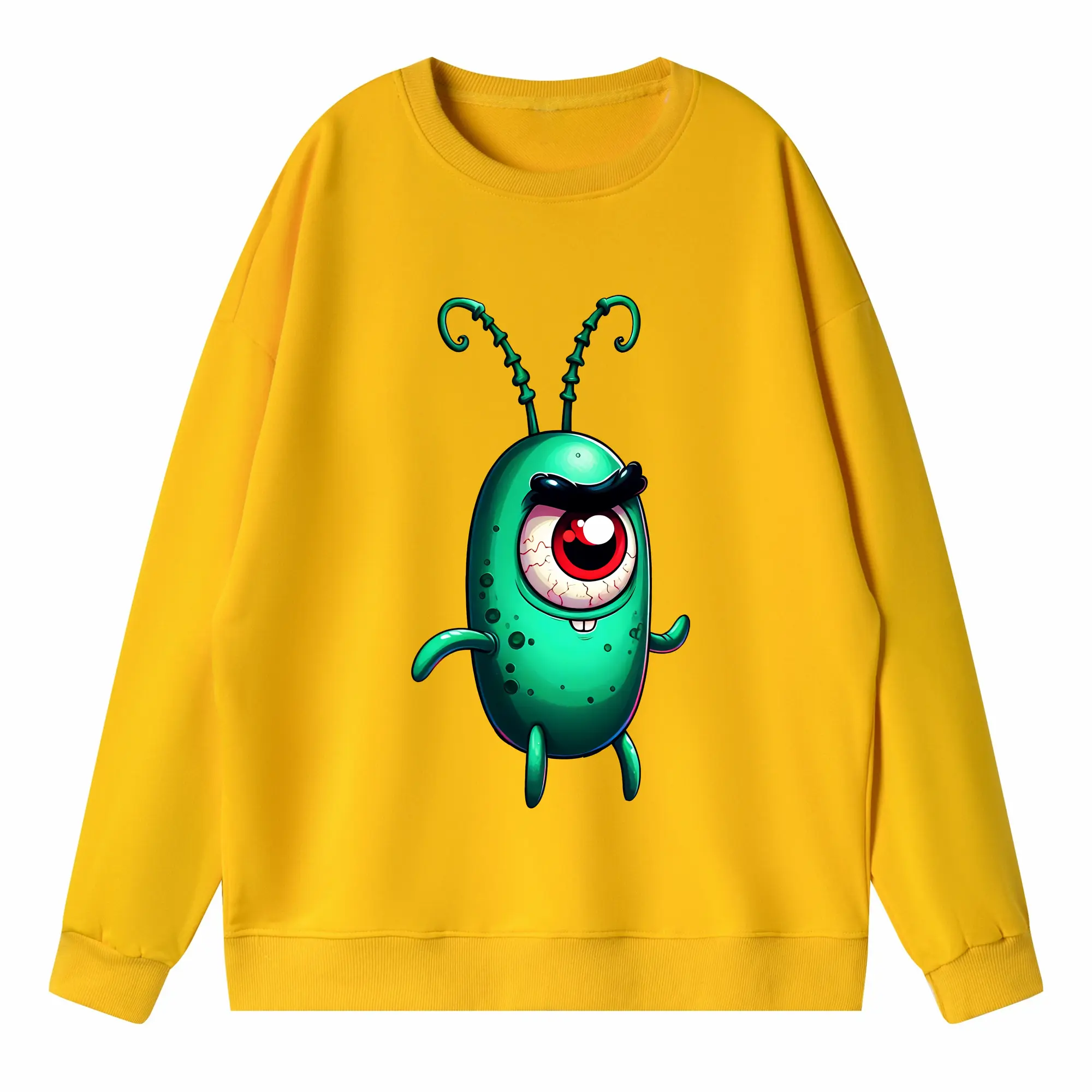 スポンジボブ グッズ プランクトン - 高品質 クルーネック スウェット ・ コットン59% ポリエステル41% ・ ユニセックス 長袖 トレーナー ・ カジュアル デイリー スポーツ 散歩用