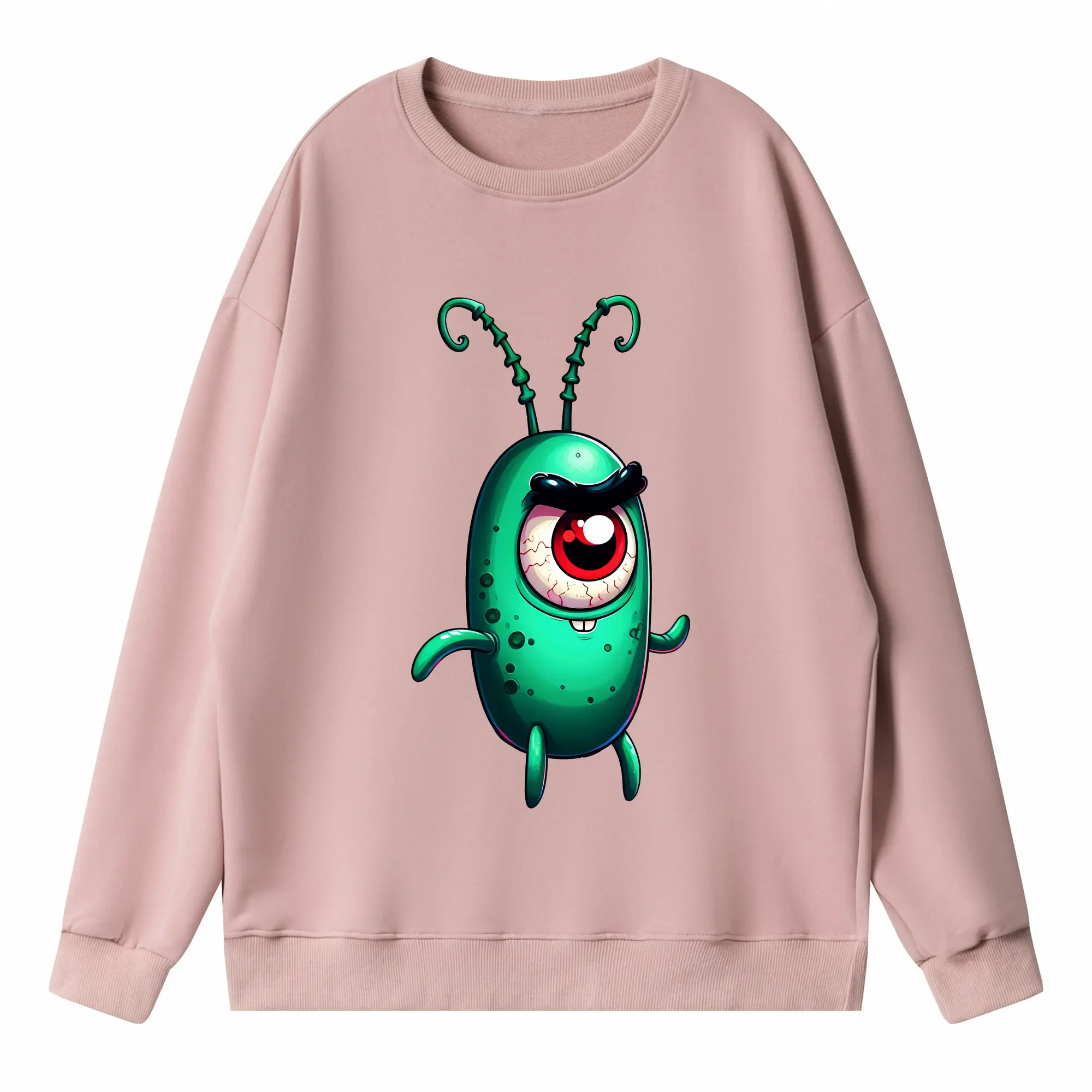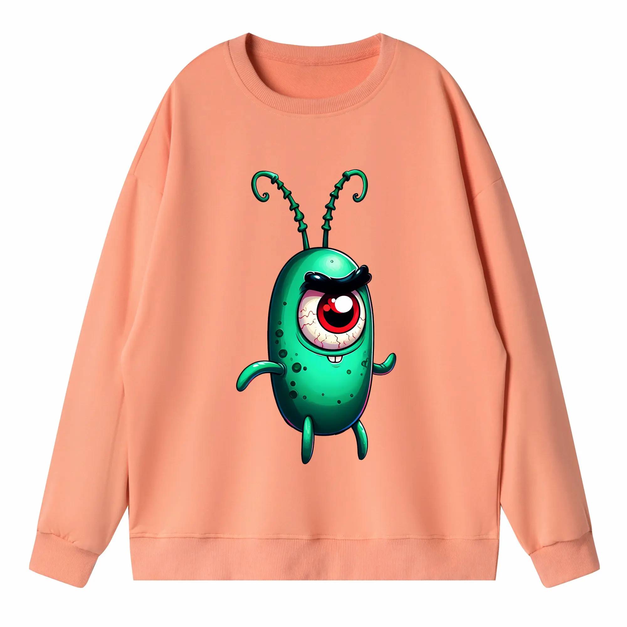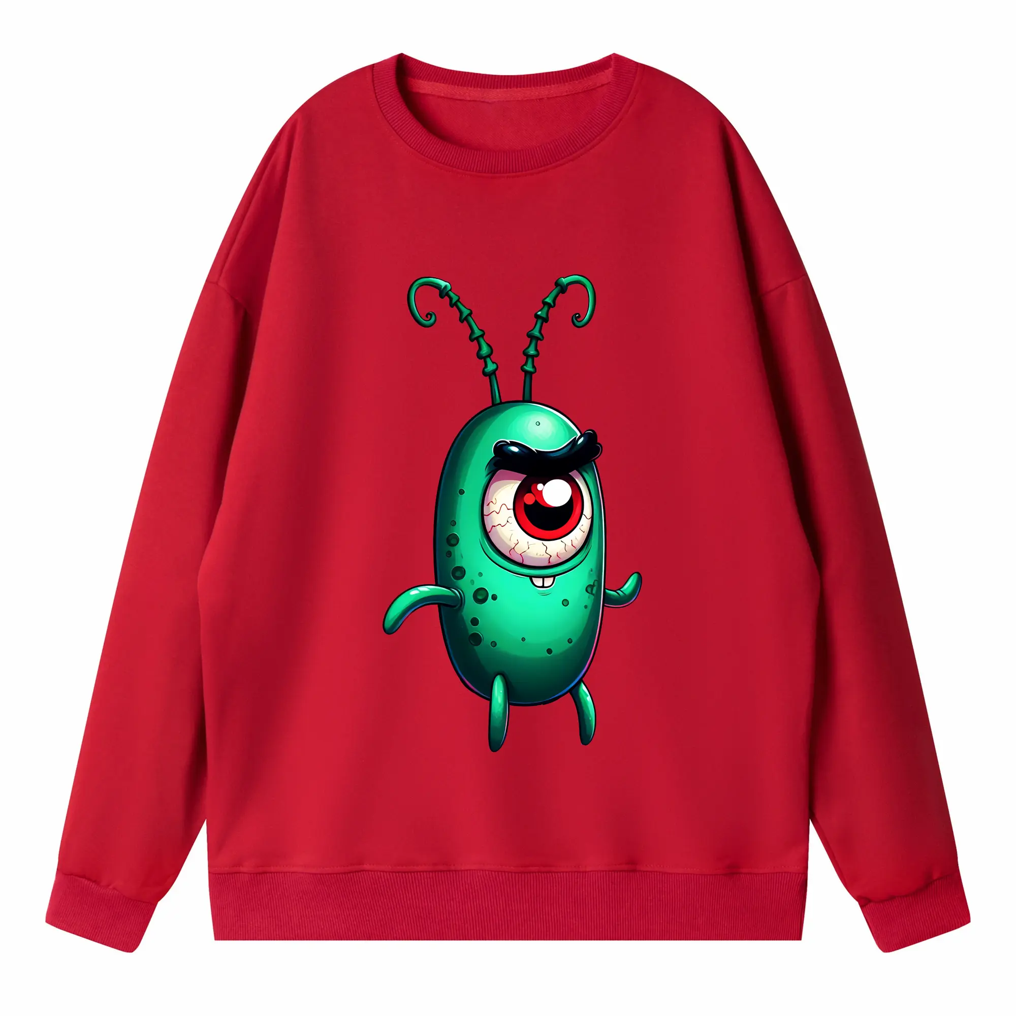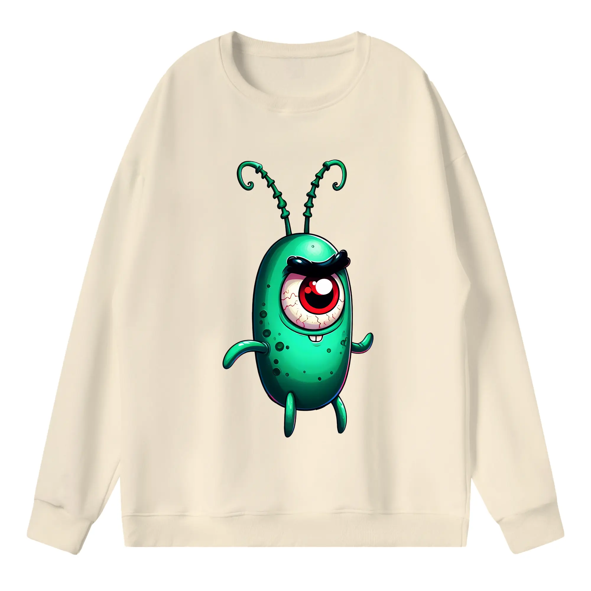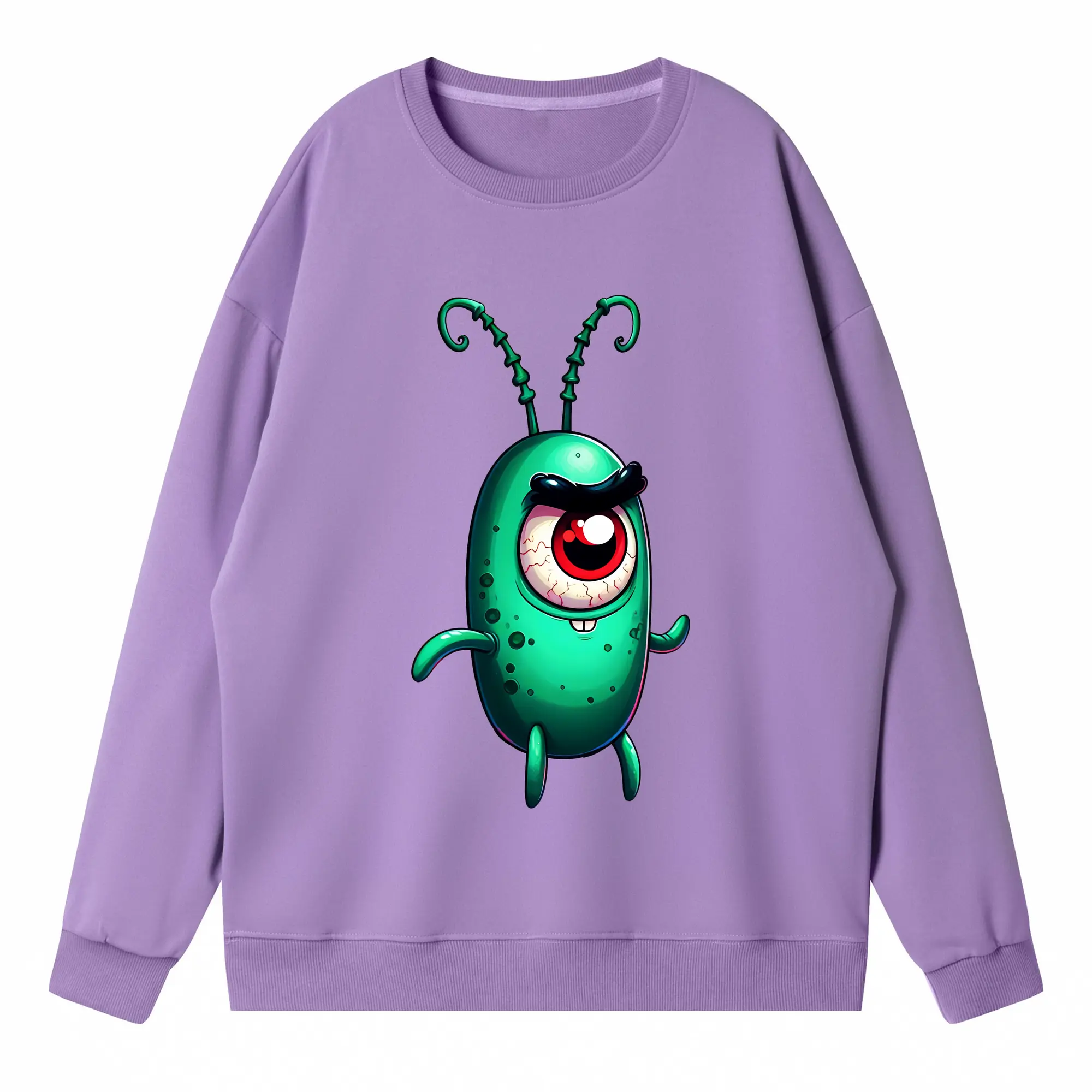 スポンジボブ グッズ プランクトン - 高品質 クルーネック スウェット ・ コットン59% ポリエステル41% ・ ユニセックス 長袖 トレーナー ・ カジュアル デイリー スポーツ 散歩用