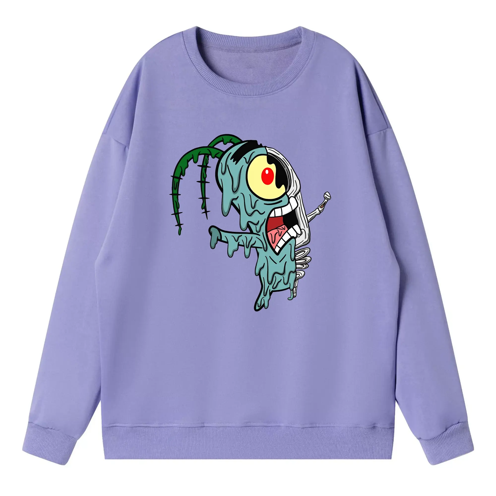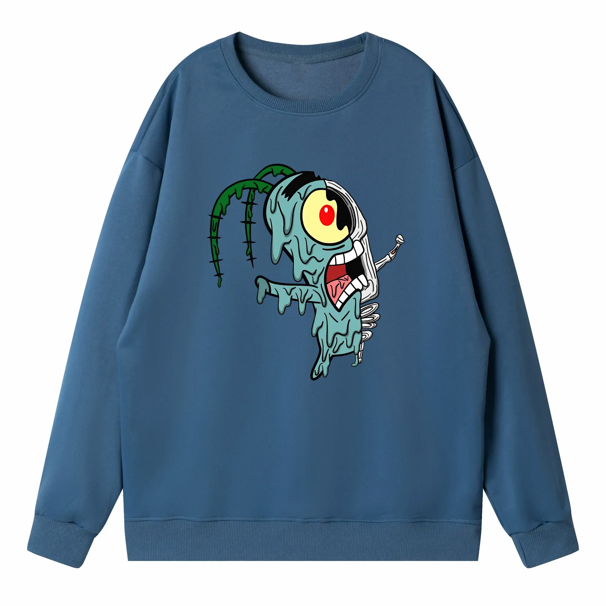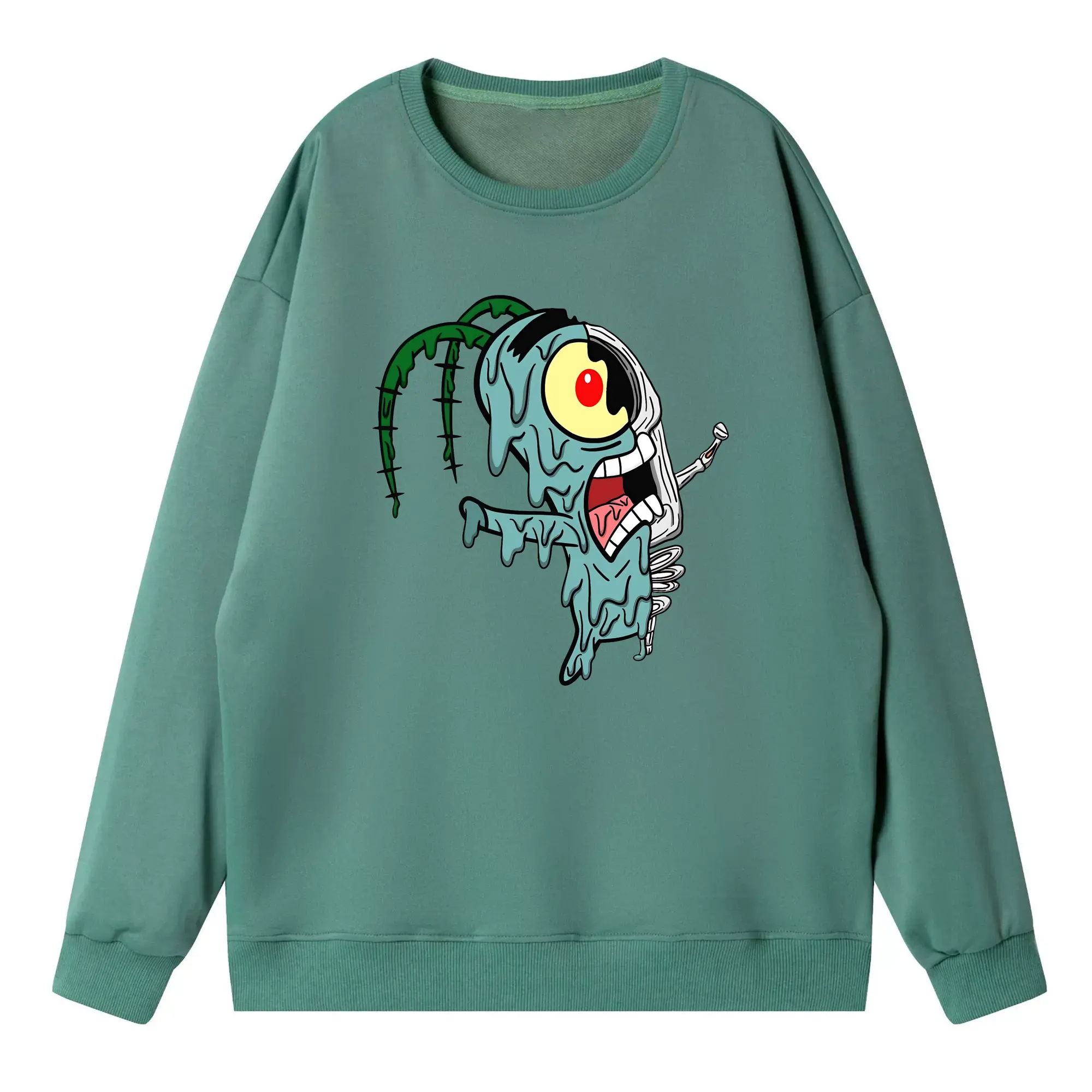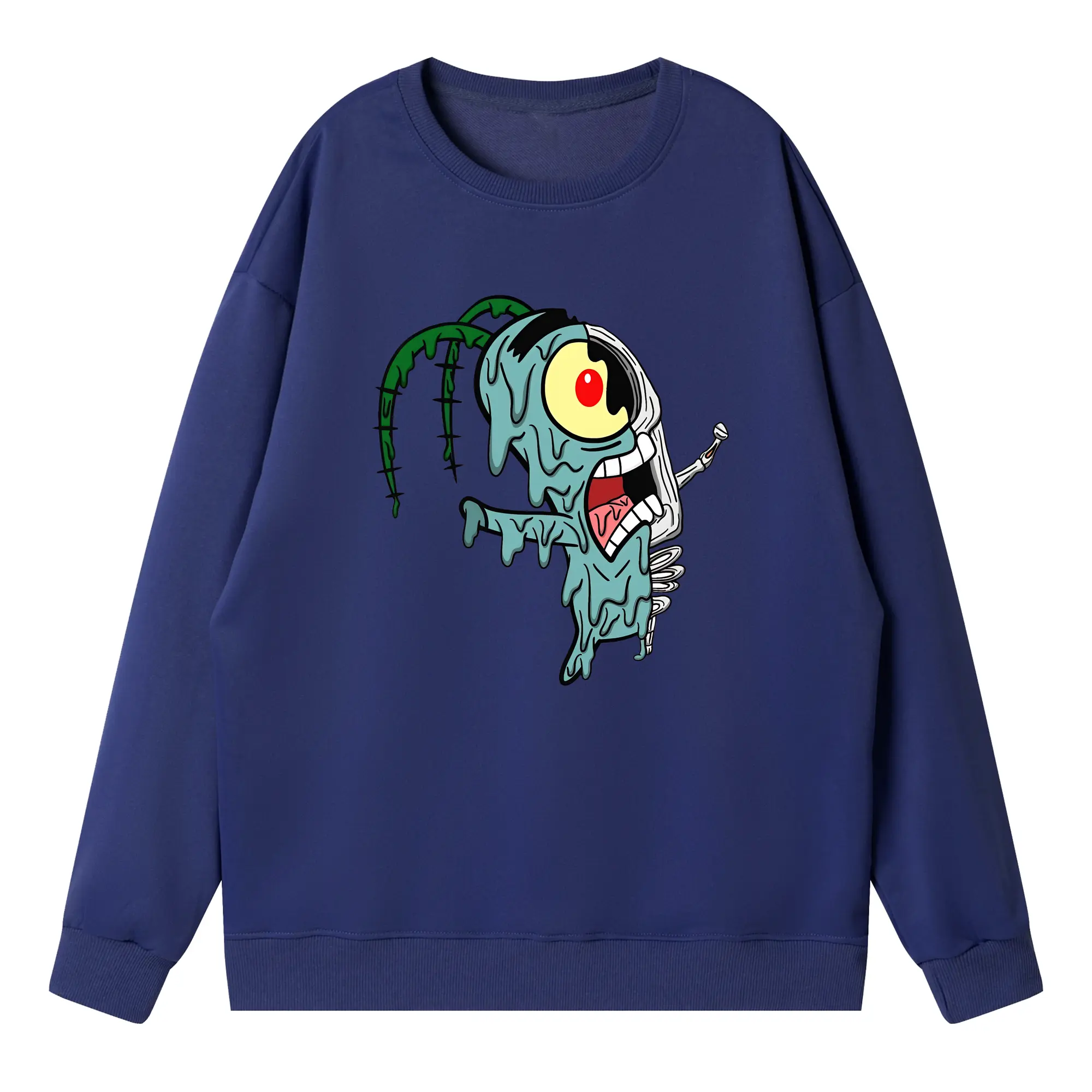 スポンジボブ グッズ プランクトン - 高品質 クルーネック スウェット ・ コットン59% ポリエステル41% ・ ユニセックス 長袖 トレーナー ・ カジュアル デイリー スポーツ 散歩用