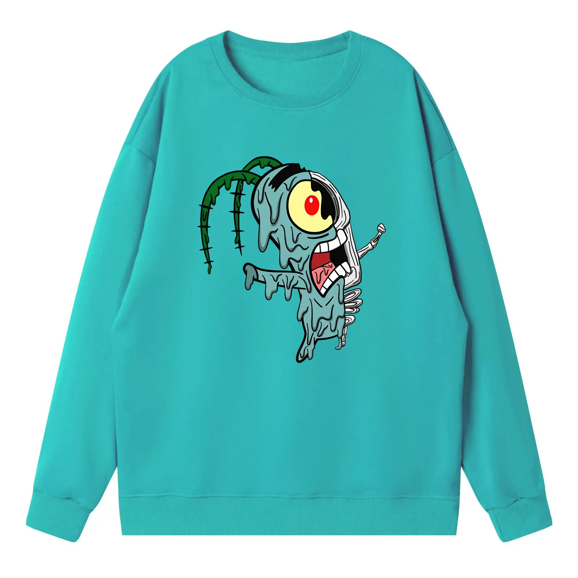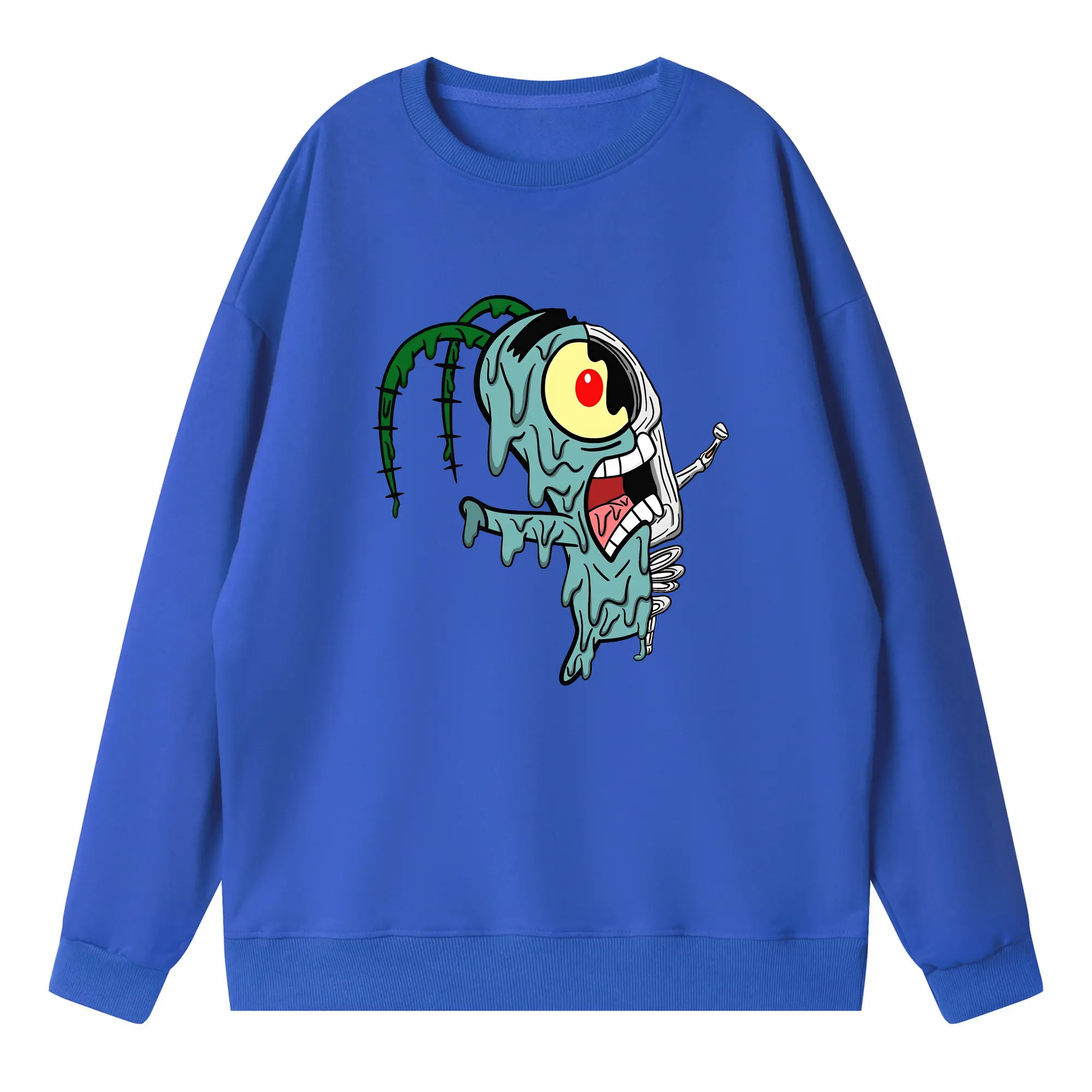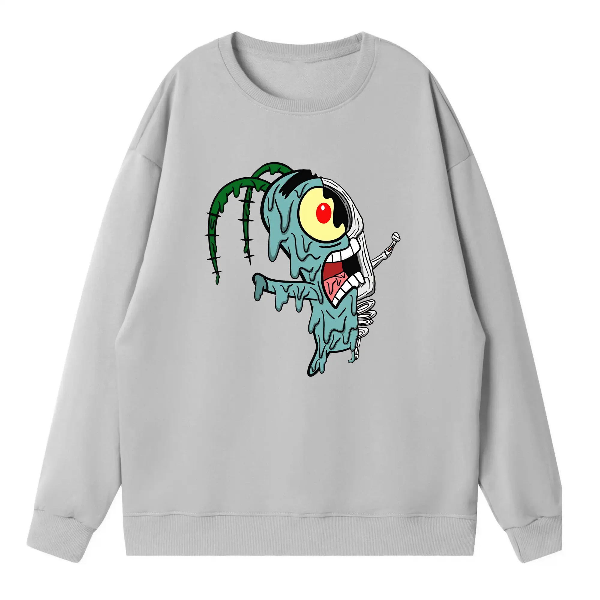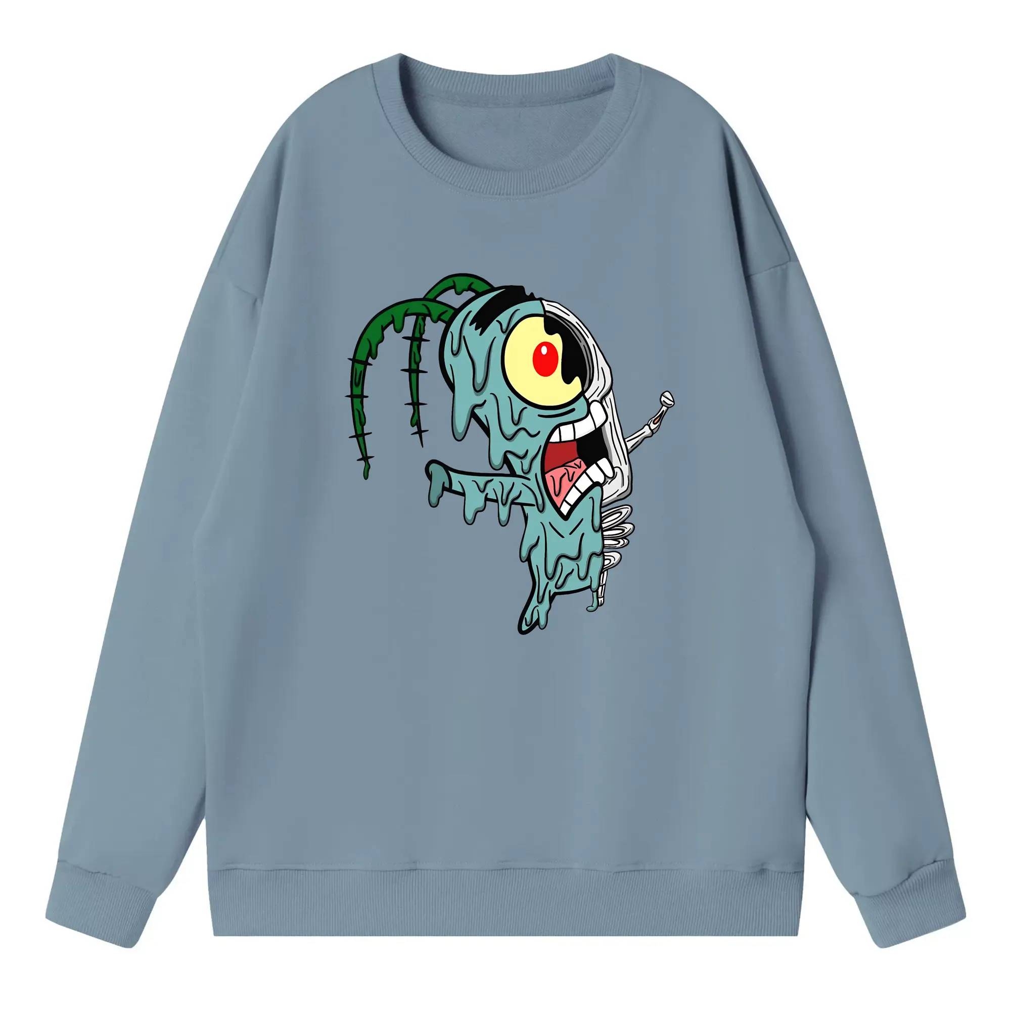 スポンジボブ グッズ プランクトン - 高品質 クルーネック スウェット ・ コットン59% ポリエステル41% ・ ユニセックス 長袖 トレーナー ・ カジュアル デイリー スポーツ 散歩用