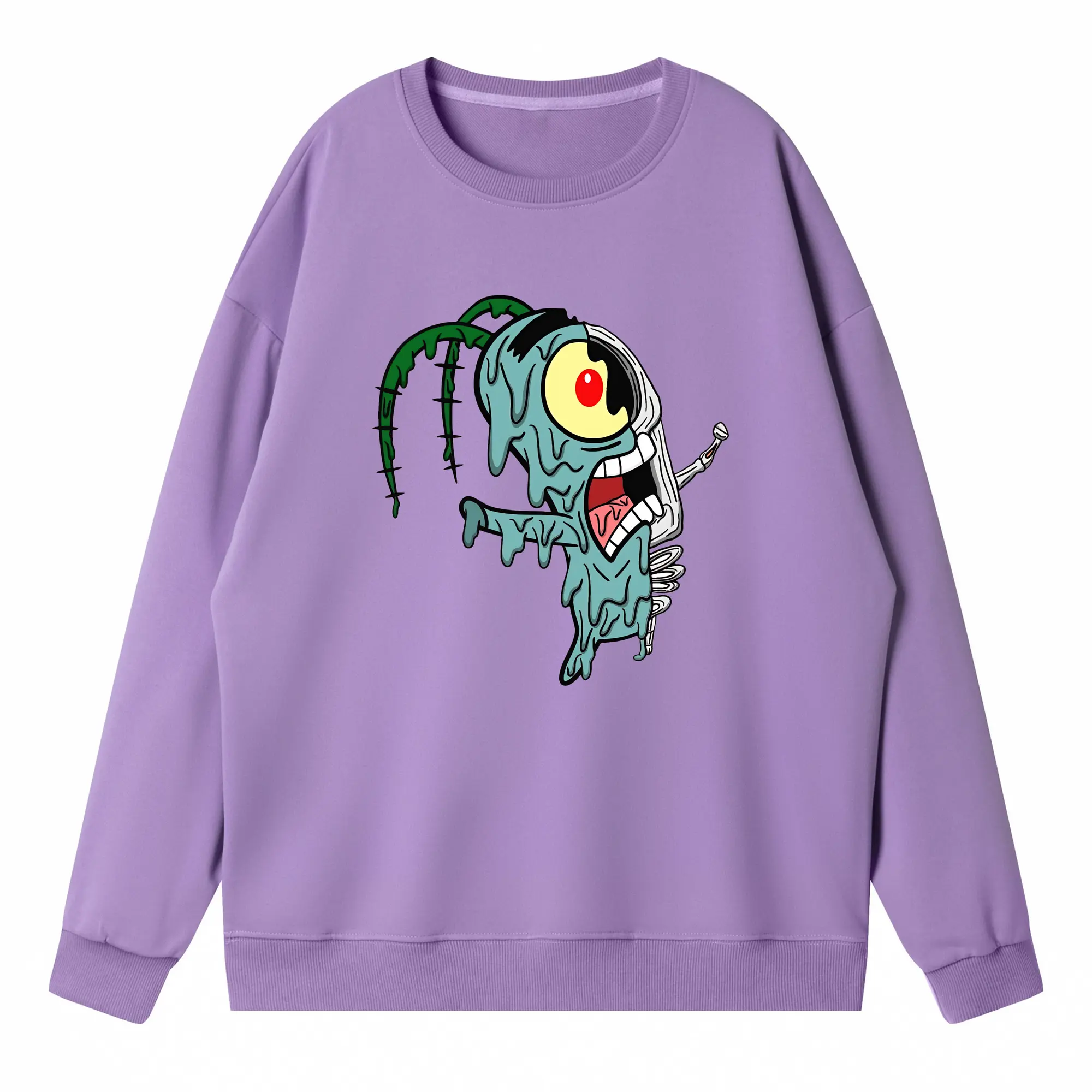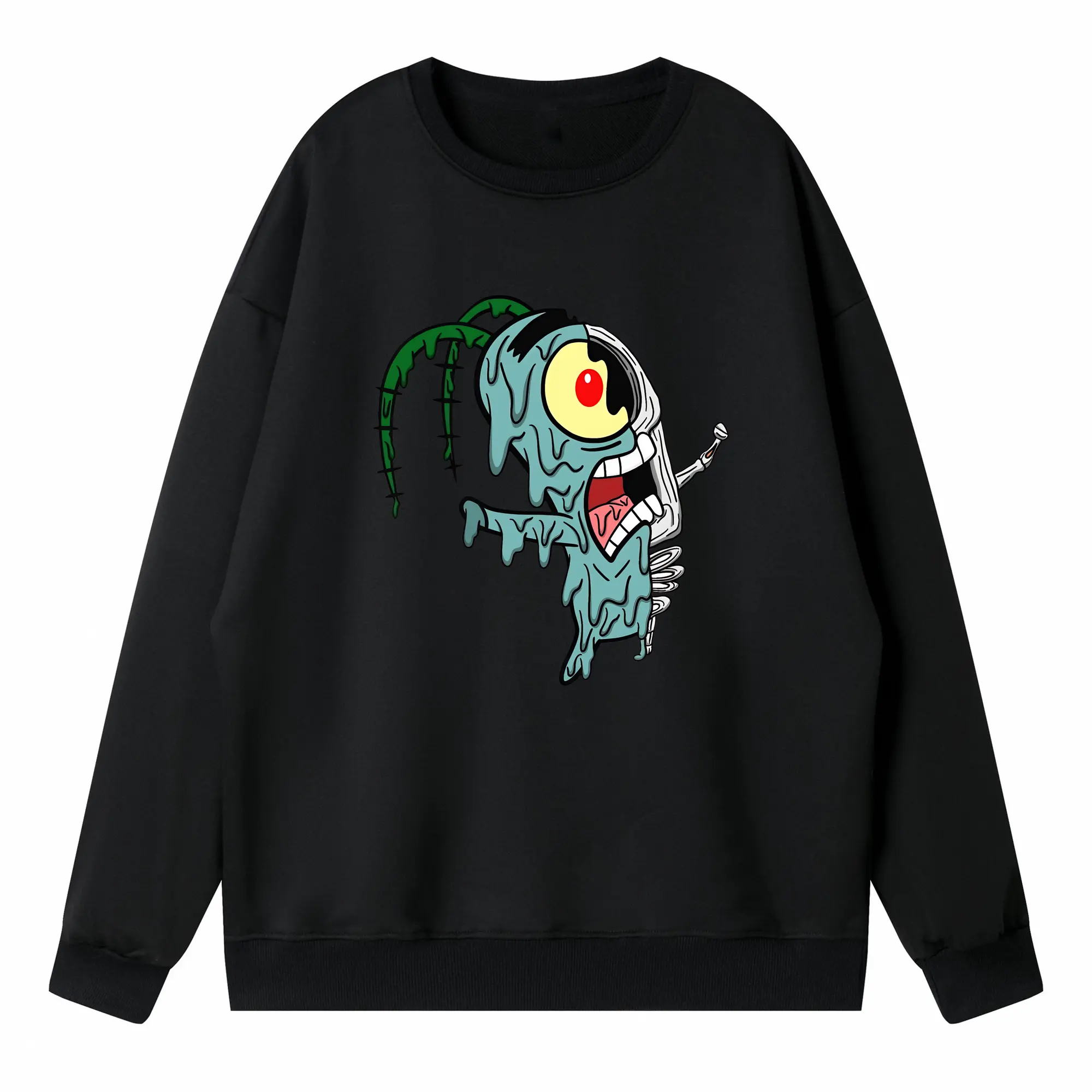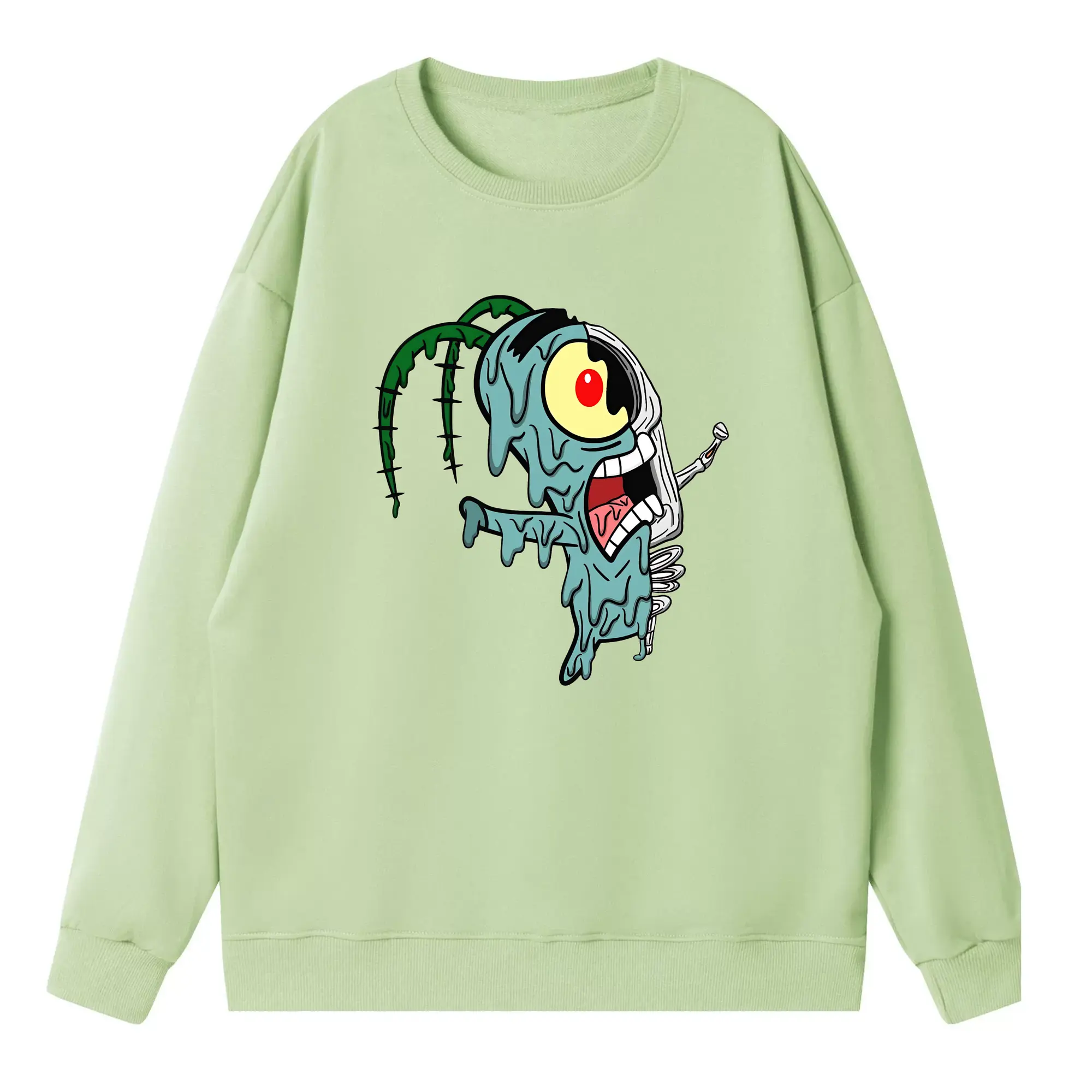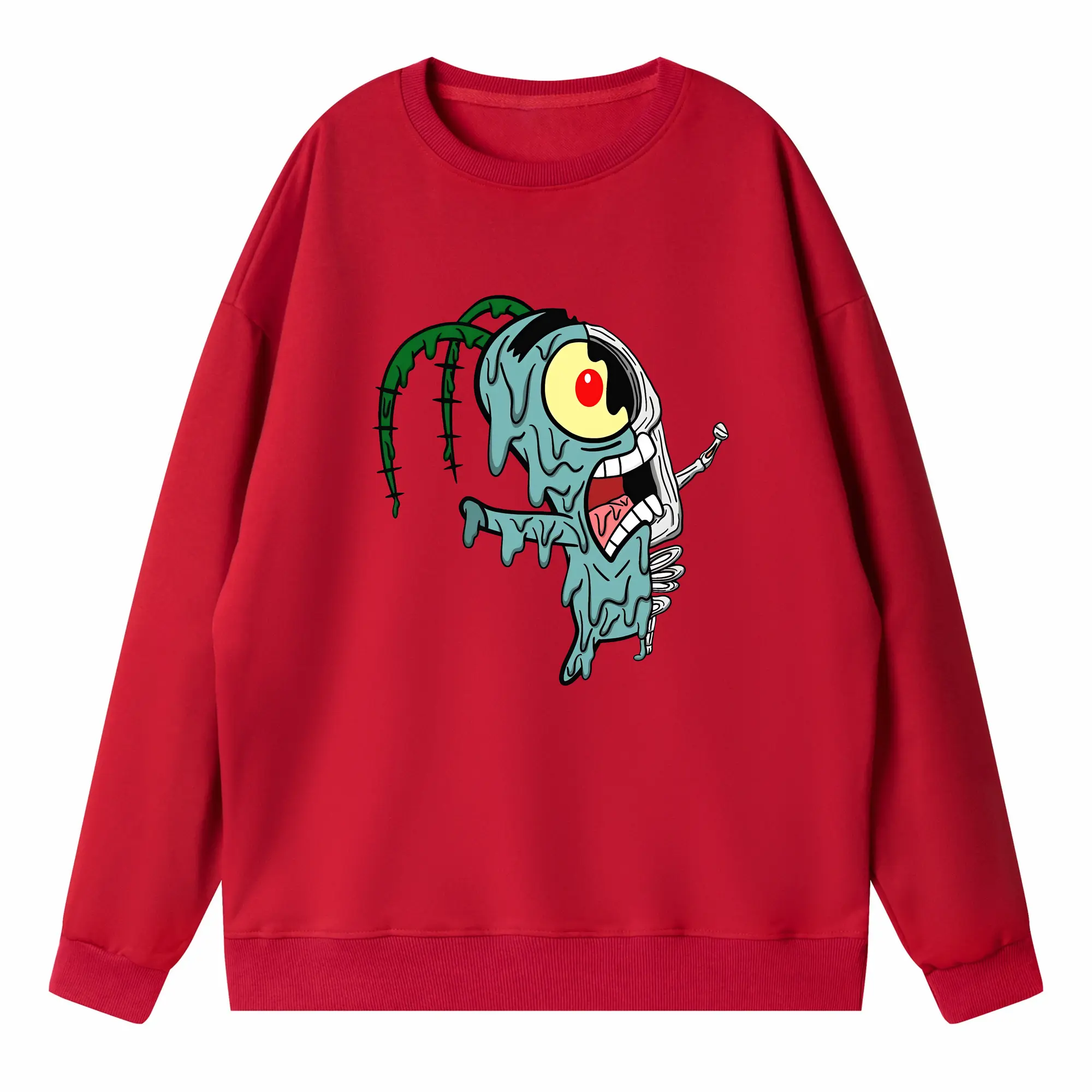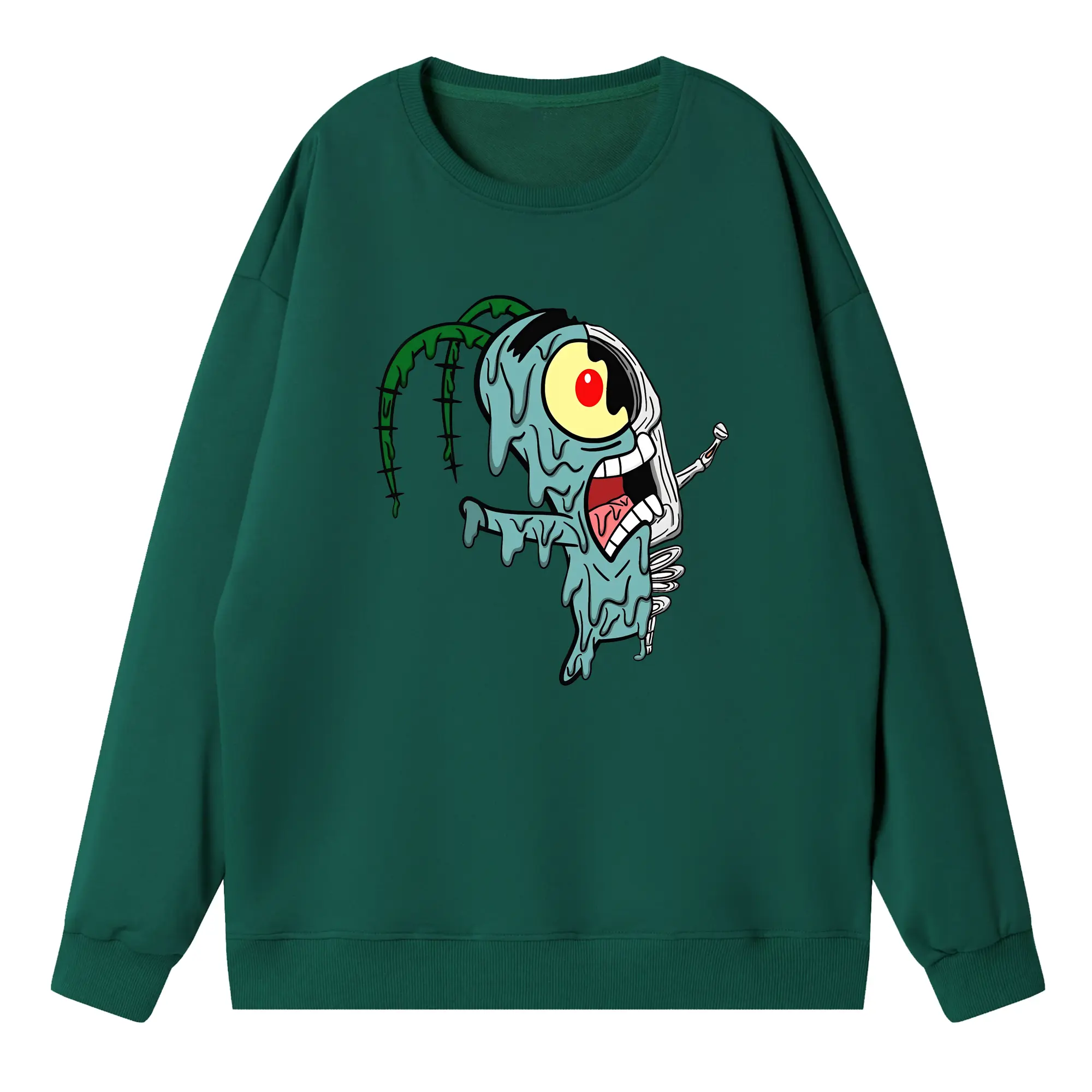 スポンジボブ グッズ プランクトン - 高品質 クルーネック スウェット ・ コットン59% ポリエステル41% ・ ユニセックス 長袖 トレーナー ・ カジュアル デイリー スポーツ 散歩用