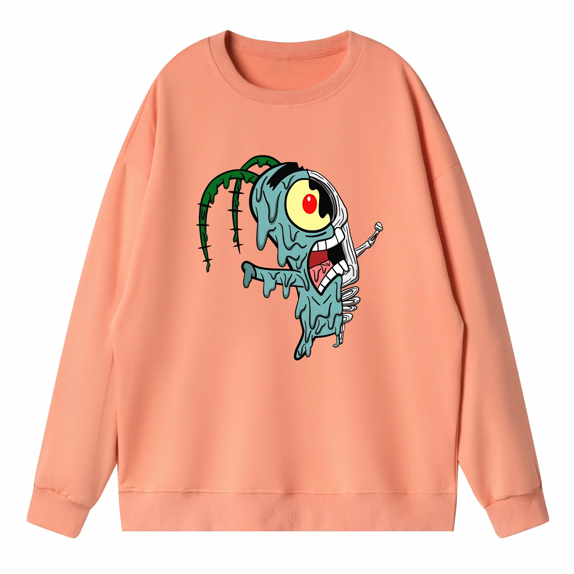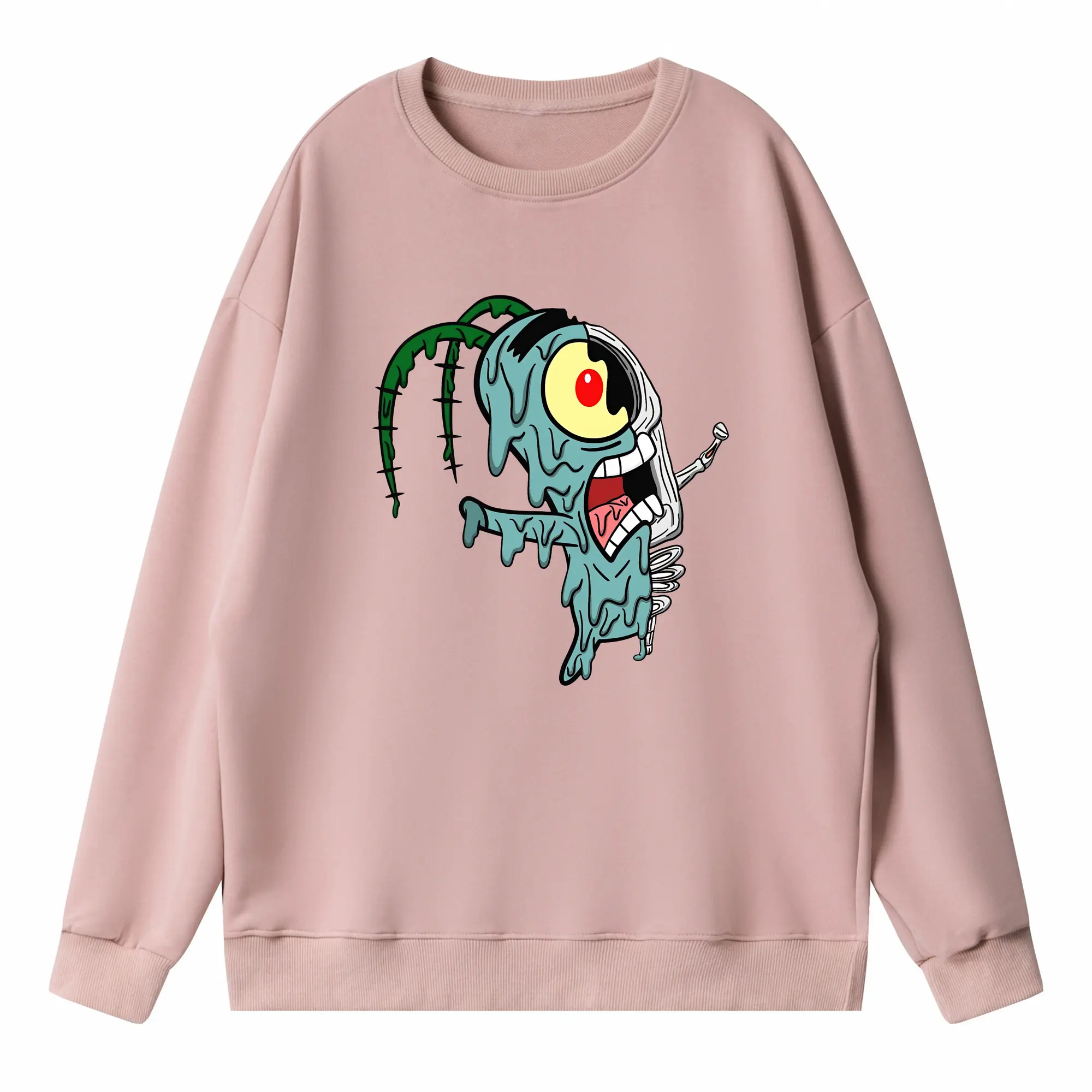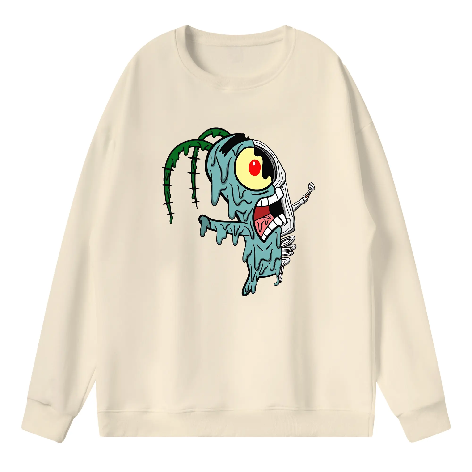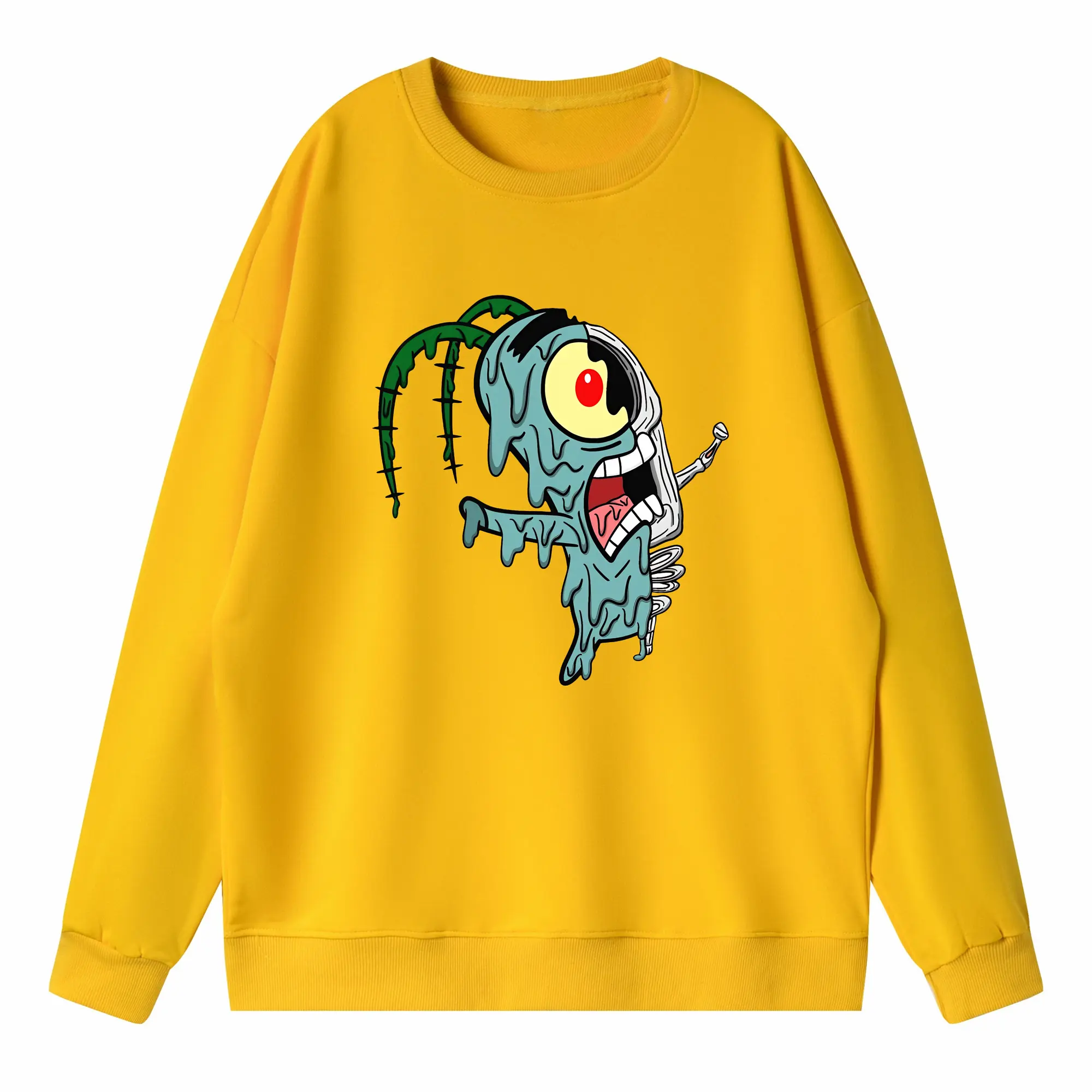 スポンジボブ グッズ プランクトン - 高品質 クルーネック スウェット ・ コットン59% ポリエステル41% ・ ユニセックス 長袖 トレーナー ・ カジュアル デイリー スポーツ 散歩用