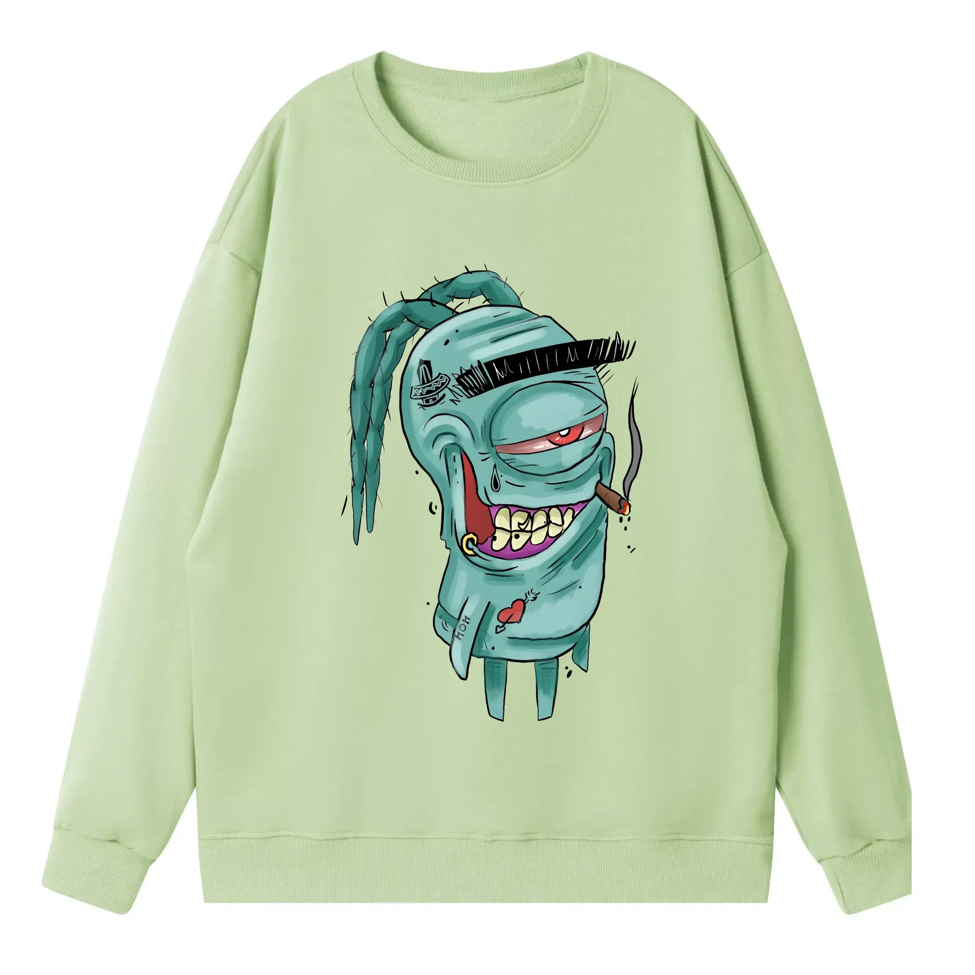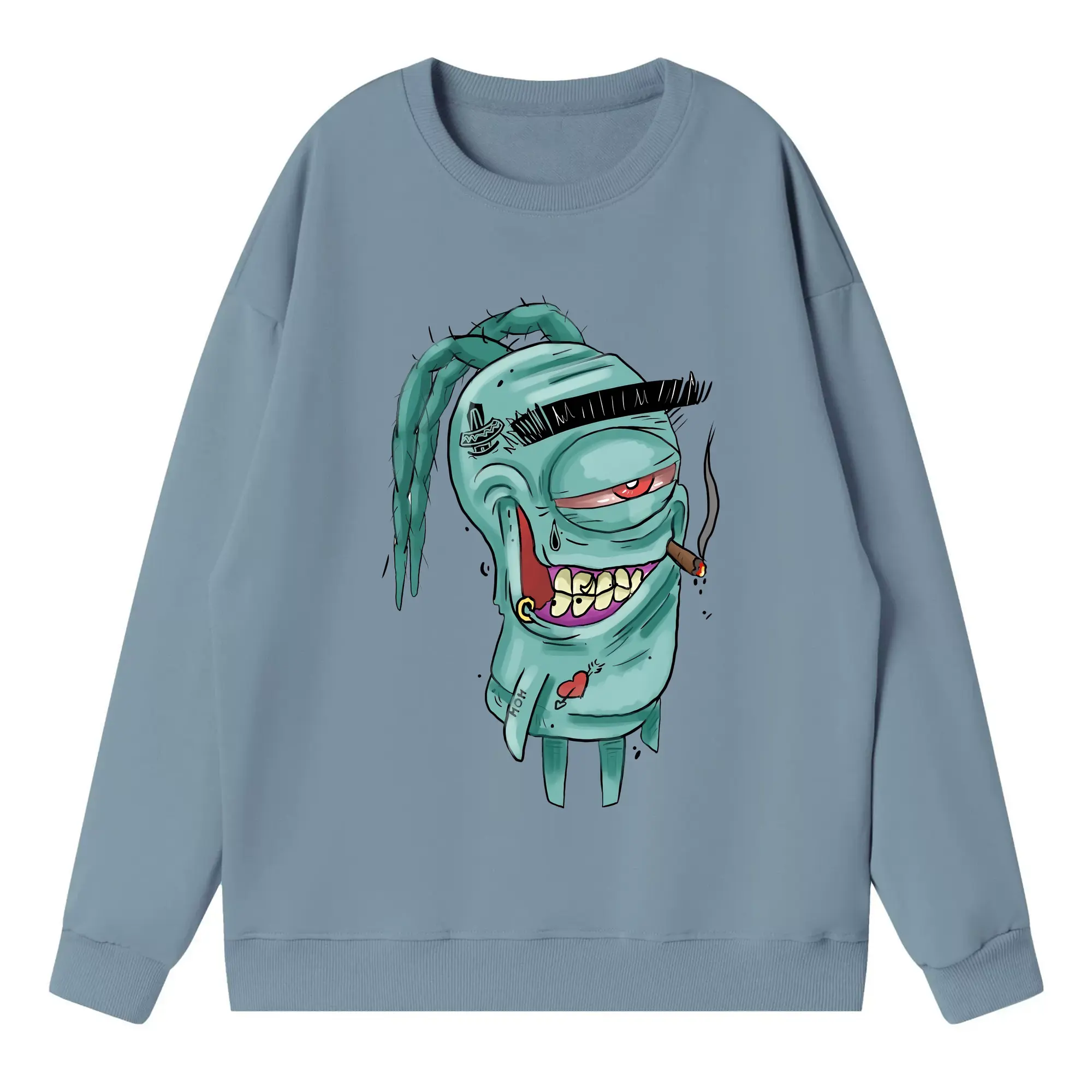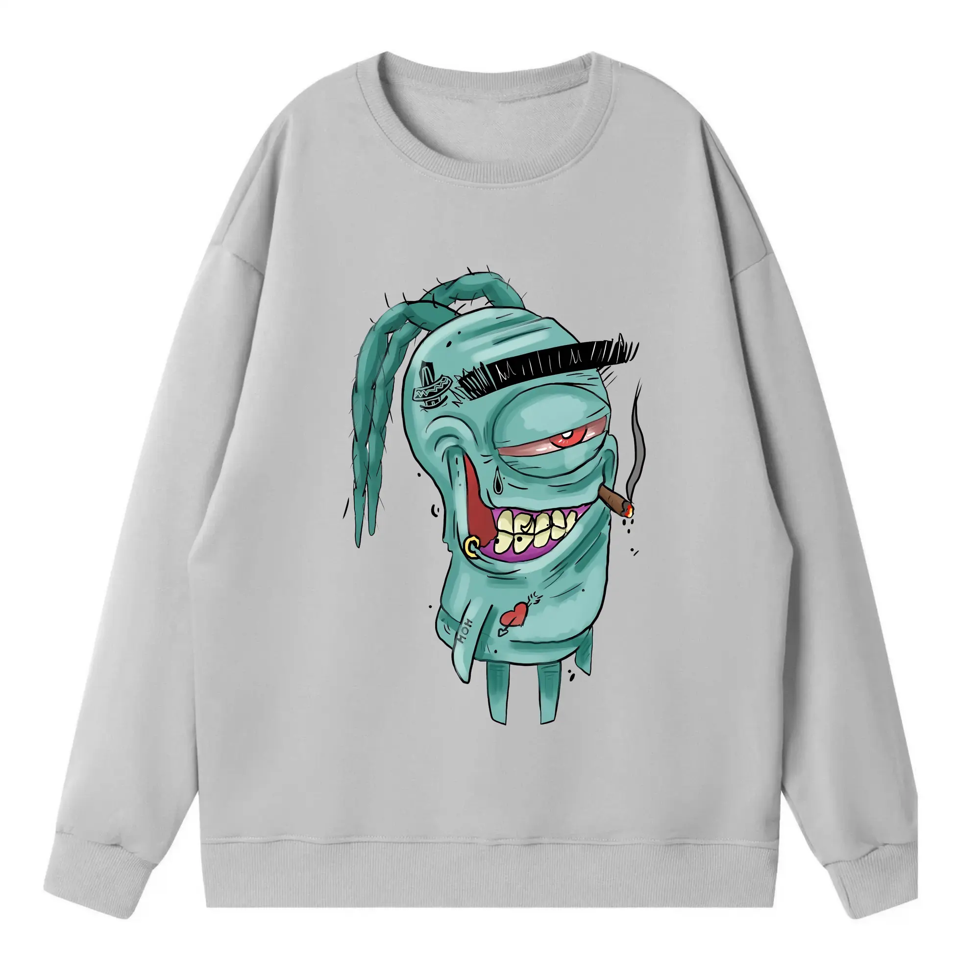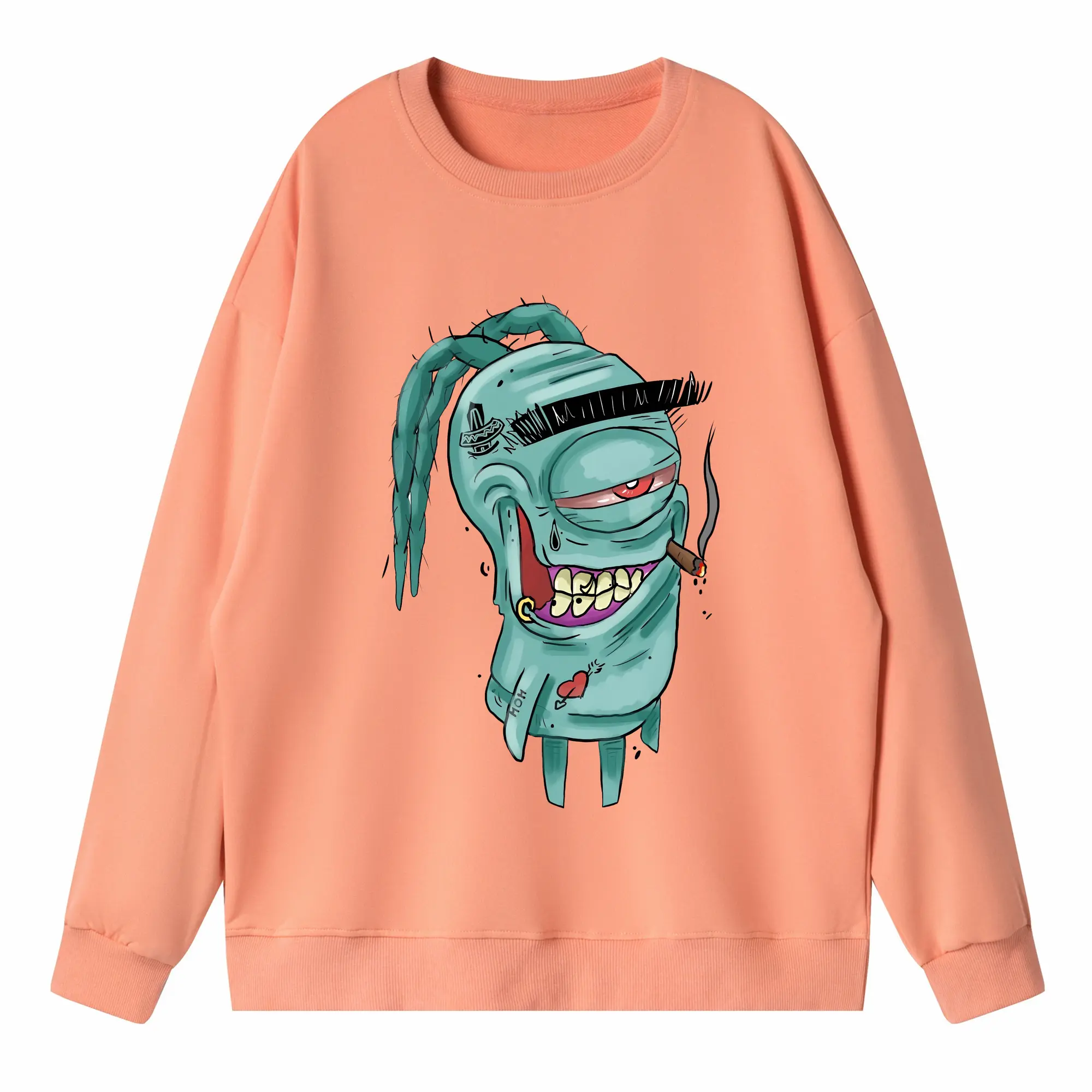 スポンジボブ グッズ プランクトン - 高品質 クルーネック スウェット ・ コットン59% ポリエステル41% ・ ユニセックス 長袖 トレーナー ・ カジュアル デイリー スポーツ 散歩用