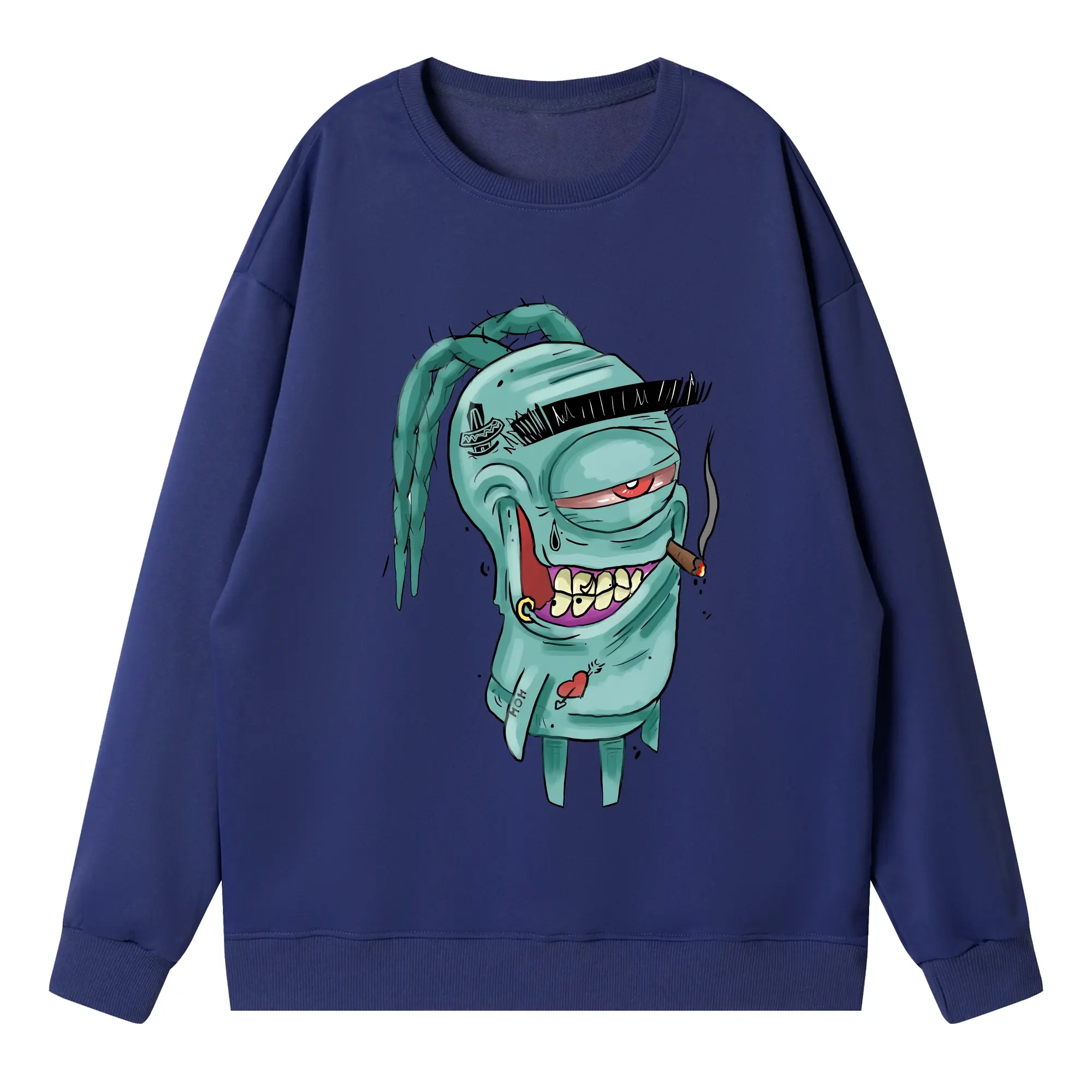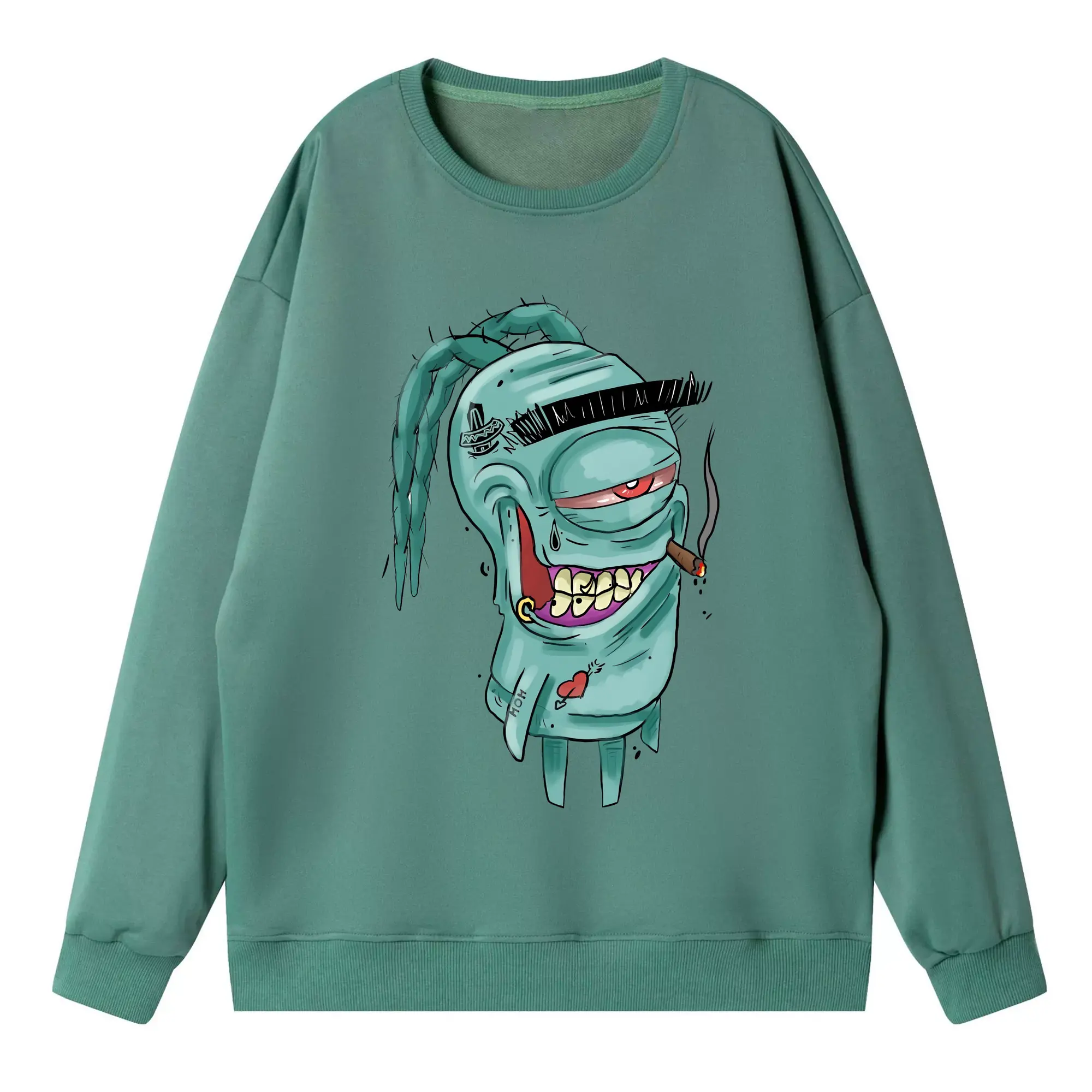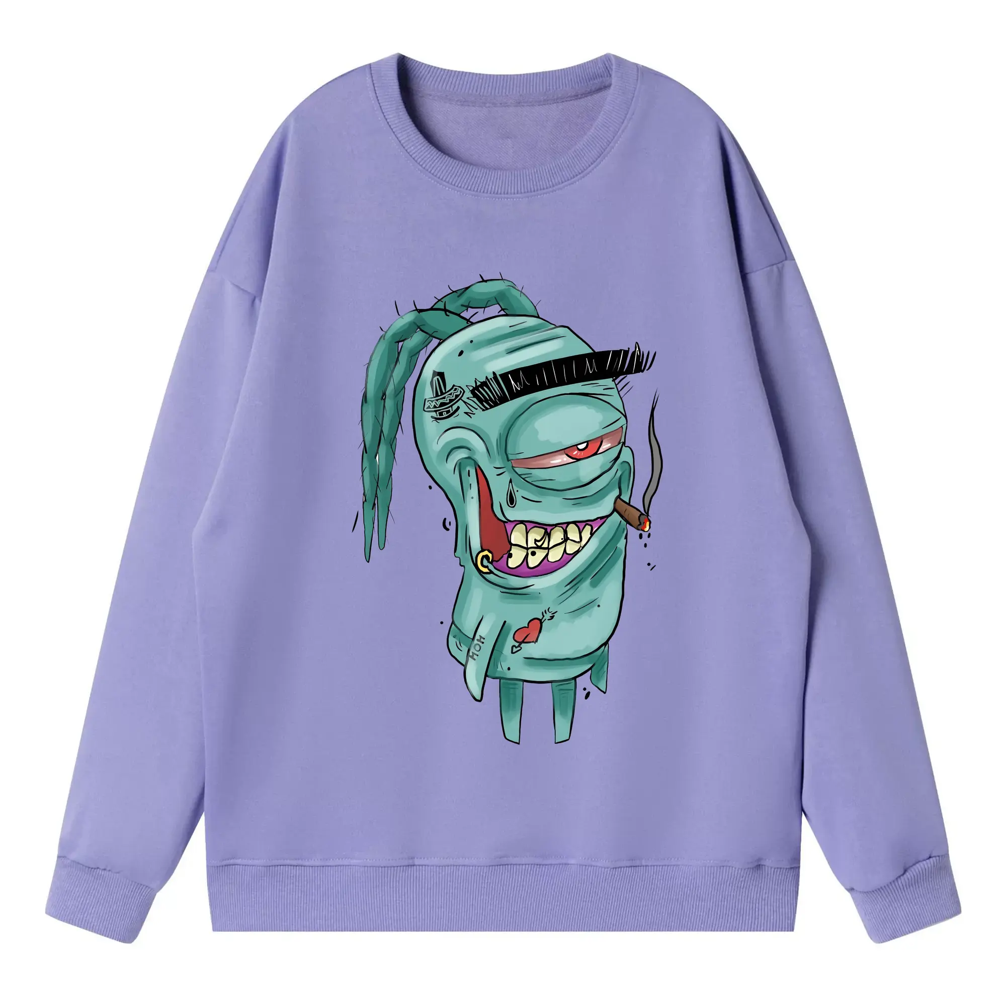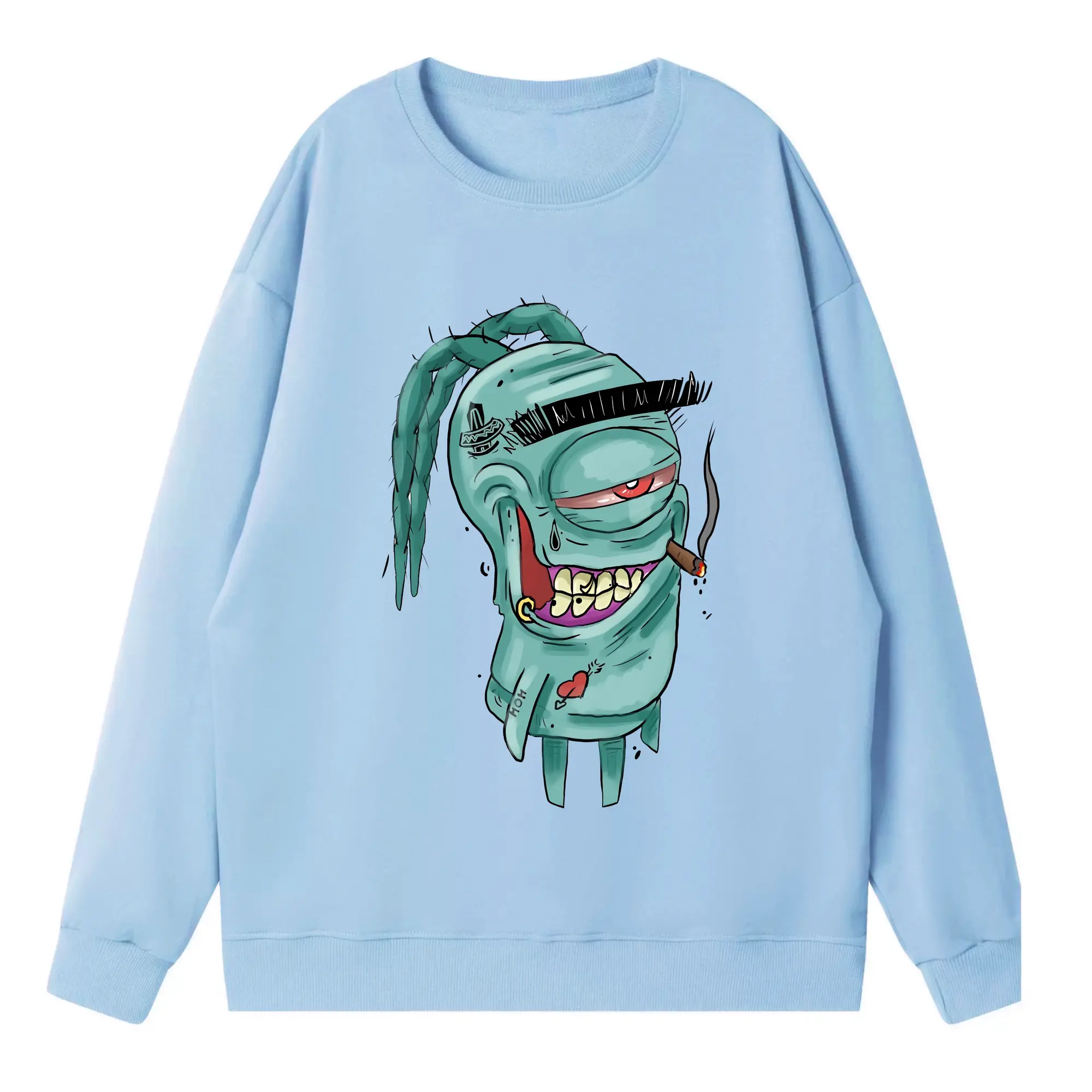 スポンジボブ グッズ プランクトン - 高品質 クルーネック スウェット ・ コットン59% ポリエステル41% ・ ユニセックス 長袖 トレーナー ・ カジュアル デイリー スポーツ 散歩用