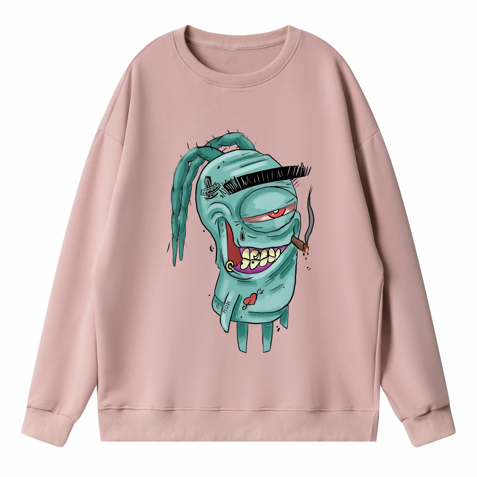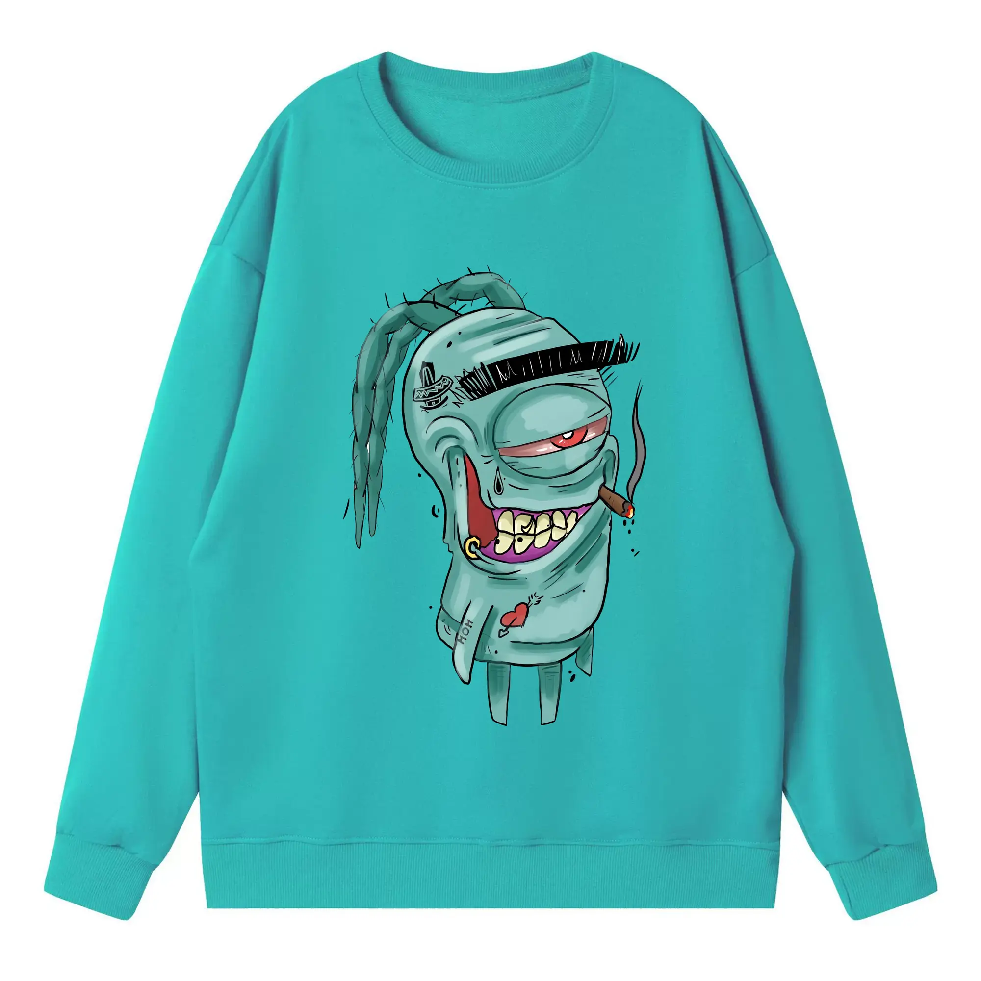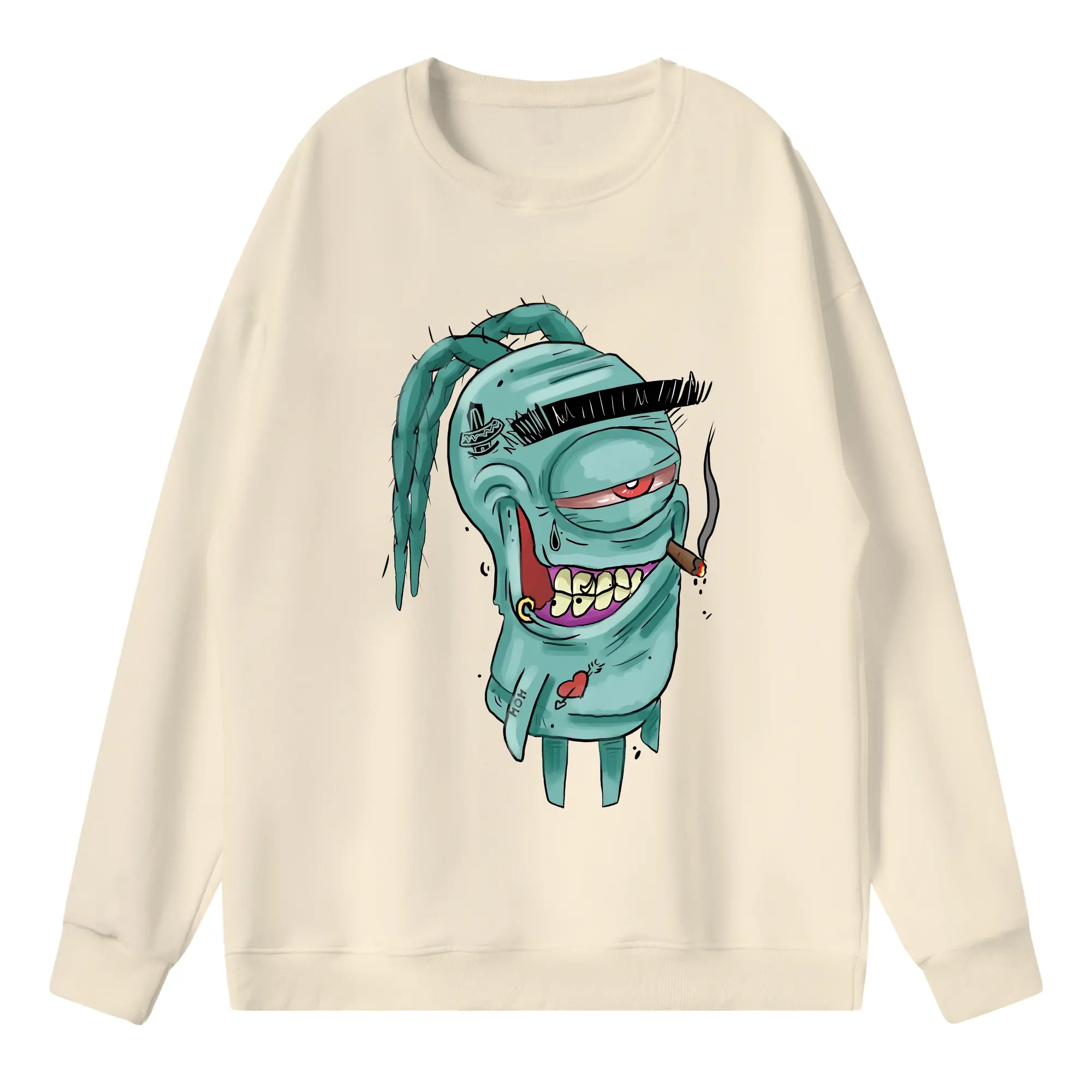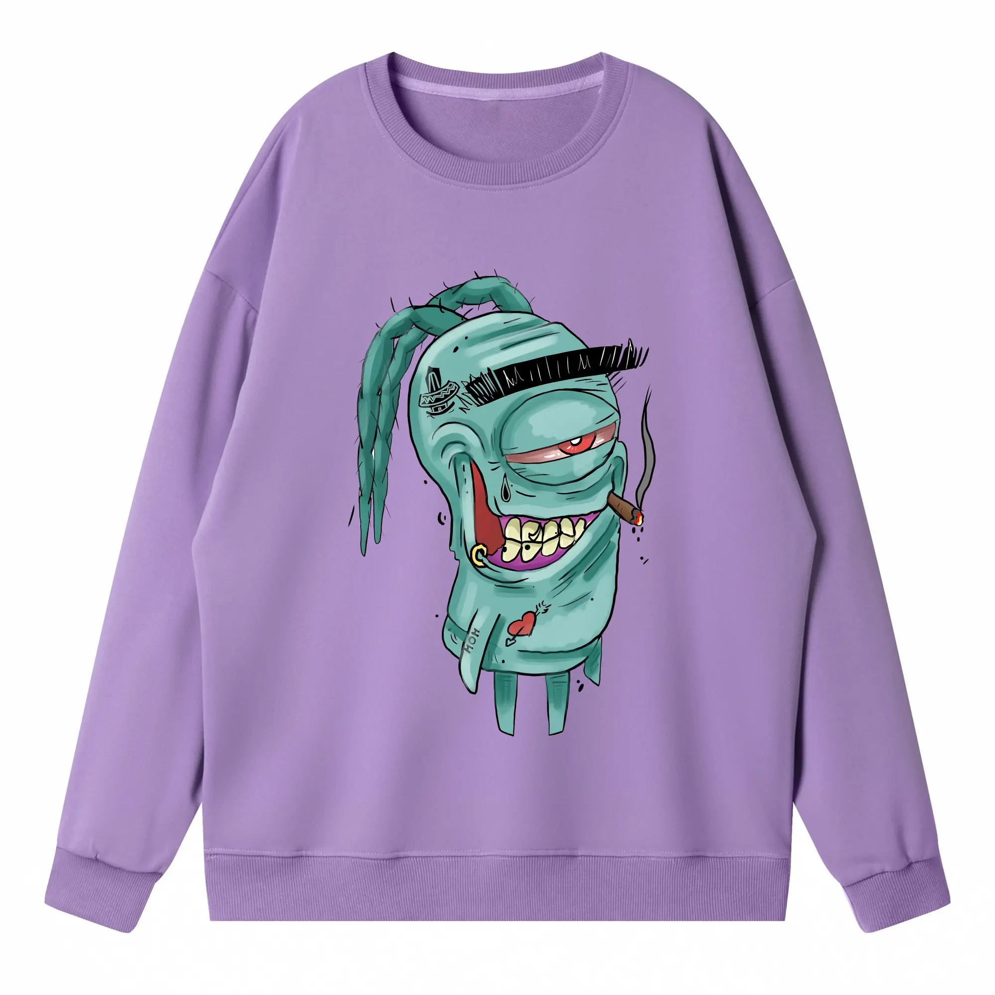 スポンジボブ グッズ プランクトン - 高品質 クルーネック スウェット ・ コットン59% ポリエステル41% ・ ユニセックス 長袖 トレーナー ・ カジュアル デイリー スポーツ 散歩用