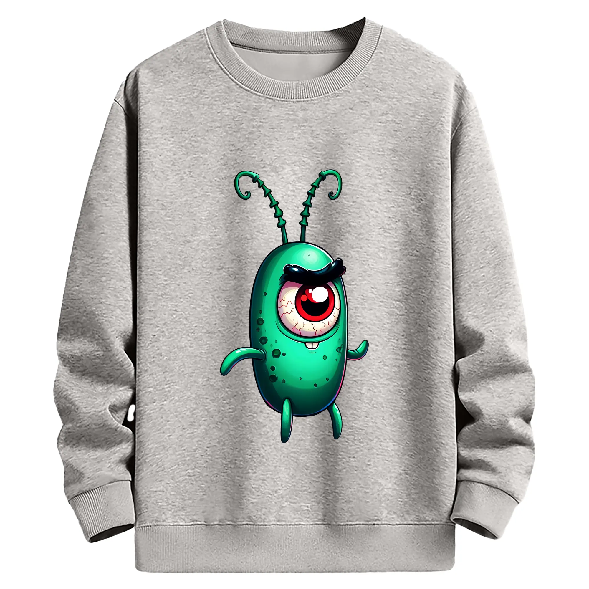 スポンジボブ グッズ プランクトン - 高品質 クルーネック スウェット ・ コットン59% ポリエステル41% ・ ユニセックス 長袖 トレーナー ・ カジュアル デイリー スポーツ 散歩用