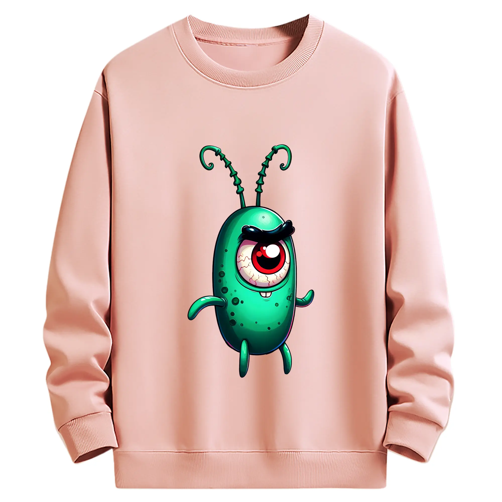 スポンジボブ グッズ プランクトン - 薄手 クルーネック スウェット 裏毛260g · ポリエステル 春秋向け カジュアル 男女兼用 · トレーナー デイリー スポーツ 散歩に最適