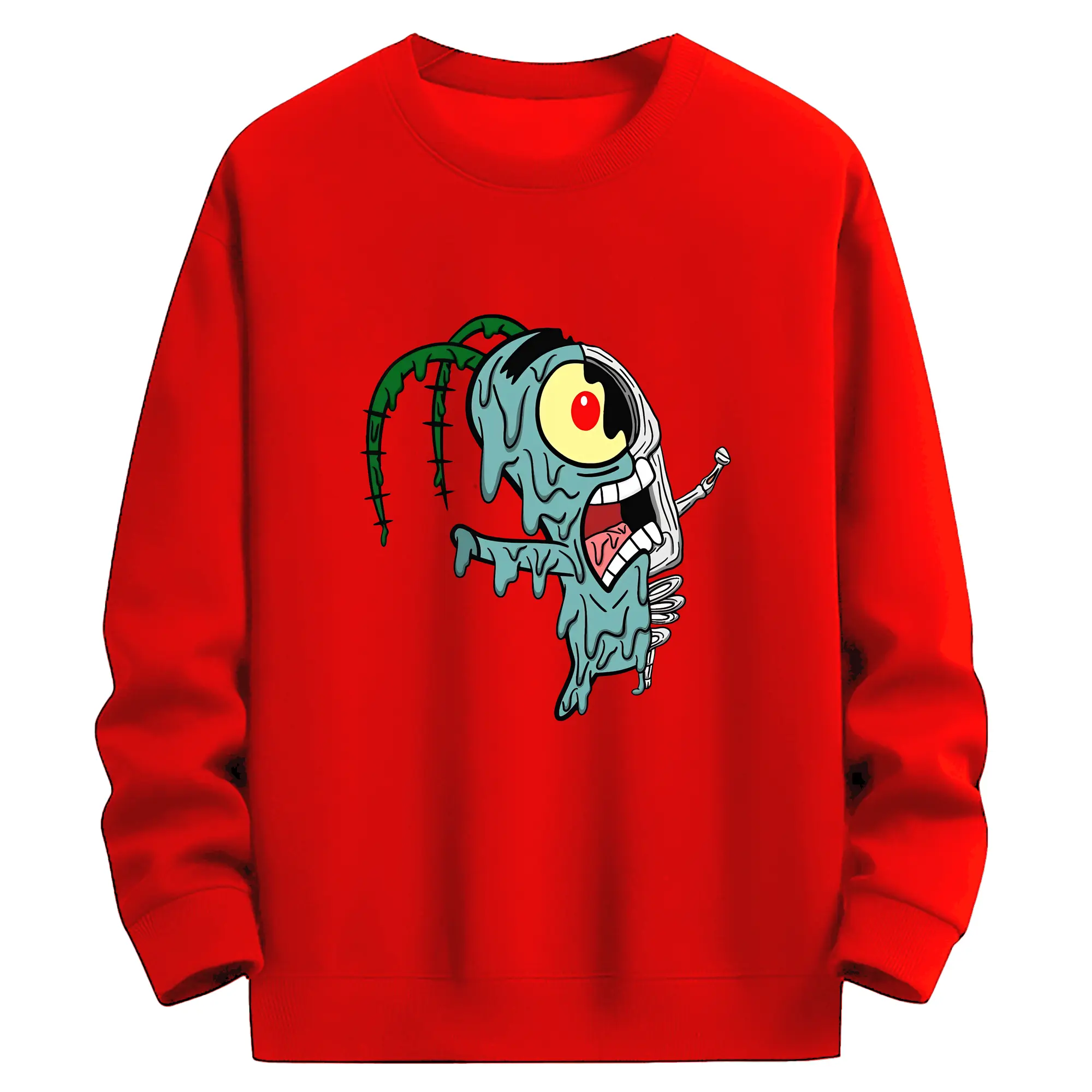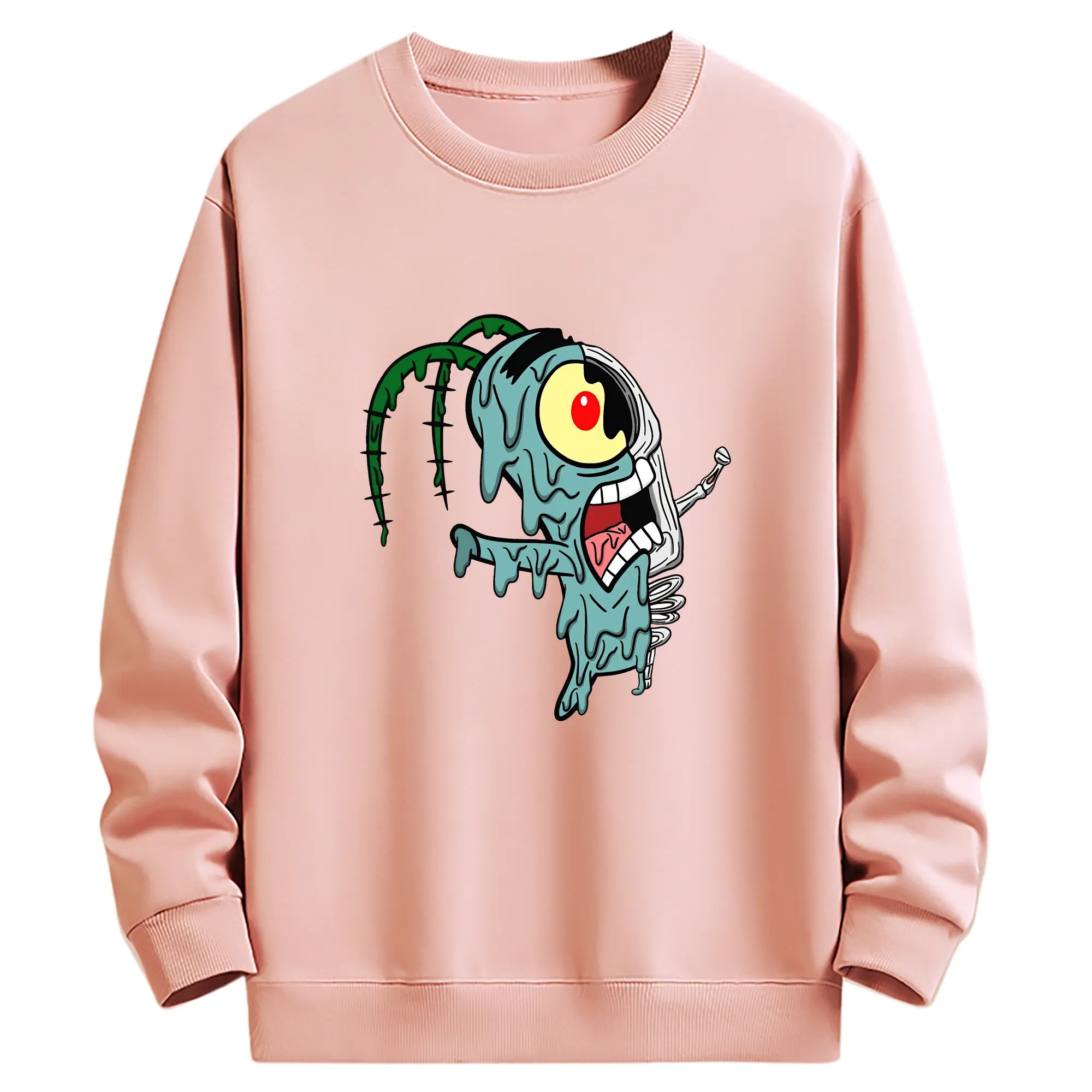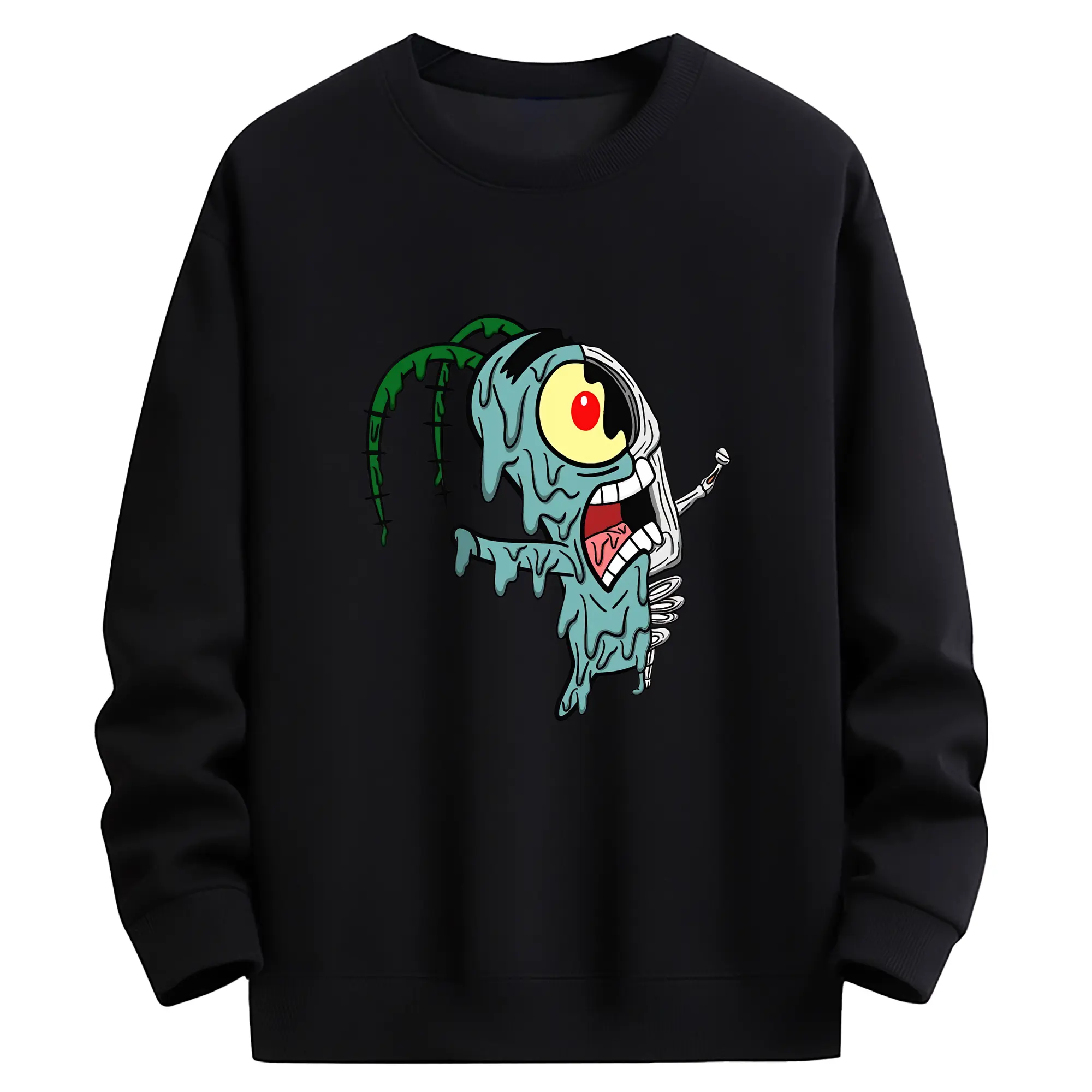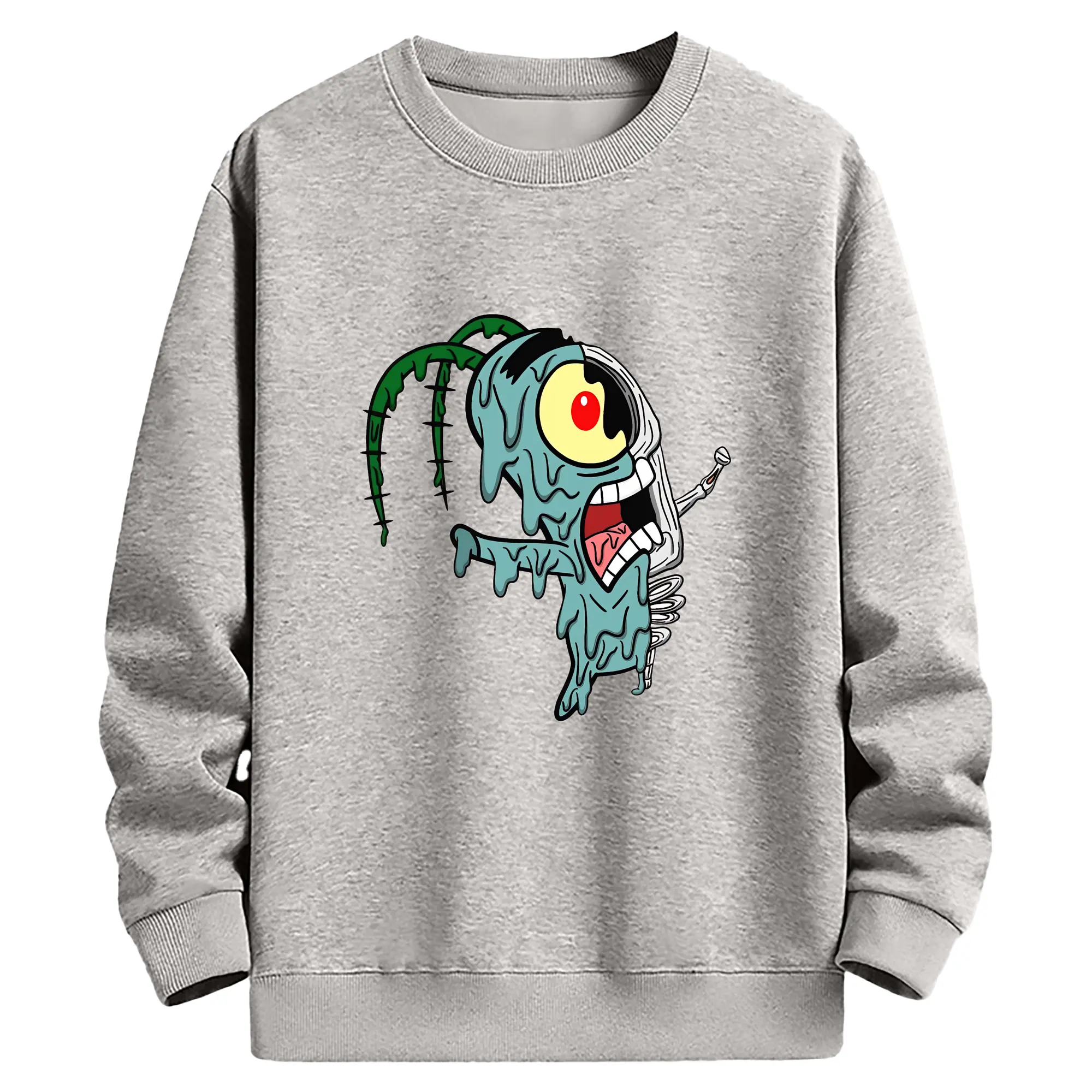 スポンジボブ グッズ プランクトン - 高品質 クルーネック スウェット ・ コットン59% ポリエステル41% ・ ユニセックス 長袖 トレーナー ・ カジュアル デイリー スポーツ 散歩用
