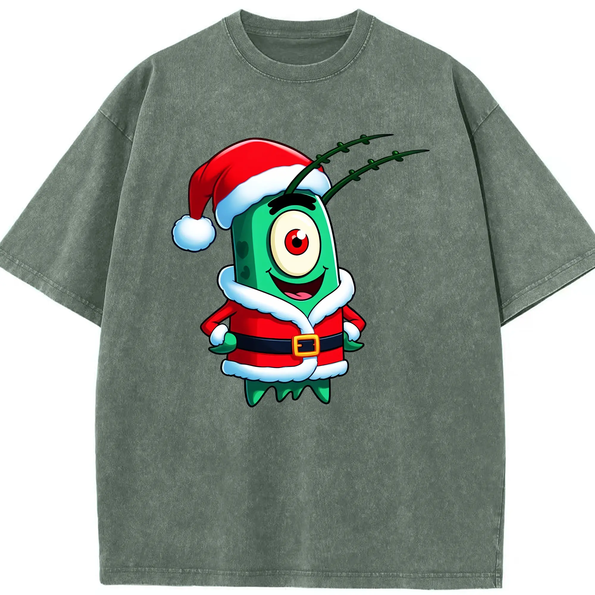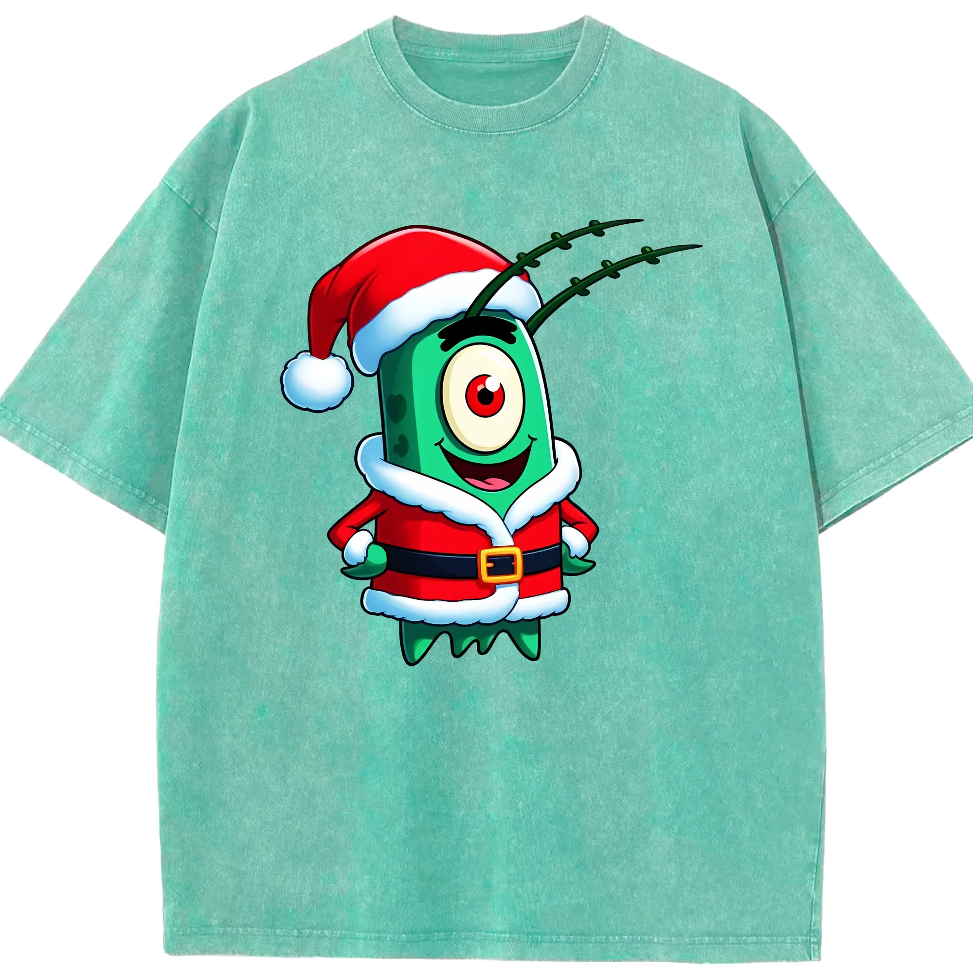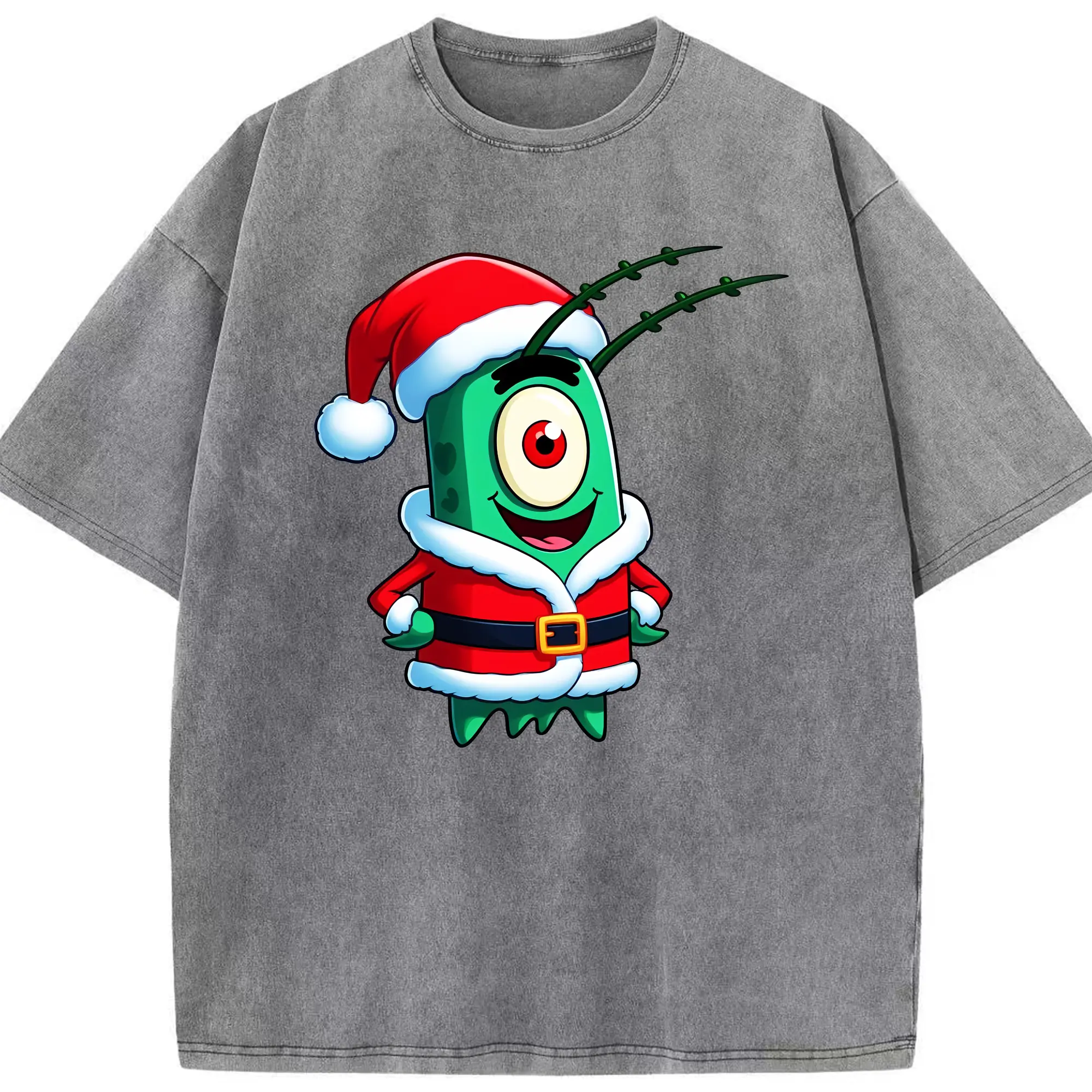 スポンジボブ グッズ プランクトン - 綿100% ヴィンテージ風 半袖Tシャツ ・ 背面プリント ・ 柔らか肌触り ・ 通気性 快適 ・ スポーツ カジュアル 外出用