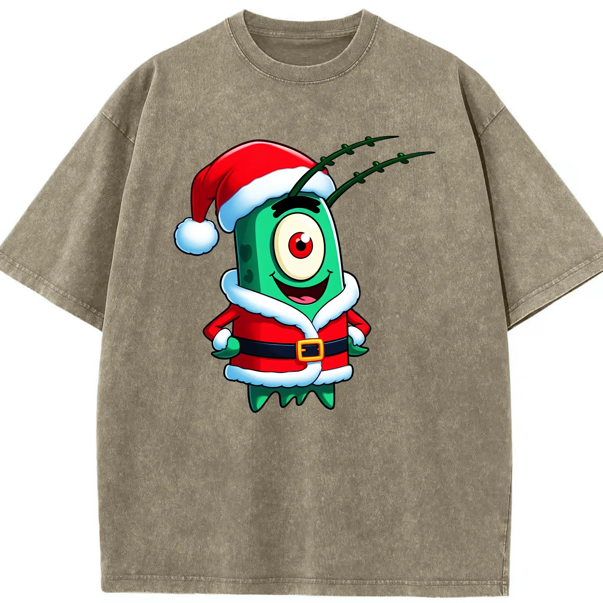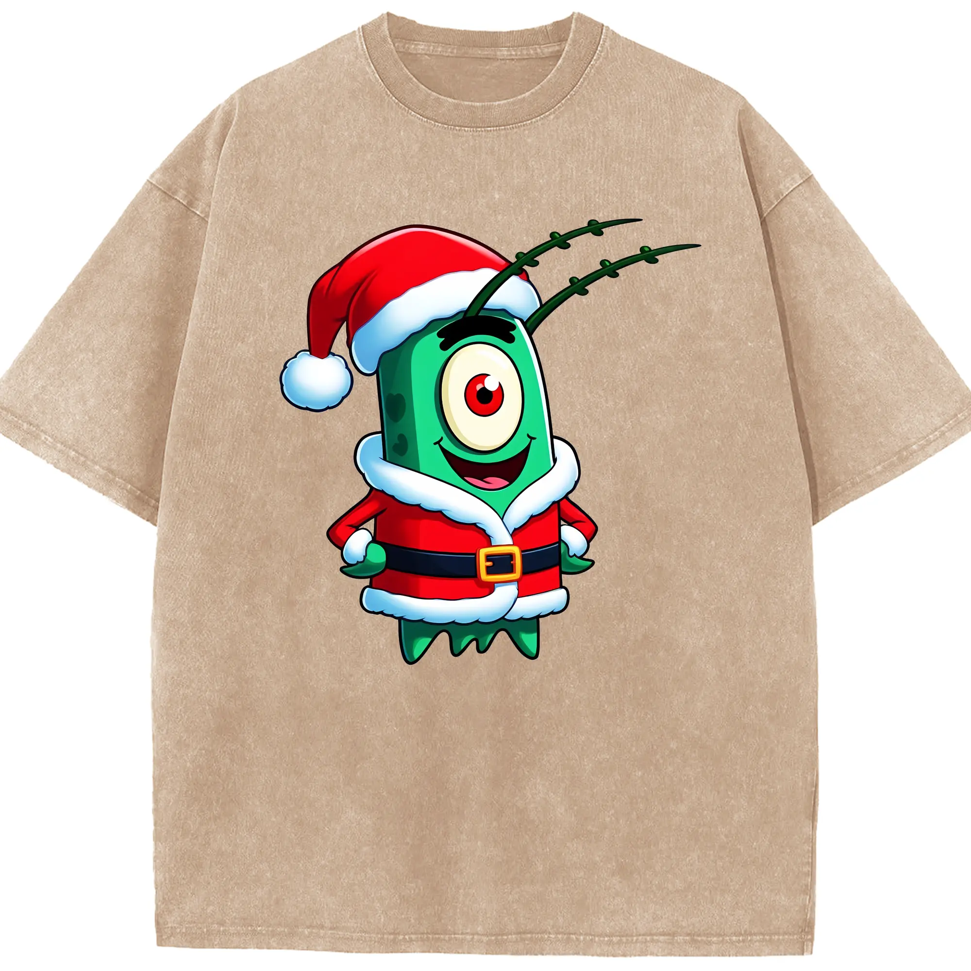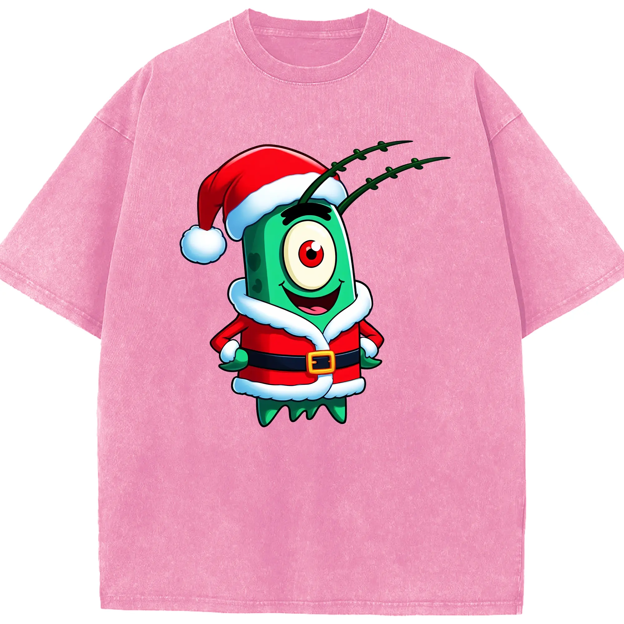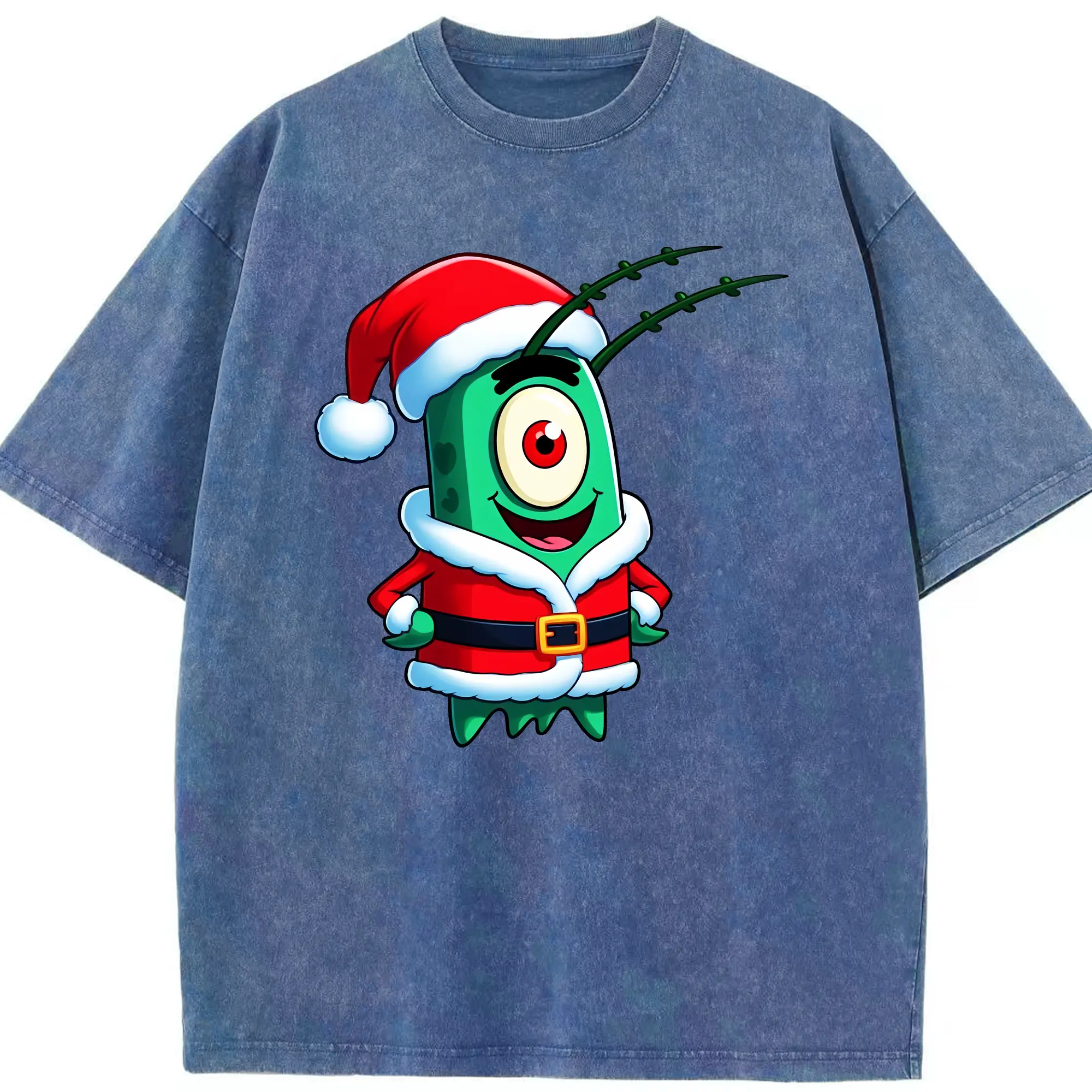 スポンジボブ グッズ プランクトン - 綿100% ヴィンテージ風 半袖Tシャツ ・ 背面プリント ・ 柔らか肌触り ・ 通気性 快適 ・ スポーツ カジュアル 外出用