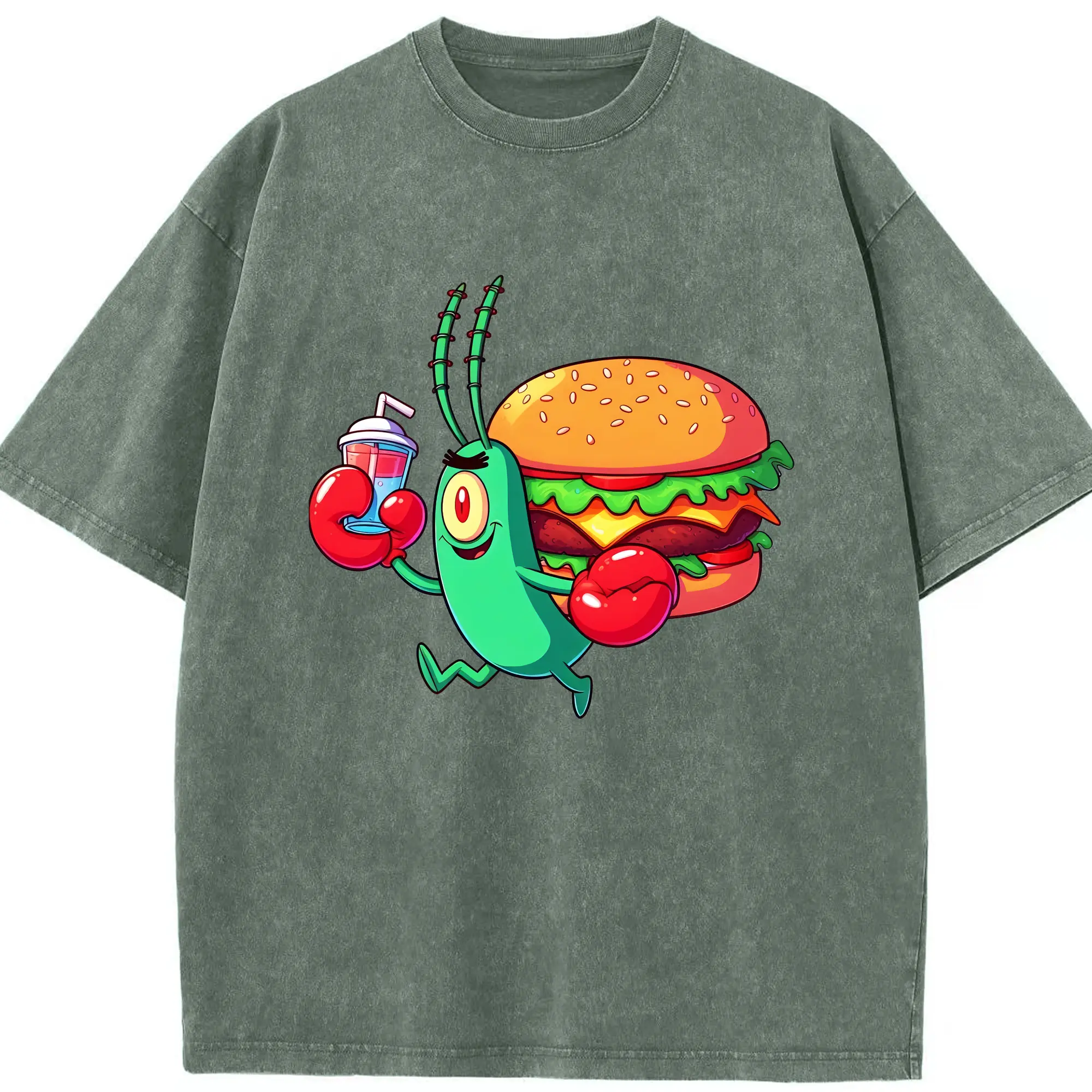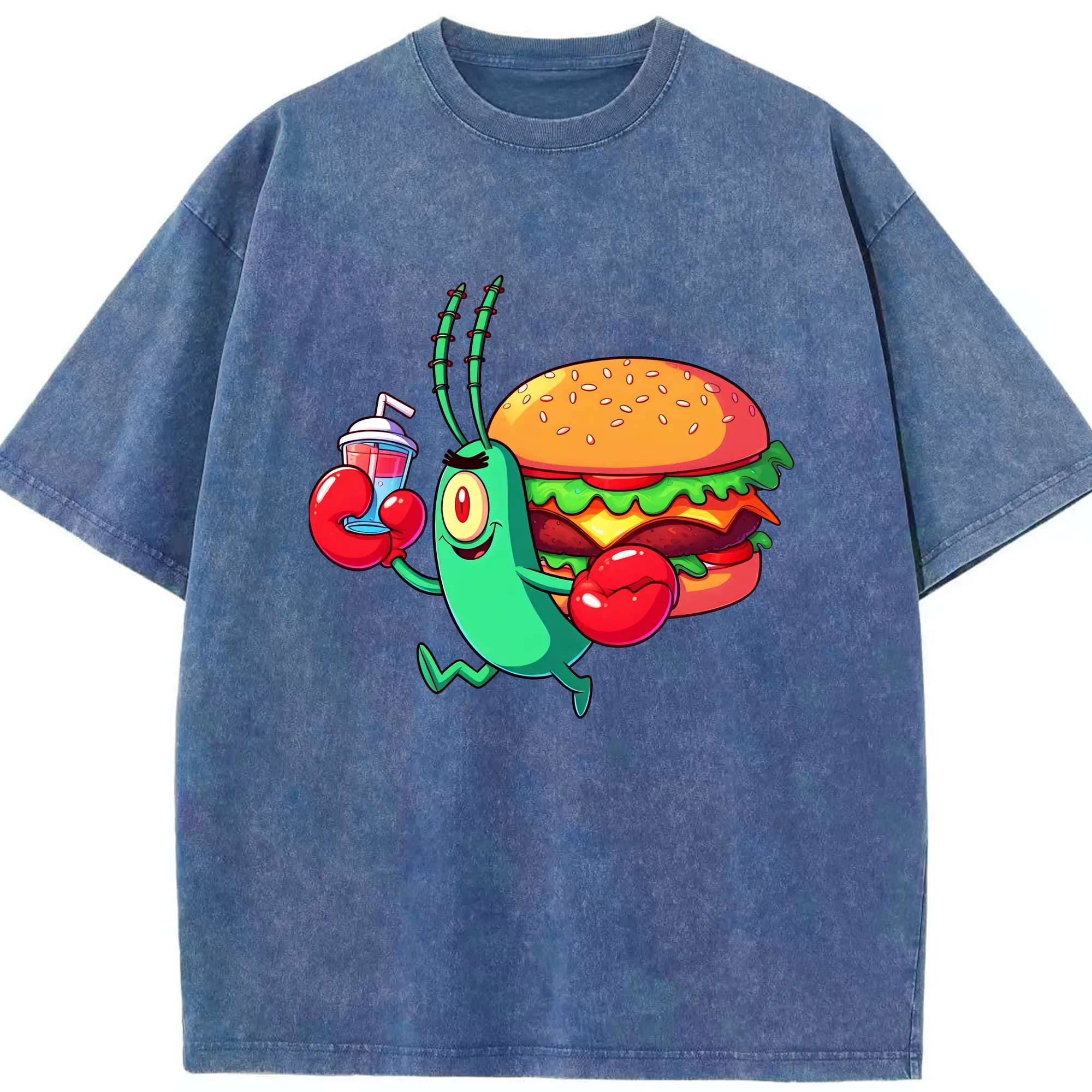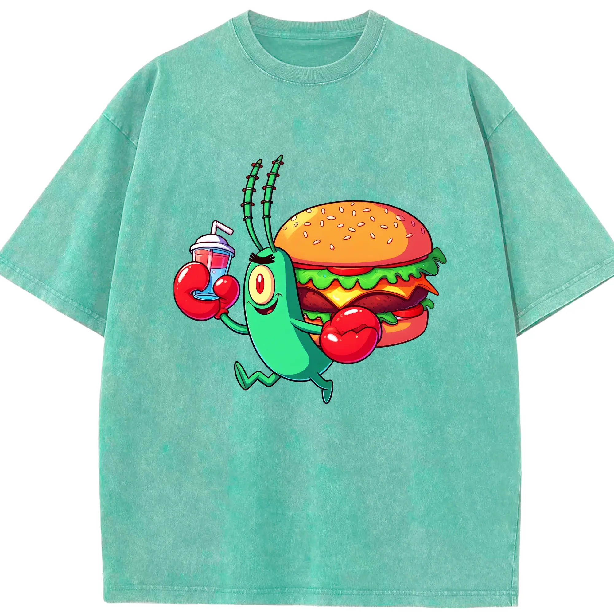 スポンジボブ グッズ プランクトン - 綿100% ヴィンテージ風 半袖Tシャツ ・ 背面プリント ・ 柔らか肌触り ・ 通気性 快適 ・ スポーツ カジュアル 外出用