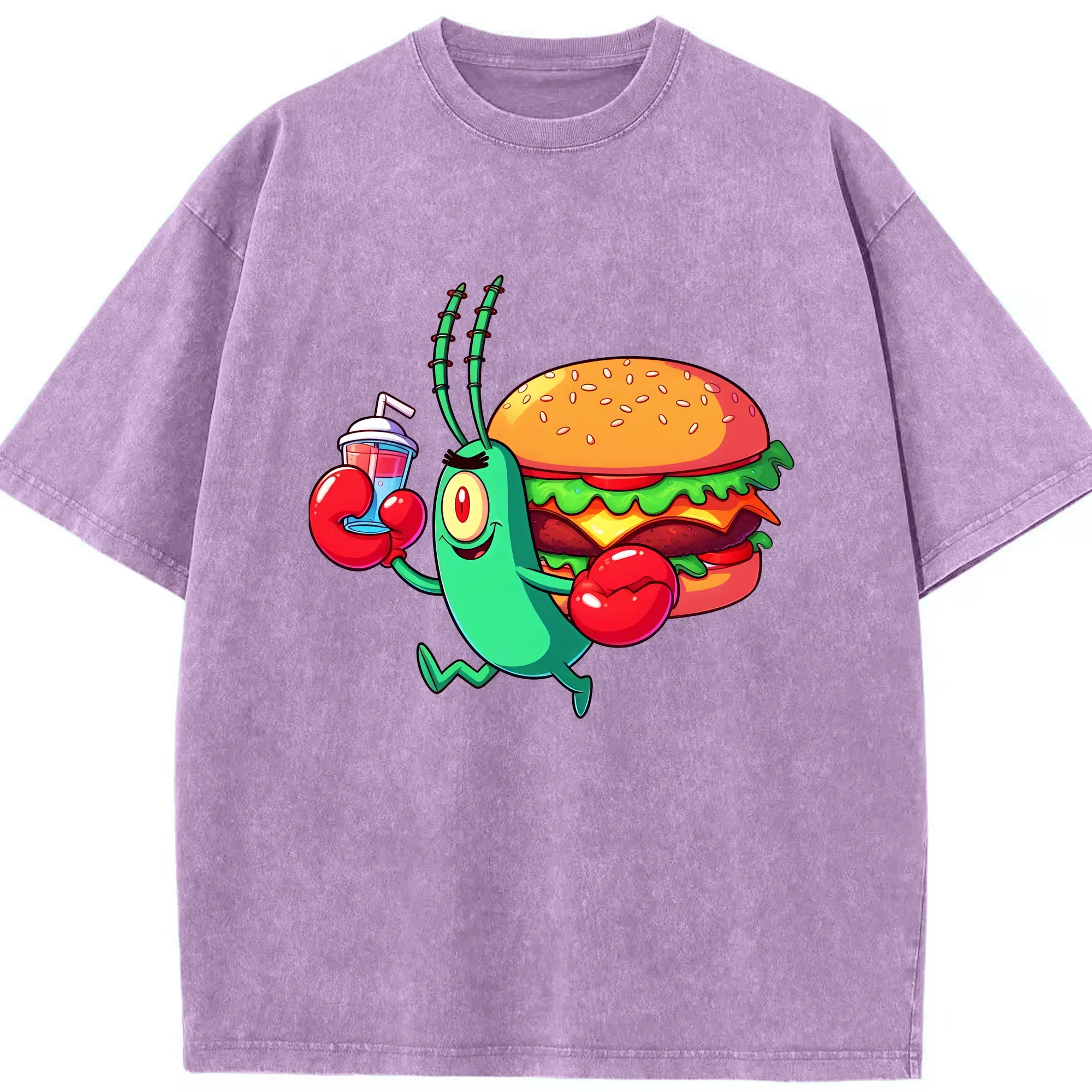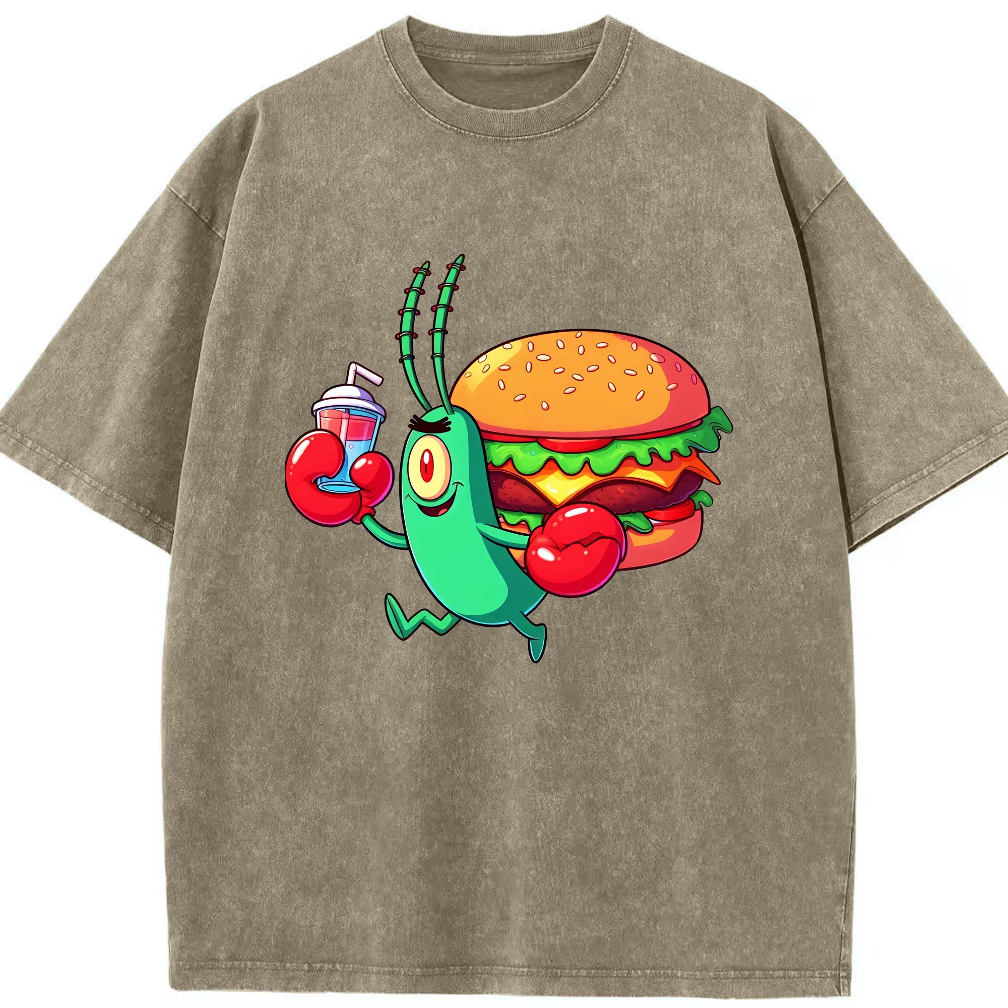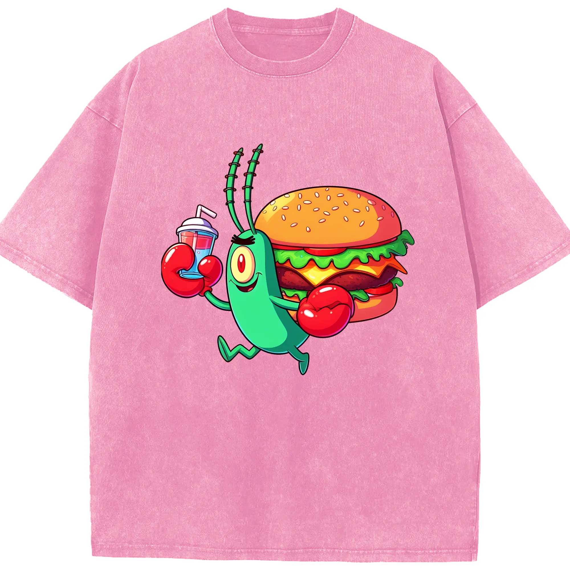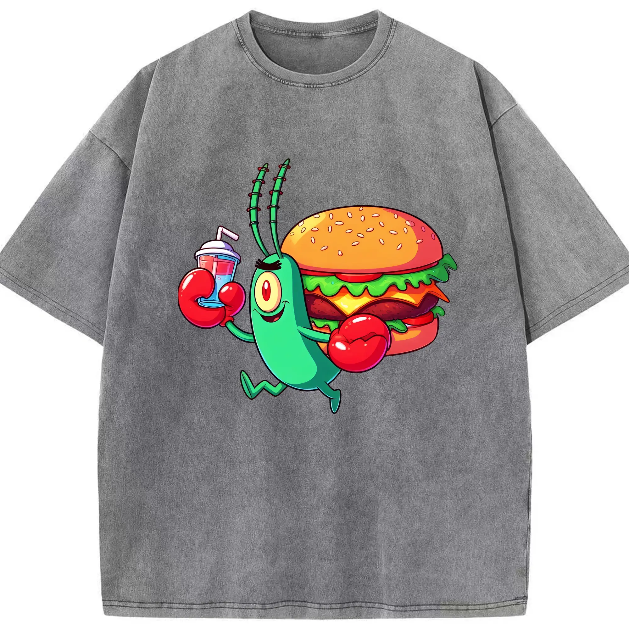 スポンジボブ グッズ プランクトン - 綿100% ヴィンテージ風 半袖Tシャツ ・ 背面プリント ・ 柔らか肌触り ・ 通気性 快適 ・ スポーツ カジュアル 外出用