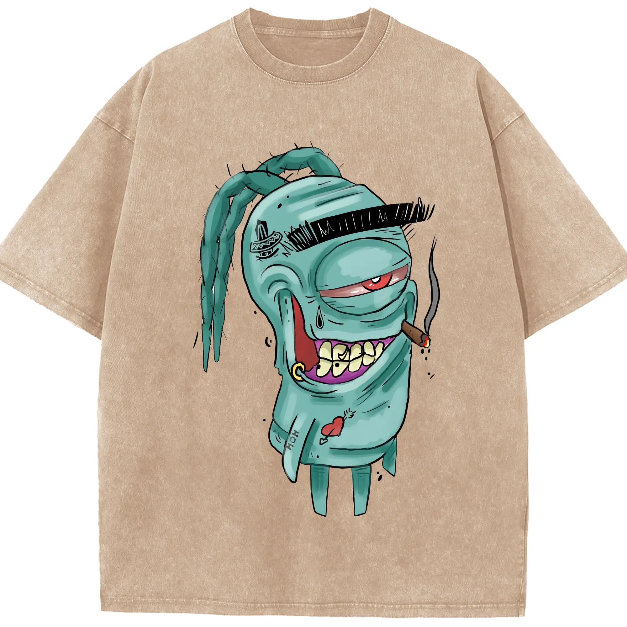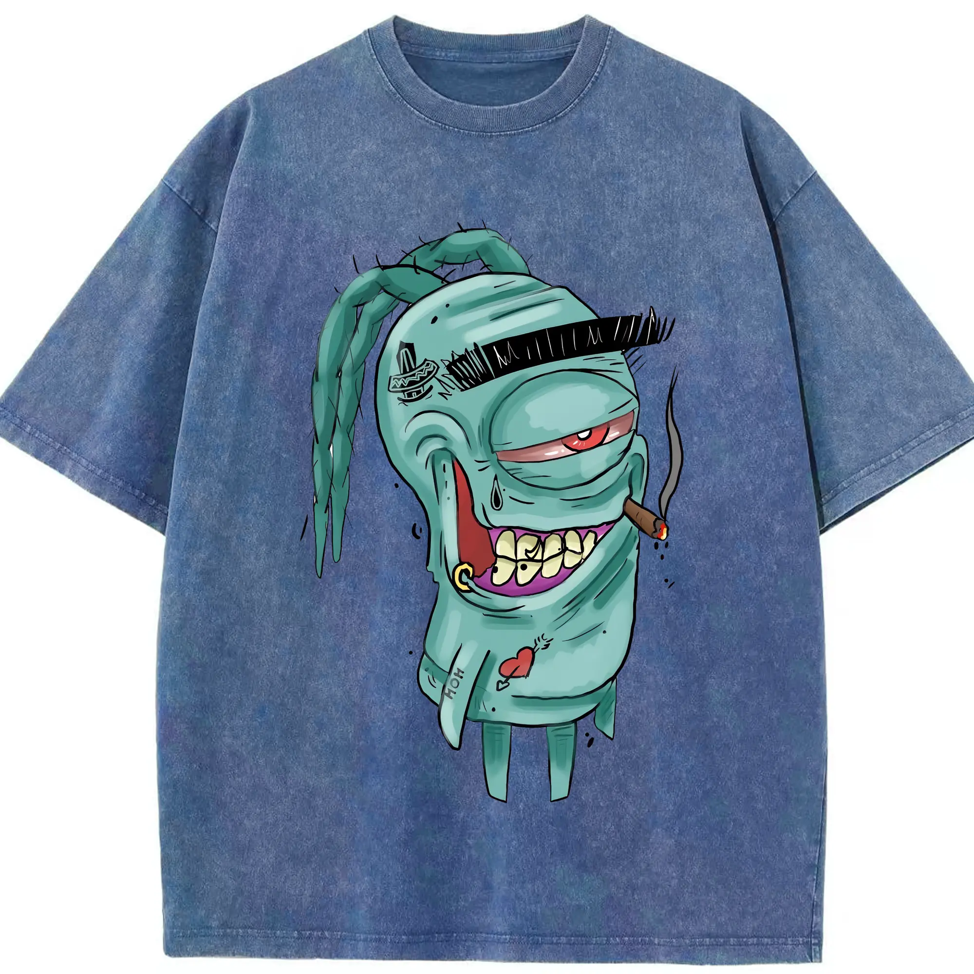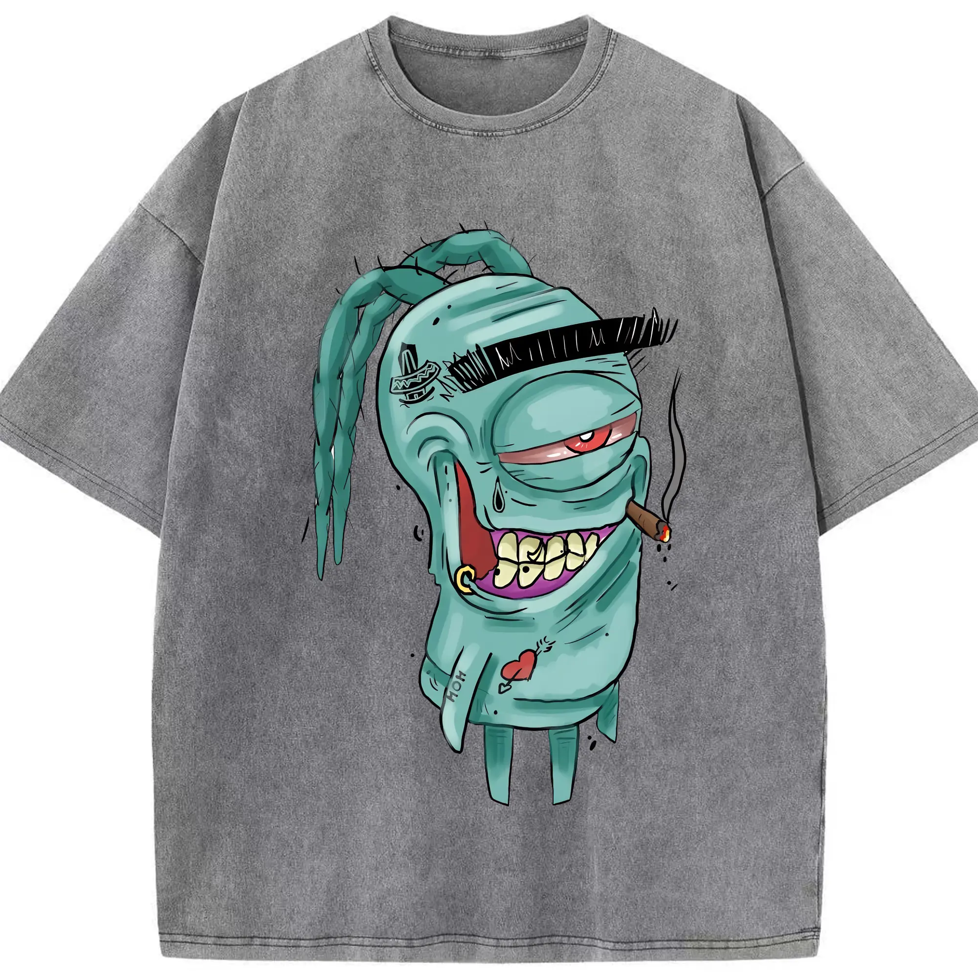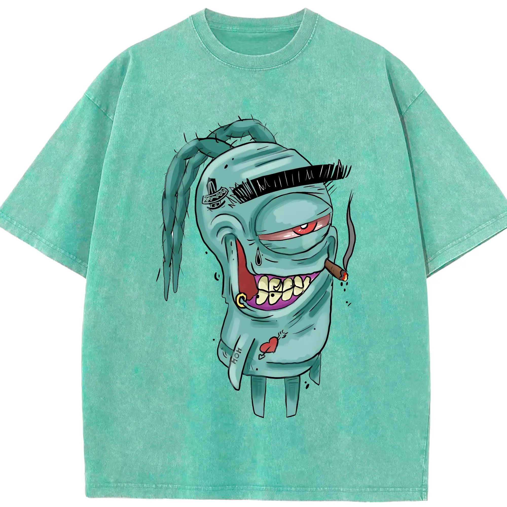 スポンジボブ グッズ プランクトン - 綿100% ヴィンテージ風 半袖Tシャツ ・ 背面プリント ・ 柔らか肌触り ・ 通気性 快適 ・ スポーツ カジュアル 外出用