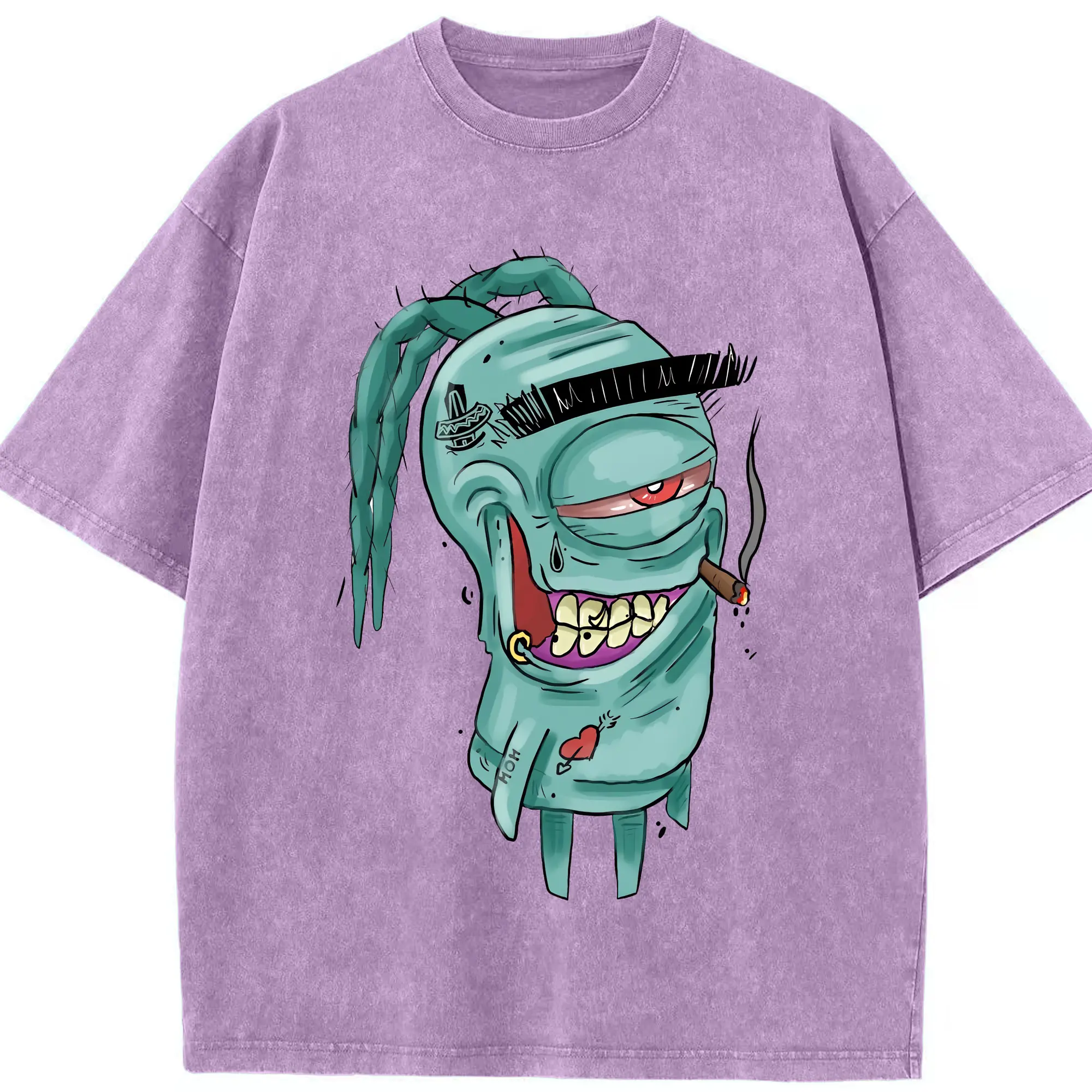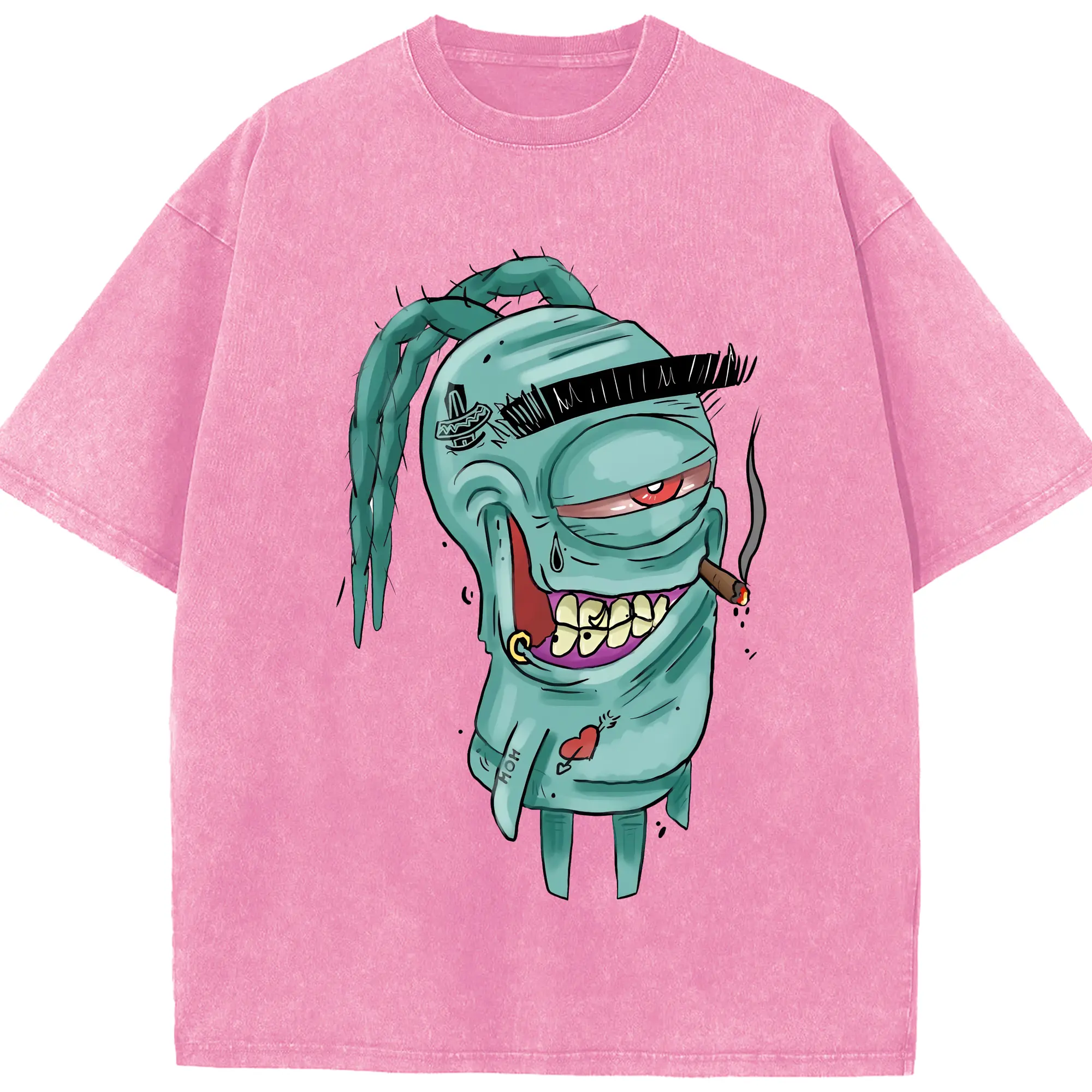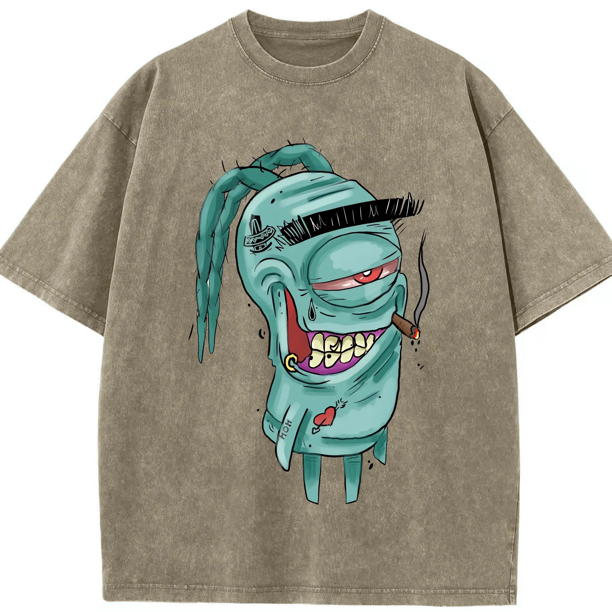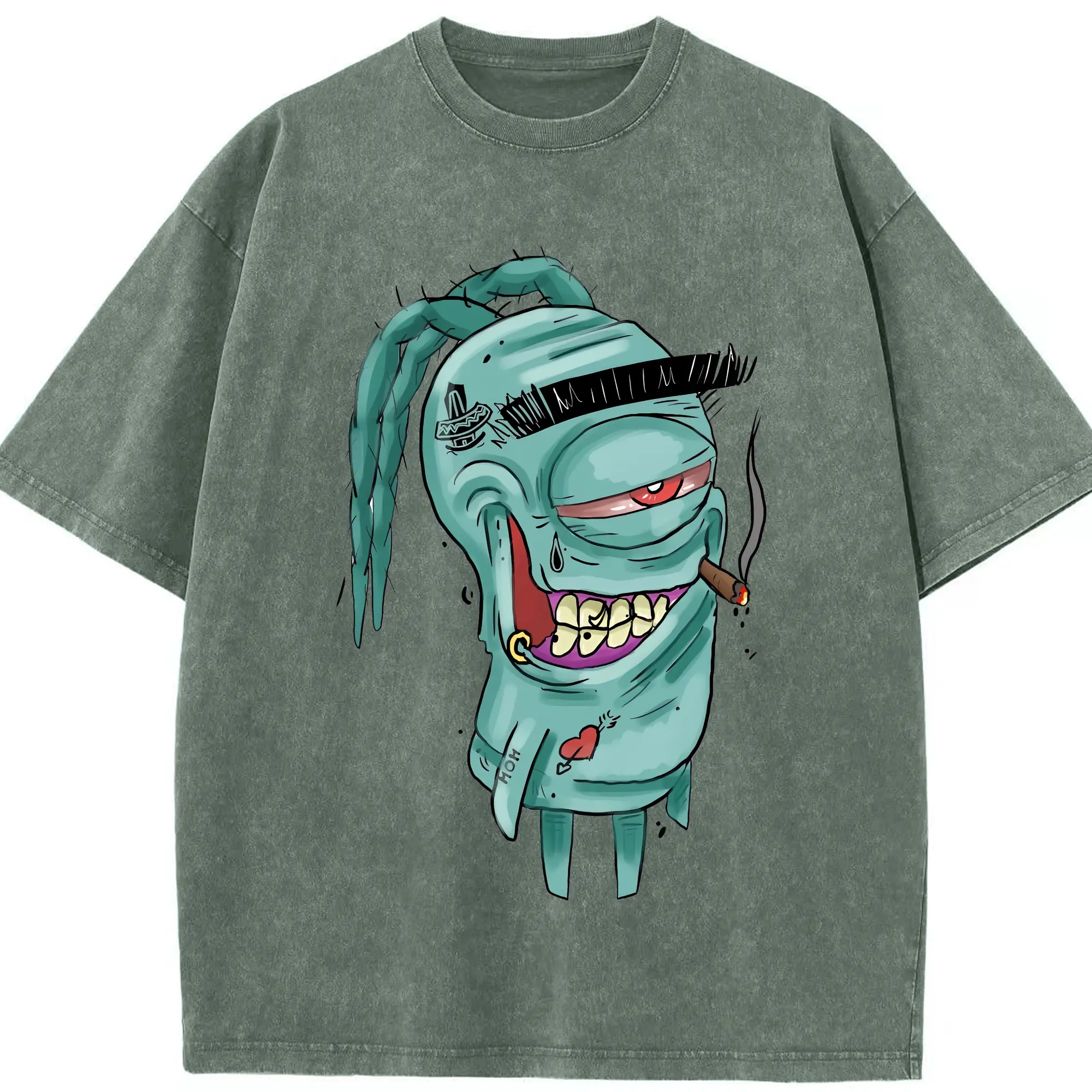 スポンジボブ グッズ プランクトン - 綿100% ヴィンテージ風 半袖Tシャツ ・ 背面プリント ・ 柔らか肌触り ・ 通気性 快適 ・ スポーツ カジュアル 外出用