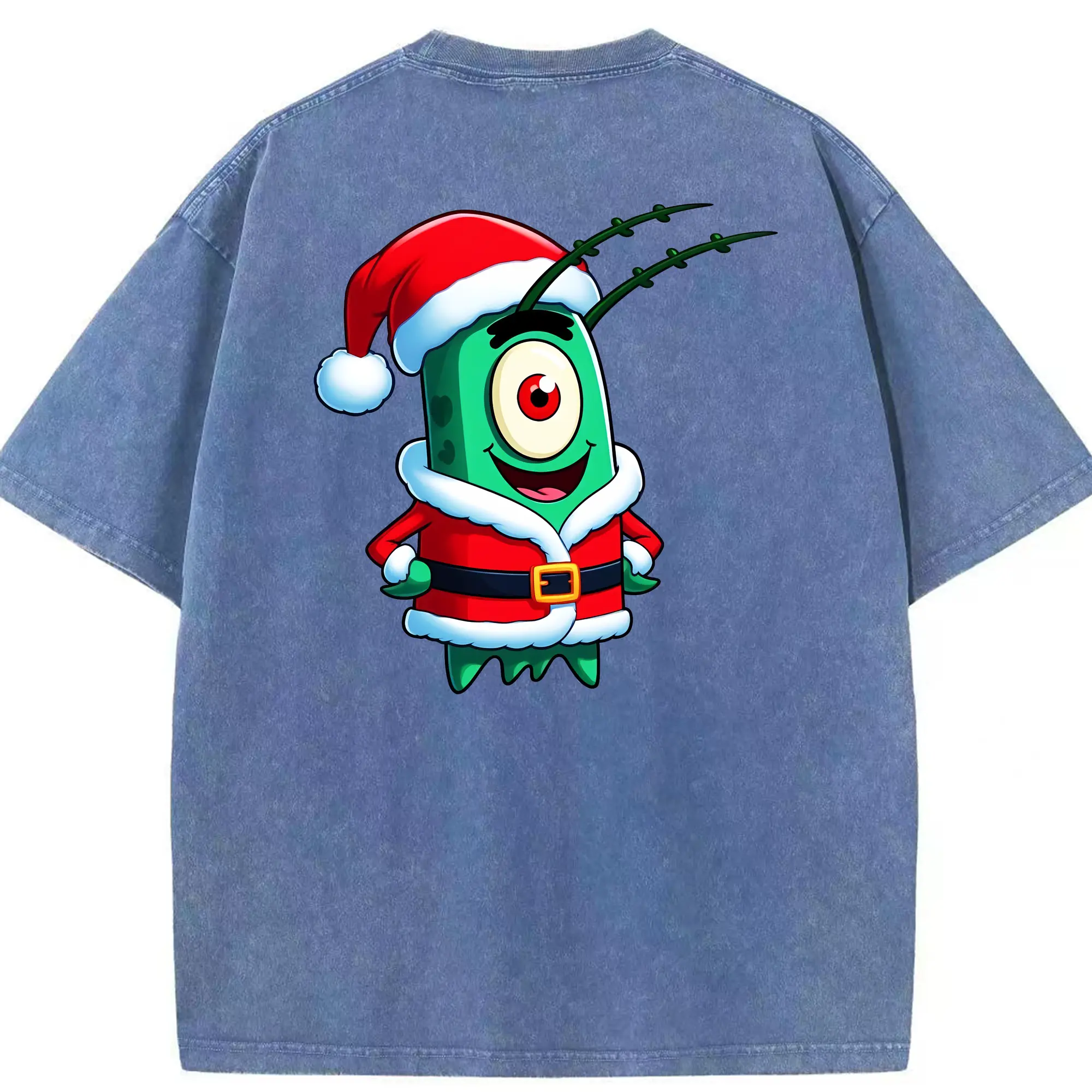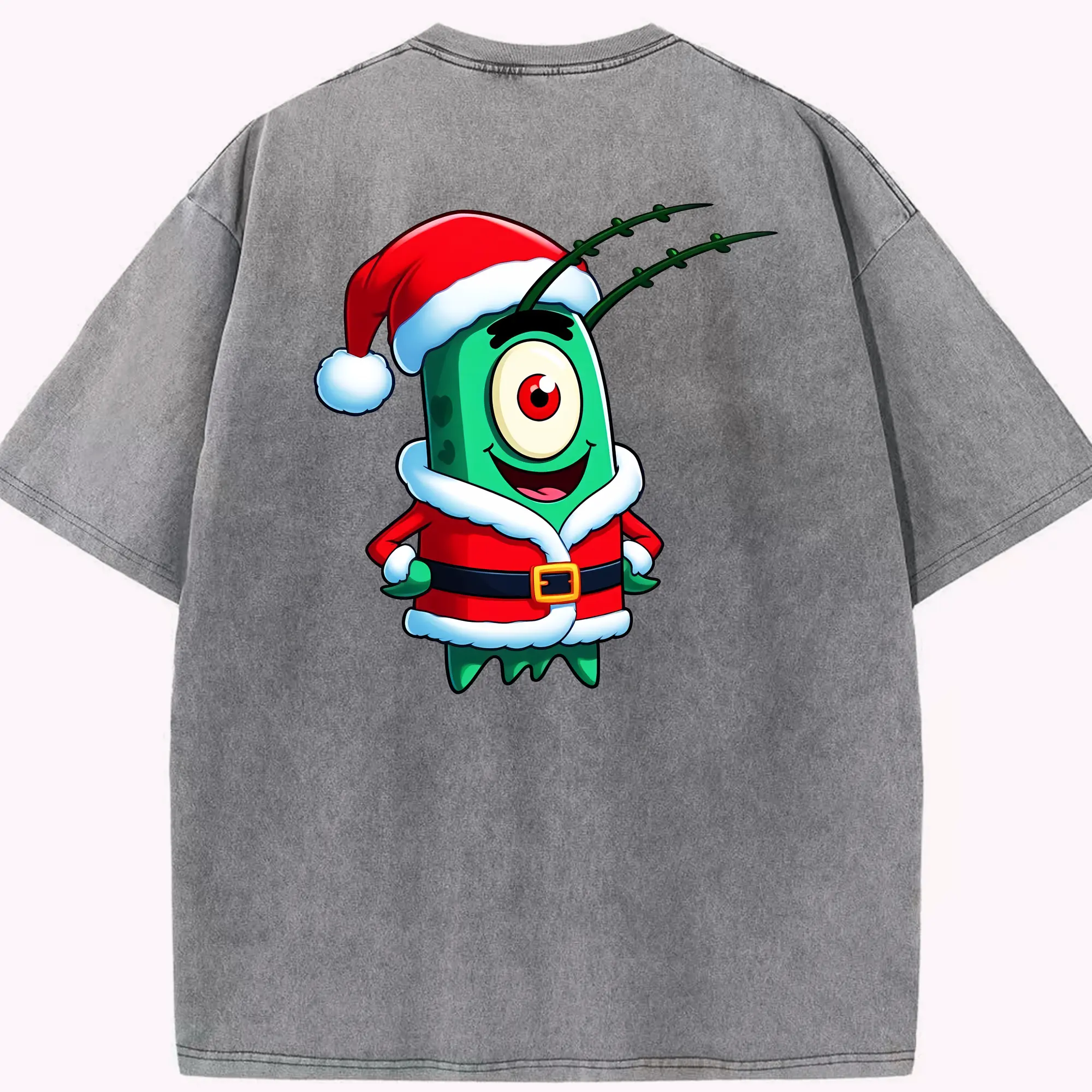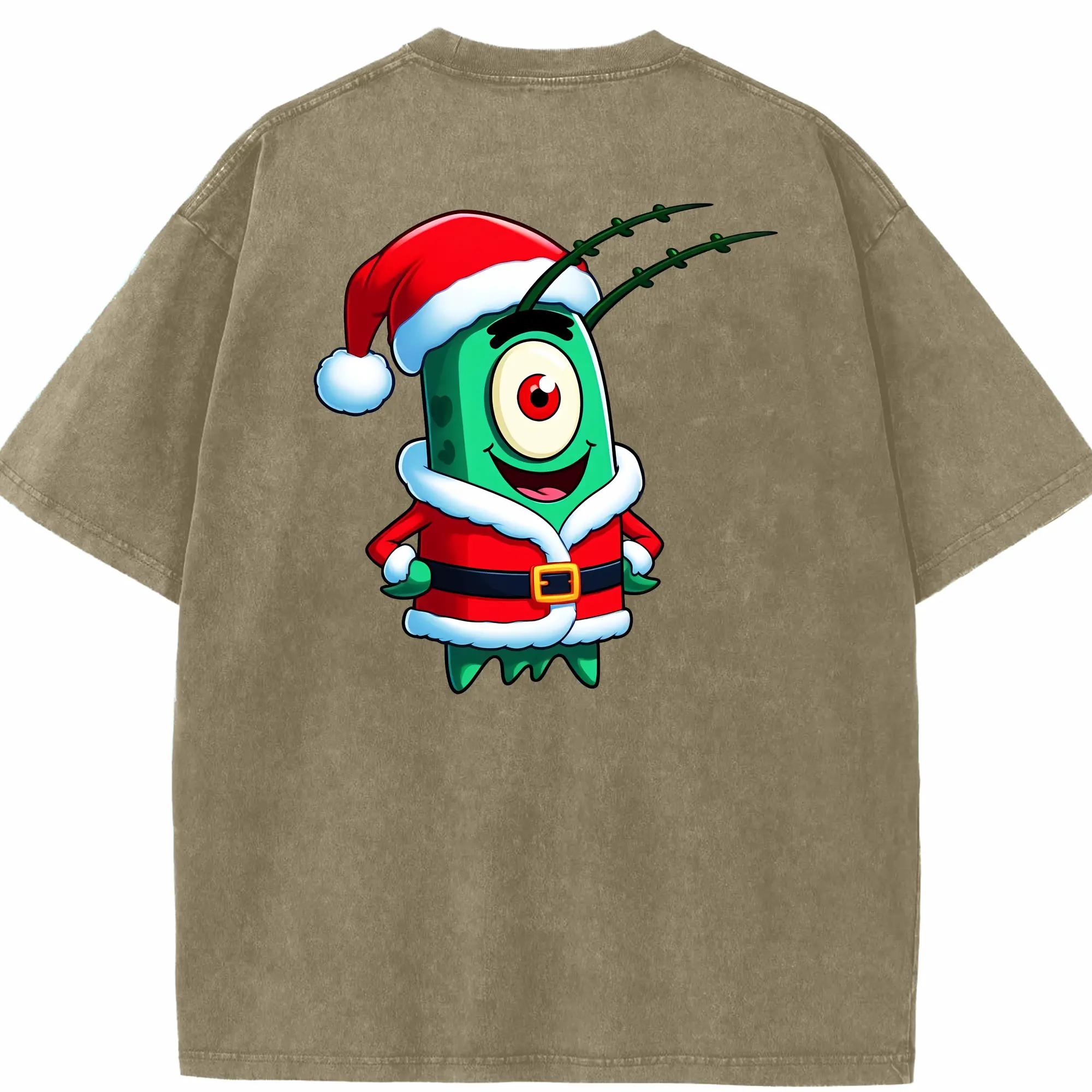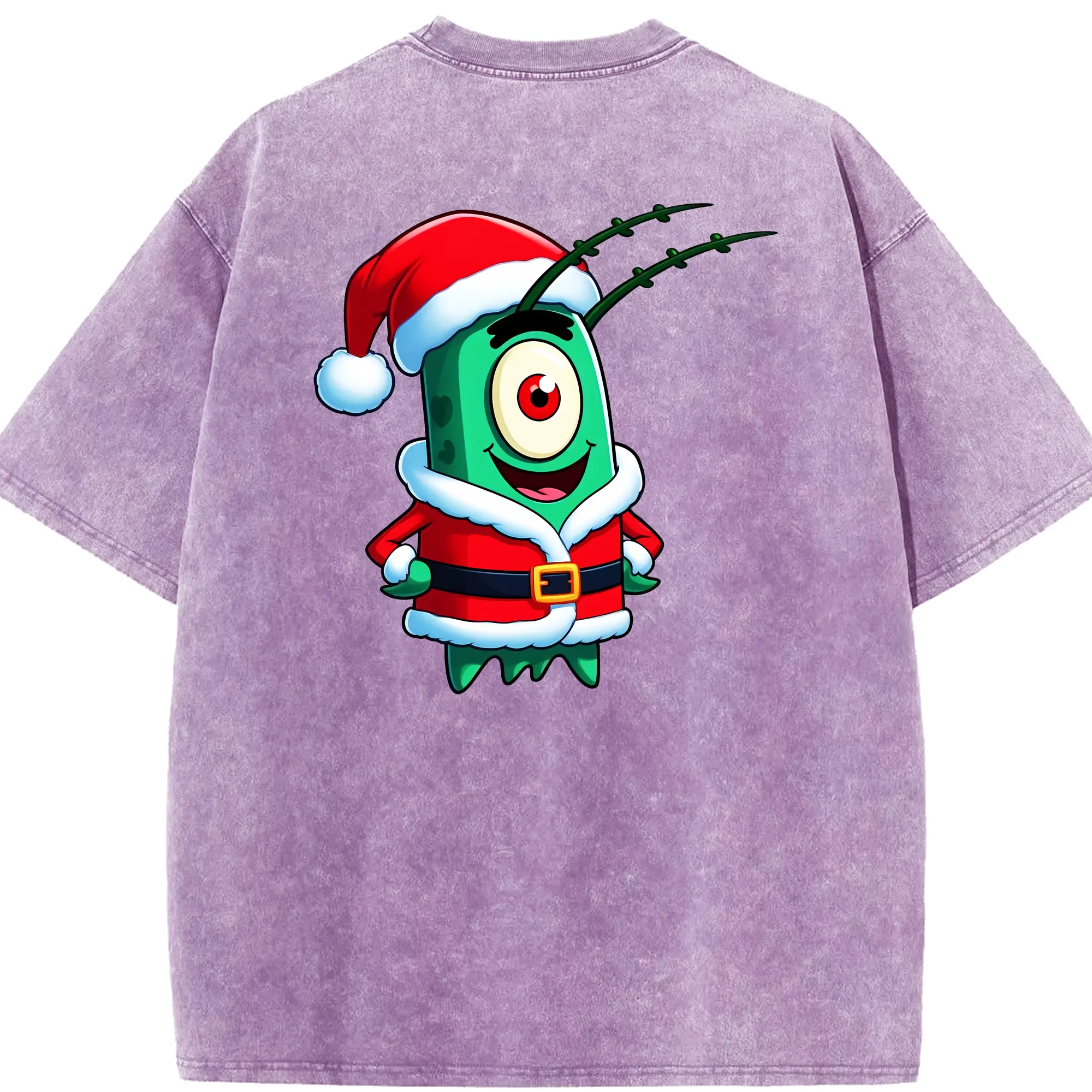 スポンジボブ グッズ プランクトン - 綿100% ヴィンテージ風 半袖Tシャツ ・ フロントプリント ・ 柔らか肌触り ・ 通気性 快適 ・ スポーツ カジュアル 外出用