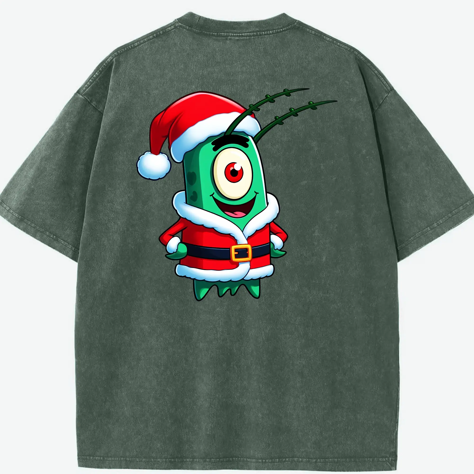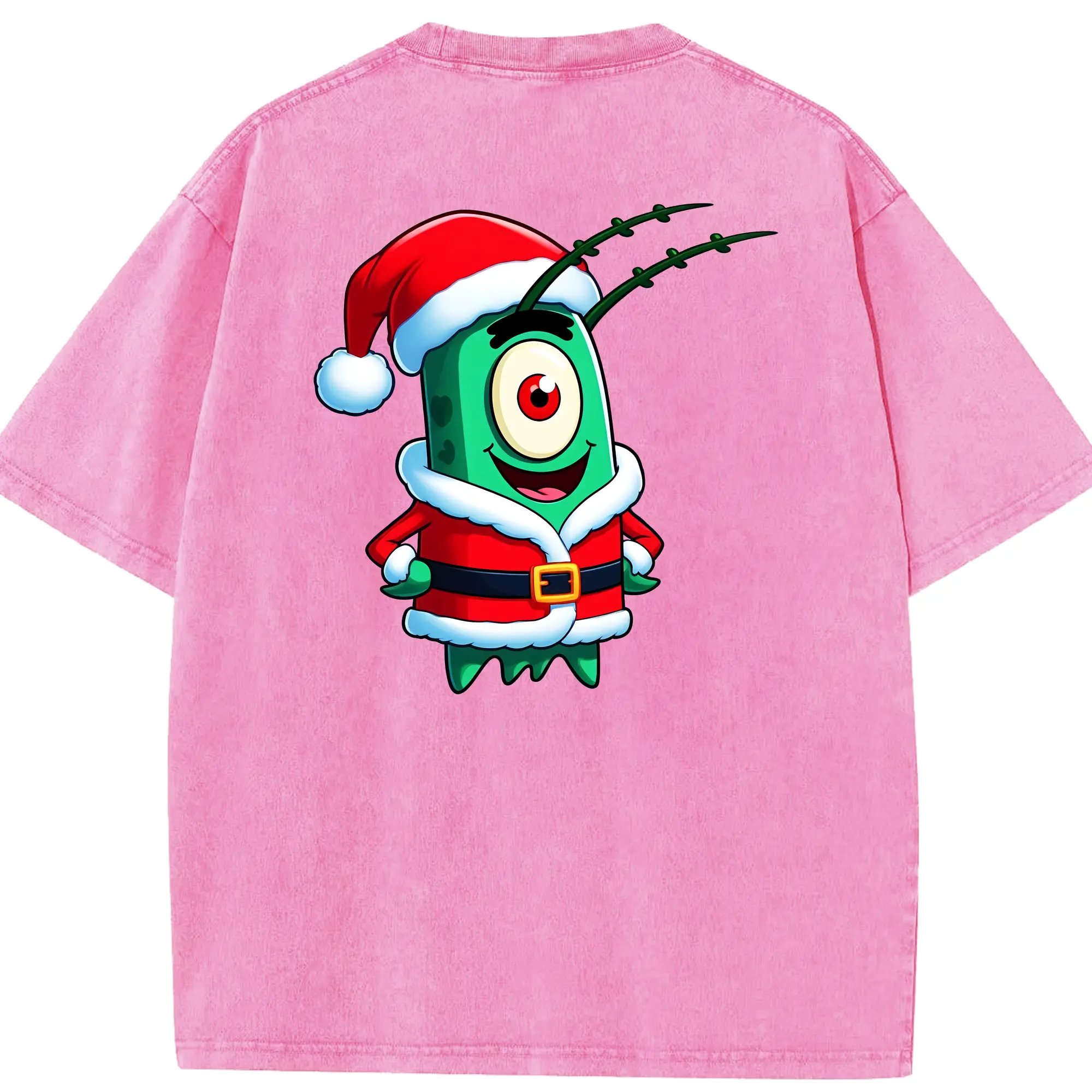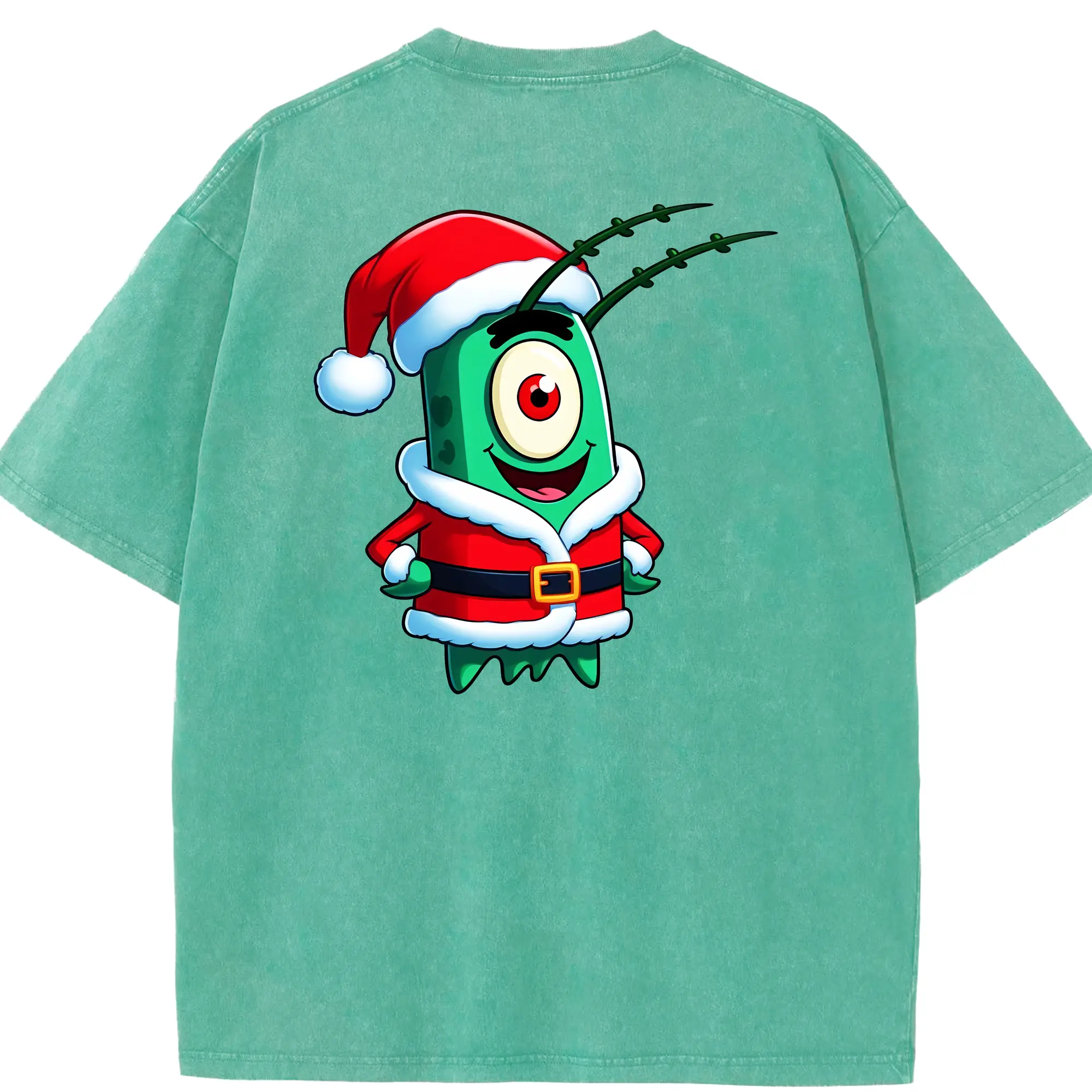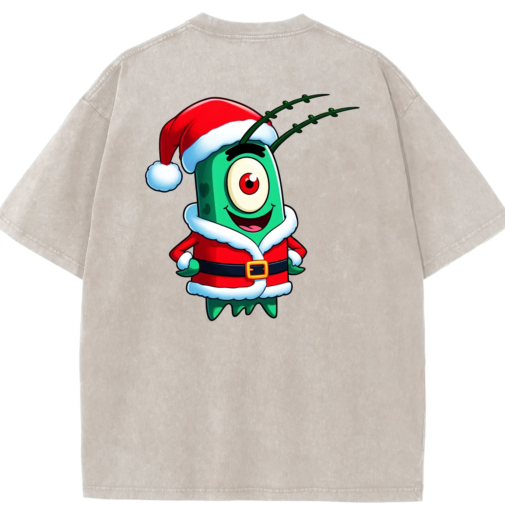 スポンジボブ グッズ プランクトン - 綿100% ヴィンテージ風 半袖Tシャツ ・ フロントプリント ・ 柔らか肌触り ・ 通気性 快適 ・ スポーツ カジュアル 外出用