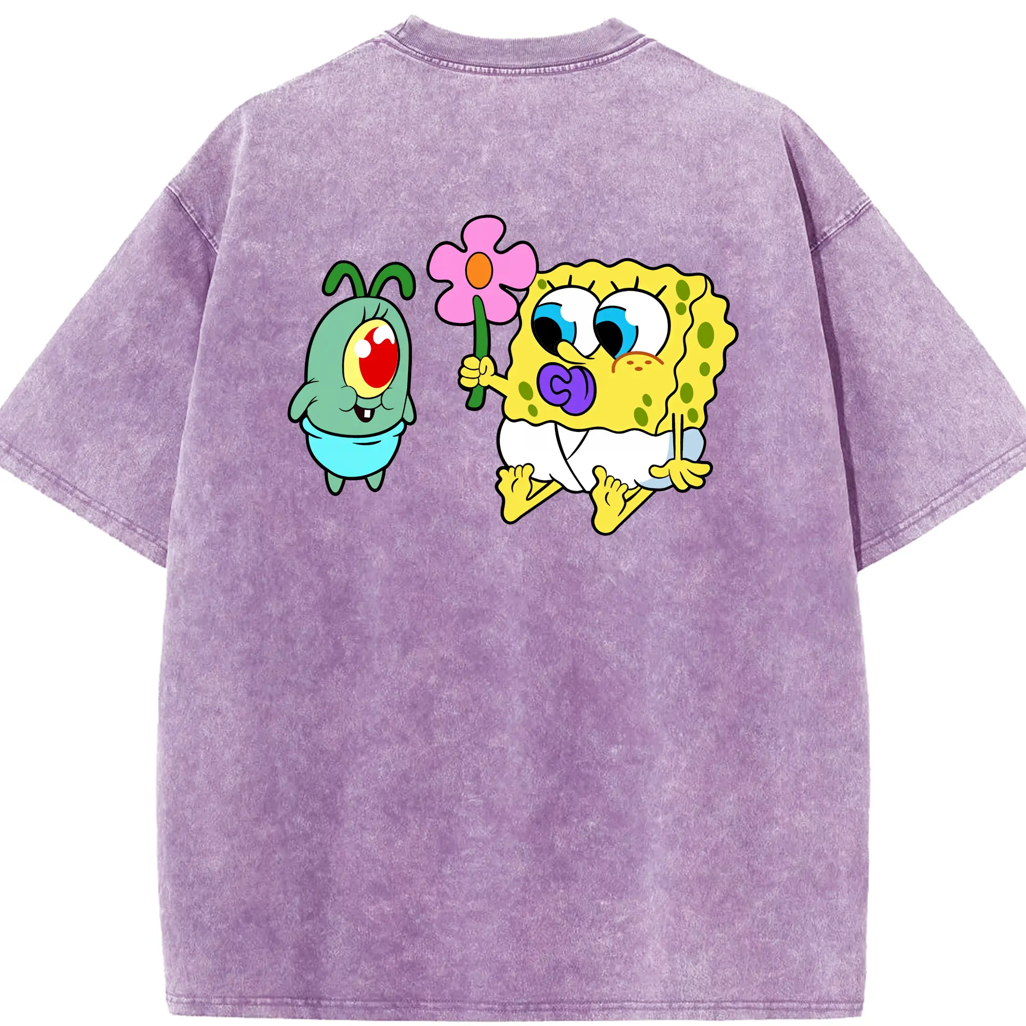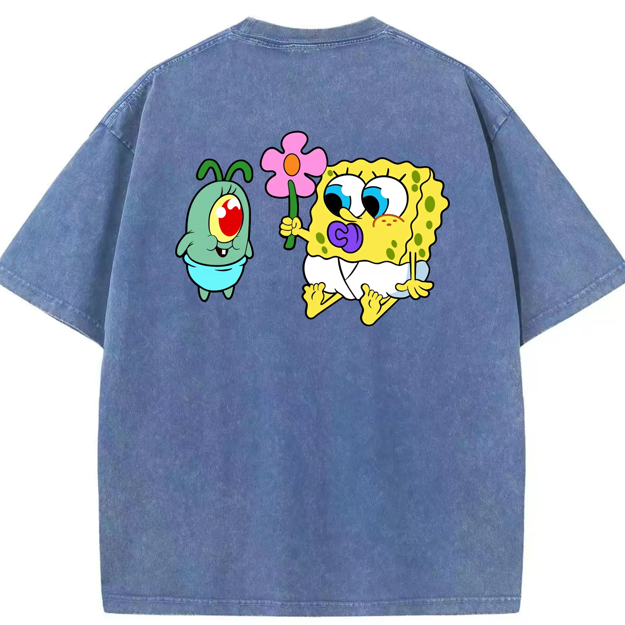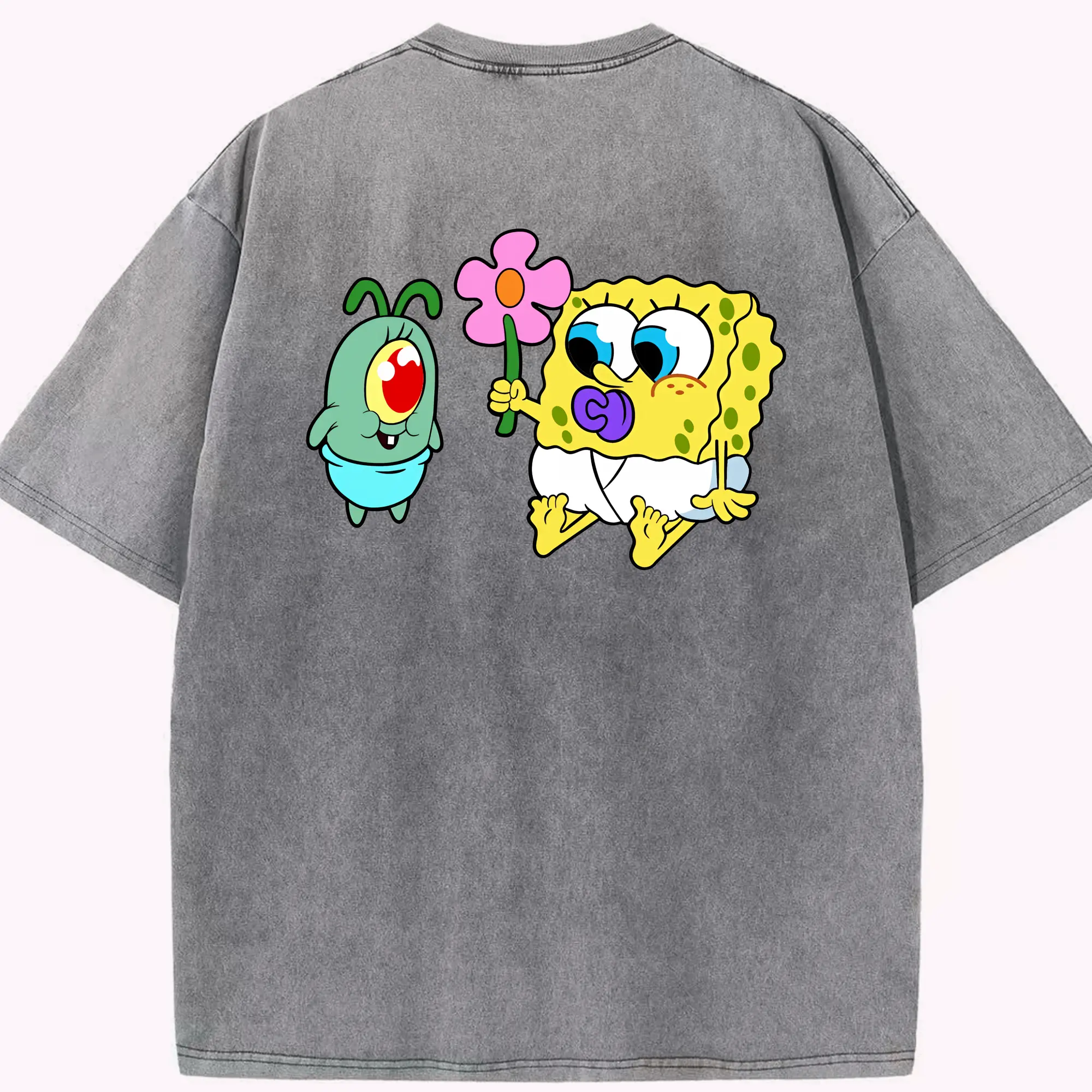 スポンジボブ グッズ プランクトン - 綿100% ヴィンテージ風 半袖Tシャツ ・ フロントプリント ・ 柔らか肌触り ・ 通気性 快適 ・ スポーツ カジュアル 外出用