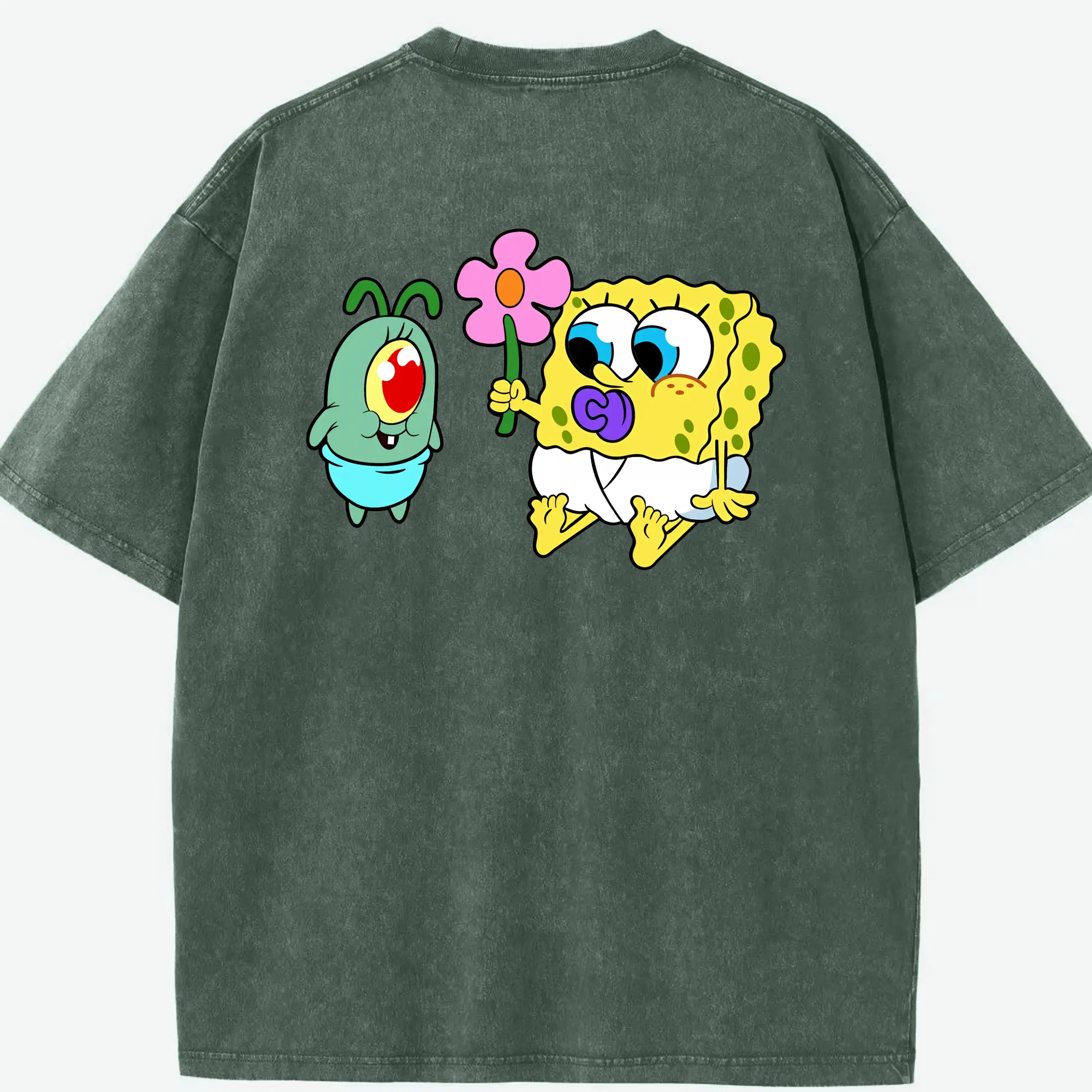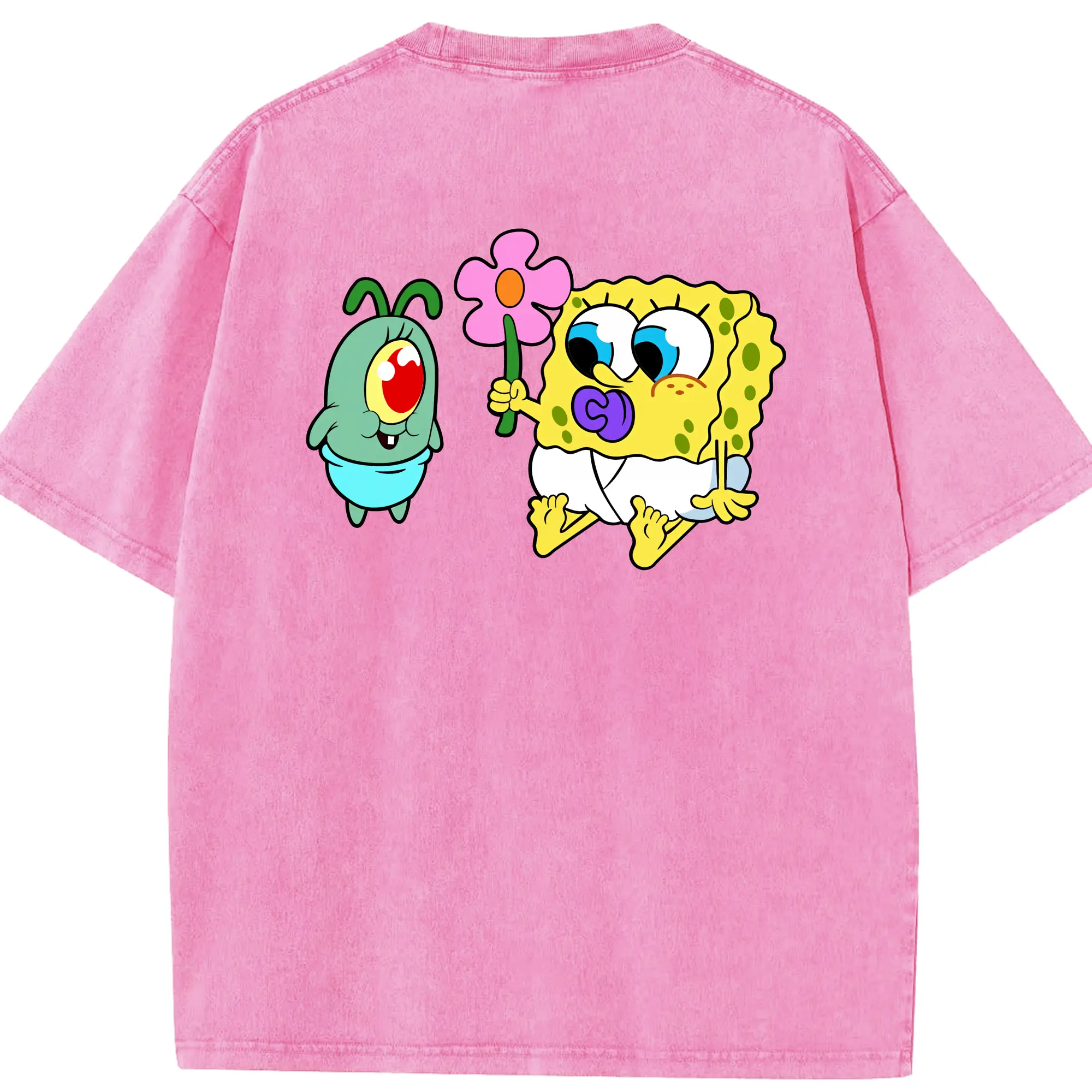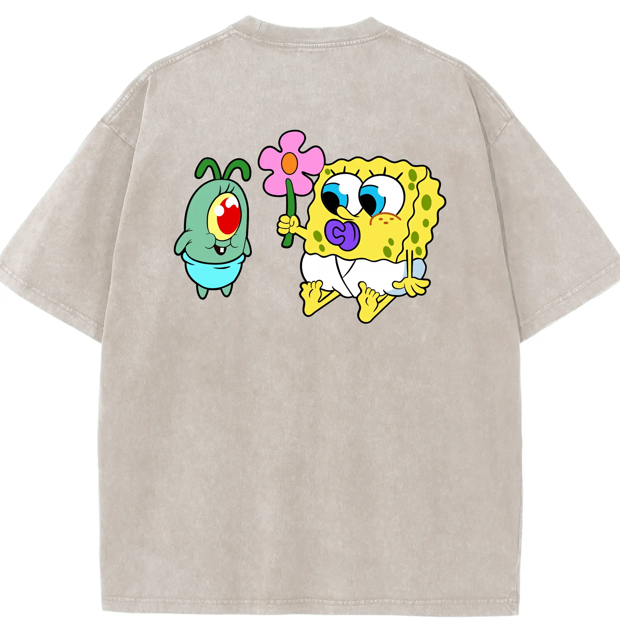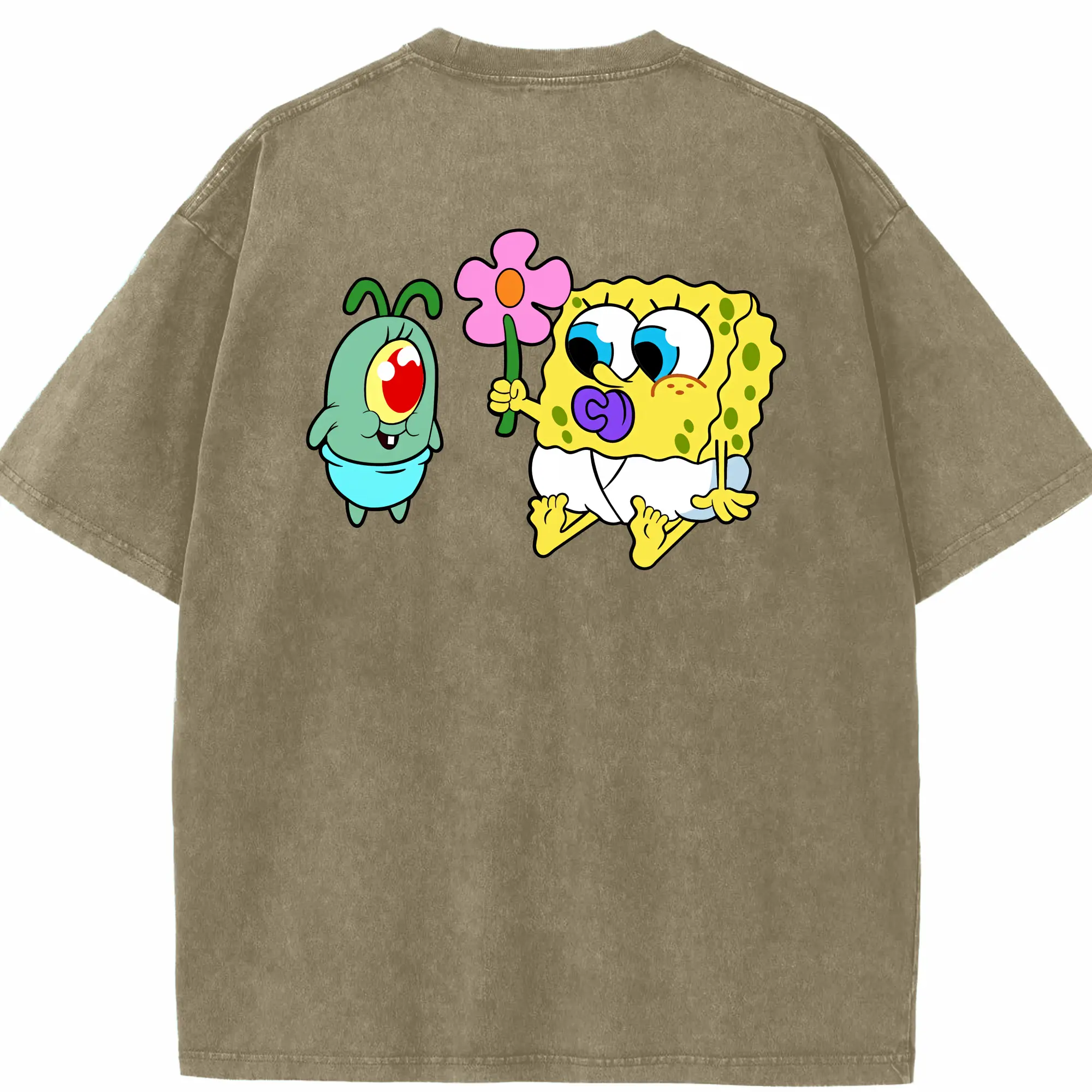 スポンジボブ グッズ プランクトン - 綿100% ヴィンテージ風 半袖Tシャツ ・ フロントプリント ・ 柔らか肌触り ・ 通気性 快適 ・ スポーツ カジュアル 外出用