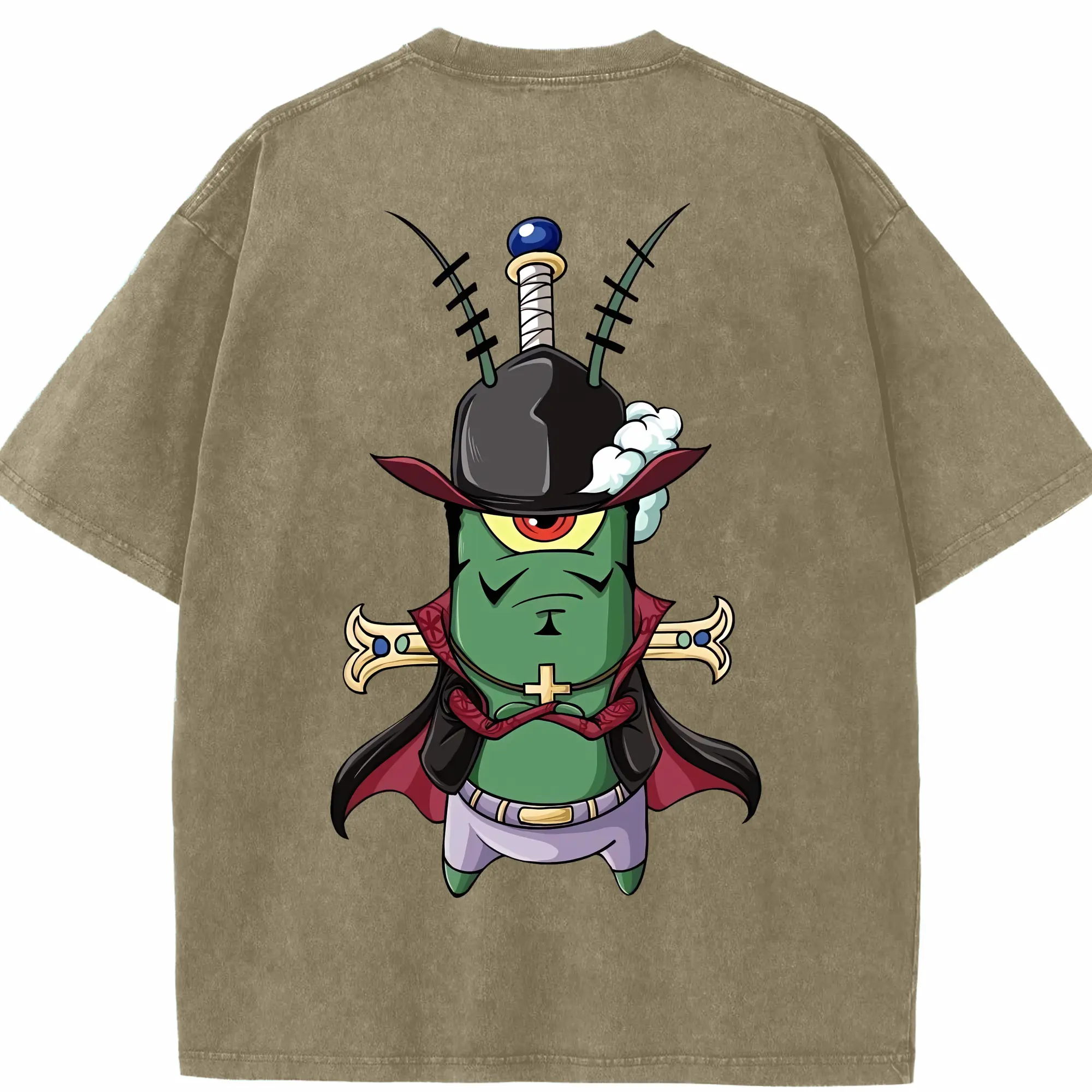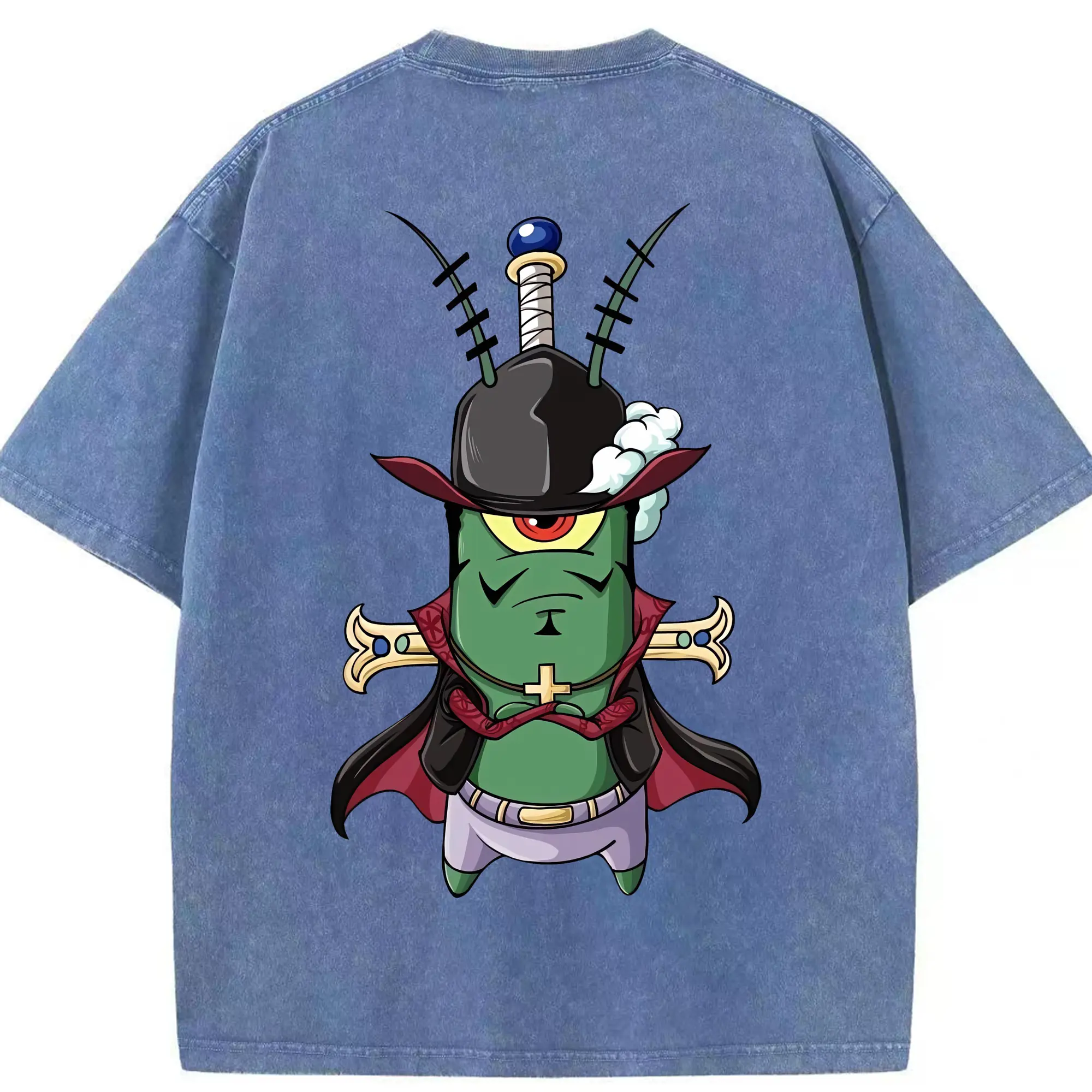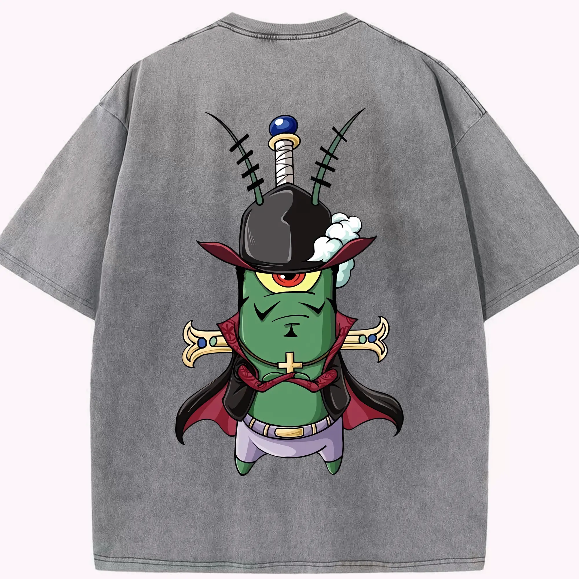 スポンジボブ グッズ プランクトン - 綿100% ヴィンテージ風 半袖Tシャツ ・ フロントプリント ・ 柔らか肌触り ・ 通気性 快適 ・ スポーツ カジュアル 外出用