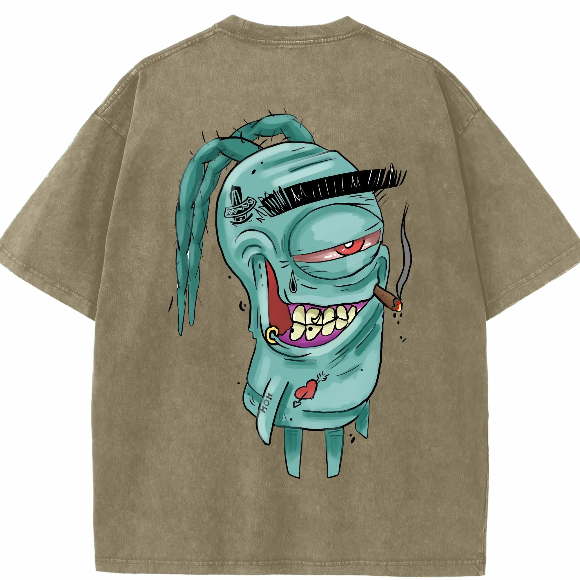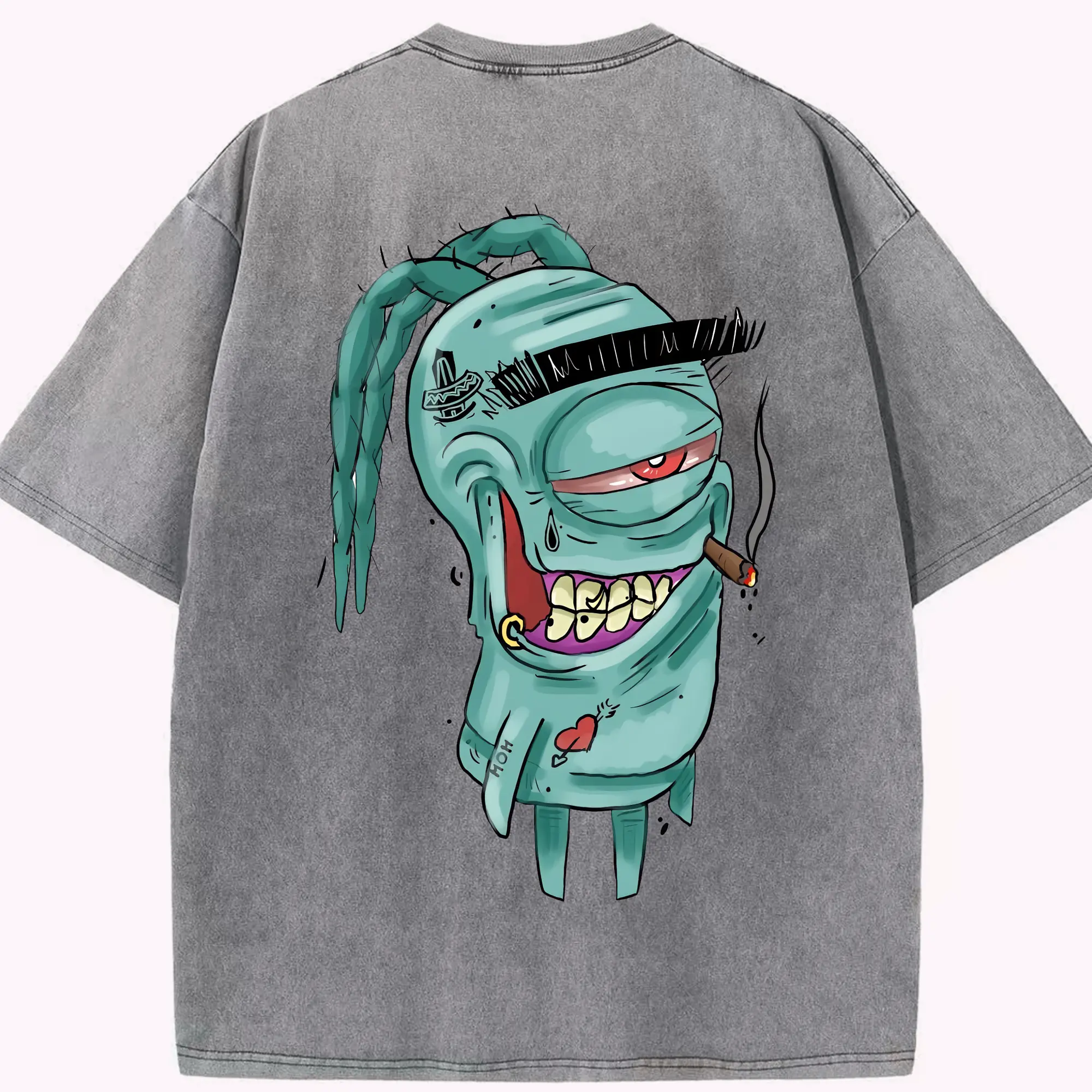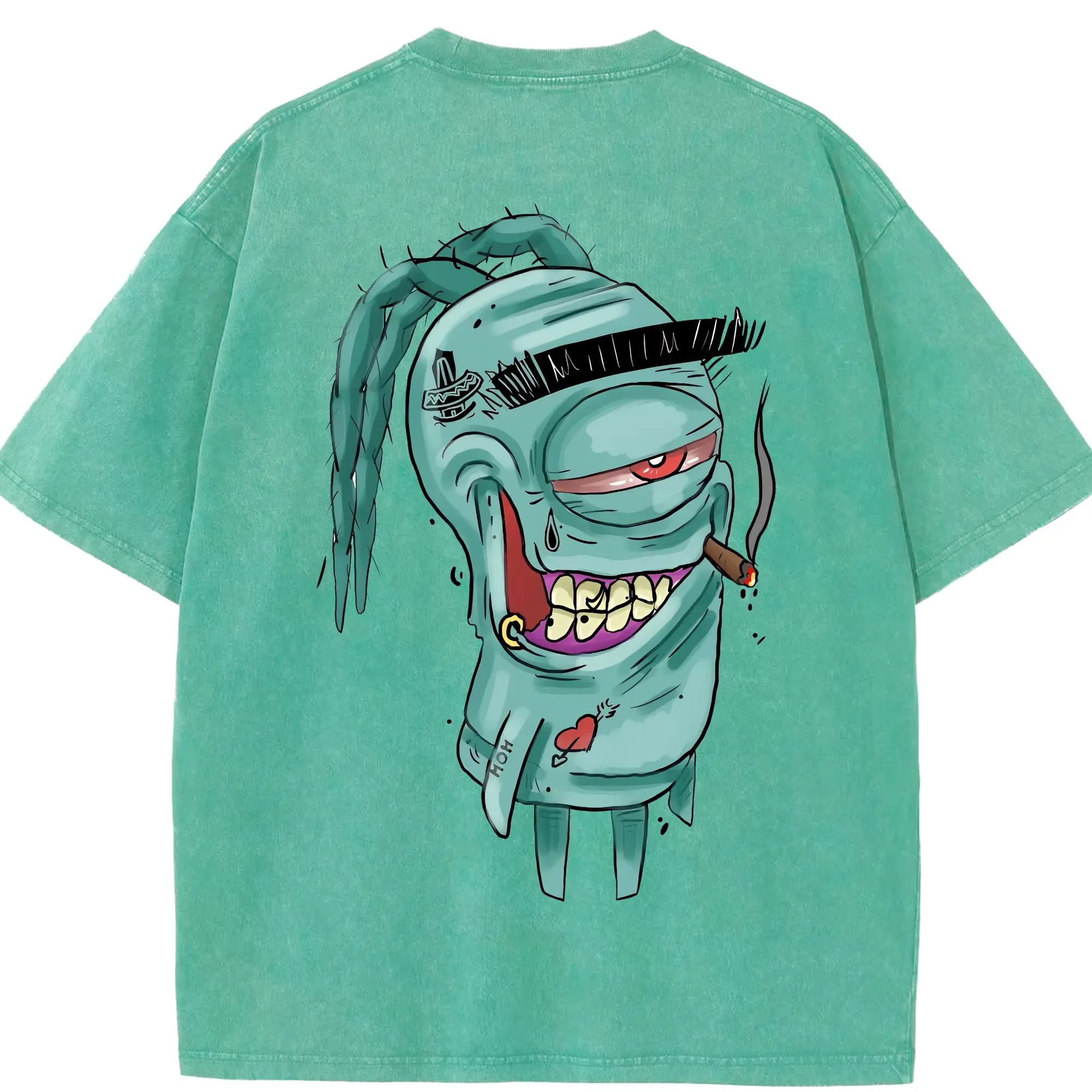 スポンジボブ グッズ プランクトン - 綿100% ヴィンテージ風 半袖Tシャツ ・ フロントプリント ・ 柔らか肌触り ・ 通気性 快適 ・ スポーツ カジュアル 外出用