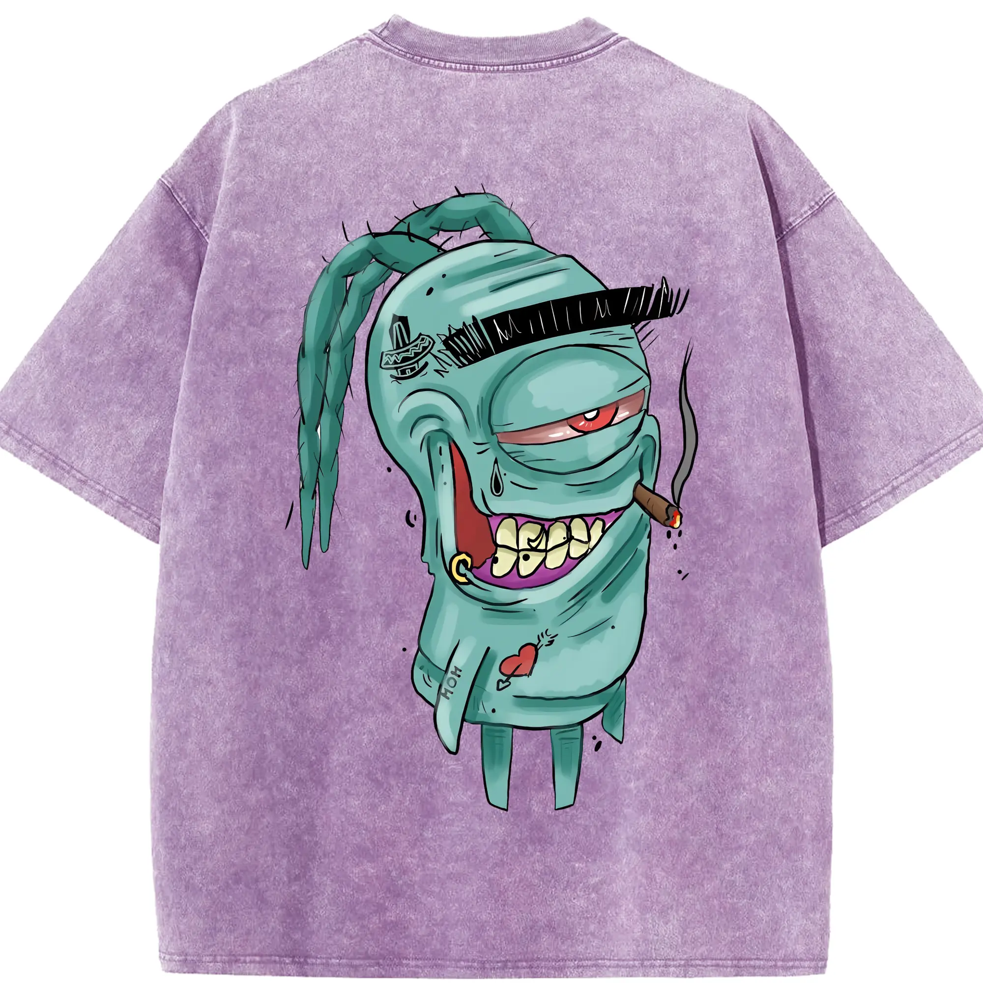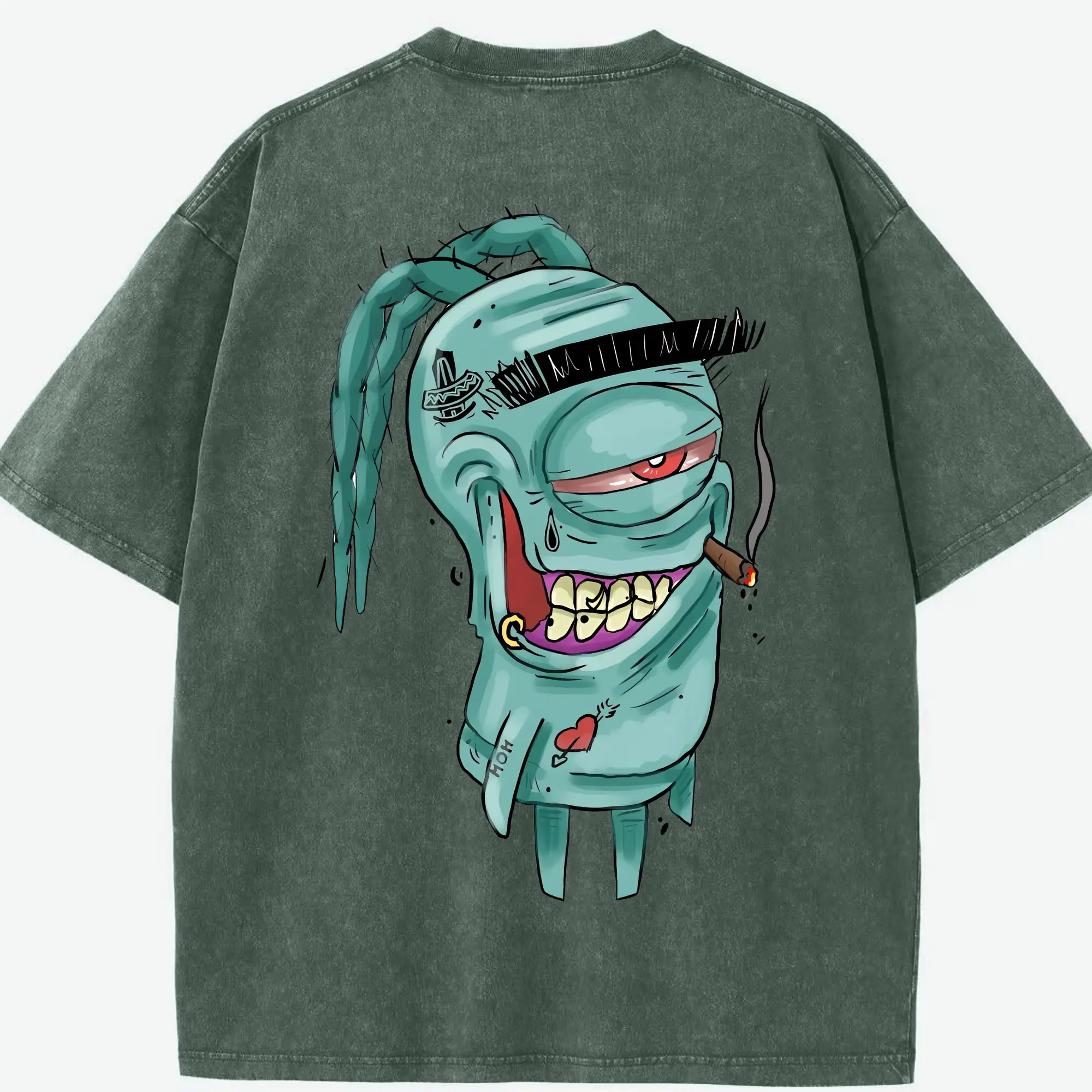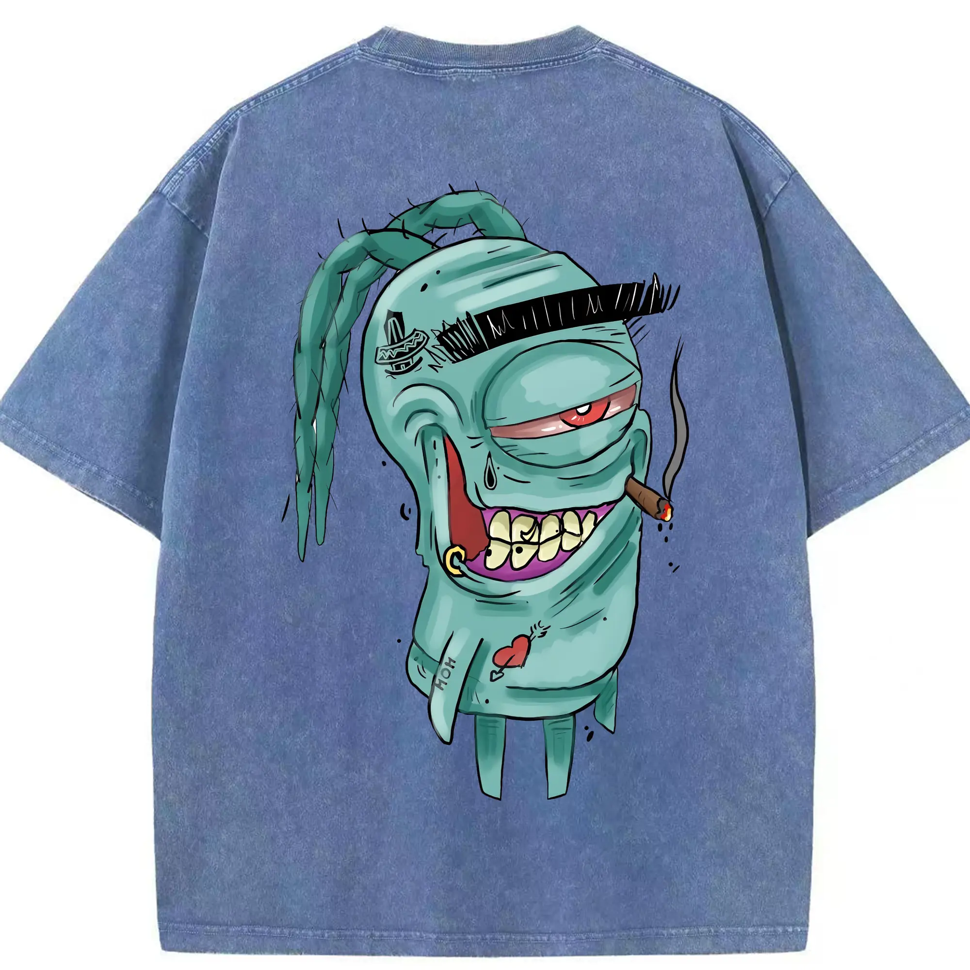 スポンジボブ グッズ プランクトン - 綿100% ヴィンテージ風 半袖Tシャツ ・ フロントプリント ・ 柔らか肌触り ・ 通気性 快適 ・ スポーツ カジュアル 外出用
