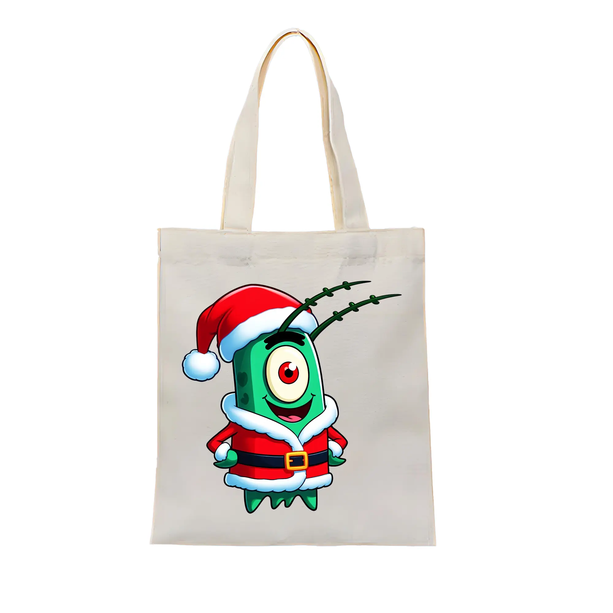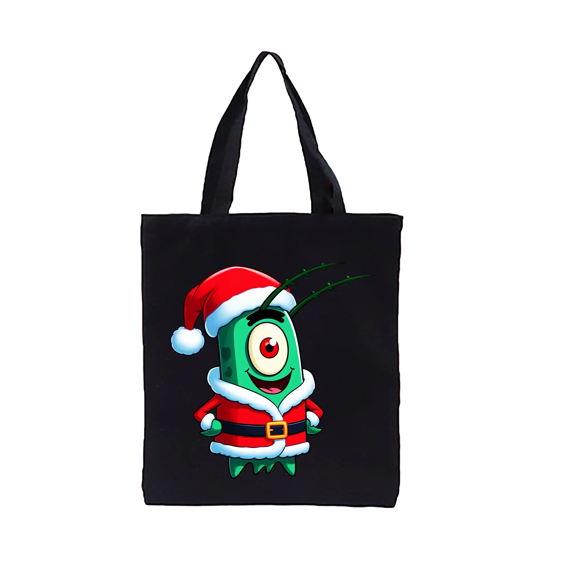 スポンジボブ グッズ プランクトン - 縦型キャンバス手提げバッグ(トートバッグ) ・ キャンバス素材 ・ ショッピング用 ・ 軽量 丈夫 お手入れ簡単