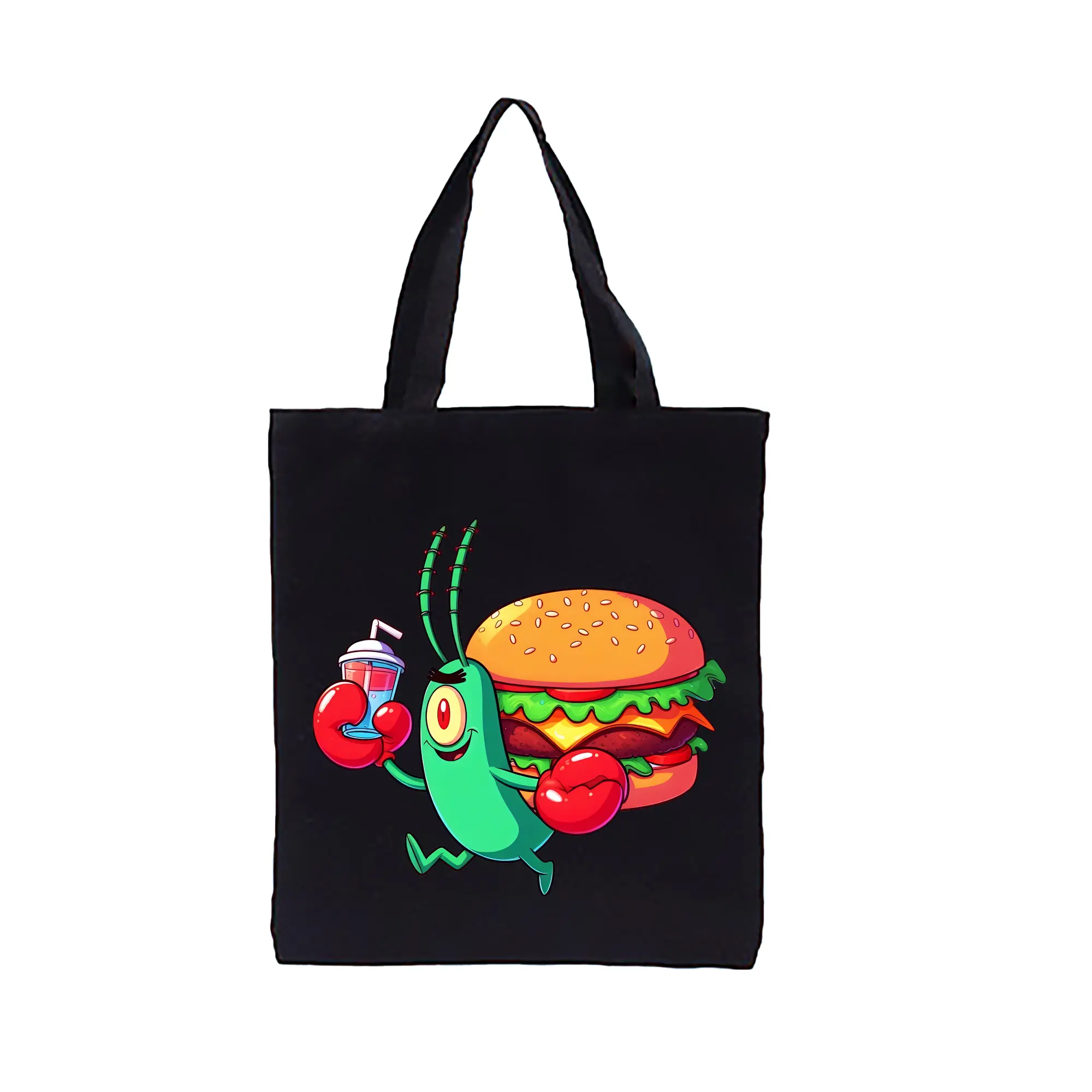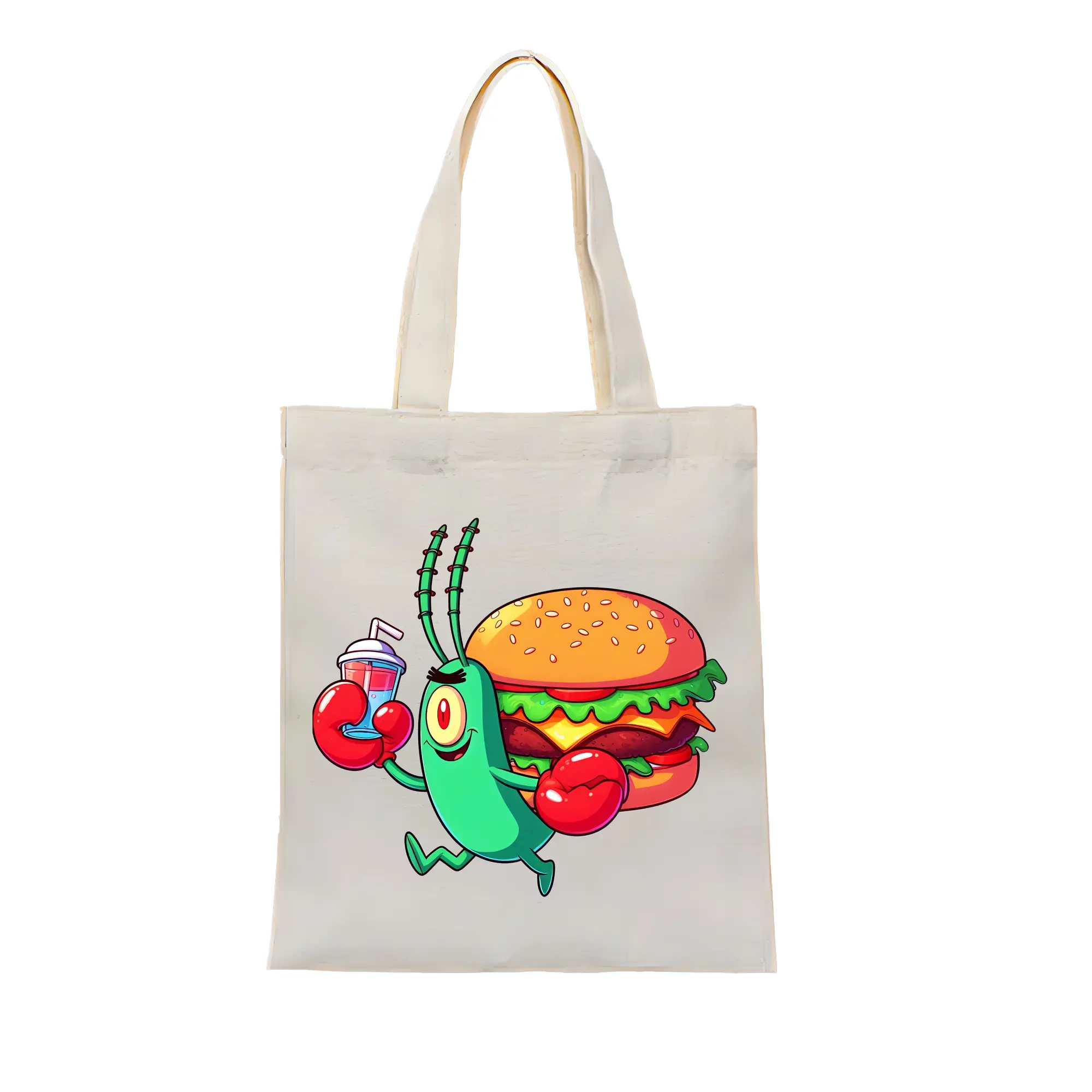 スポンジボブ グッズ プランクトン - 縦型キャンバス手提げバッグ(トートバッグ) ・ キャンバス素材 ・ ショッピング用 ・ 軽量 丈夫 お手入れ簡単
