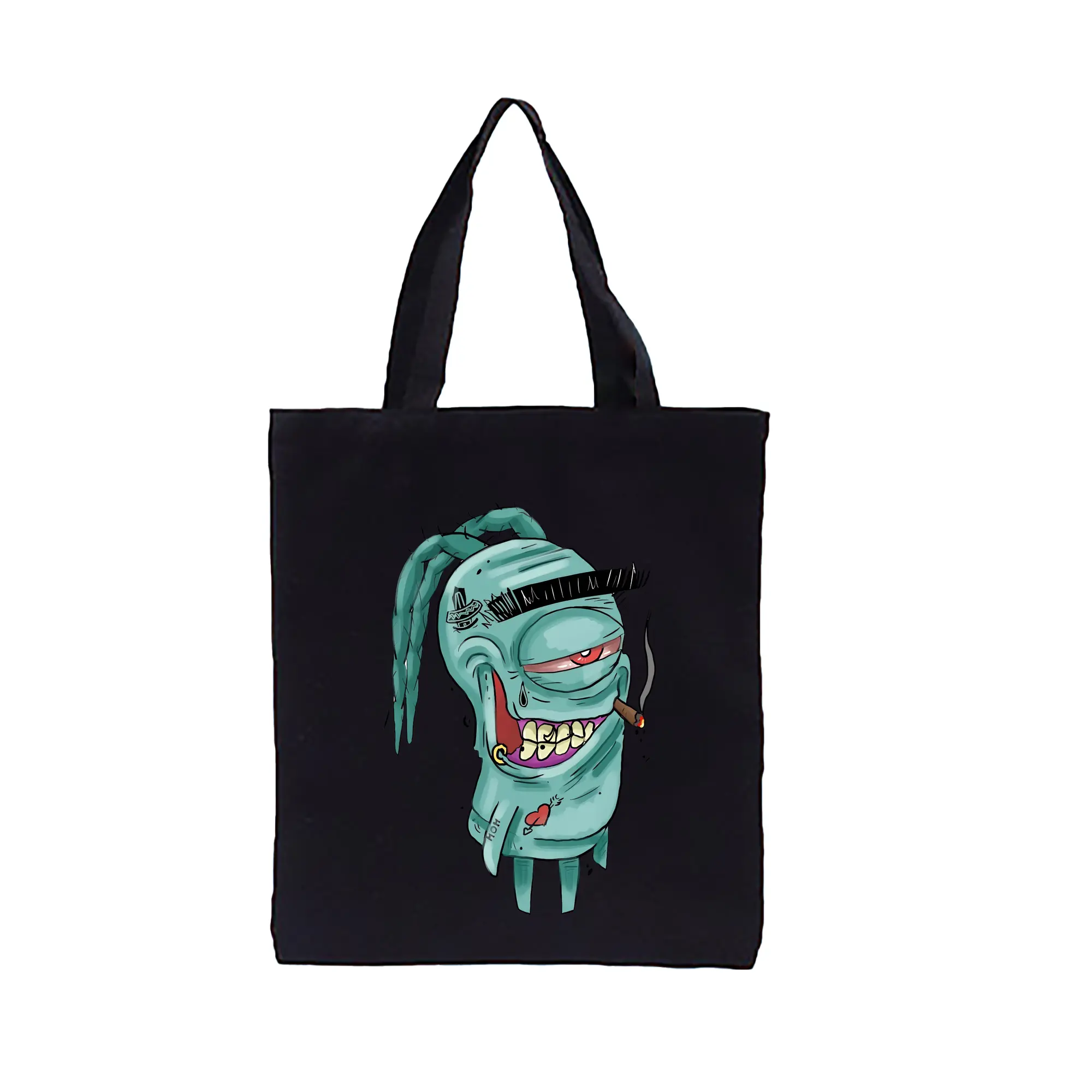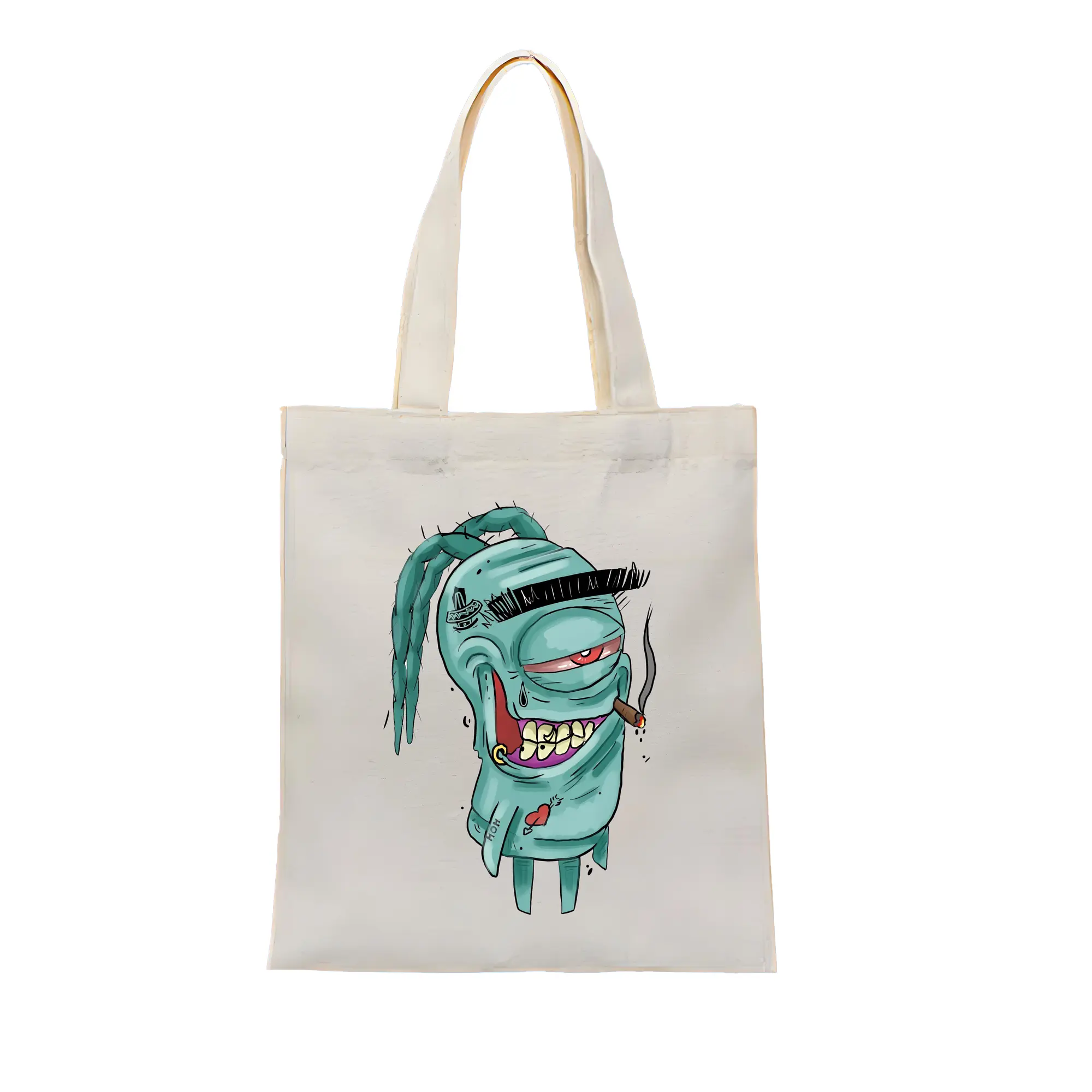 スポンジボブ グッズ プランクトン - 縦型キャンバス手提げバッグ(トートバッグ) ・ キャンバス素材 ・ ショッピング用 ・ 軽量 丈夫 お手入れ簡単