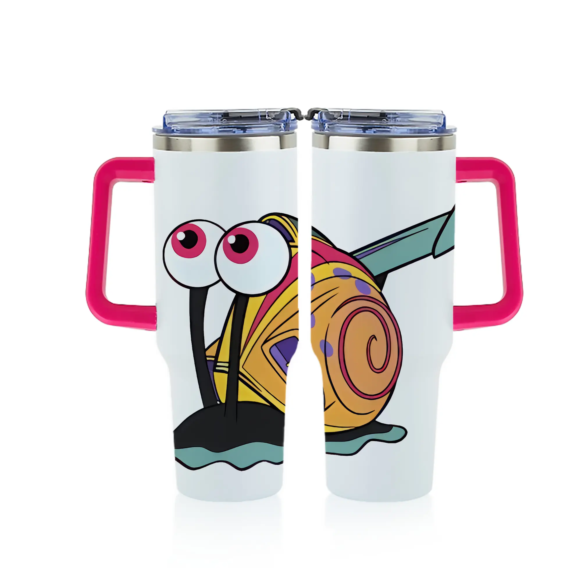 スポンジボブ グッズ カタツムリさん - 1200mL フルプリント車用タンブラー ・ 304ステンレス 内側 ・ 201ステンレス 外側 ・ 保温 保冷 ・ 通勤 ドライブ アウトドア用