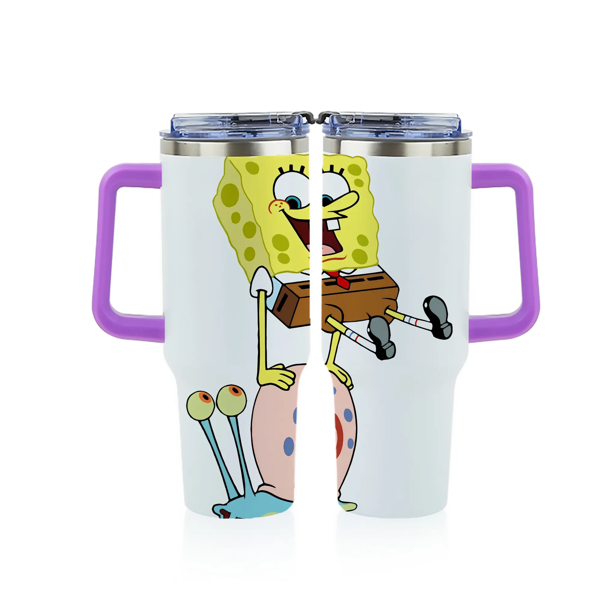 スポンジボブ グッズ カタツムリさん - 1200mL フルプリント車用タンブラー ・ 304ステンレス 内側 ・ 201ステンレス 外側 ・ 保温 保冷 ・ 通勤 ドライブ アウトドア用