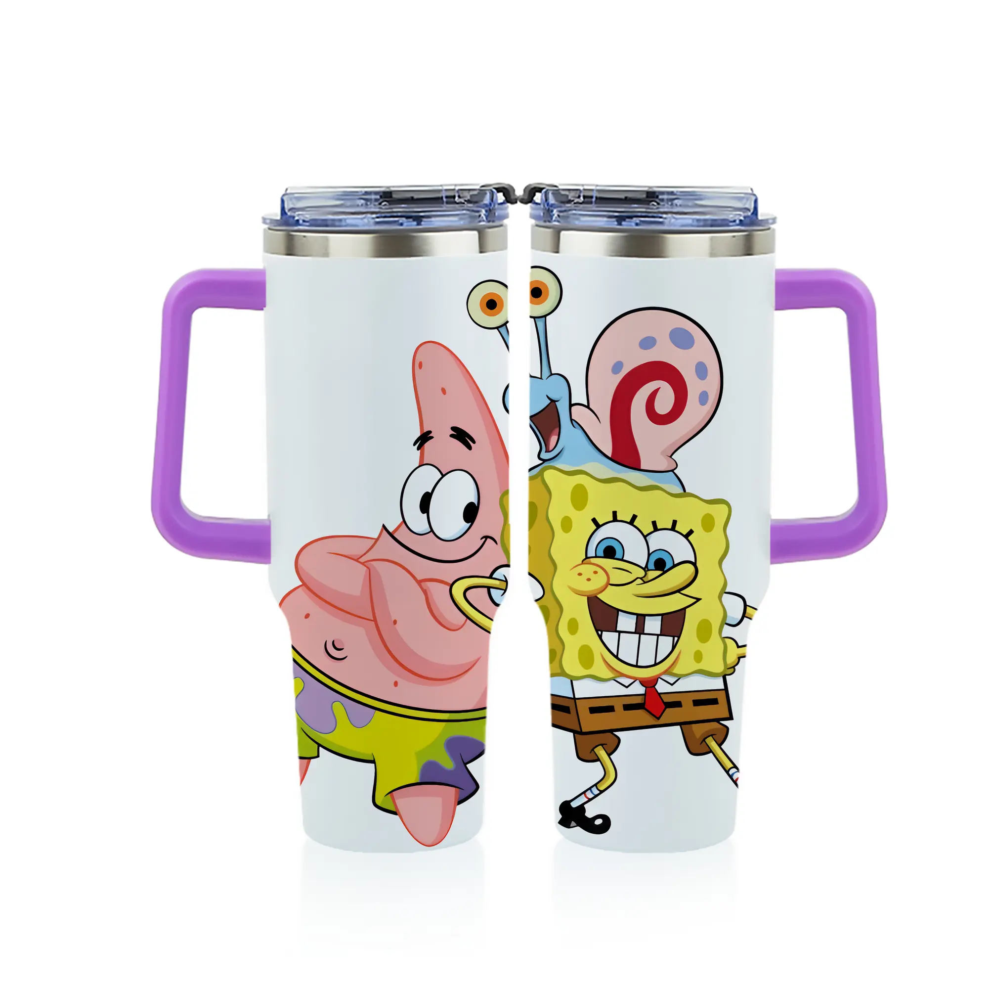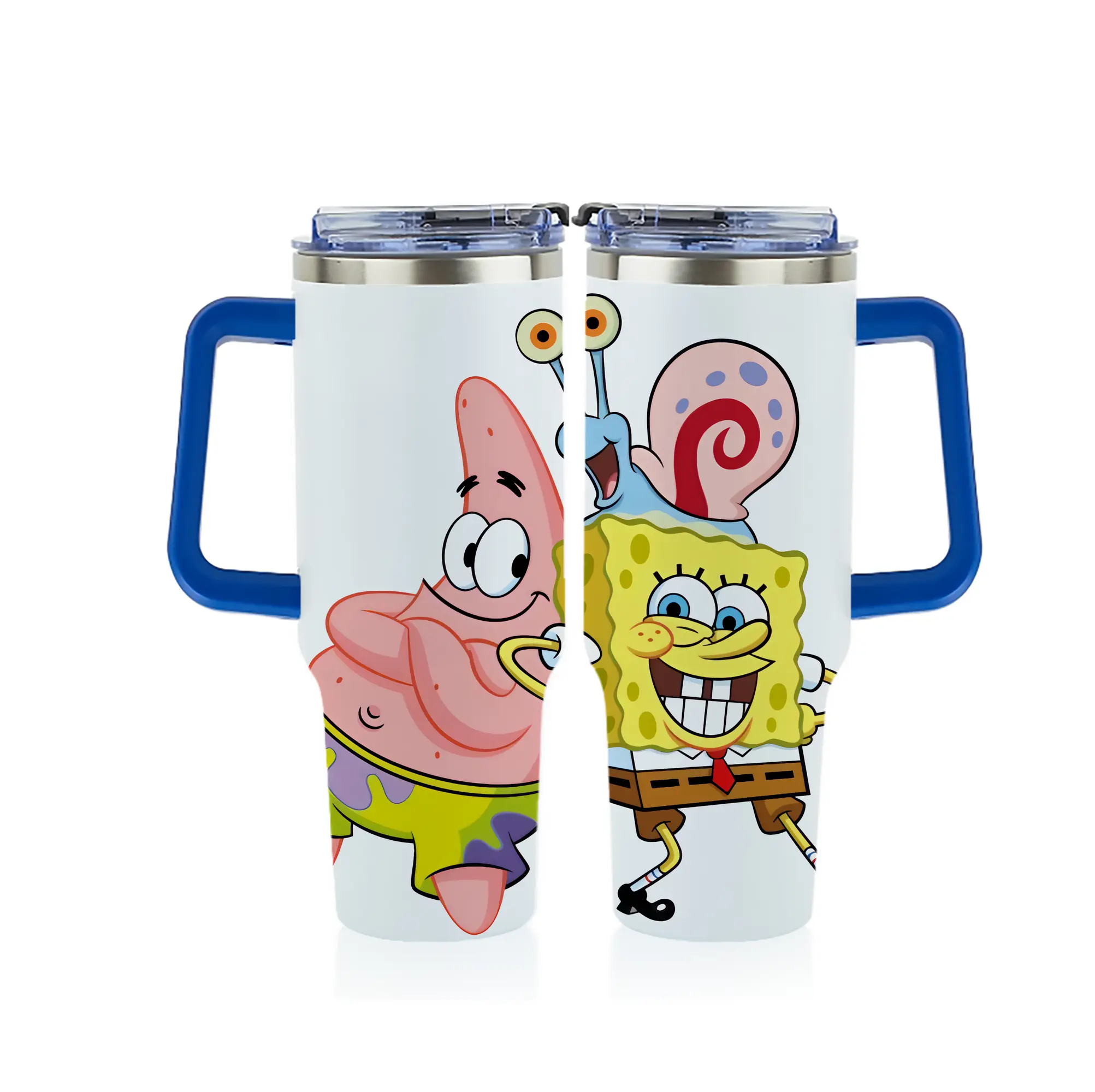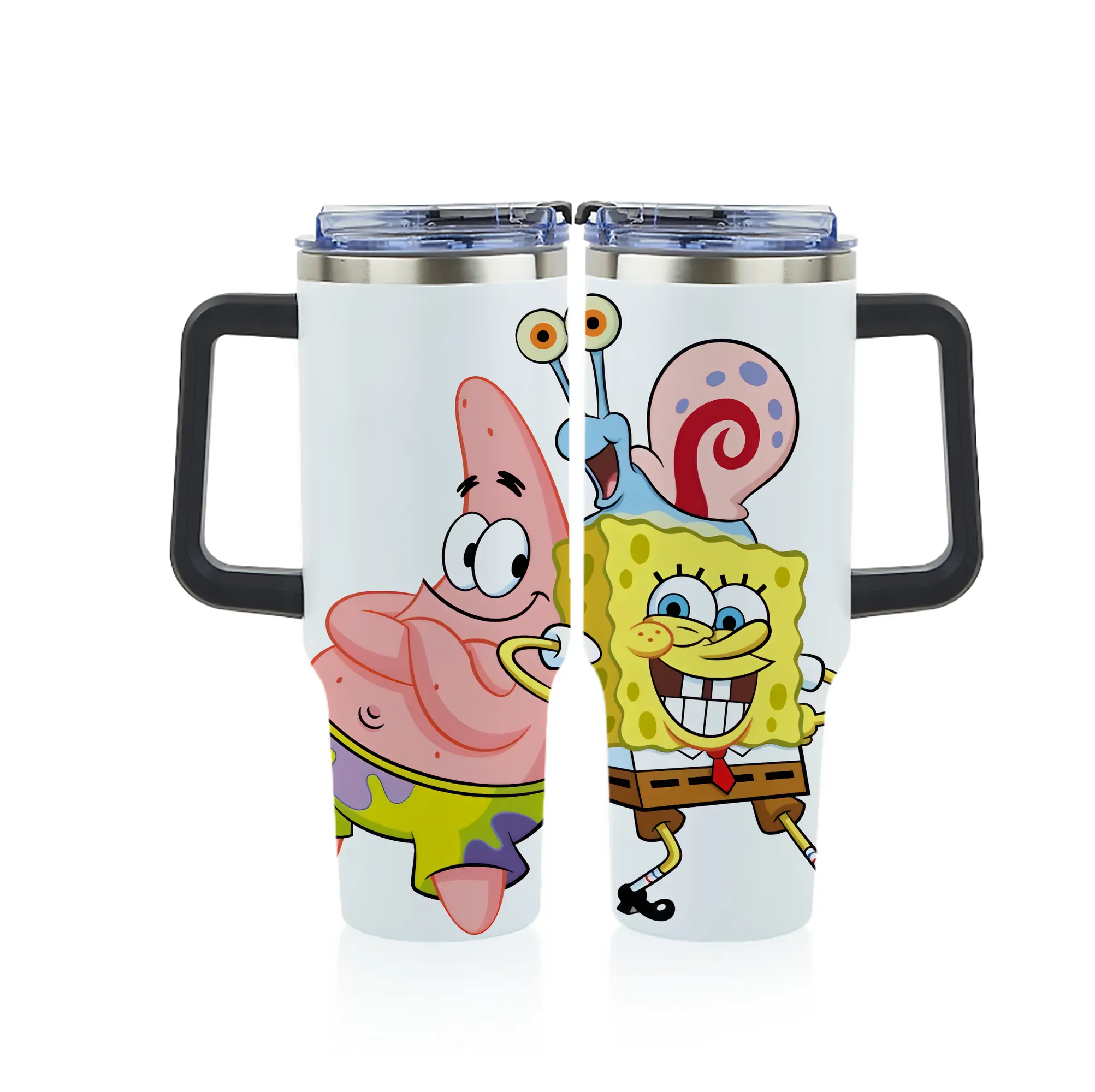 スポンジボブ グッズ カタツムリさん - 1200mL フルプリント車用タンブラー ・ 304ステンレス 内側 ・ 201ステンレス 外側 ・ 保温 保冷 ・ 通勤 ドライブ アウトドア用
