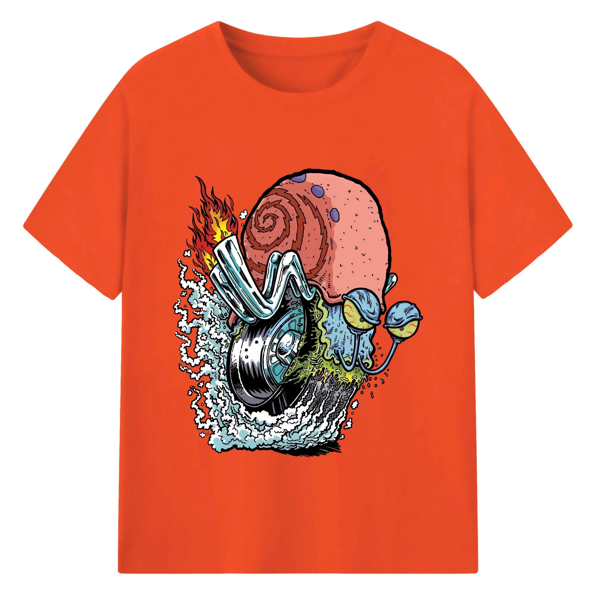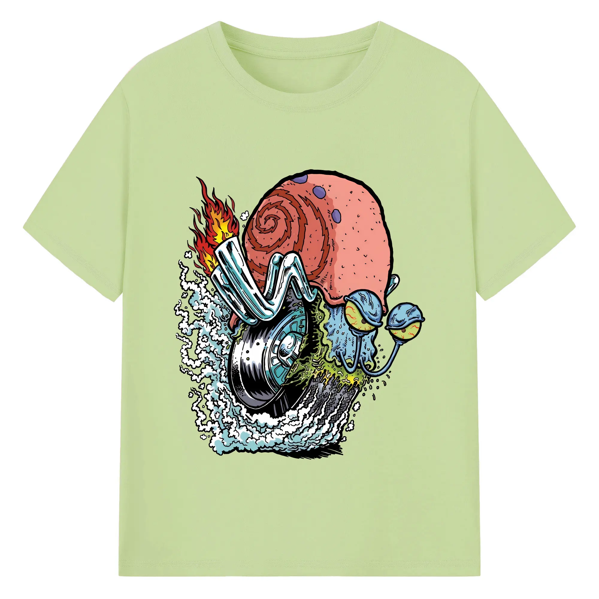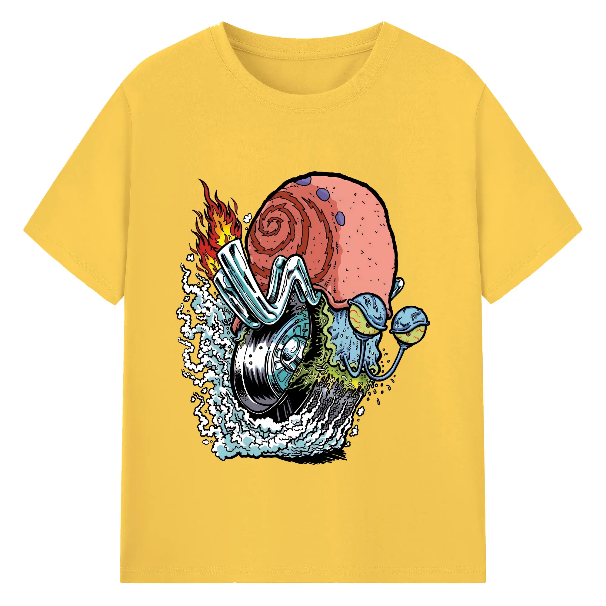 スポンジボブ グッズ カタツムリさん - 綿100% 半袖Tシャツ ・ バックプリント ・ 快適 通気性 ・ 日常使い 散歩 スポーツ用
