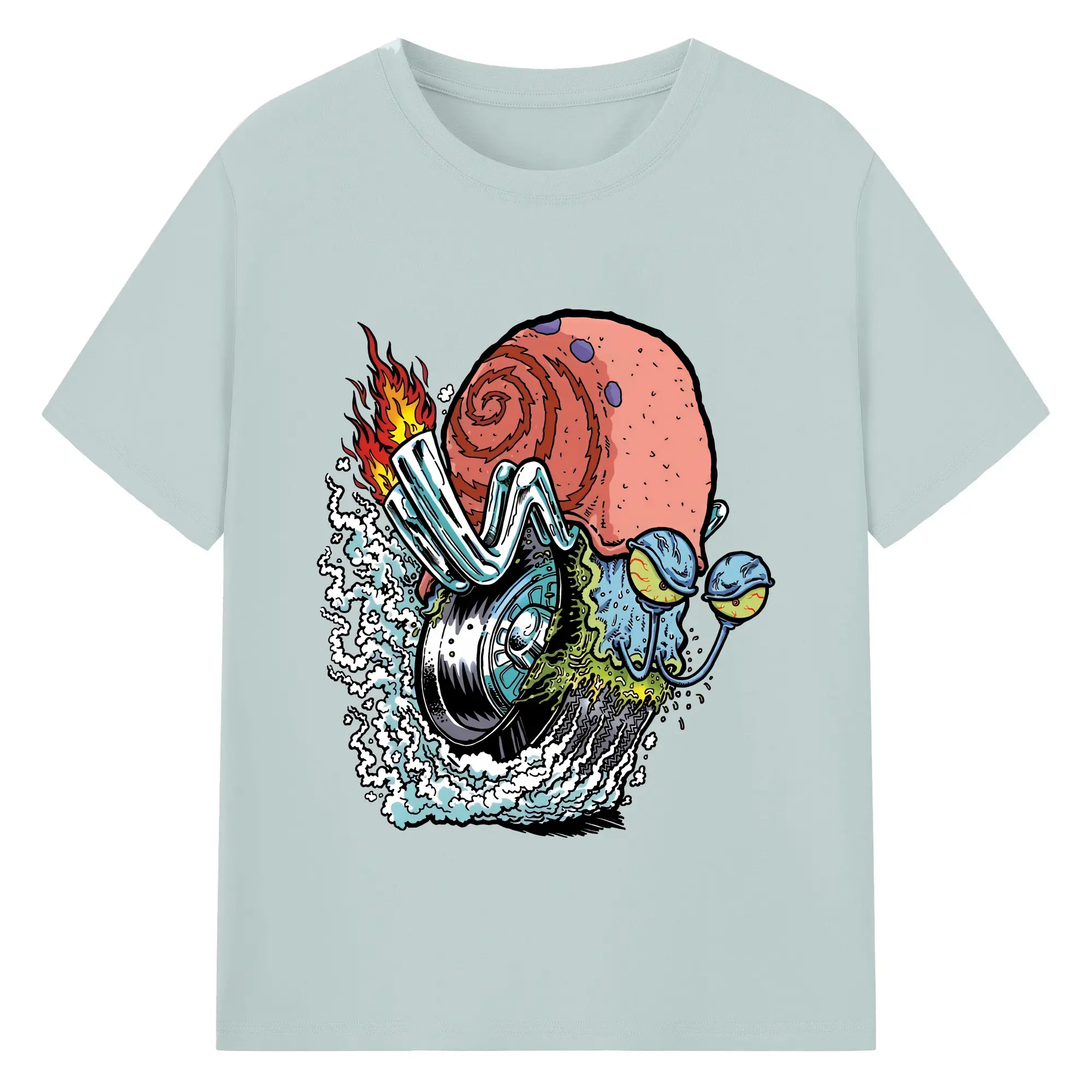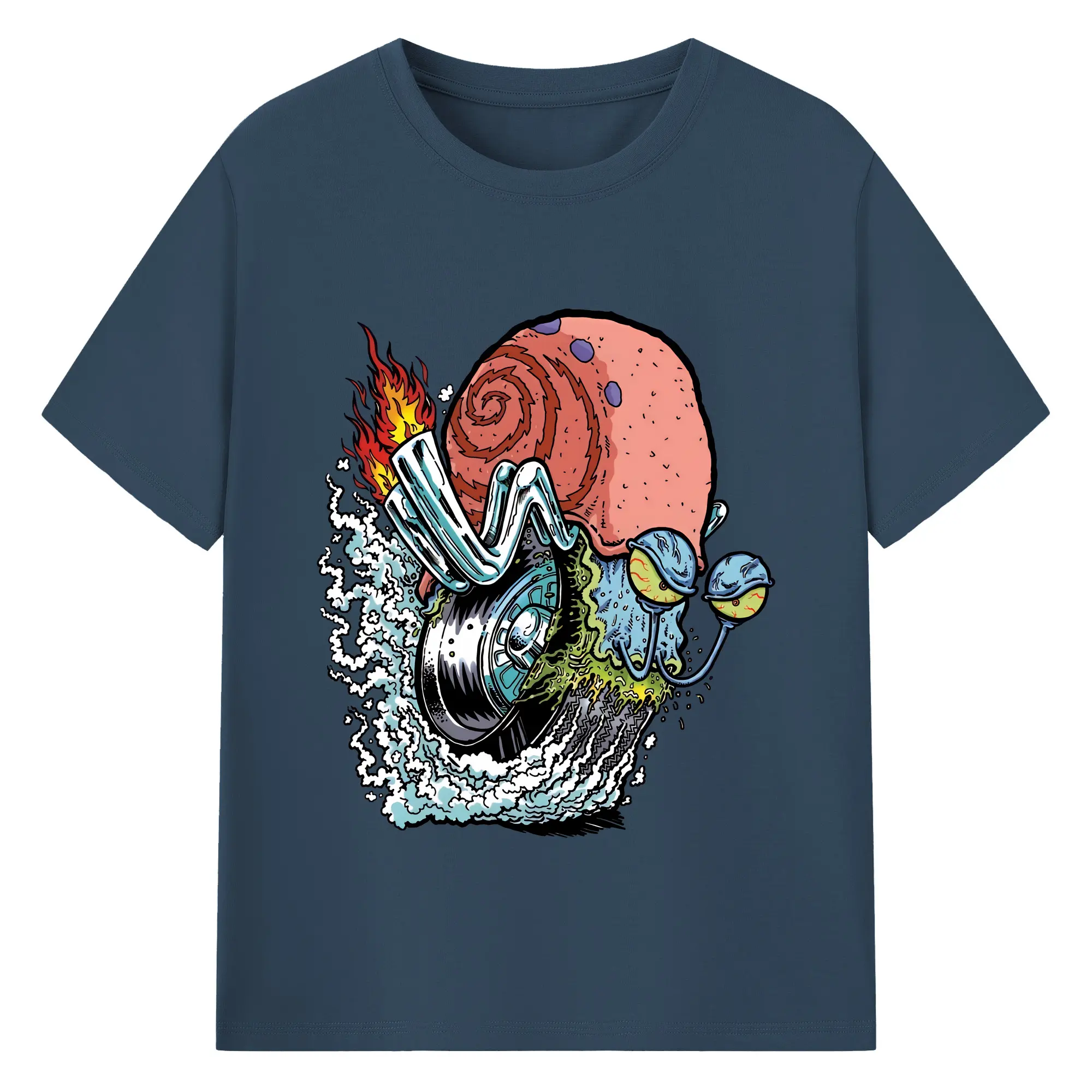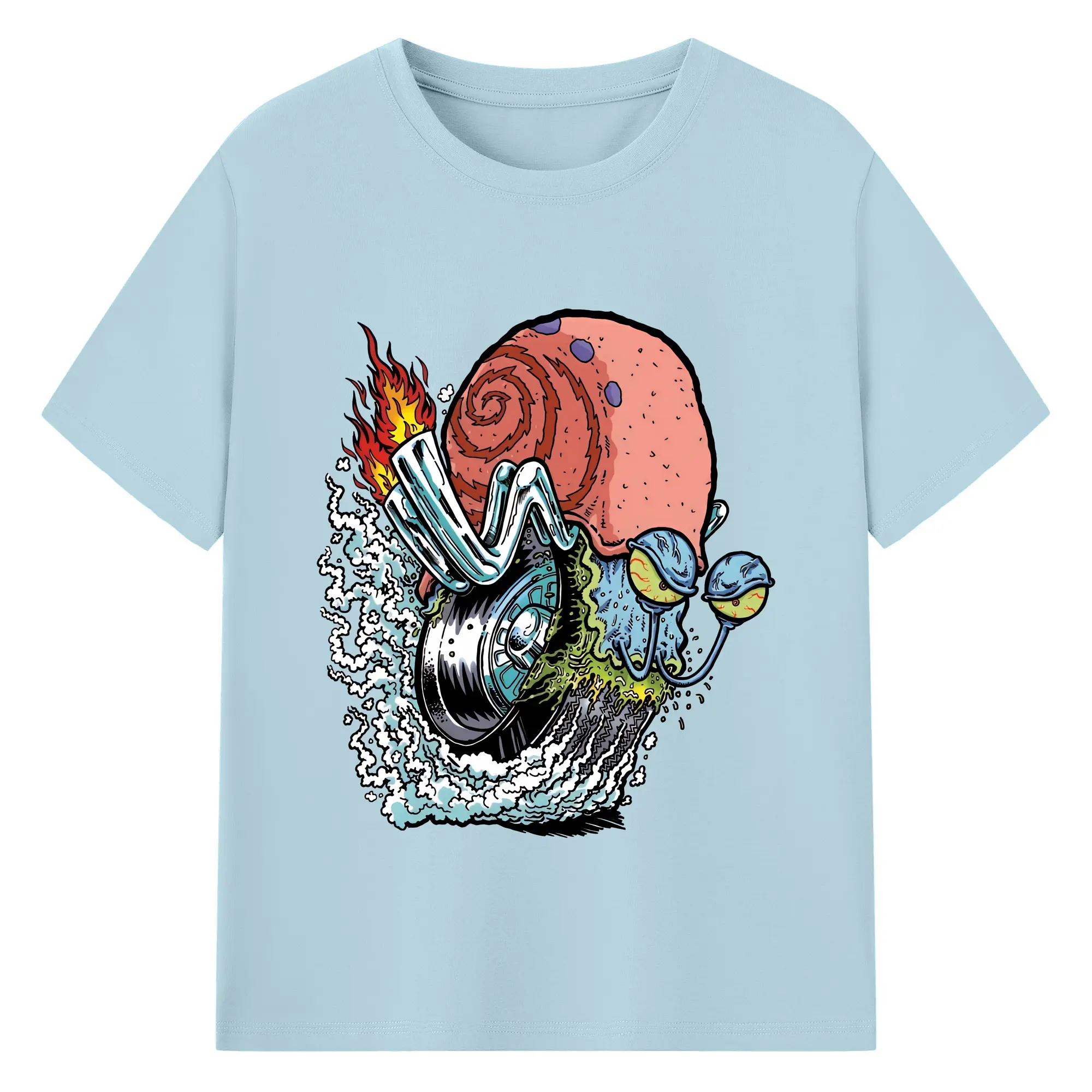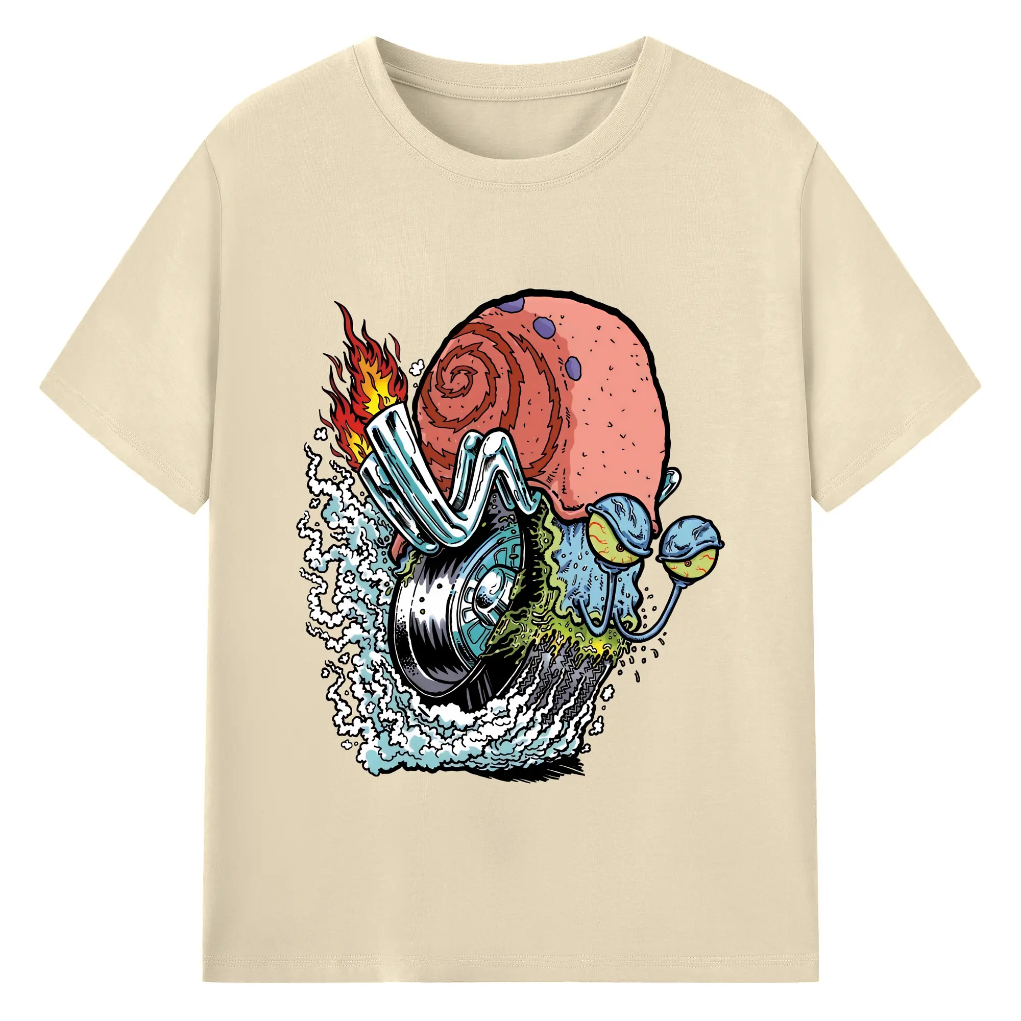 スポンジボブ グッズ カタツムリさん - 綿100% 半袖Tシャツ ・ バックプリント ・ 快適 通気性 ・ 日常使い 散歩 スポーツ用