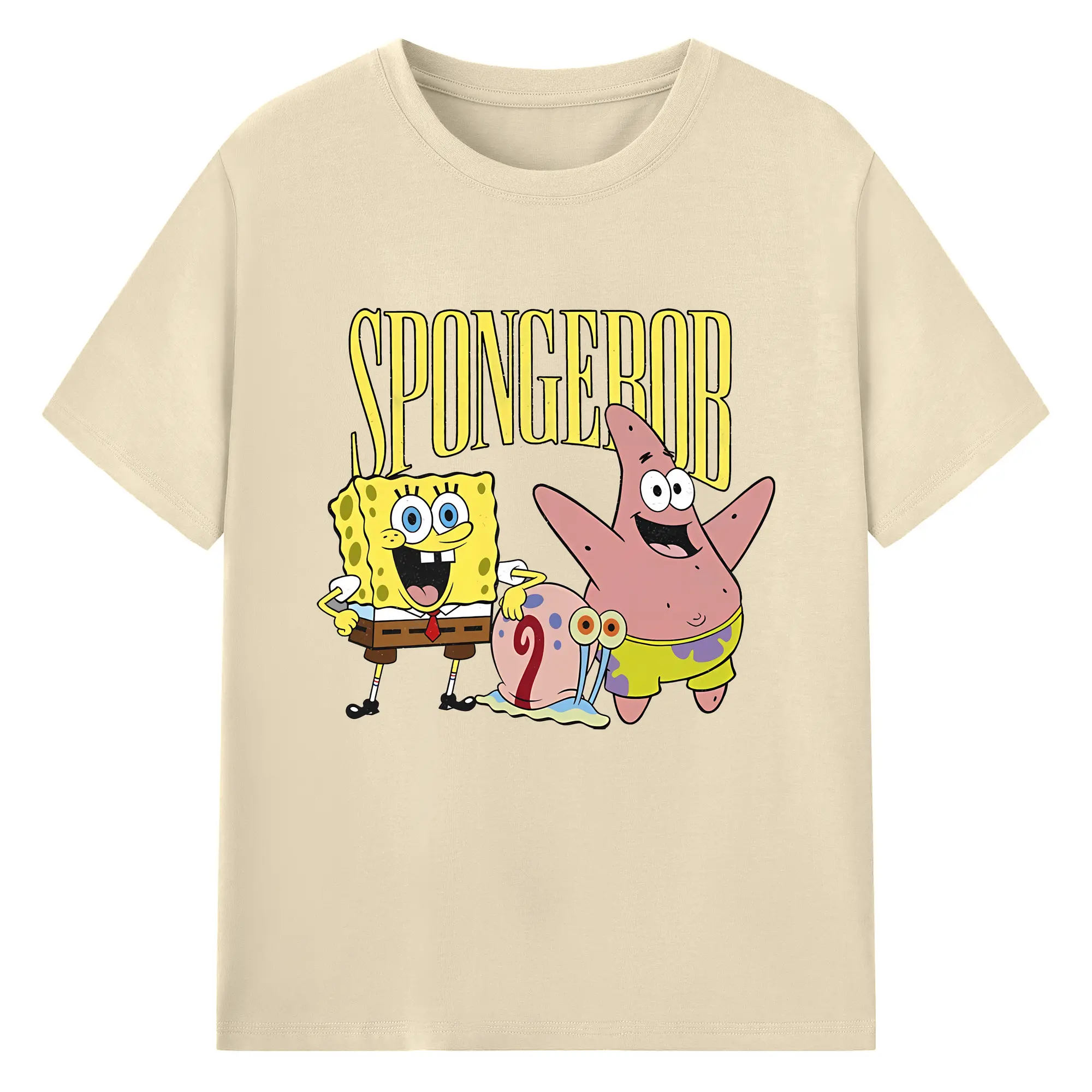 スポンジボブ グッズ カタツムリさん - 綿100% ヴィンテージ風 半袖Tシャツ ・ 背面プリント ・ 柔らか肌触り ・ 通気性 快適 ・ スポーツ カジュアル 外出用