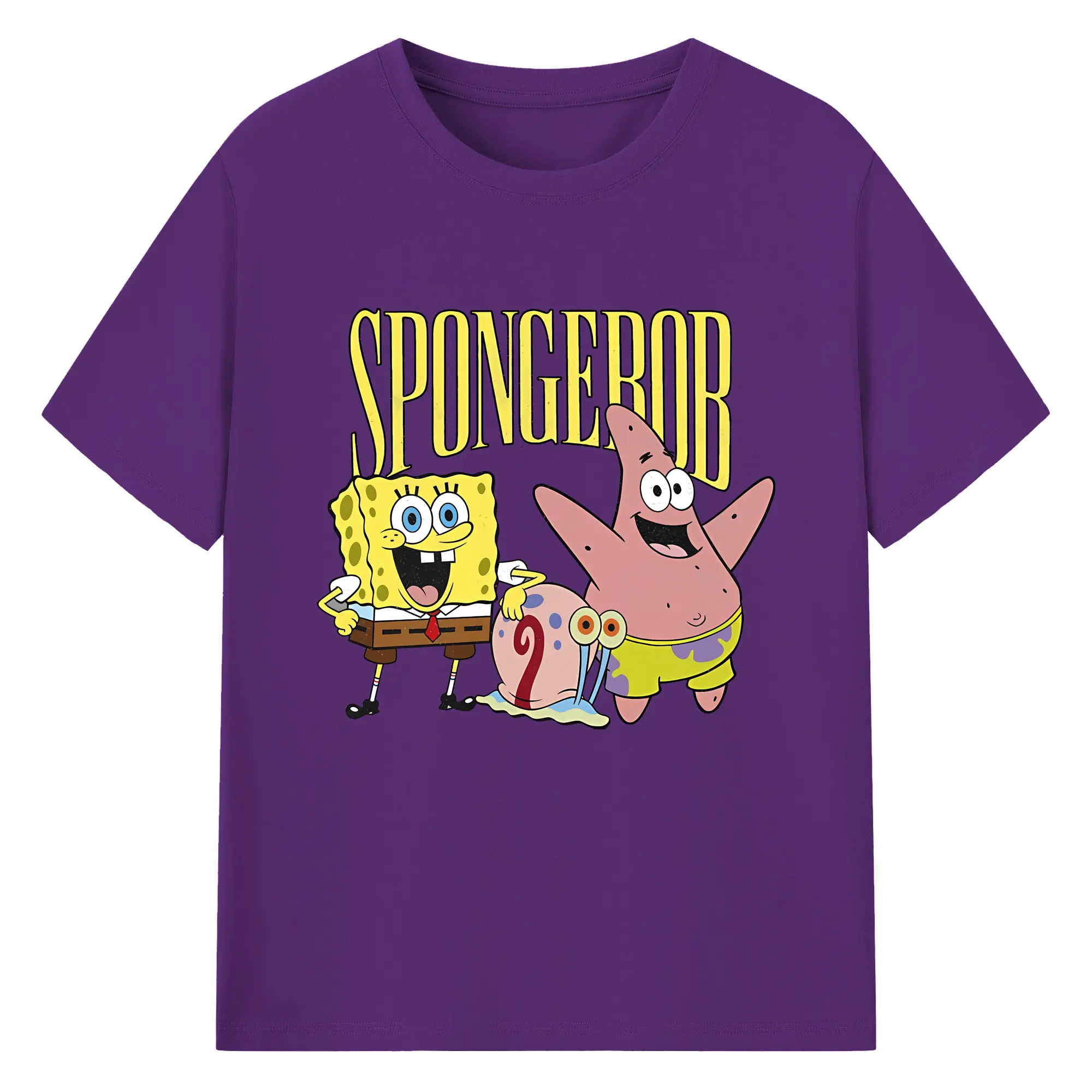 スポンジボブ グッズ カタツムリさん - 綿100% 半袖Tシャツ ・ バックプリント ・ 快適 通気性 ・ 日常使い 散歩 スポーツ用