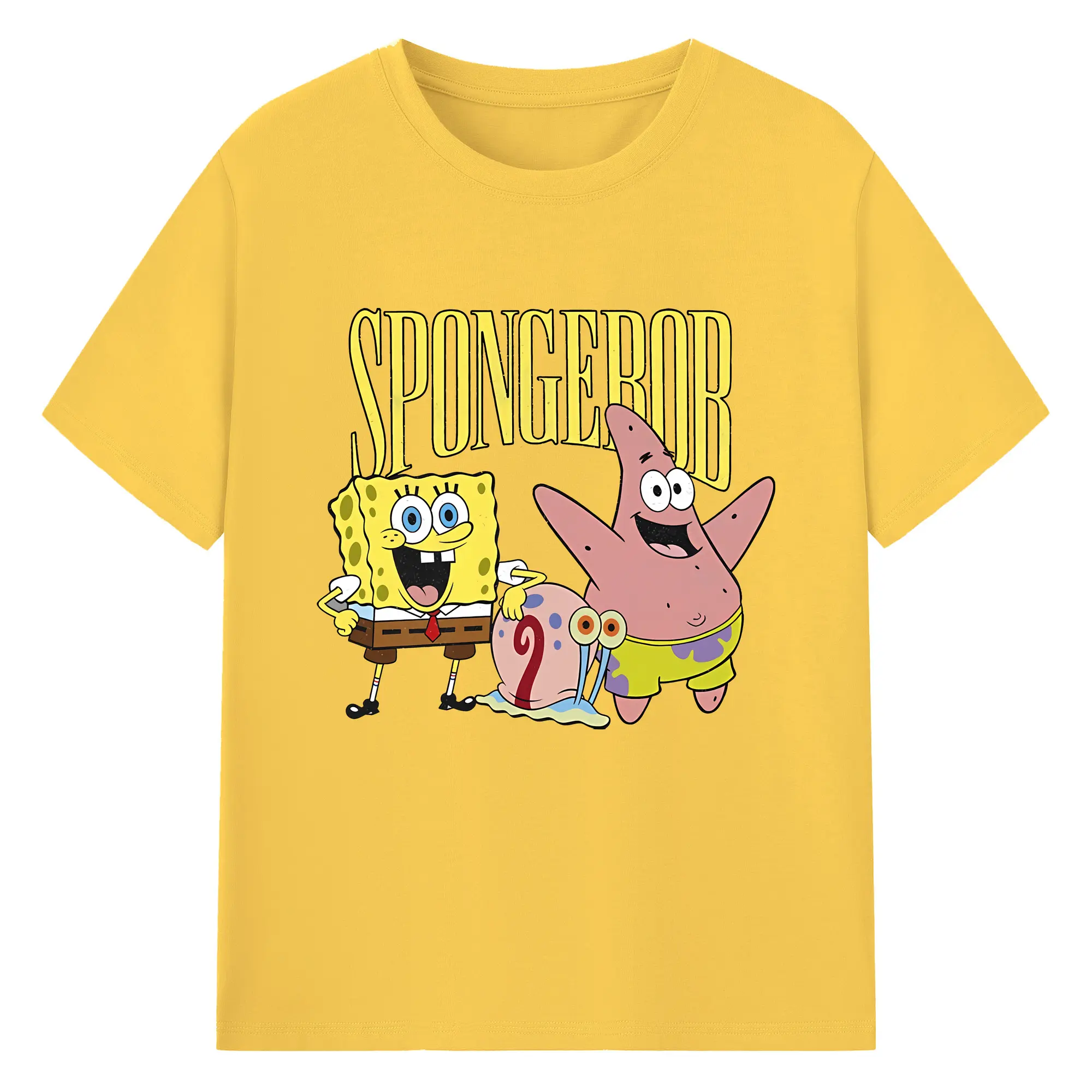 スポンジボブ グッズ スポンジボブ - 綿100% 半袖Tシャツ ・ フロントプリント ・ 快適 通気性 ・ 日常使い 散歩 スポーツ用