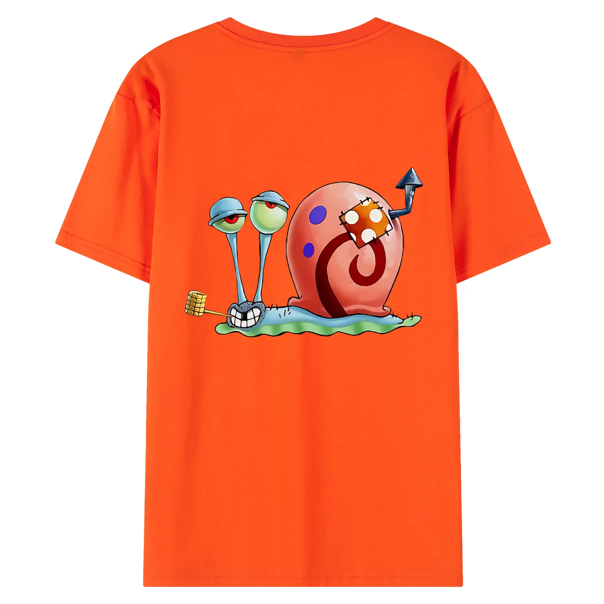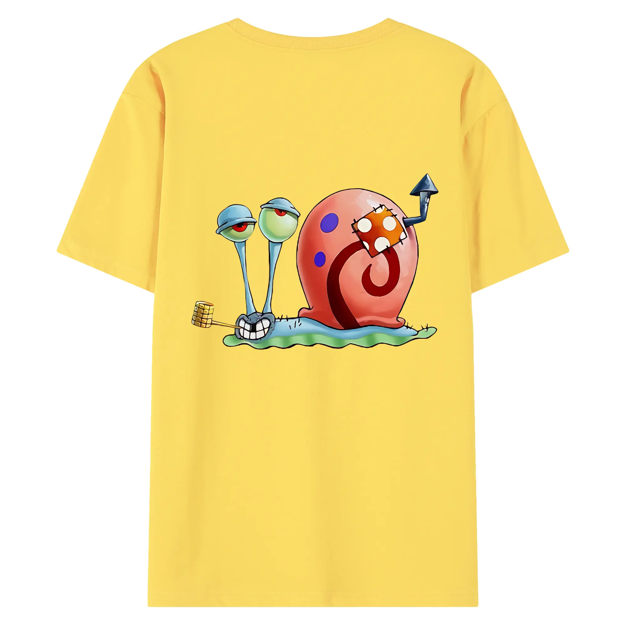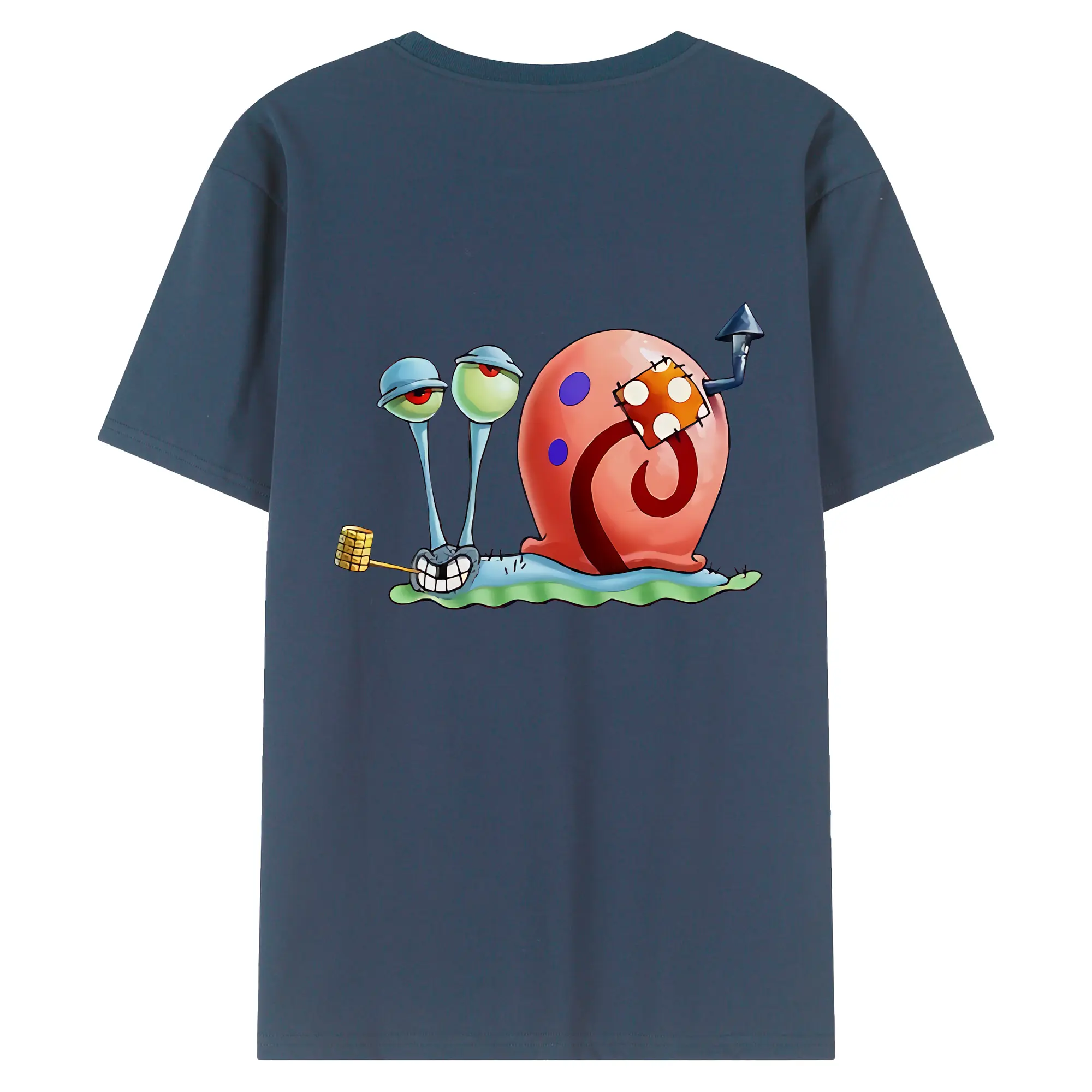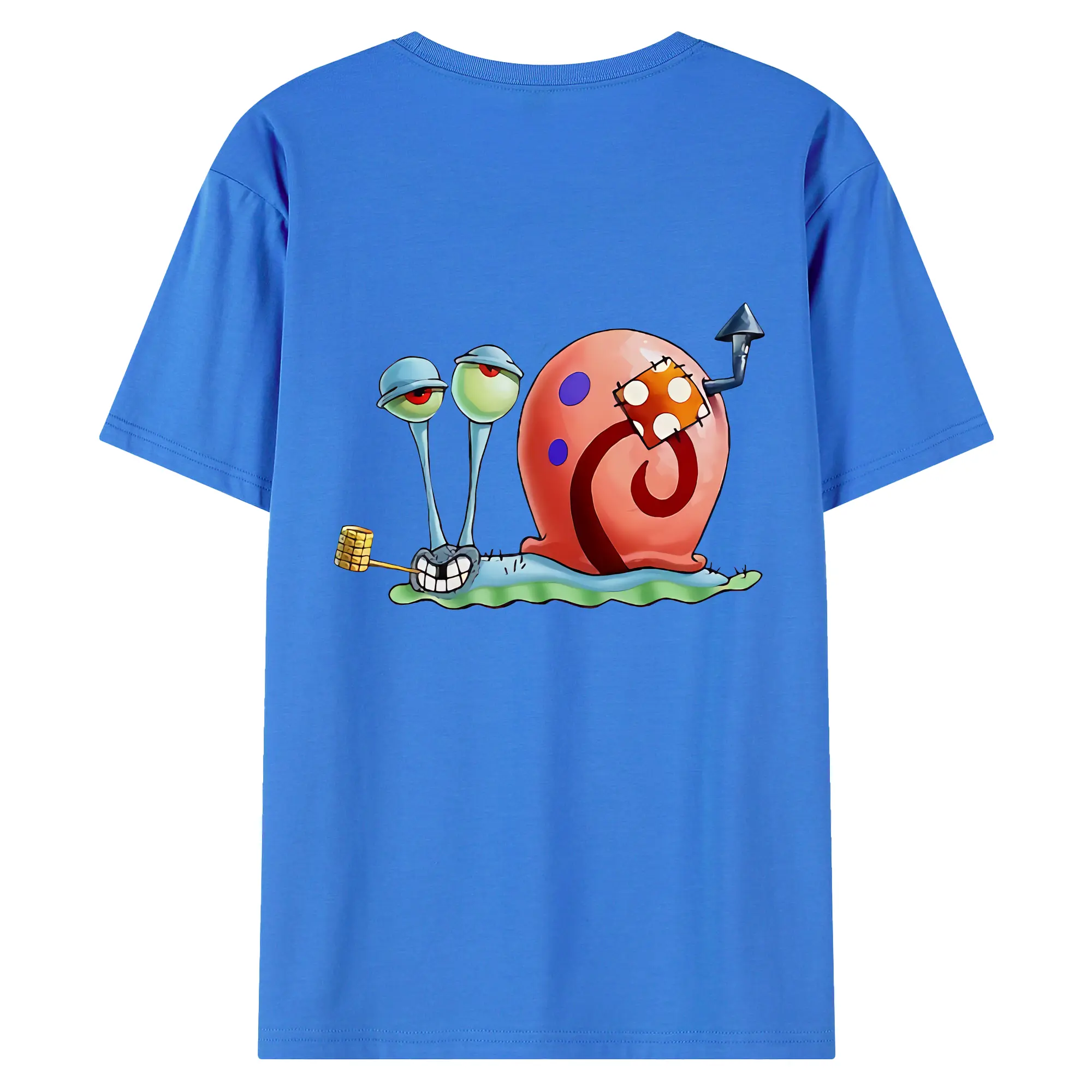 スポンジボブ グッズ カタツムリさん - 綿100% 半袖Tシャツ ・ フロントプリント ・ 快適 通気性 ・ 日常使い 散歩 スポーツ用