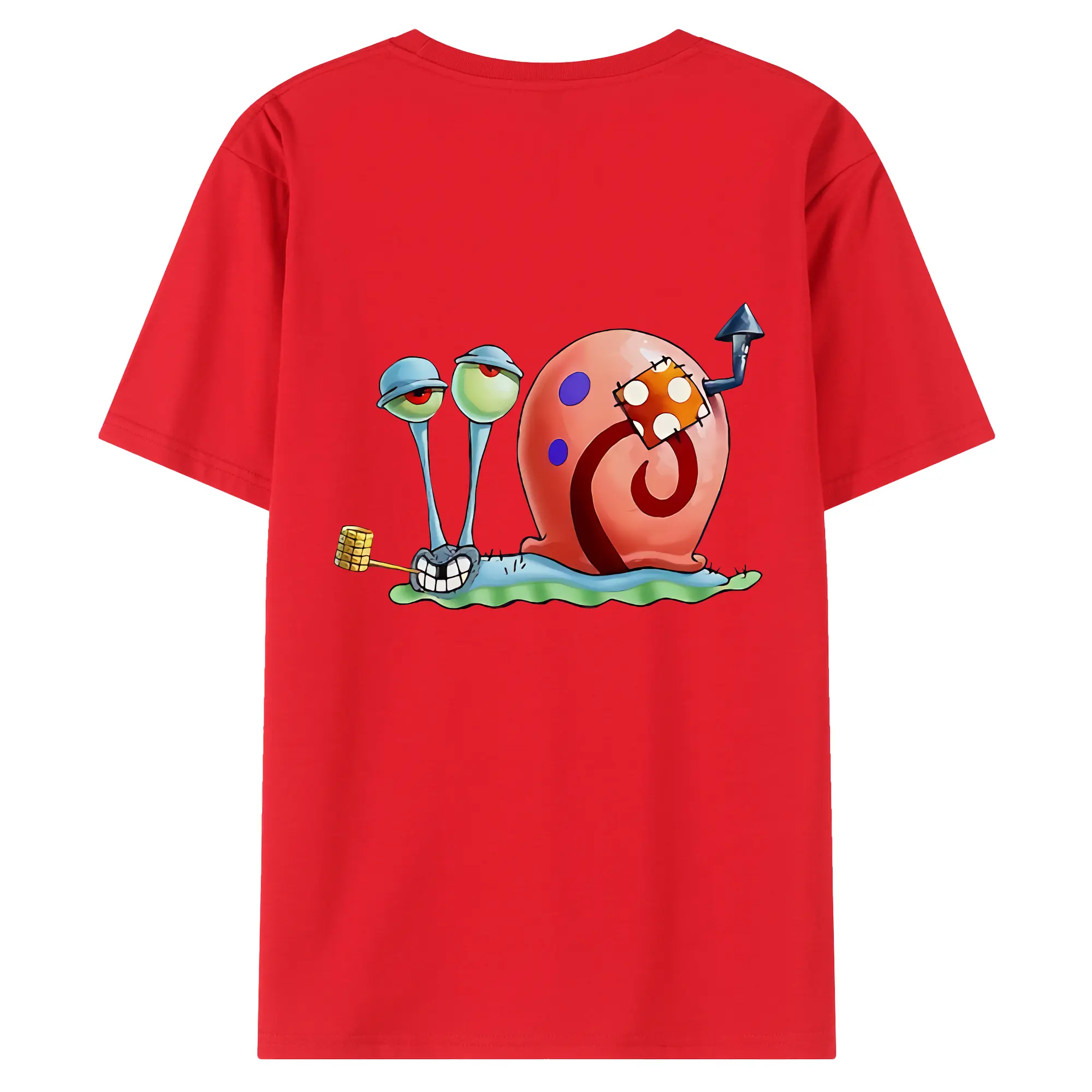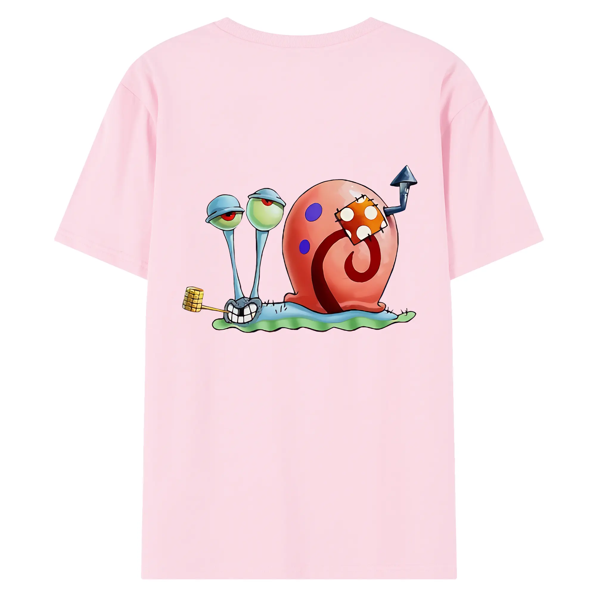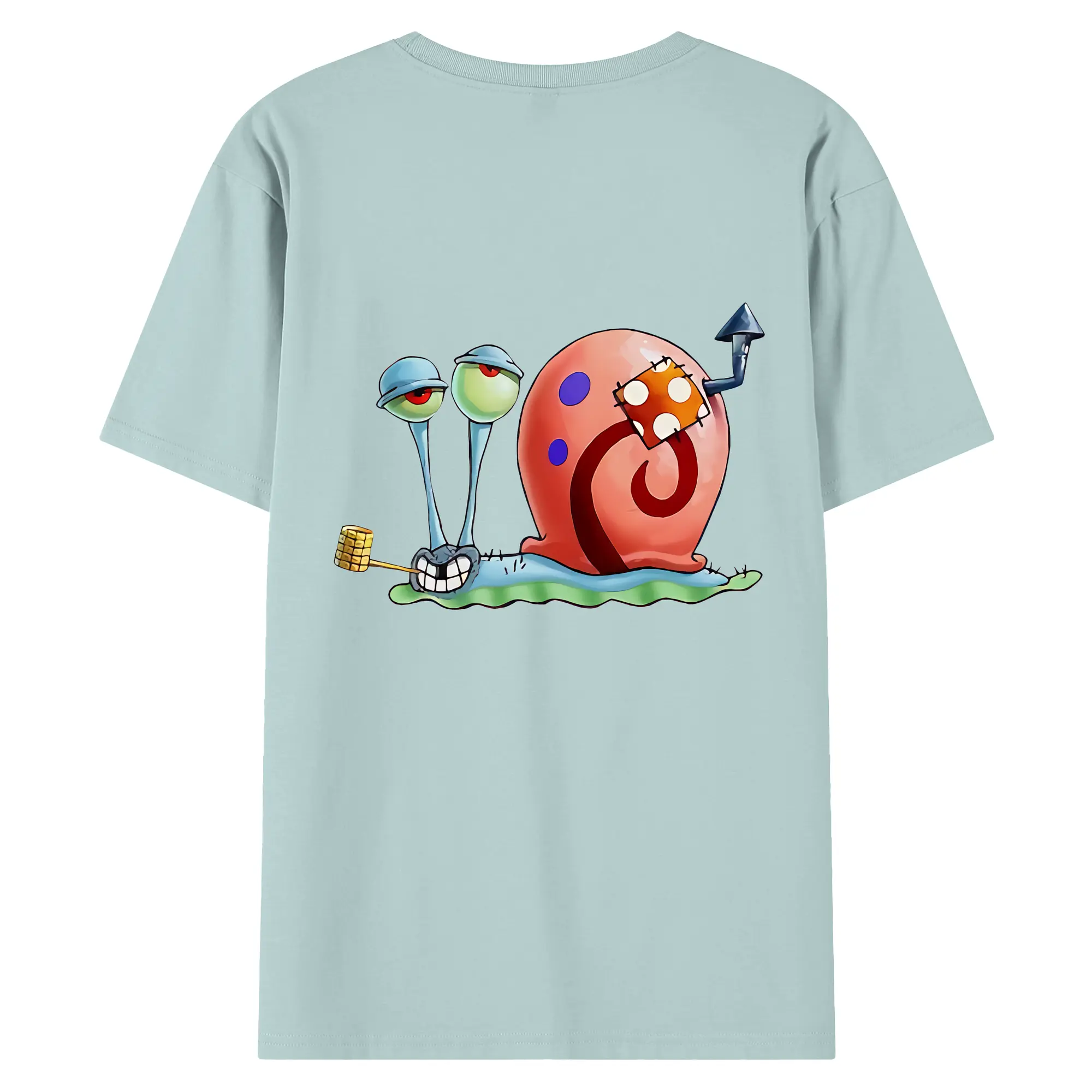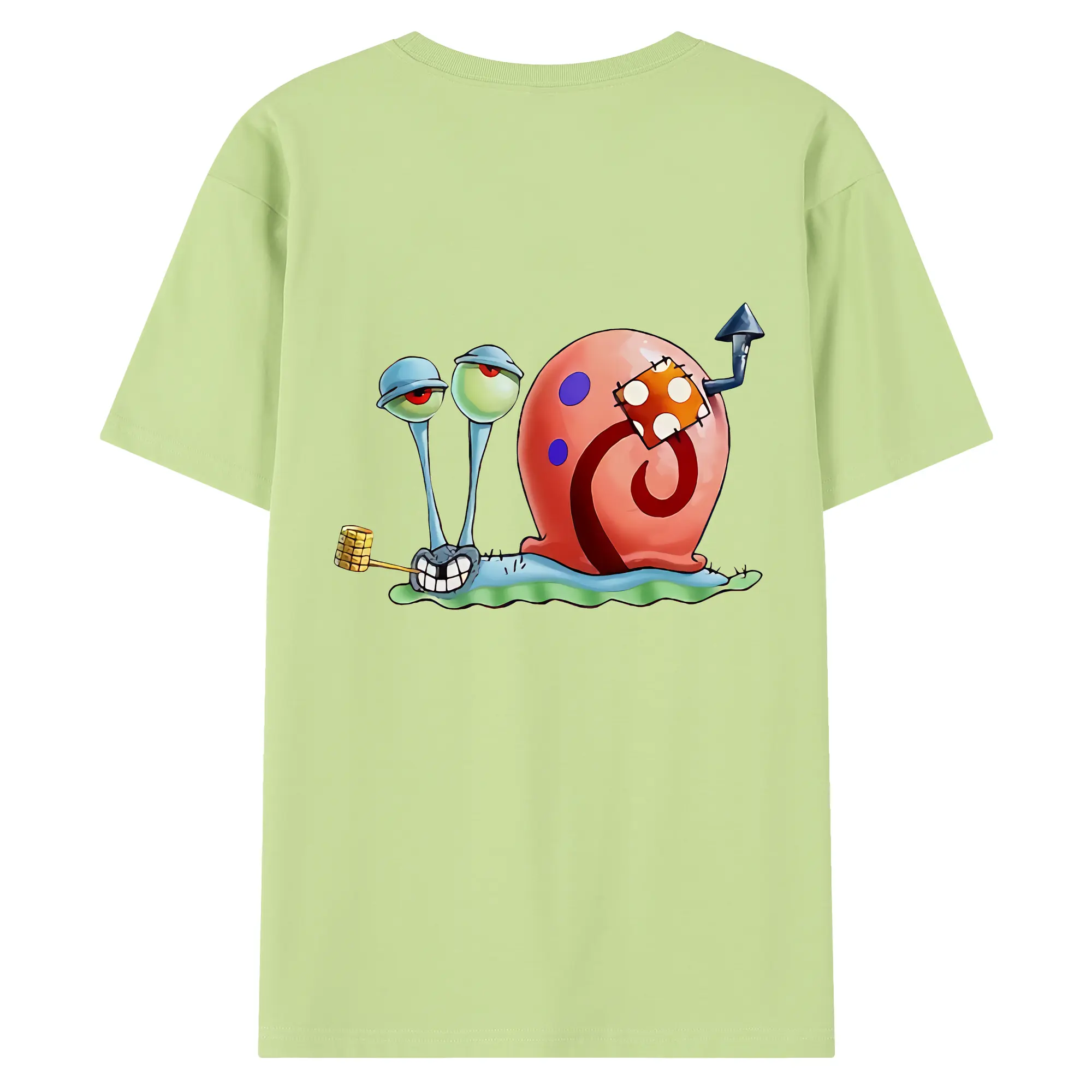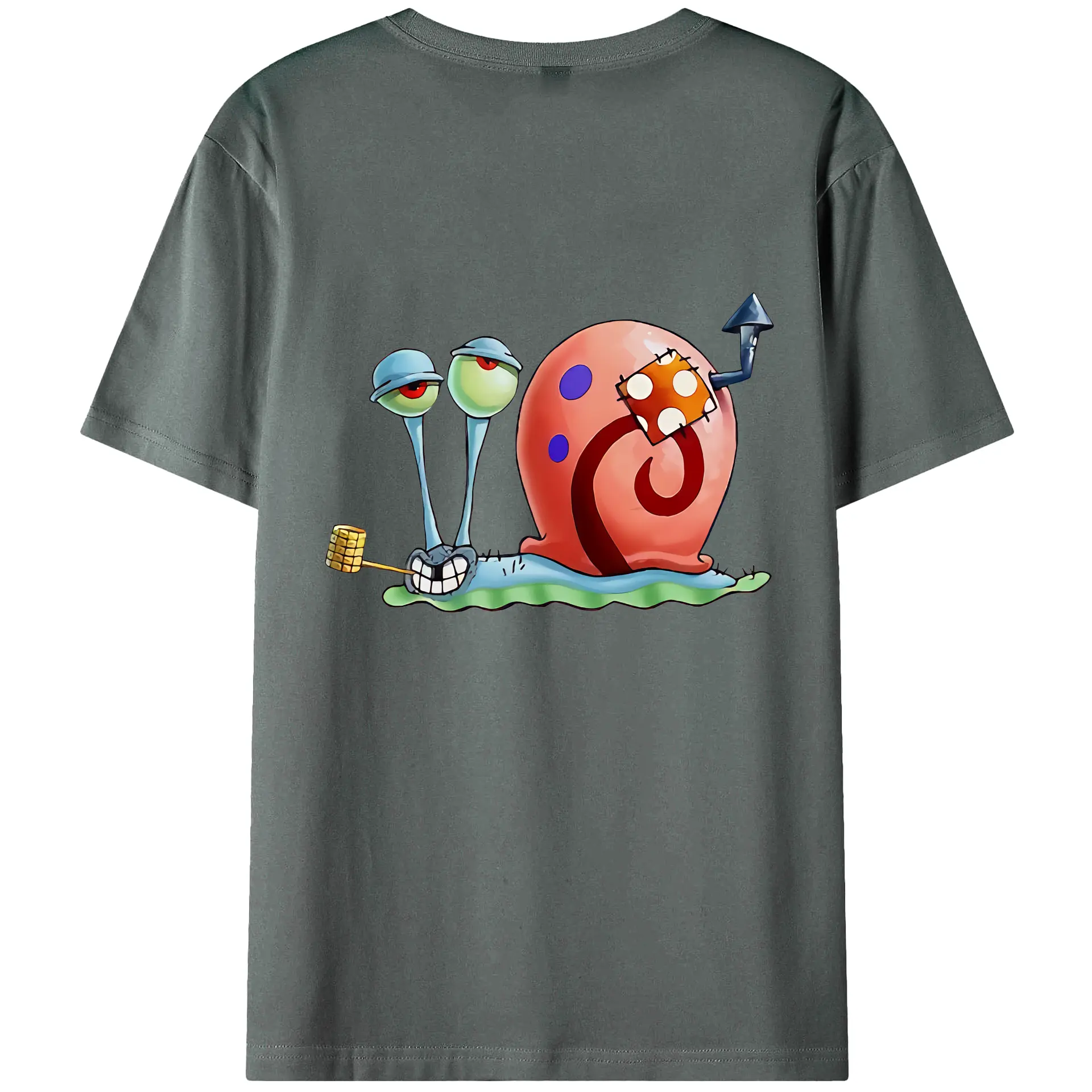 スポンジボブ グッズ カタツムリさん - 綿100% 半袖Tシャツ ・ フロントプリント ・ 快適 通気性 ・ 日常使い 散歩 スポーツ用