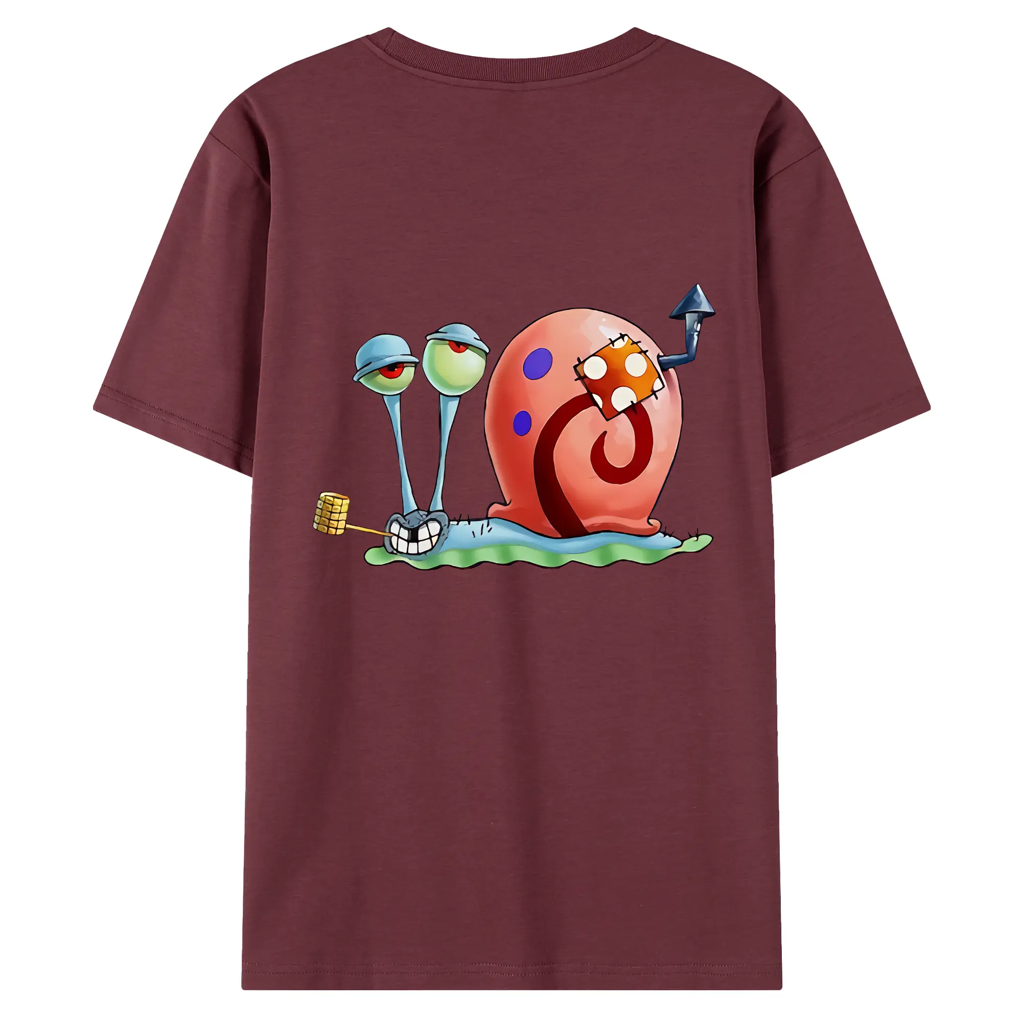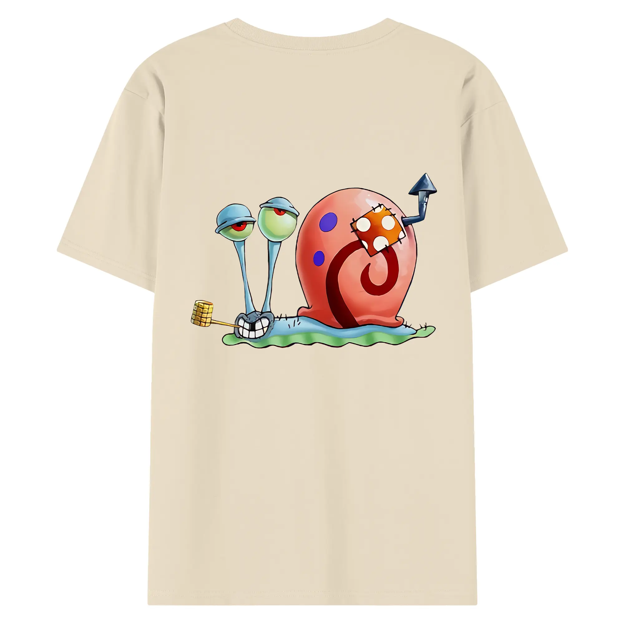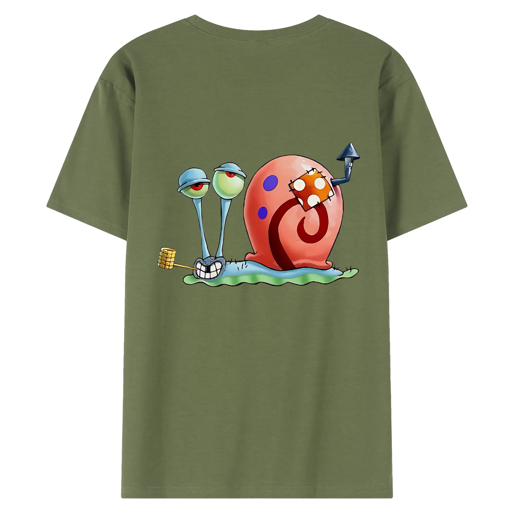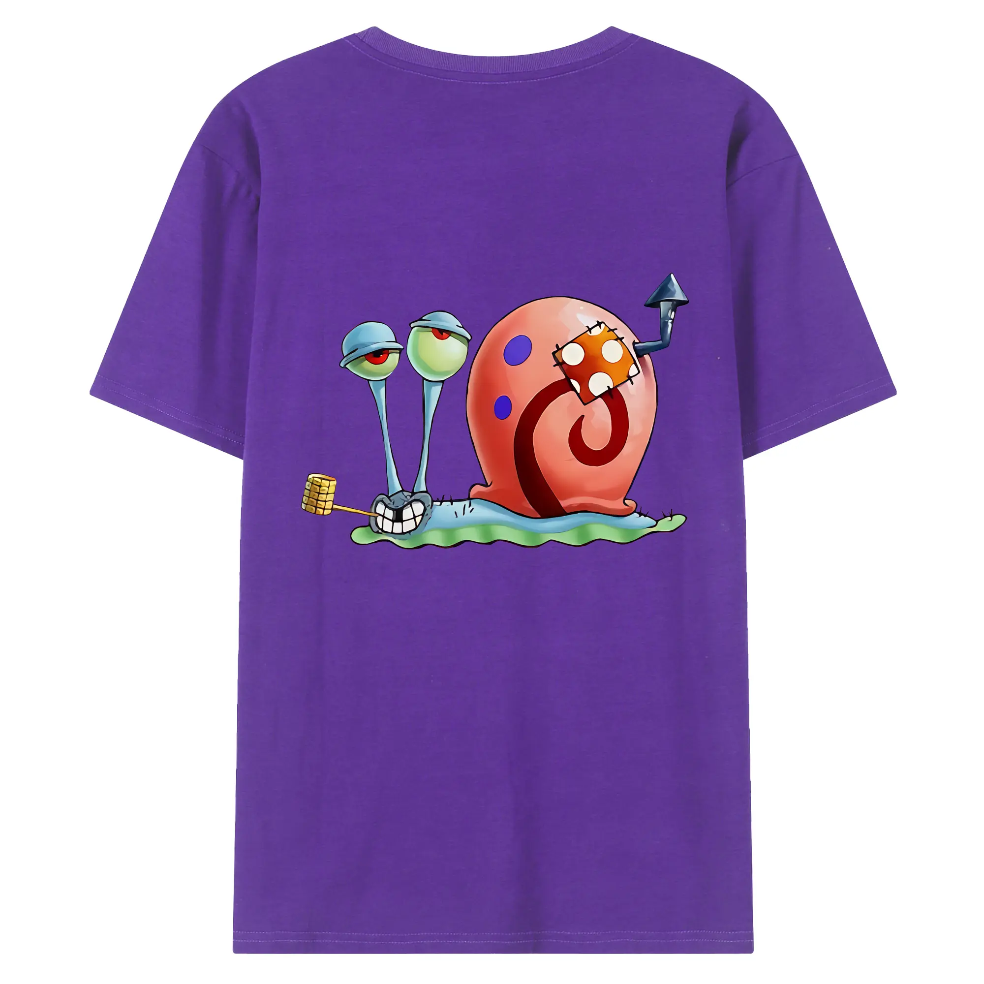 スポンジボブ グッズ カタツムリさん - 綿100% 半袖Tシャツ ・ フロントプリント ・ 快適 通気性 ・ 日常使い 散歩 スポーツ用