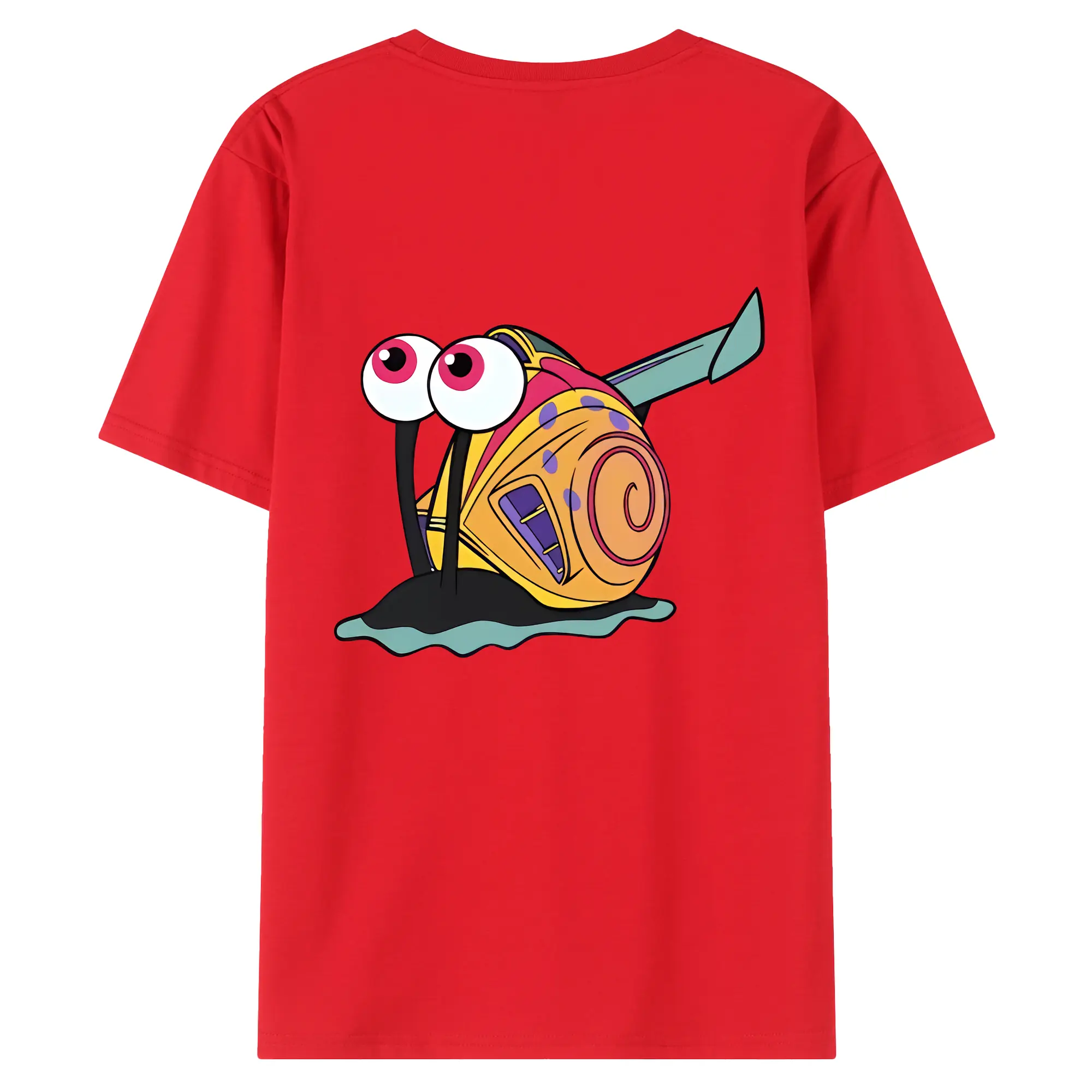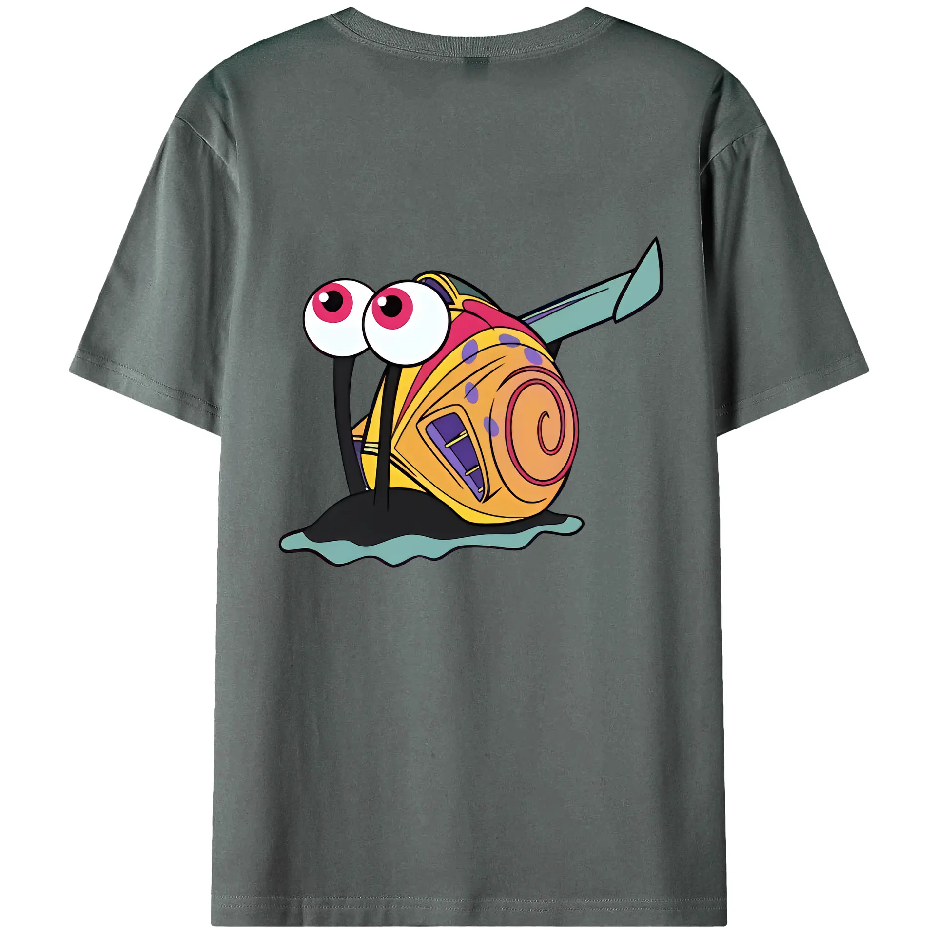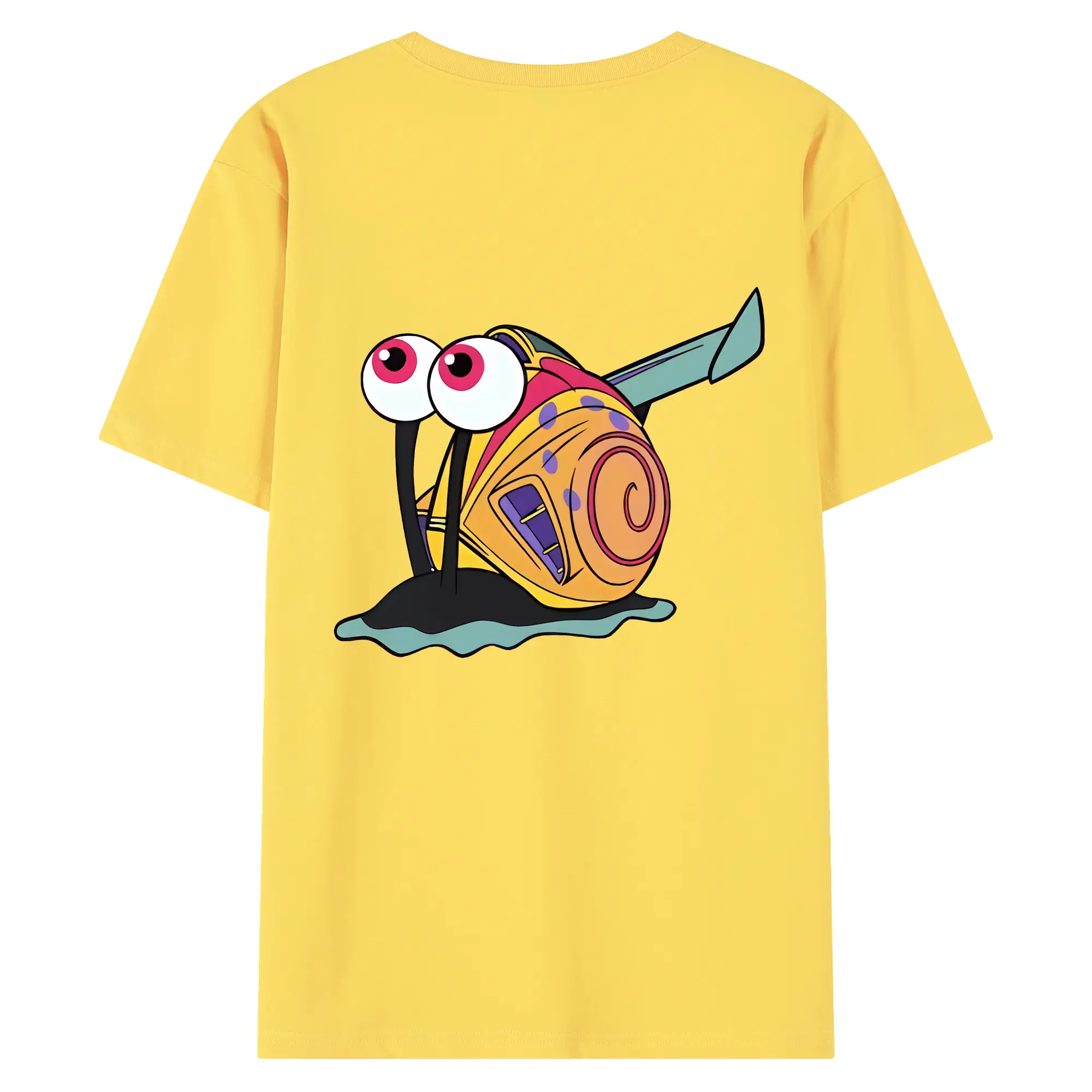 スポンジボブ グッズ カタツムリさん - 綿100% 半袖Tシャツ ・ フロントプリント ・ 快適 通気性 ・ 日常使い 散歩 スポーツ用
